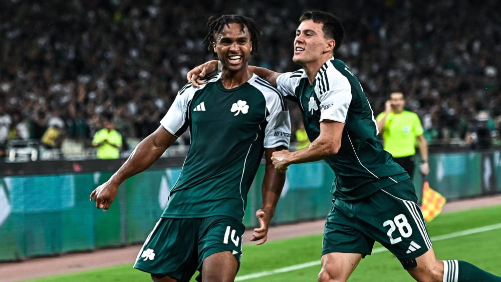 PSG-Leihgabe Renato Sanches ist der neue Star von Panathinaikos, aber auch ein Ex-Austrianer hattec schon Grund zum Jubeln. Erik Palmer-Brown war der Siegestorschütze beim 2:1-Heimsieg gegen Samsunspor. Wie sich eine Woche später herausstellte, war es entscheidend für den Einzug in die Ligaphase. IMAGO/IPA Sport