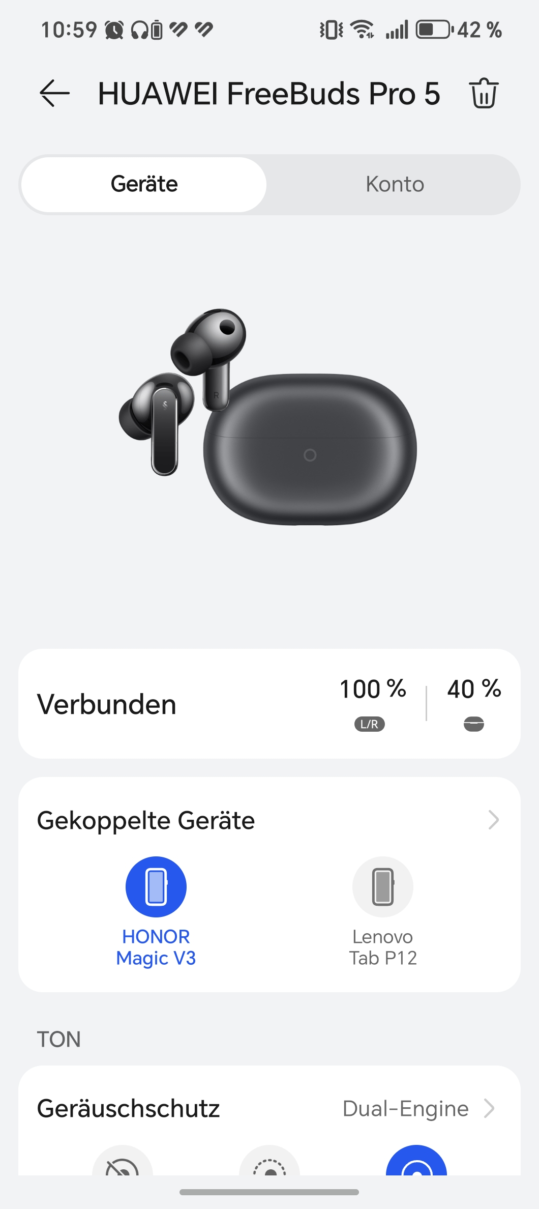 Ganz ohne Schwächen geht es aber nicht: Das ANC lässt schrille Töne und Stimmdurchsagen größtenteils durch. Die Akkulaufzeit ist solide, mit aktivem ANC aber kein Marathonwert. Und Android-Nutzer abseits von Samsung müssen die App per Sideload installieren. Wer damit leben kann, bekommt hier exzellente In-Ear-Kopfhörer.
