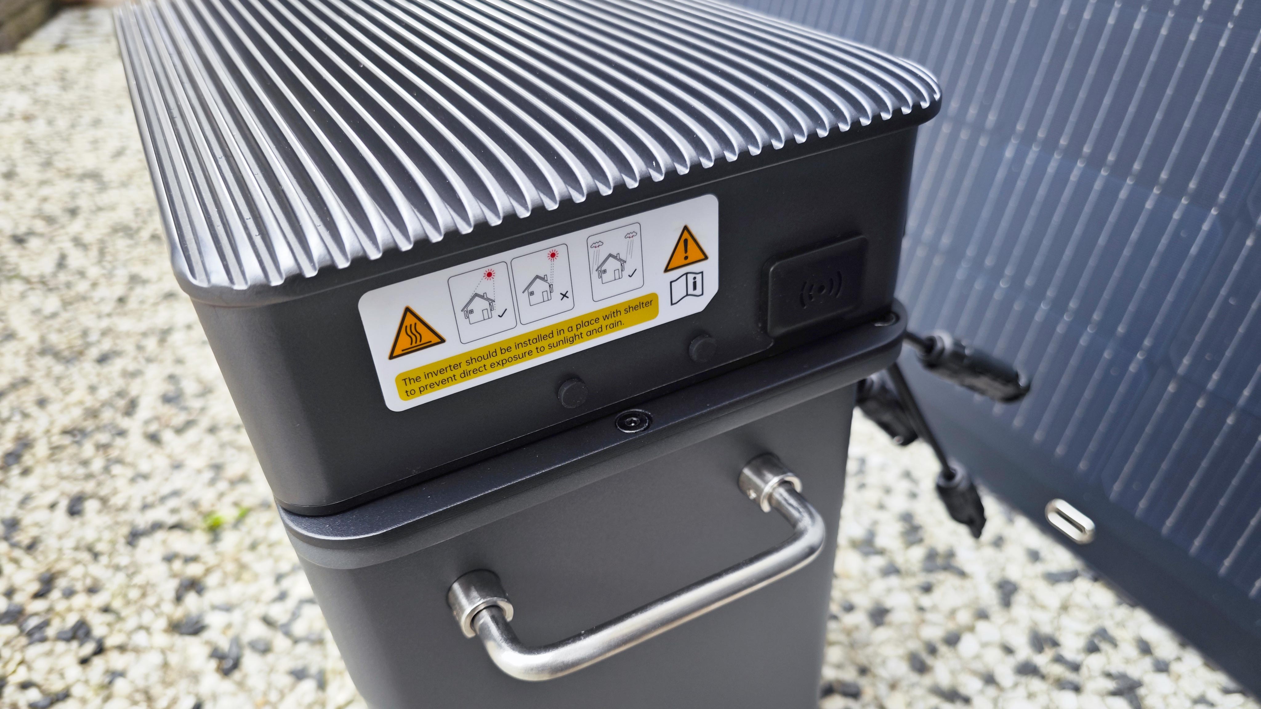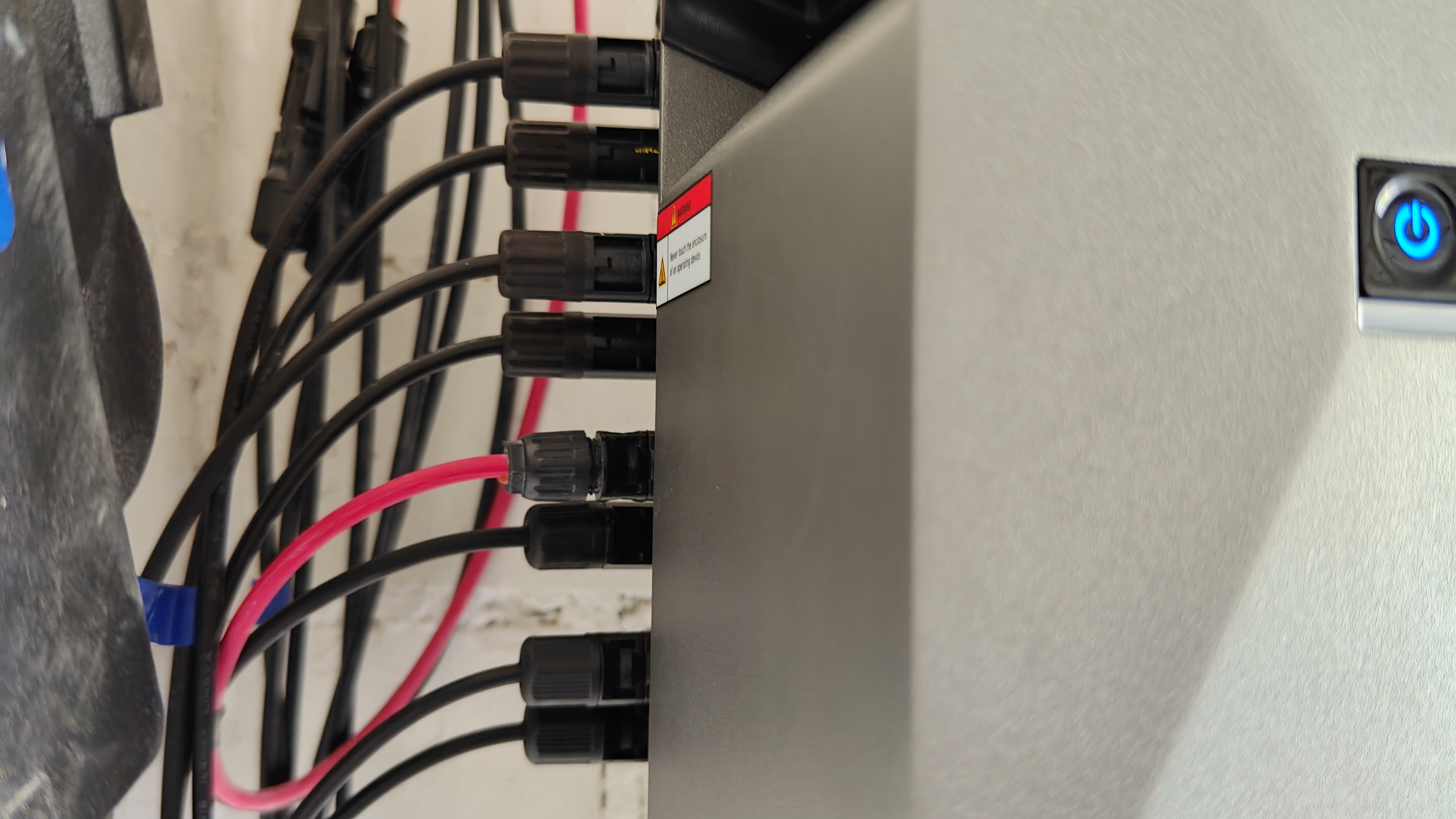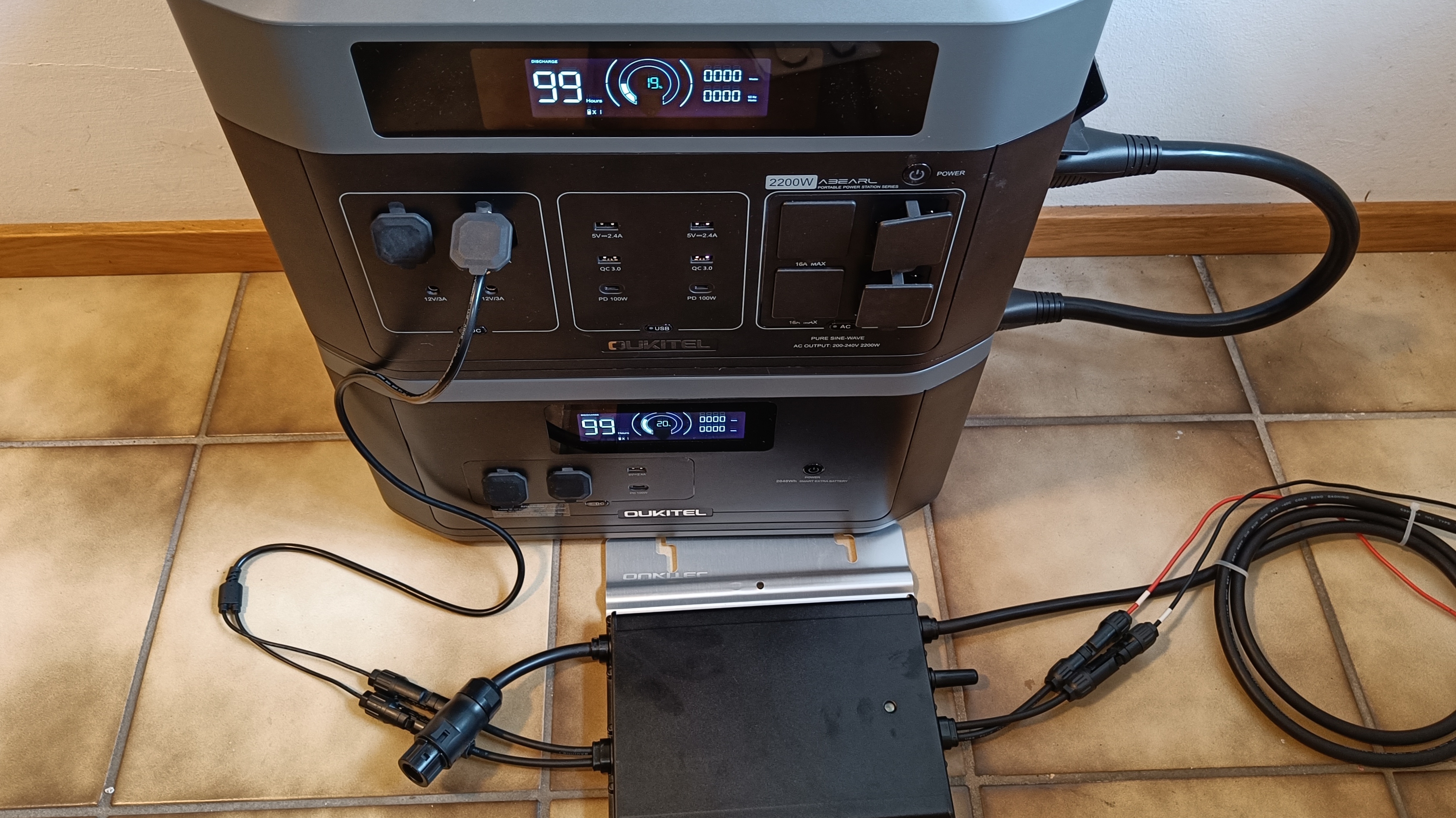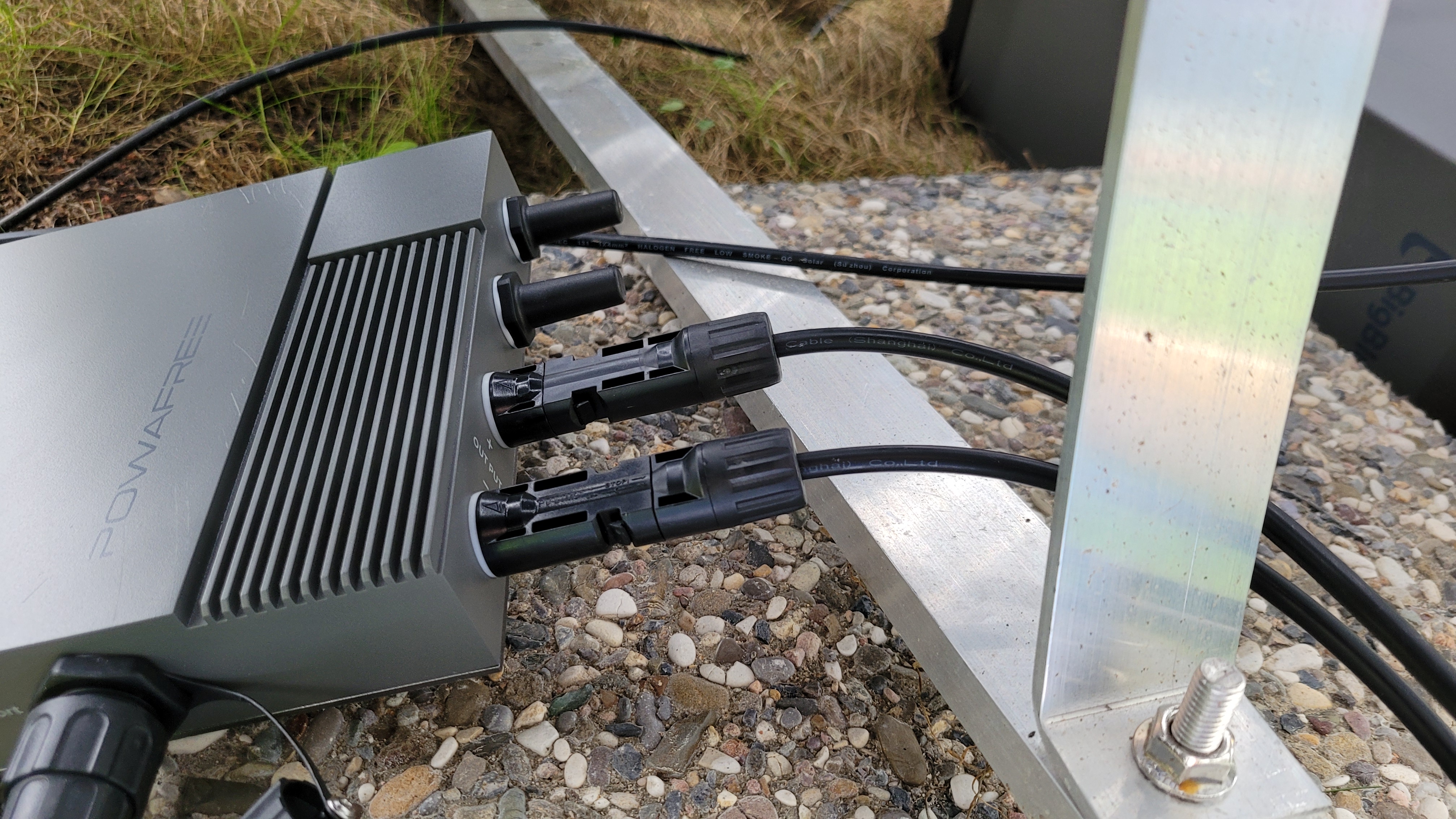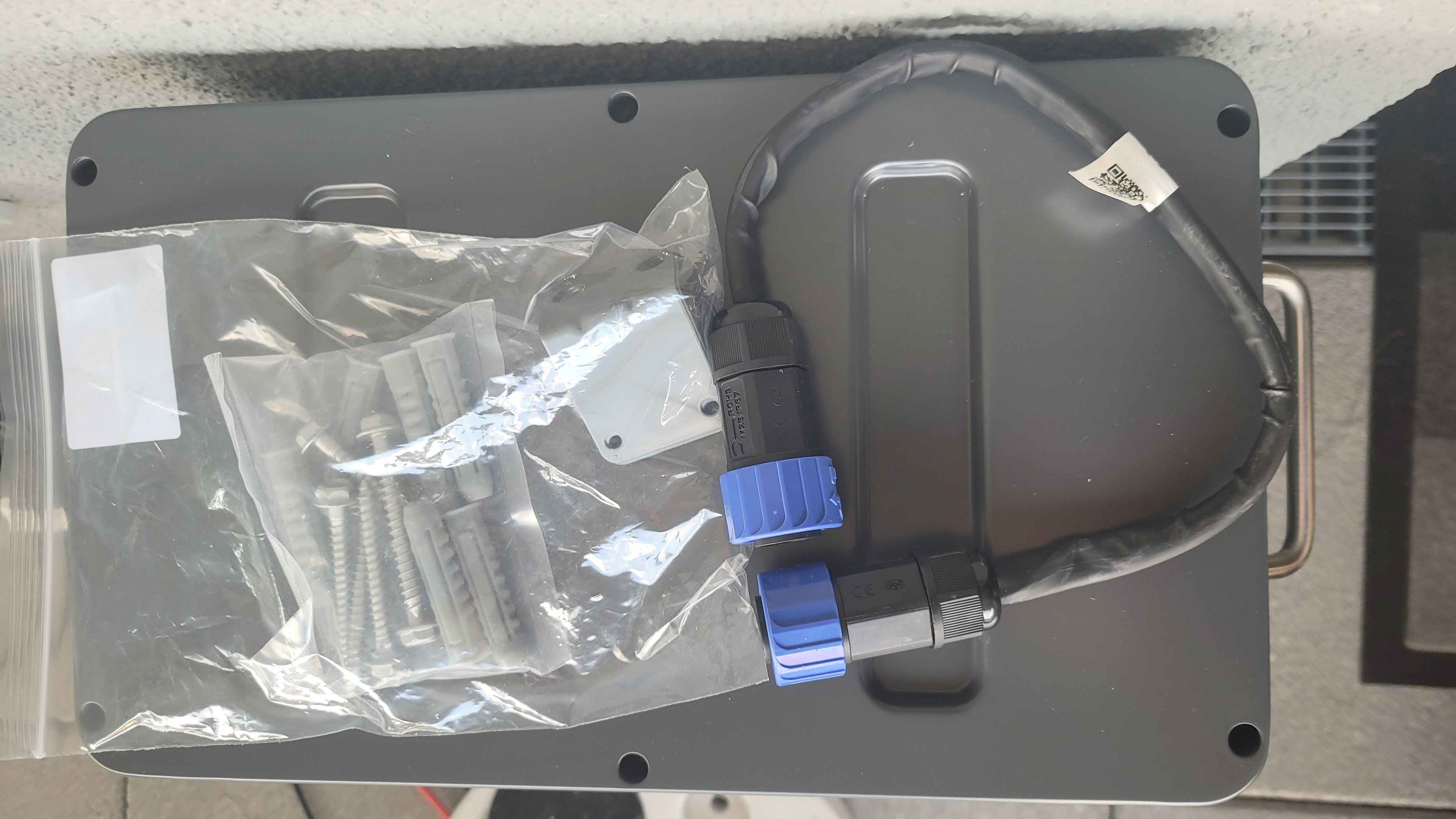 Für den Test hat uns Solakon den One inklusive einer Erweiterungseinheit zur Verfügung gestellt. Der Aufbau ist relativ schnell erledigt, da sich die Einheiten einfach stapeln lassen. Wir schrauben anschließend die externe WLAN-Antenne an den entsprechenden Anschluss und verbinden vier Solarmodule (2x 500 Watt und 2x 420 Watt) mit den vier MPP-Trackern an der Steuerungseinheit und das Schukokabel mit der Steckdose und dem Solakon One. Beim Anschluss des Solarpanels ist darauf zu achten, dass man nicht zwei in Reihe an einen MPP-Tracker verbindet, da dies dazu führt, dass die Eingangsspannung 60 Volt überschreitet und das Gerät beschädigt wird. Wer mehr als vier Module mit dem Solakon One verbinden möchte, benötigt Y-Kabel für einen parallelen Anschluss. Das Vorgehen erläutert auch das deutschsprachige Handbuch.