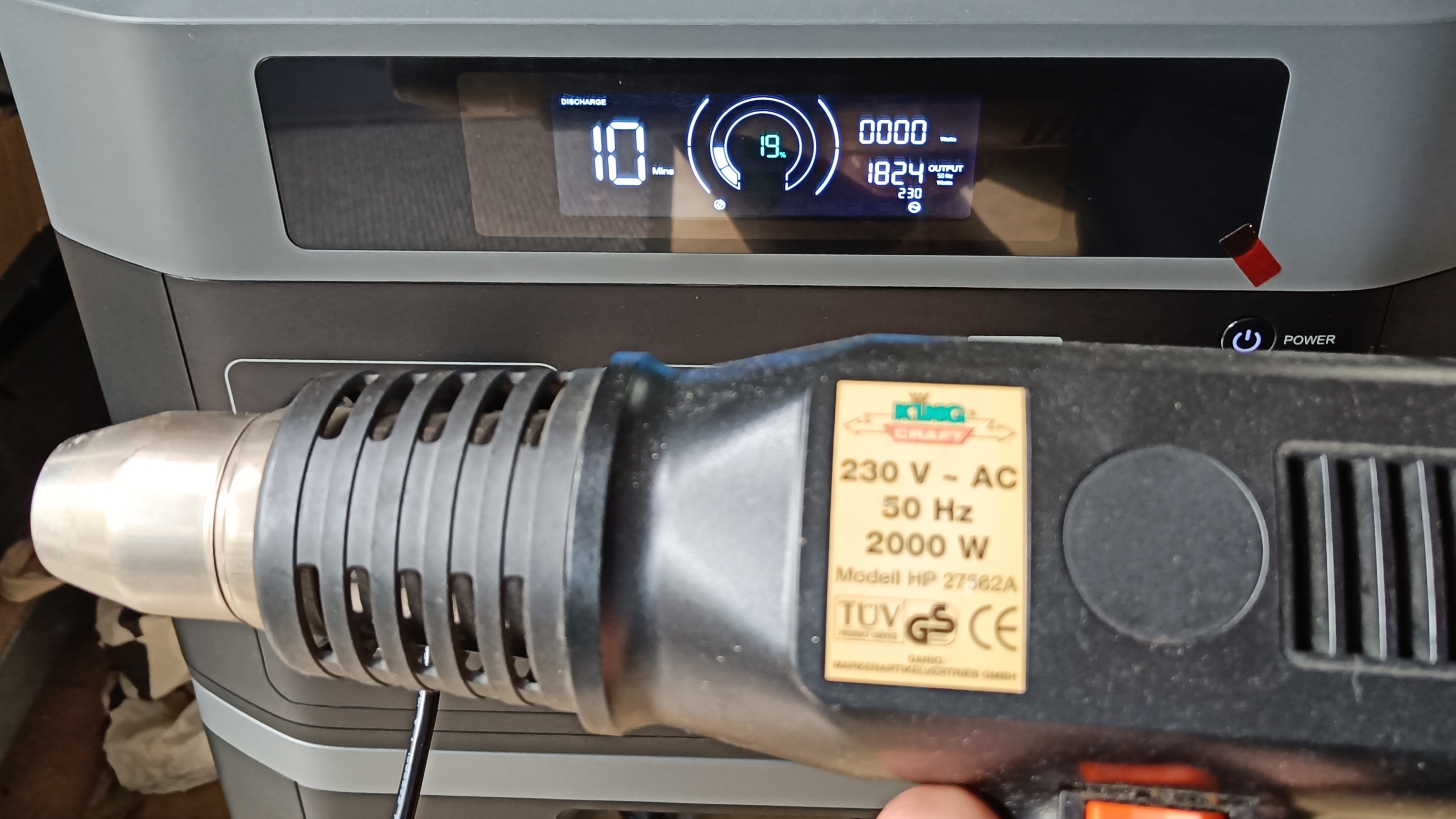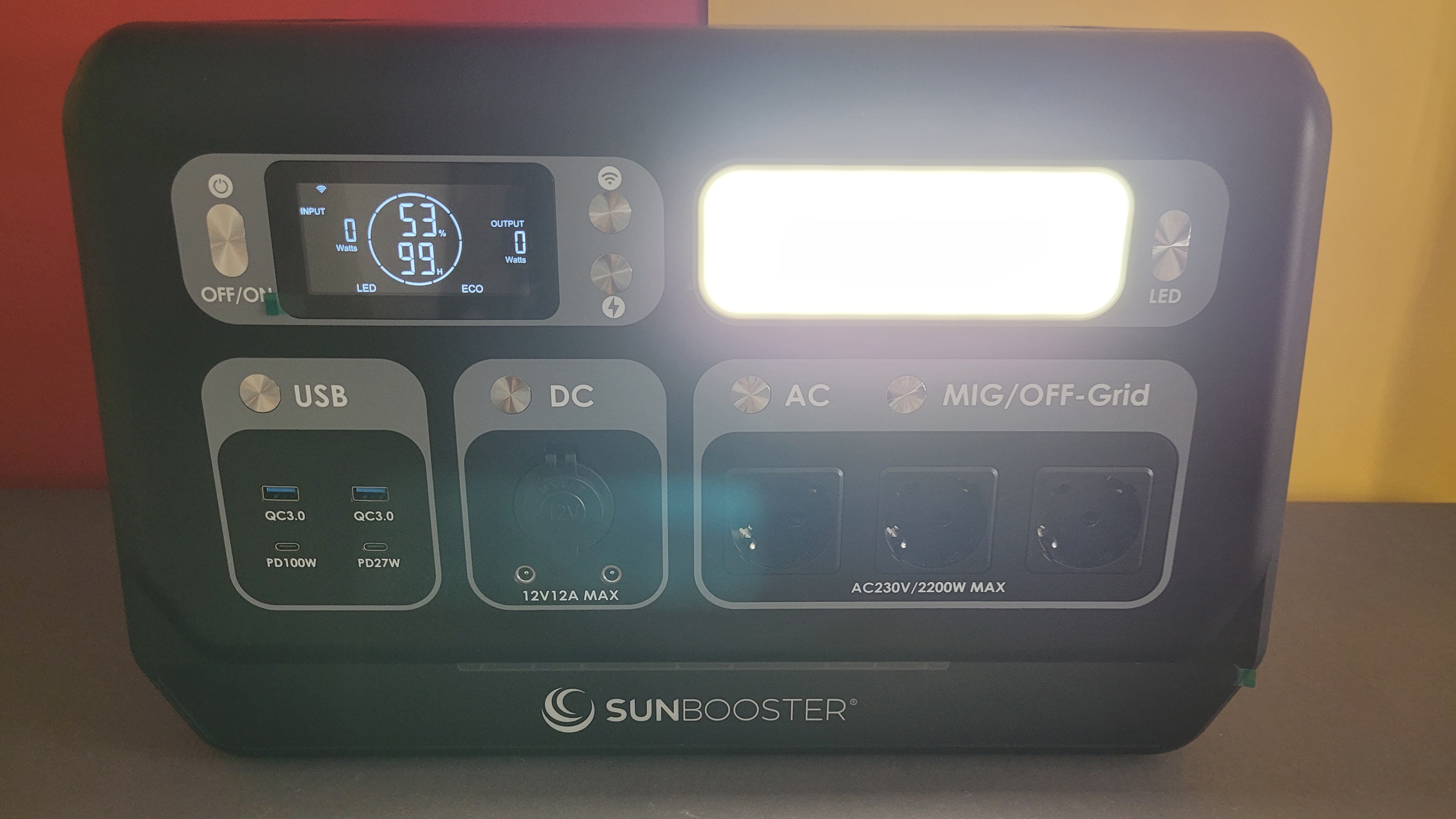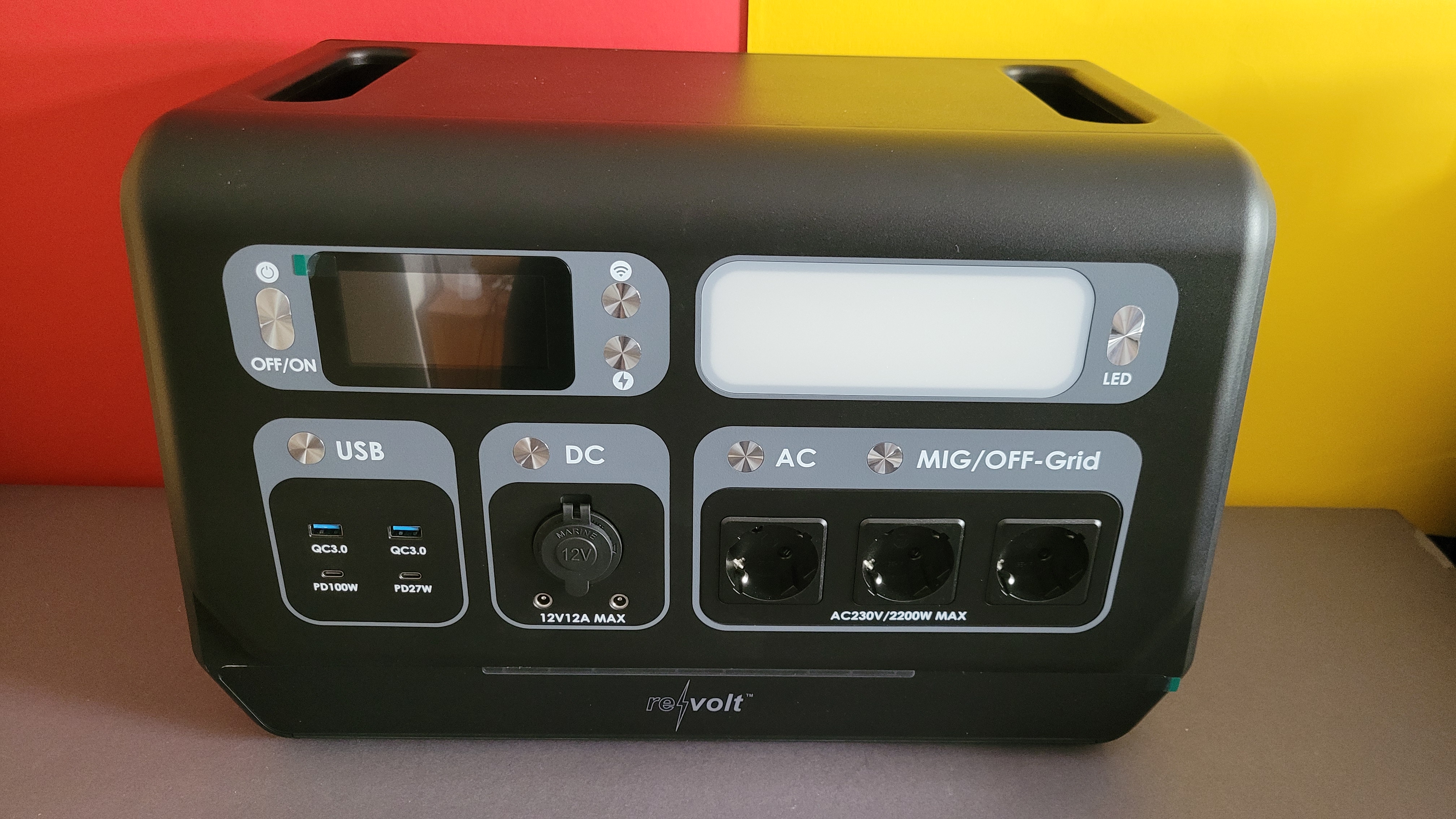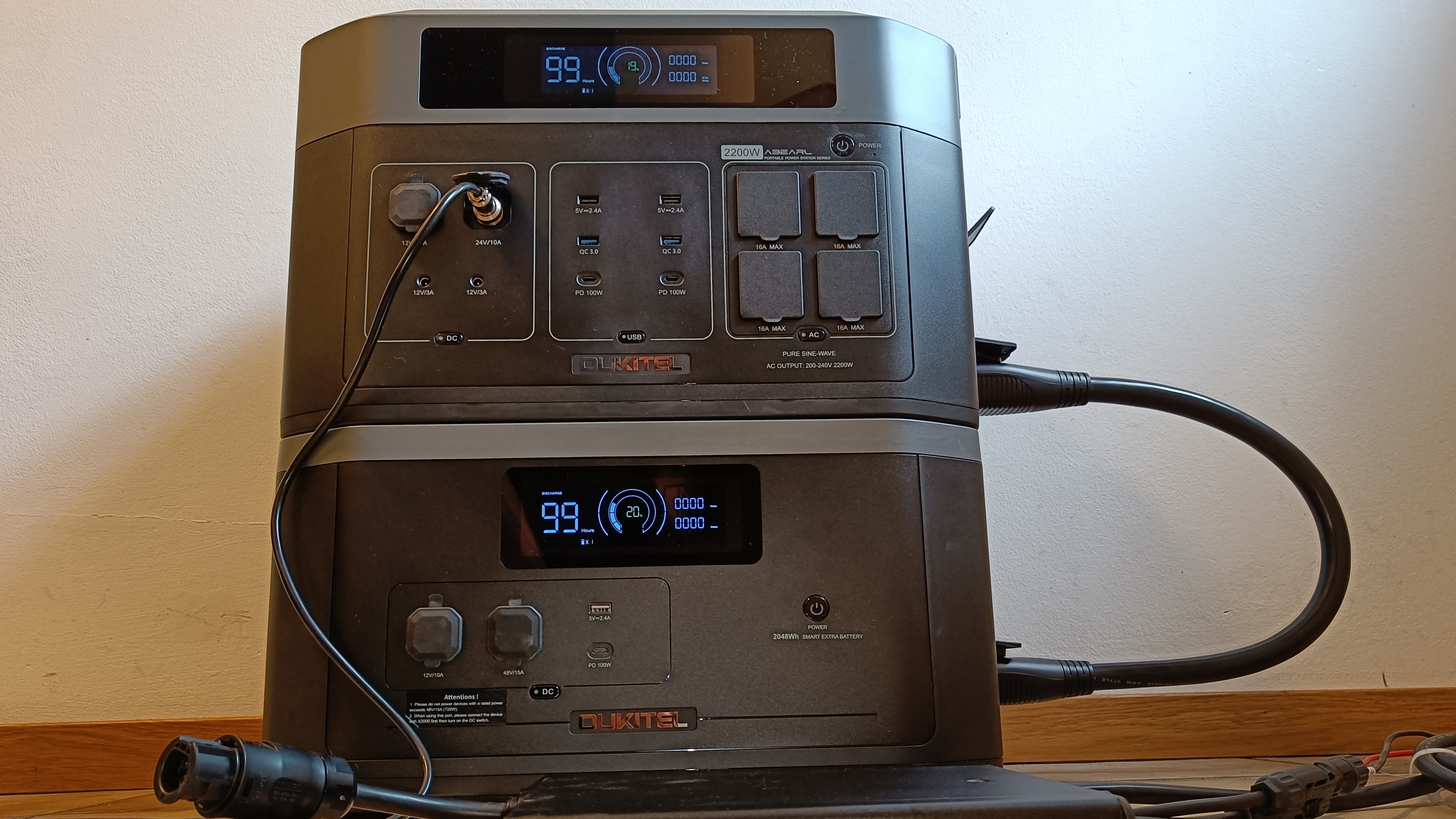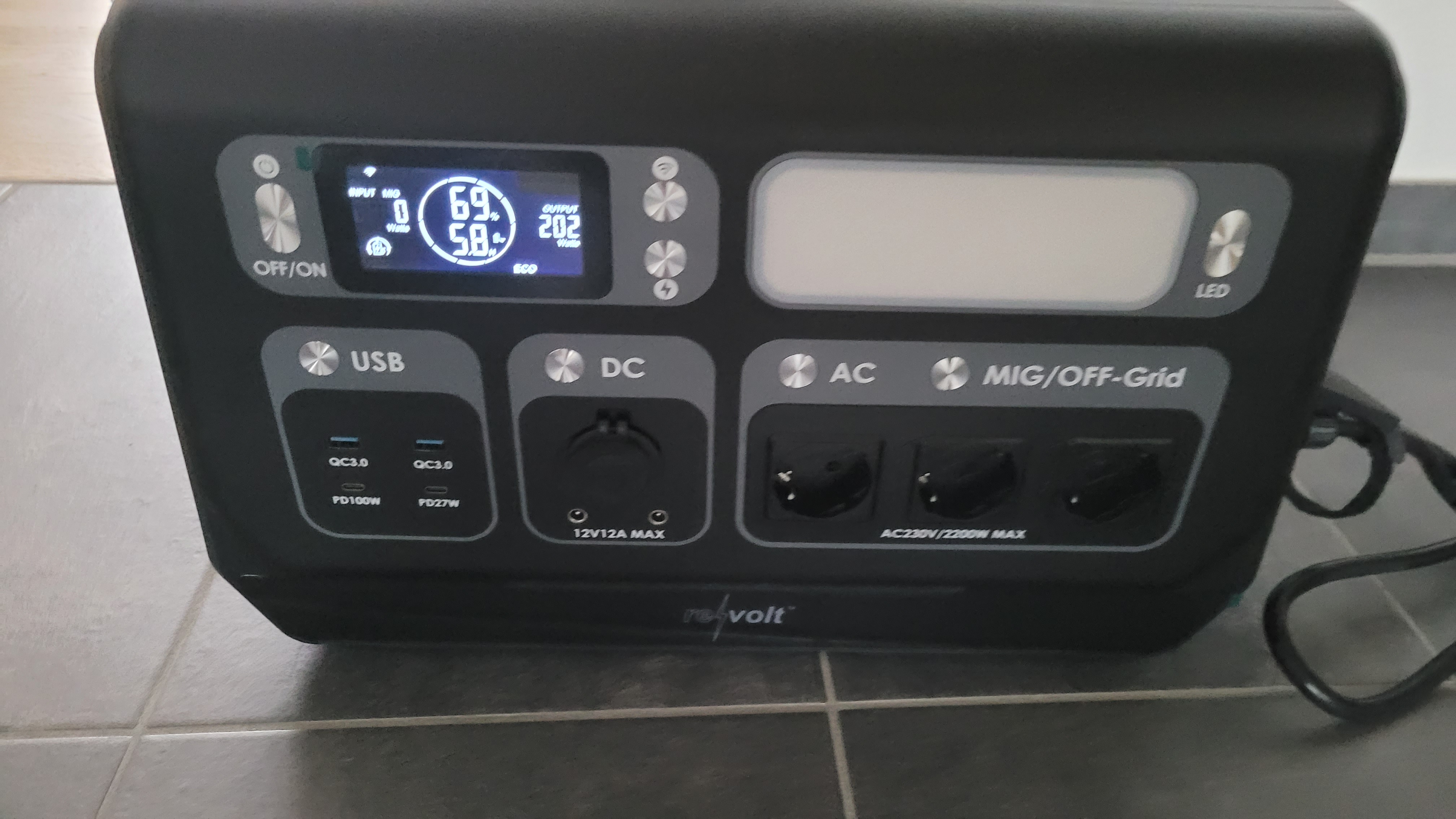 Die Zusatzfunktion des BKW-Speichers ist die Rolle einer Powerstation. Diese kann unterwegs oder etwa bei Stromausfall als mobile Steckdose benutzt zu werden. Die Schukosteckdosen leisten dauerhaft bis zu 2200 Watt, was auch für Verbraucher wie Wasserkocher oder Kaffeemaschine ausreichend ist. Die Kapazität von 2048 Wh ist zwar nicht riesig, reicht aber locker, um etwa die Kühlbox übers Wochenende zu versorgen oder das E-Bike zu laden.