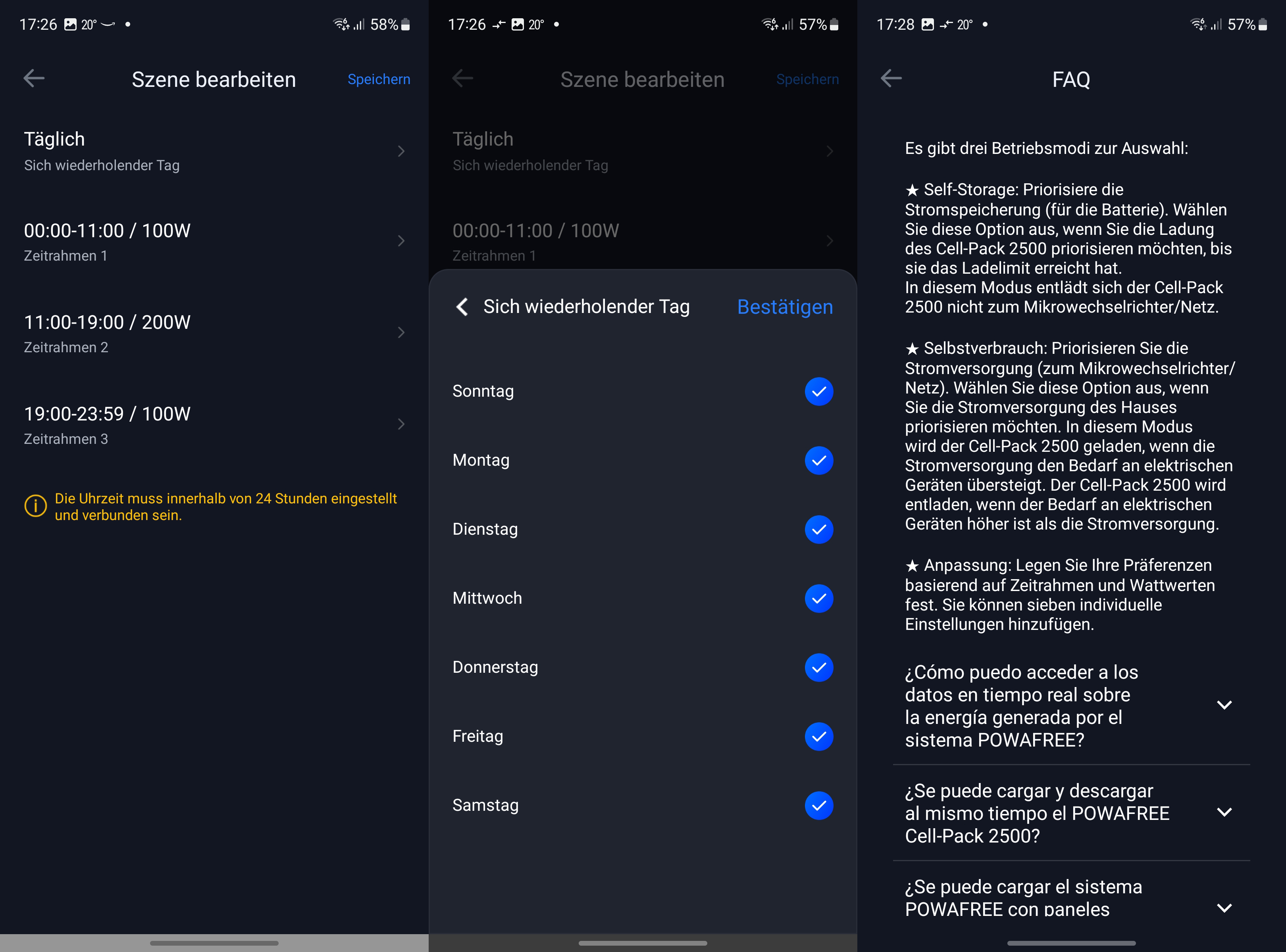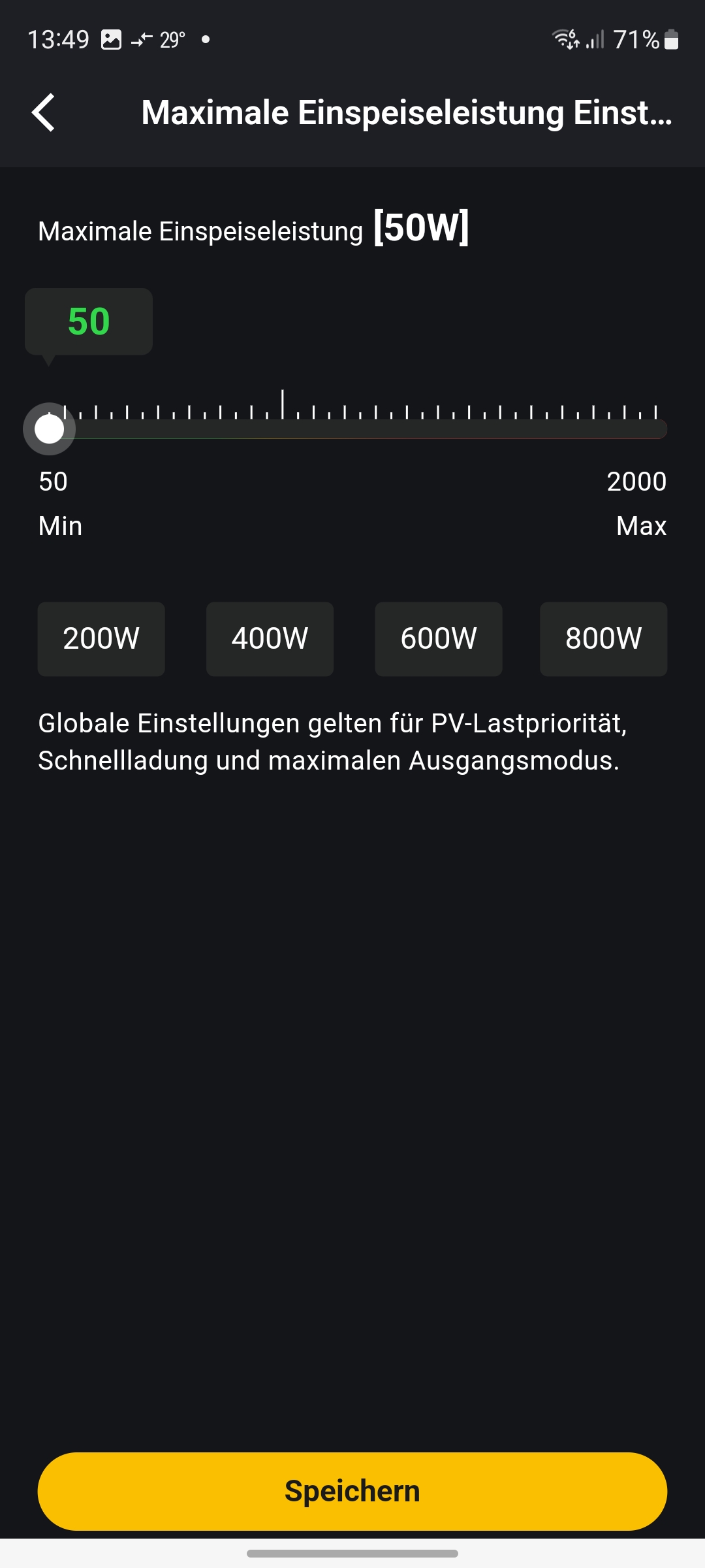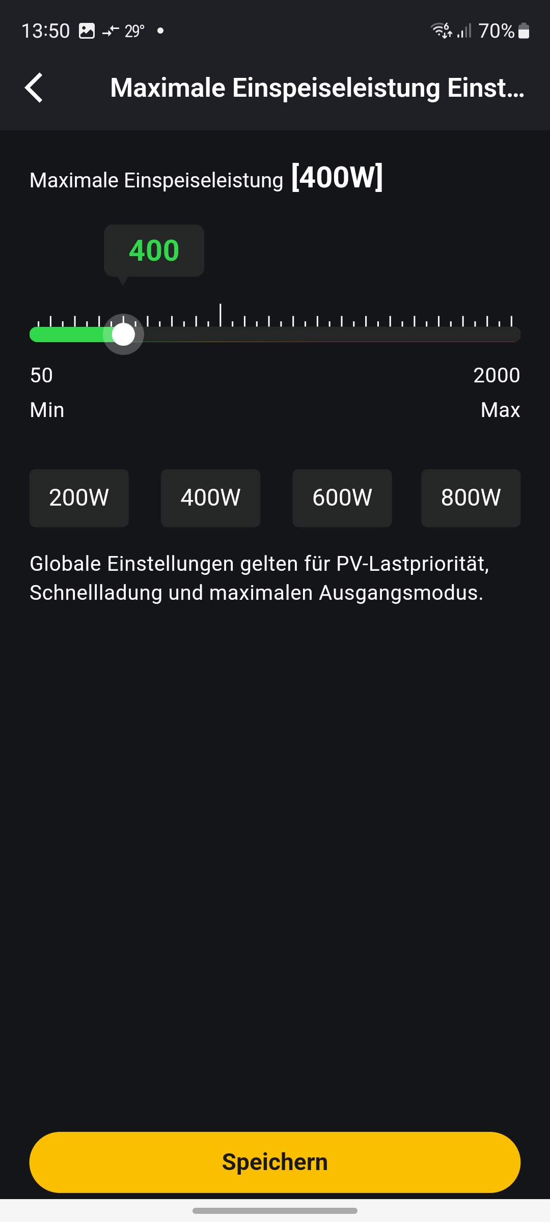 Derzeit gibt es noch einen Fehler in der Solakon-App, der beim Wechsel der Einspeisemöglichkeiten Smart Meter und Energieplan auftritt. Die zuvor eingestellten Werte für den Energieplan muss man leider neu eingeben, da sie nicht abgespeichert werden. Solakon kennt den Fehler und arbeitet bereits an einer Lösung.