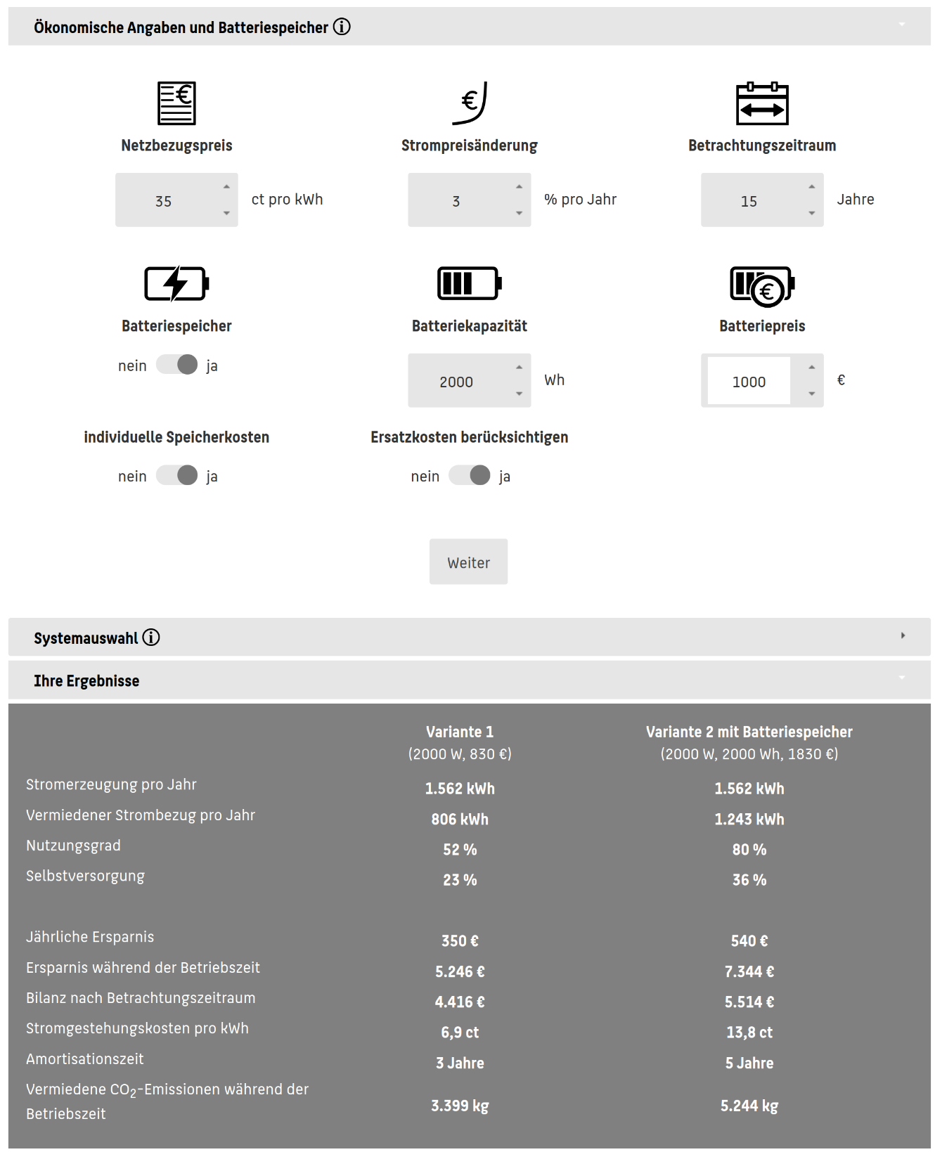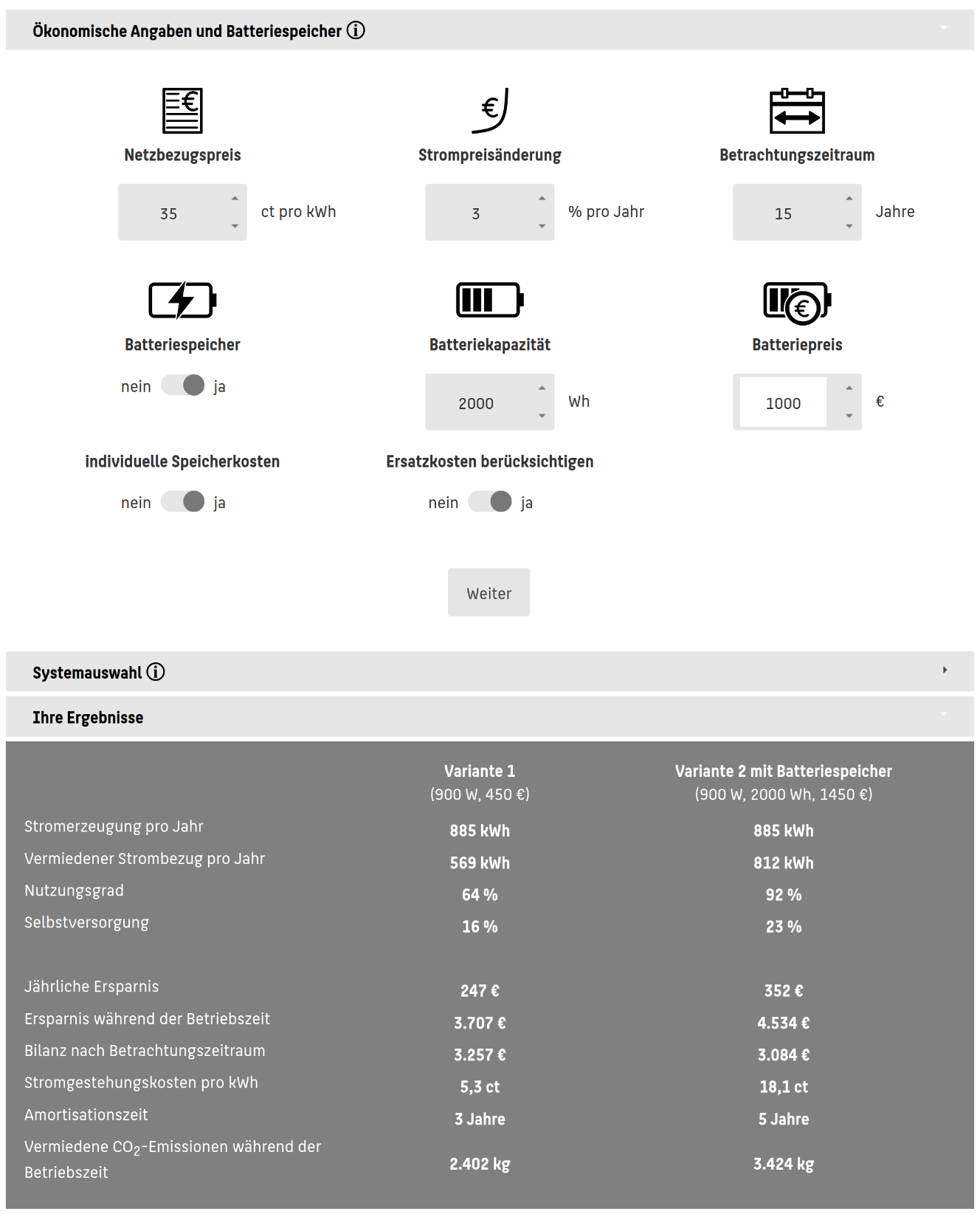 Wie schnell sich ein Balkonkraftwerk respektive Stromspeicher rechnet, ist von verschiedenen Faktoren wie Aufstellort, Verschattung, Strompreis und Strombedarf abhängig. Mit dem Stecker-Solar-Simulator der HTW Berlin können Anwender anhand dieser Daten ermitteln, wie schnell sich ein Balkonkraftwerk respektive Stromspeicher bezahlt macht.