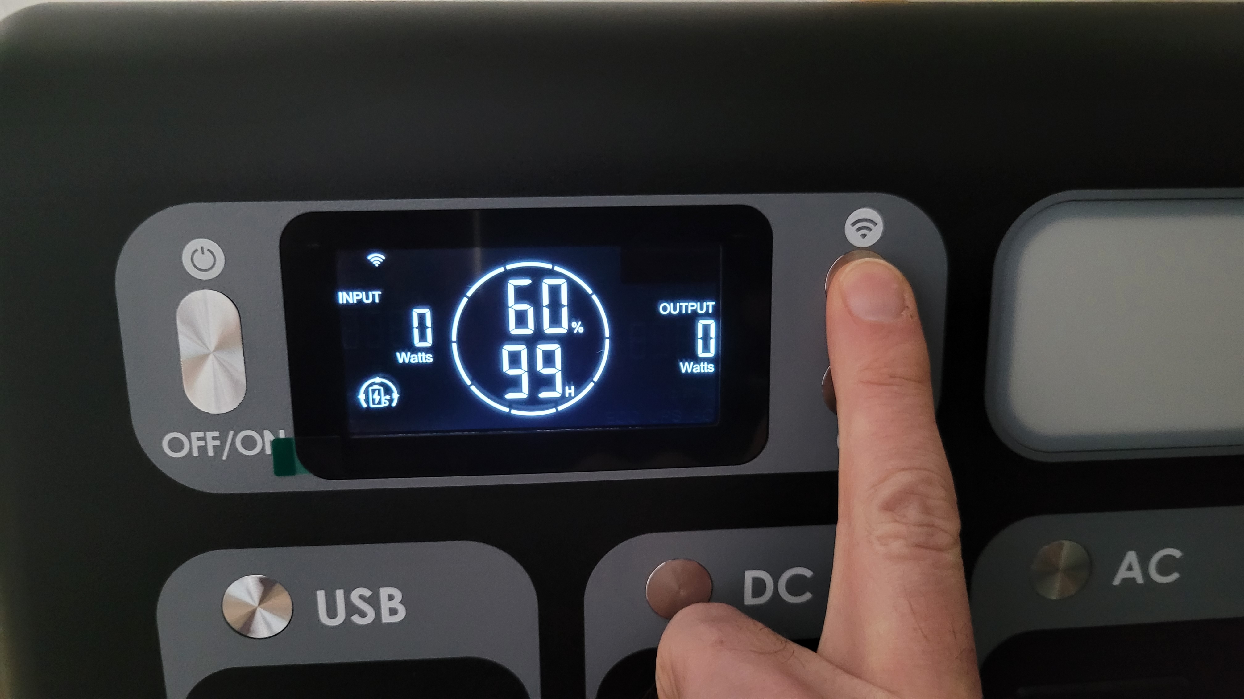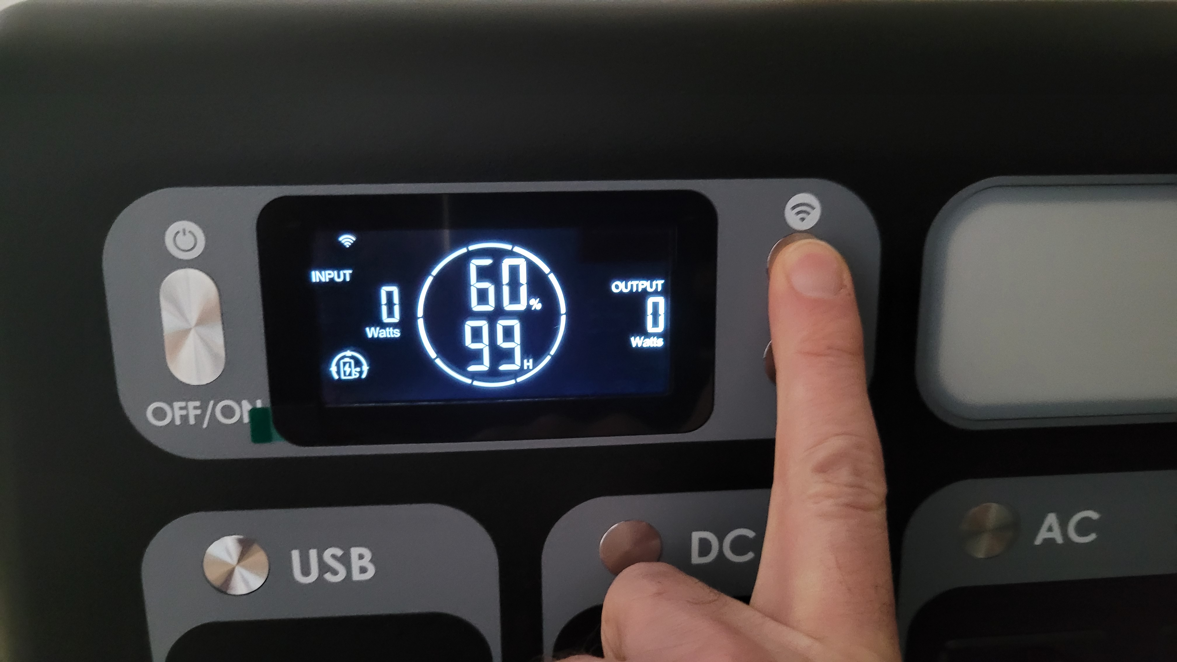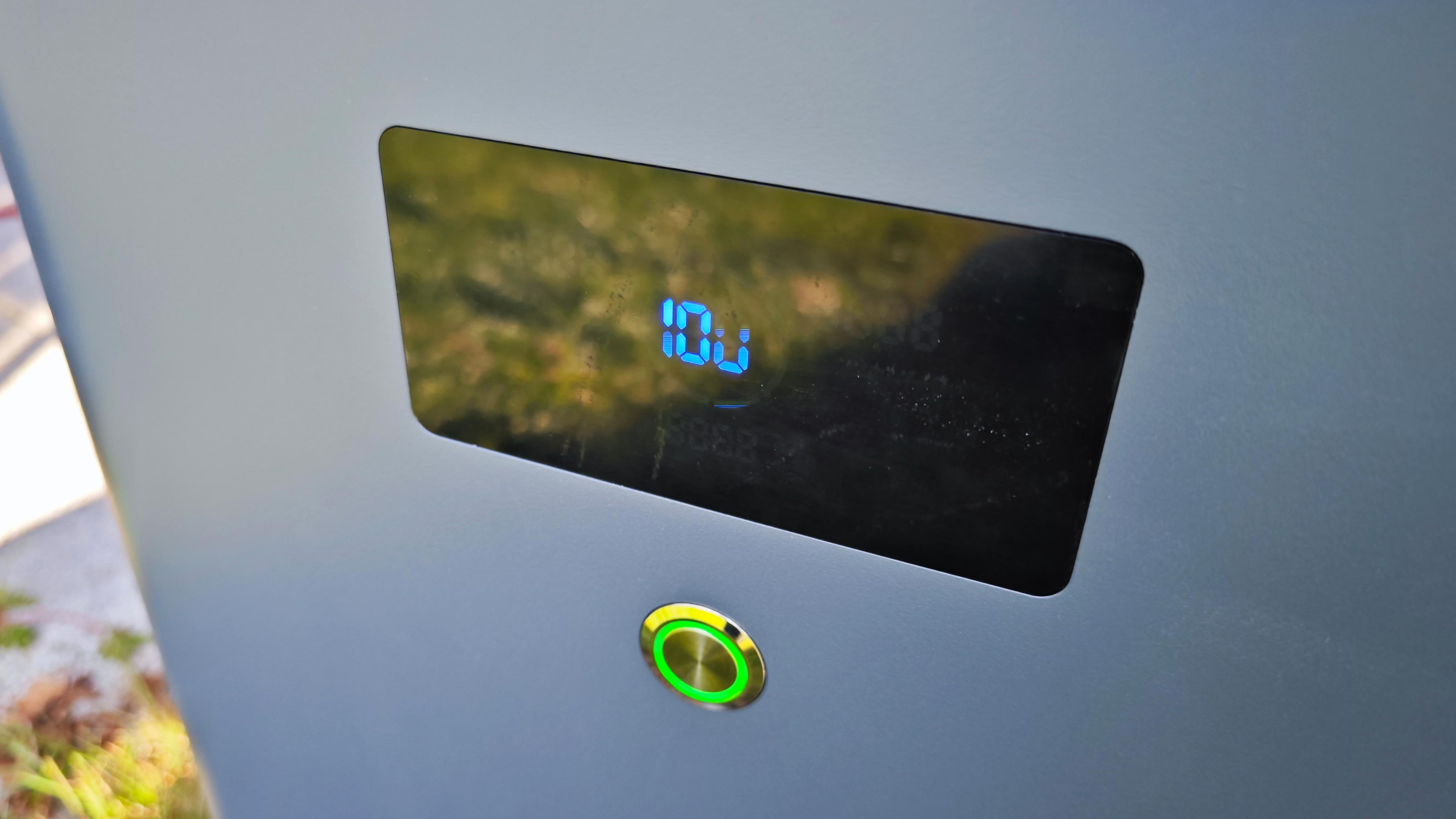 Liegt genügend Spannung durch die PV-Module an, startet das Gerät automatisch. Relevante Betriebsdaten lassen sich am kleinen Display an der Oberseite ablesen. Dazu zählen Gesamtsolarleistung sowie die Eingangsleistung der einzelnen MPPT-Eingänge in Watt, Ladeleistung, Spannung und Strom der Batterie, Leistung des Wechselrichters, sowie Spannung und Strom, Firmwareversion von Wechselrichter, Batteriemanagementsystem und PV-Eingang und Ladestatus des Speichers in Prozent. Um zwischen den einzelnen Anzeigen zu wechseln, drückt man links neben dem Display auf den Schalter mit zwei gekrümmten Pfeilen. Drückt man diesen für 20 Sekunden, wird WLAN und Bluetooth zurückgesetzt. Links befindet sich die Powertaste, mit der man Solakon One sowie die Notstromsteckdose ein- und ausschaltet. Anders als beim Marstek Jupiter C Plus können Anwender über das Display allerdings keine Einspeisepläne anlegen. Dafür wird die Solakon-App benötigt.