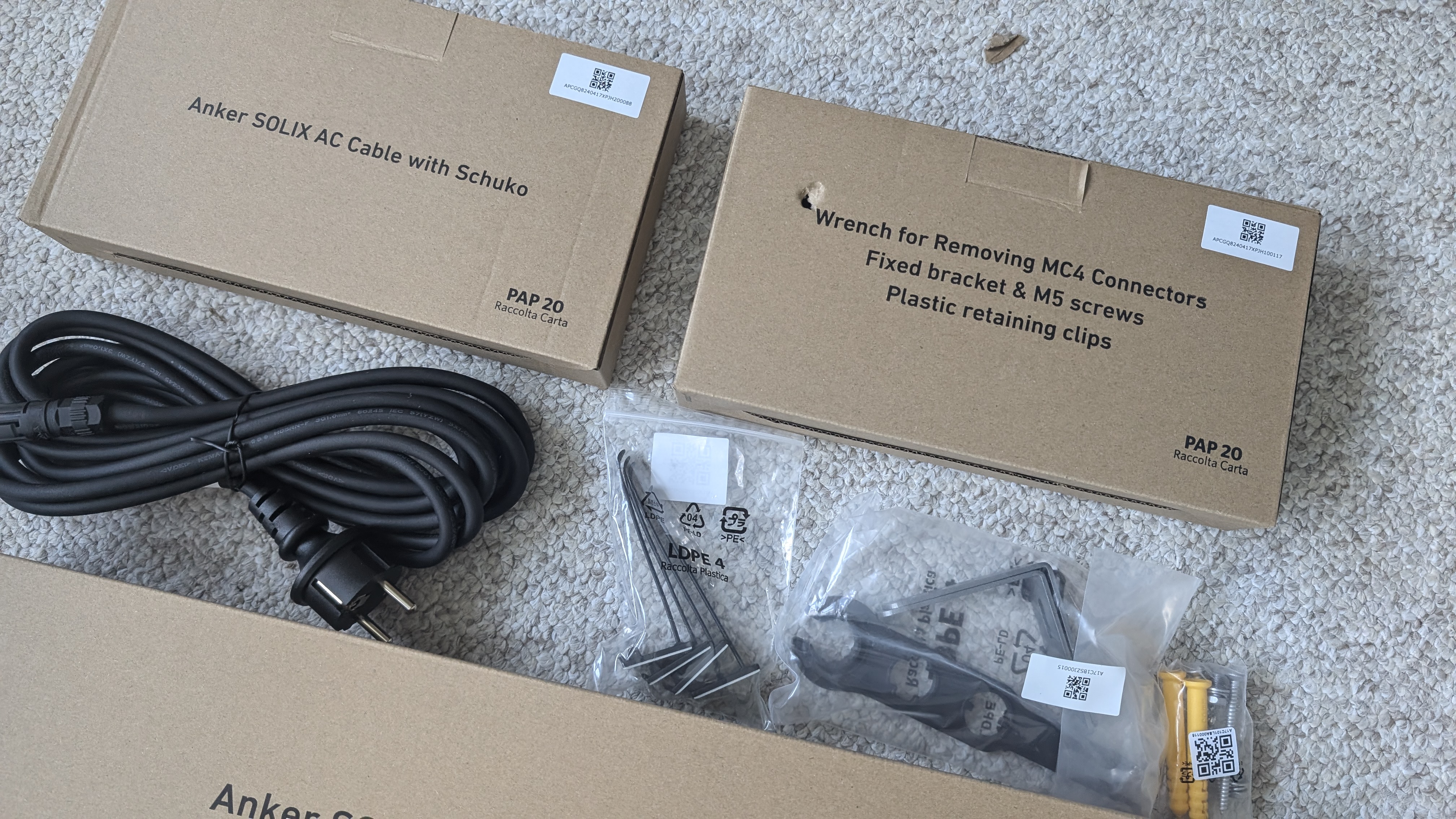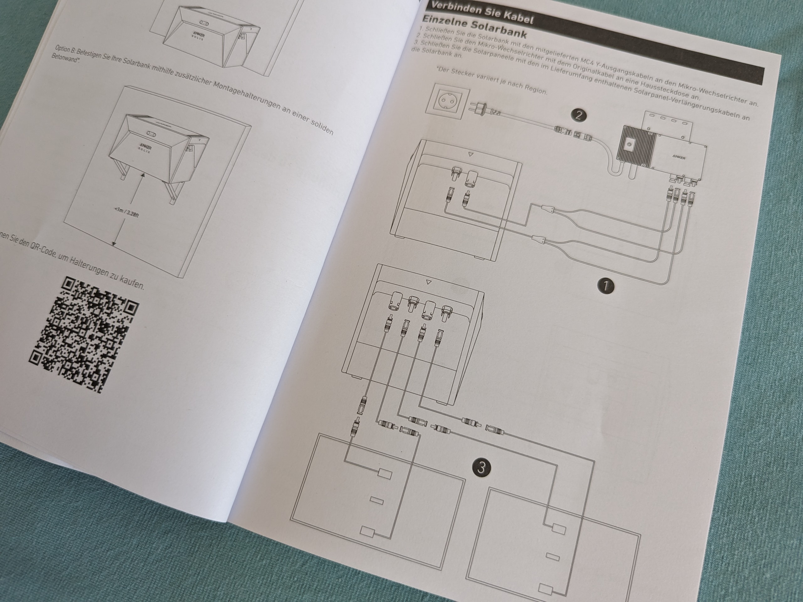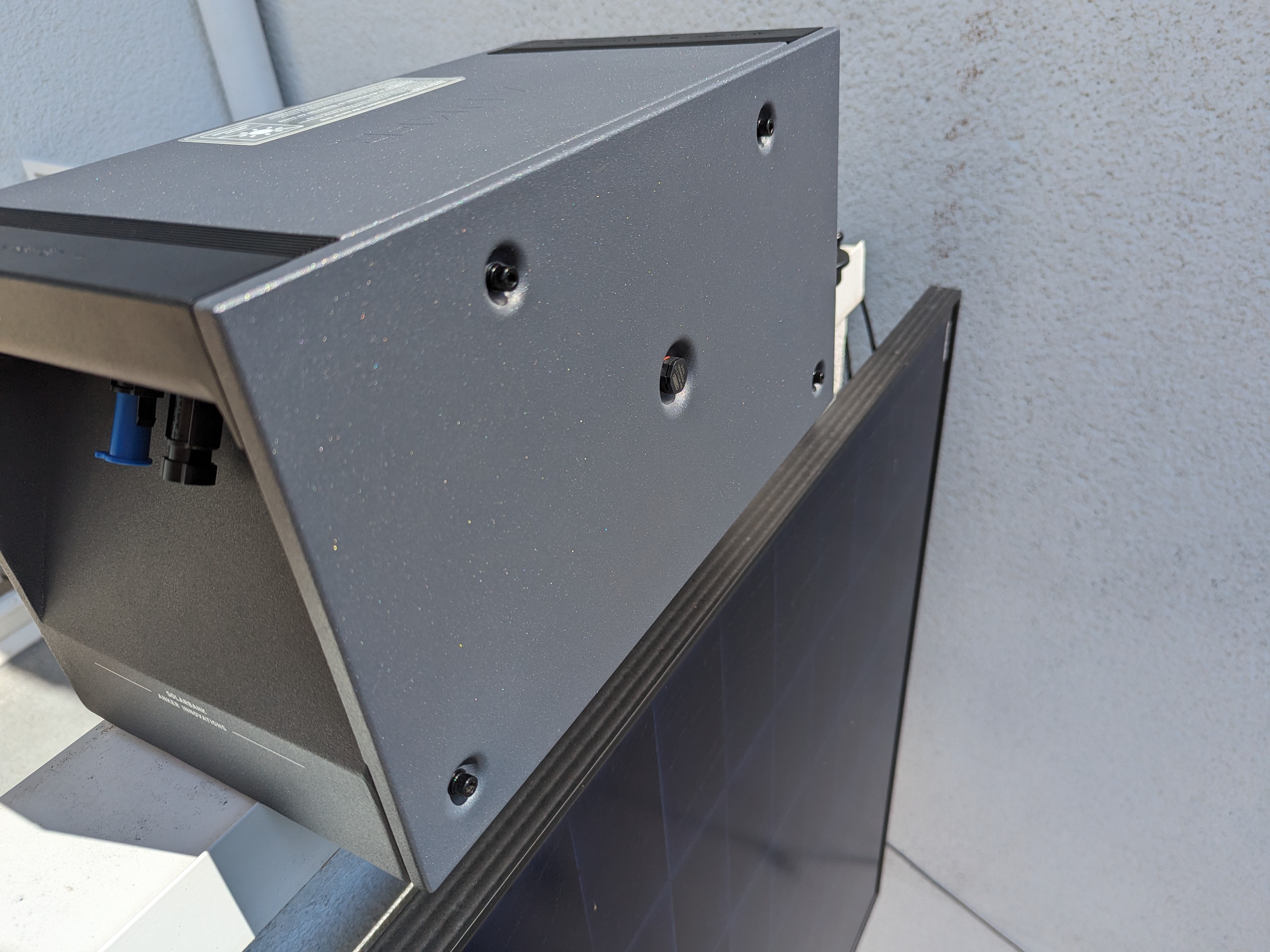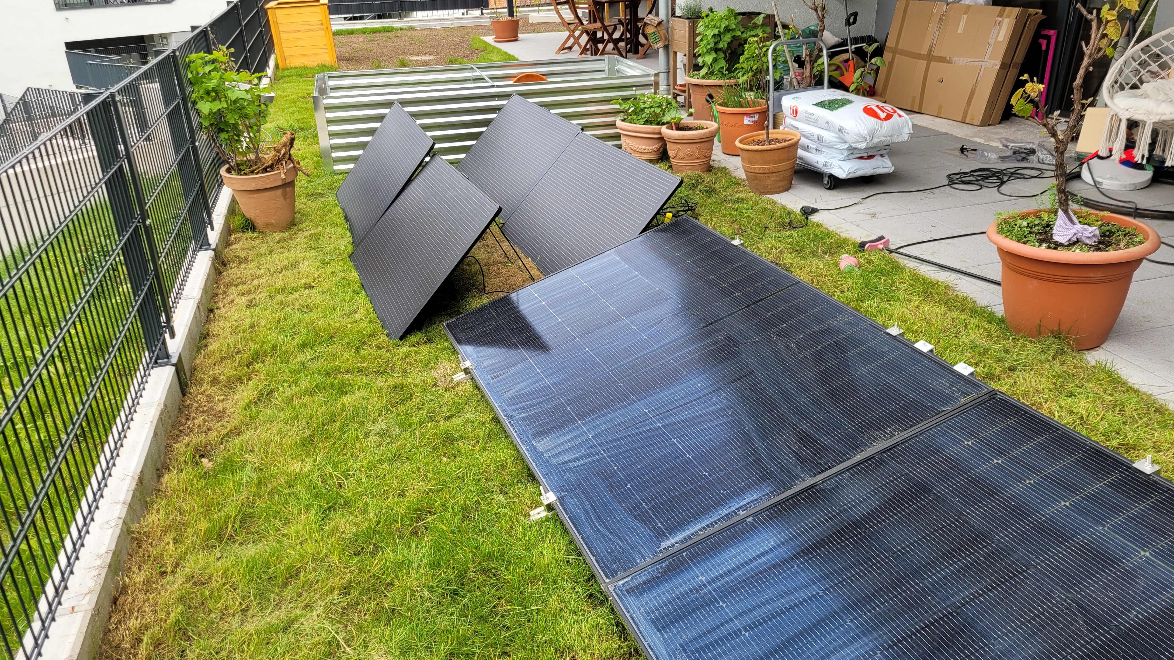 Zwar handelt es sich theoretisch um ein Plug&Play-Set, allerdings sind keine Haltung oder Aufständerung für die Solarmodule beigepackt. Wer die Solarmodule nicht einfach an die Hauswand lehnen oder auf den Boden legen will, muss diese zusätzlich kaufen. Gewinkelte Aufständerungen für Flachdach und Garten kosten ab etwa 30 Euro je Panel. Soll die Anlage vernünftig aufgestellt werden, benötigt man mindestens noch MC4-Verlängerungskabel und zwei MC4-Fensterdurchführungen.