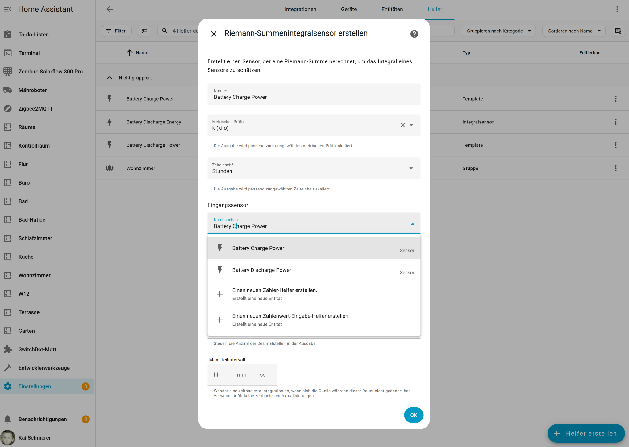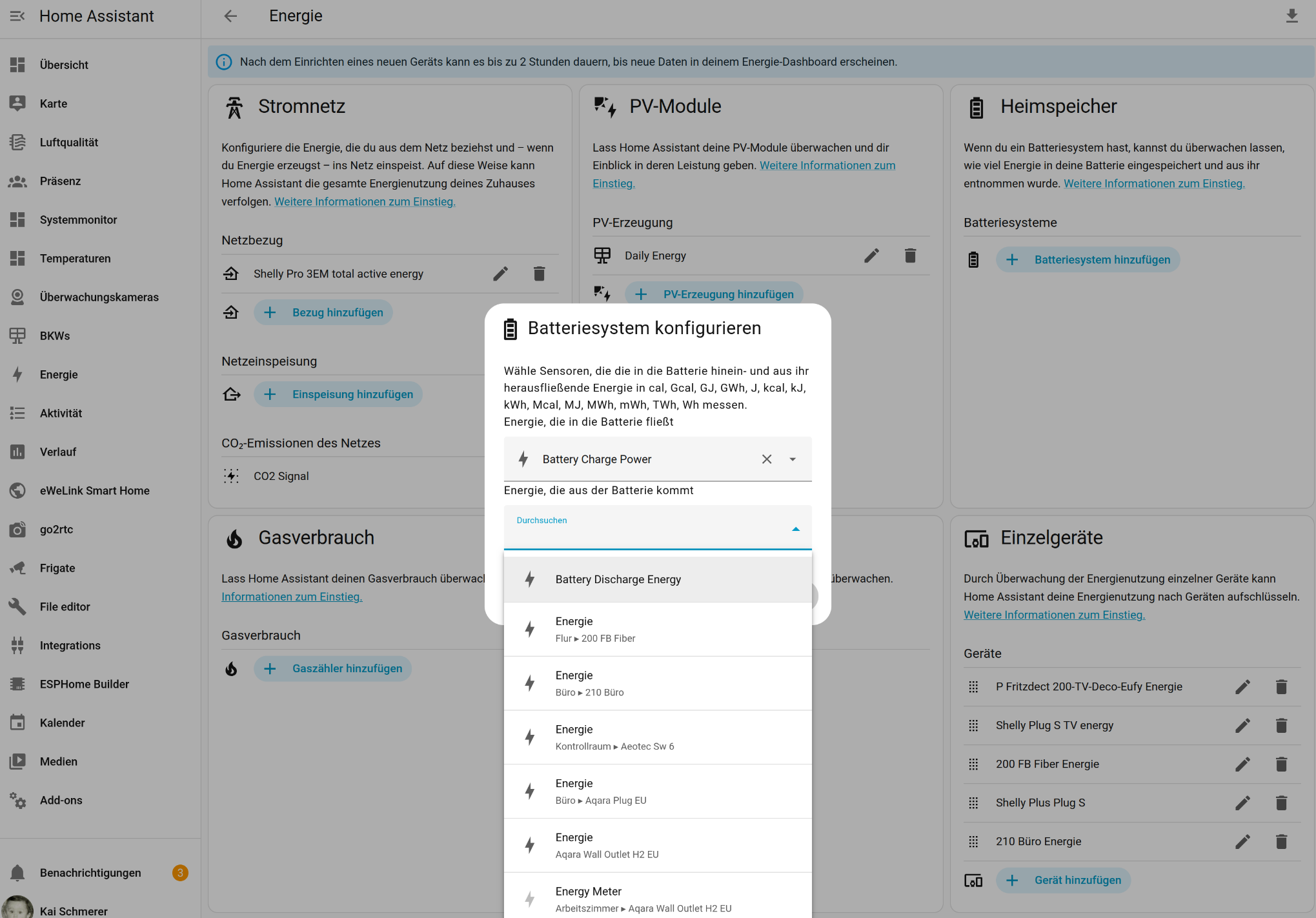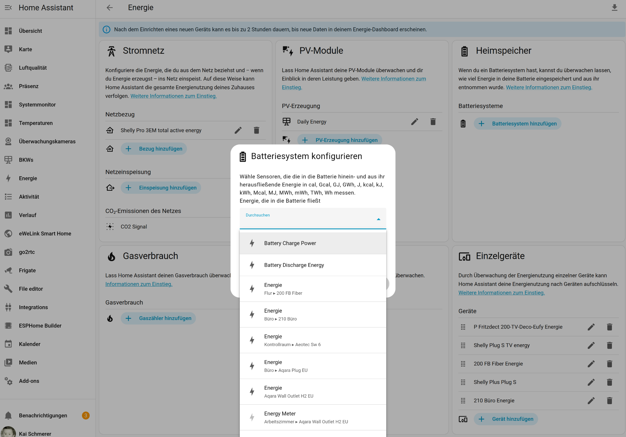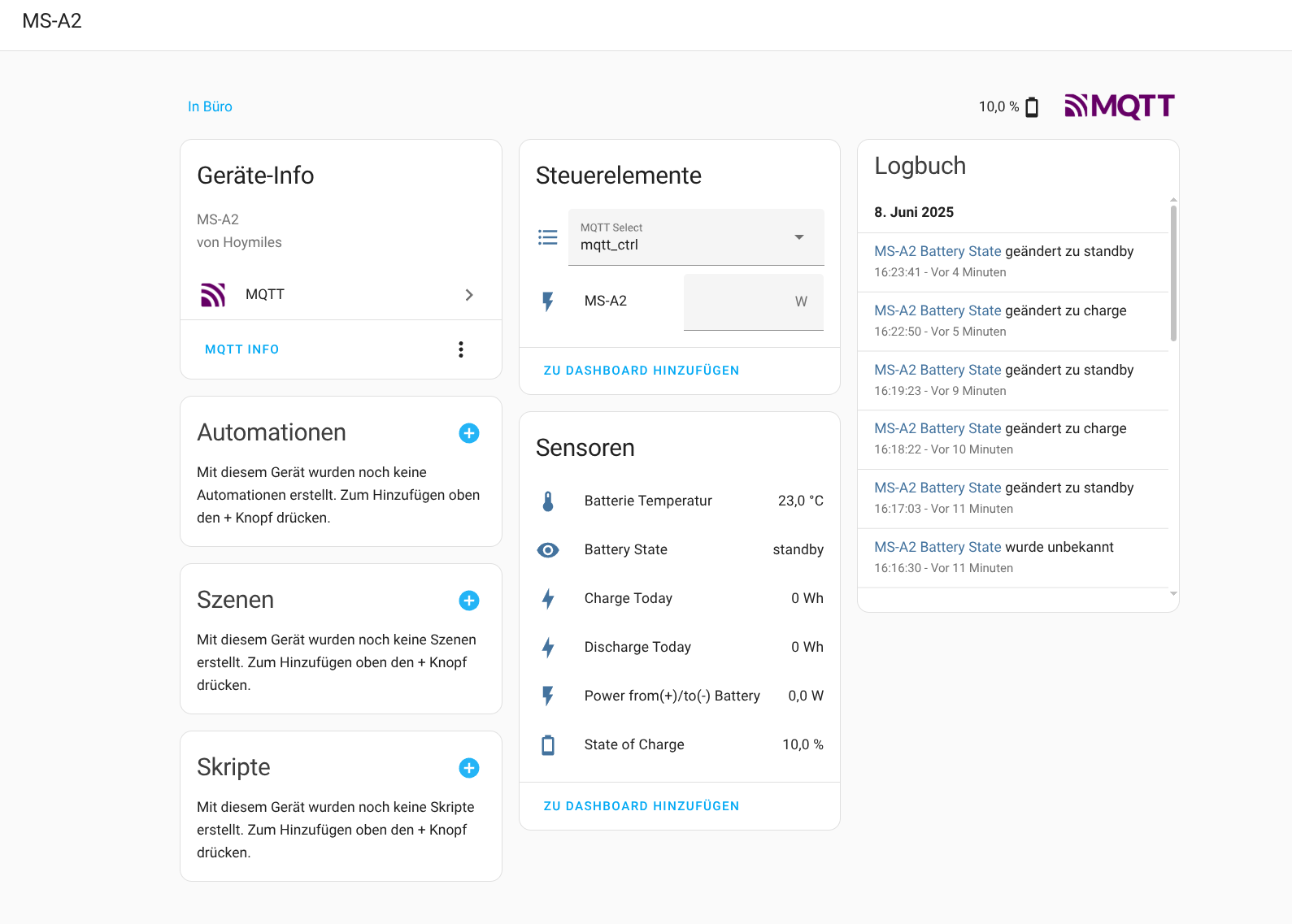 Update 23.10.2025: Nun erlaubt die Integration auch die Steuerung des Speichers. Auch ist eine Einbindung ins Energy Dashbord möglich. Dafür muss man allerdings einige Hilfssensoren manuell anlegen (siehe Bildergalerie Energy Dashboard und Helfer).