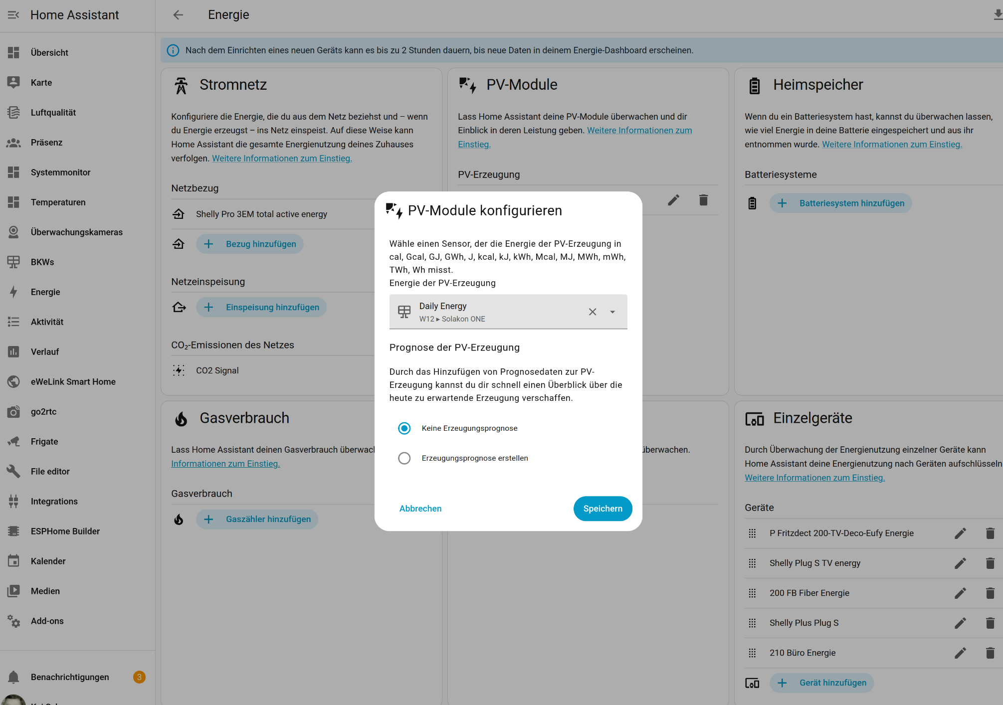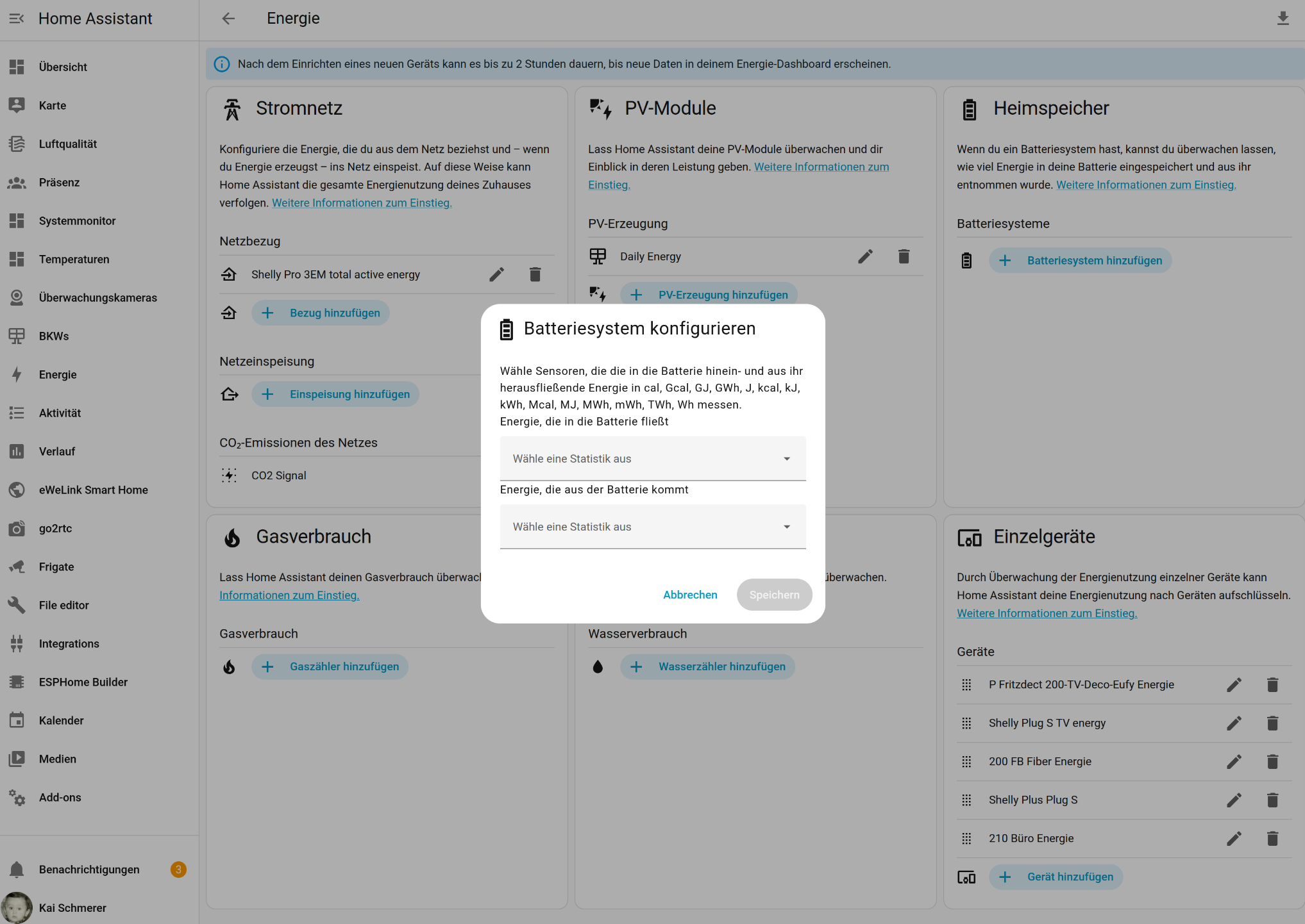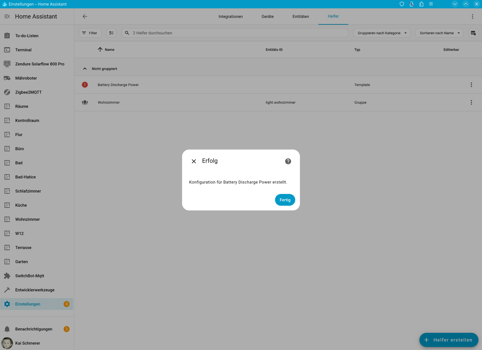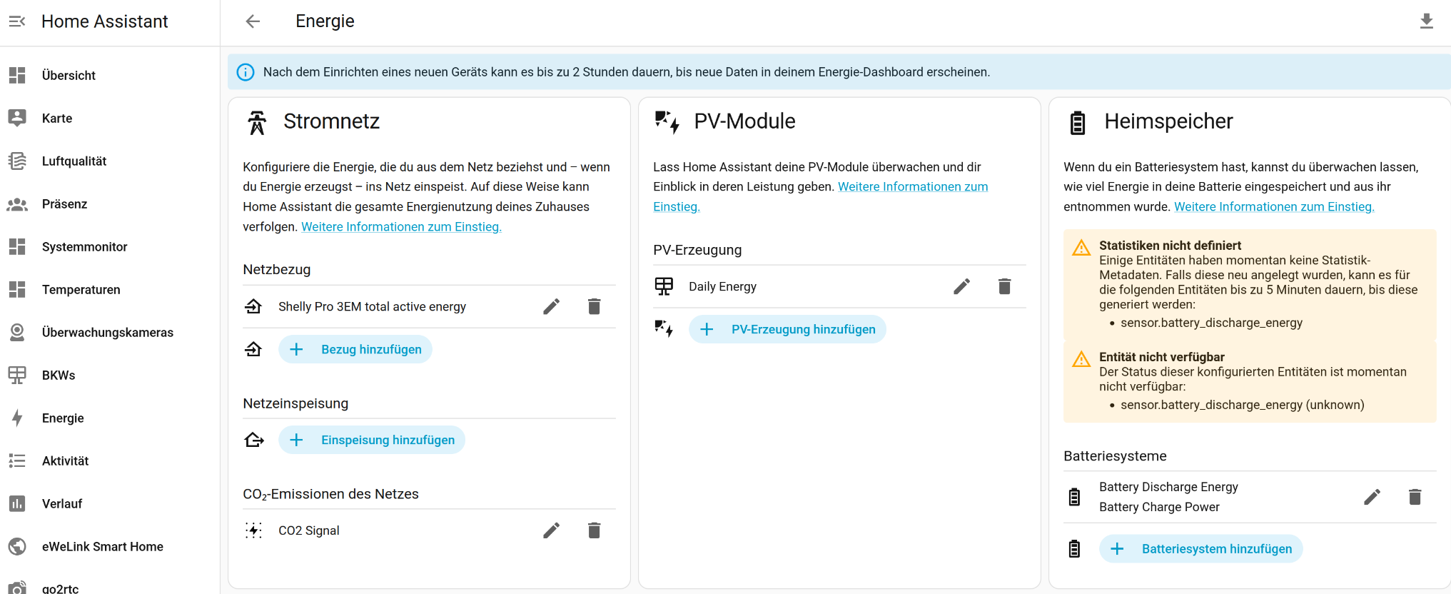 Update 23.10.2025: Nun erlaubt die Integration auch die Steuerung des Speichers. Auch ist eine Einbindung ins Energy Dashbord möglich. Dafür muss man allerdings einige Hilfssensoren manuell anlegen (siehe Bildergalerie Energy Dashboard und Helfer).