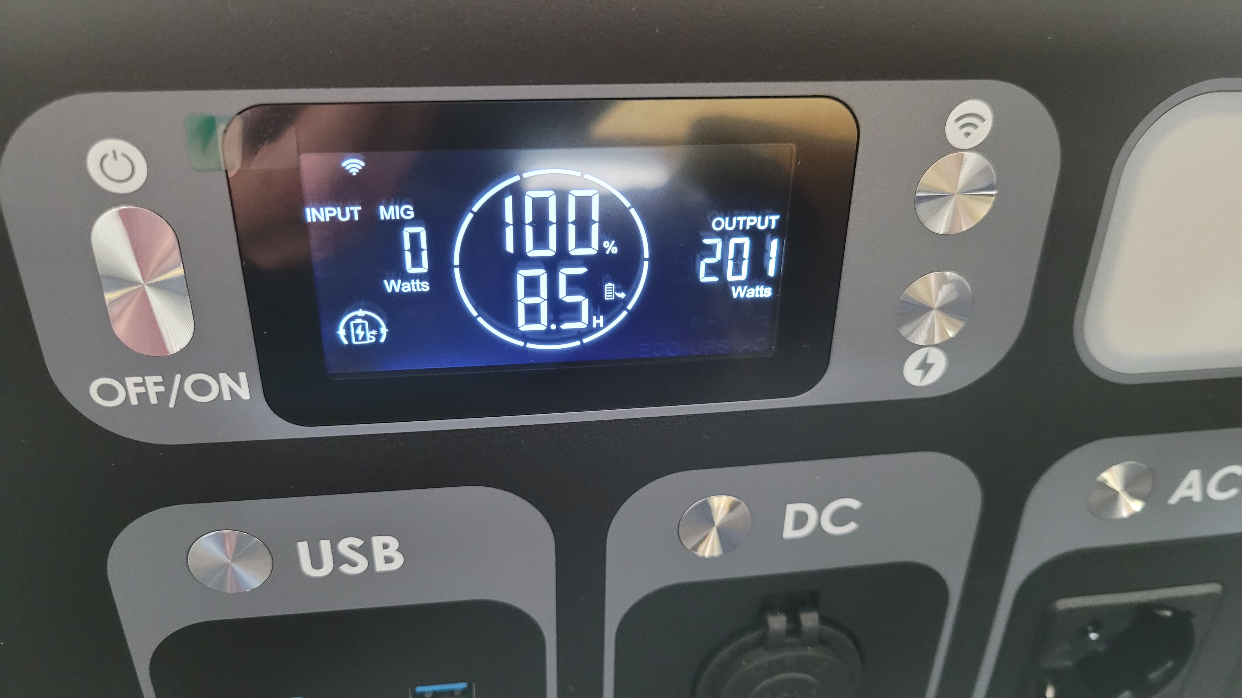 Sowohl das Aufladen am Stromnetz als auch die Einspeisung ins Stromnetz erfolgt bei der Powerstation über ein klassisches Schukokabel, welches mit der Steckdose verbunden ist. Im Stand-by-Betrieb genehmigte sich die Powerstation von Mentech im Test rund 10 Watt aus. Laut Hersteller sollte der Verbrauch mittelfristig auf etwa 5 Watt sinken.