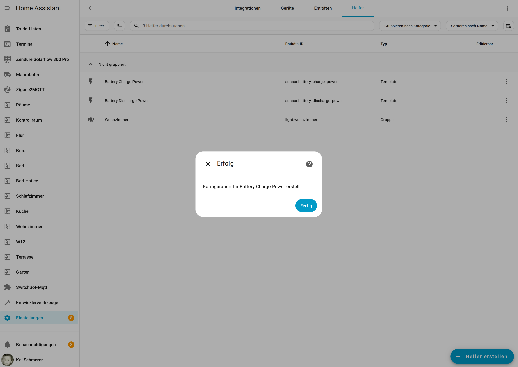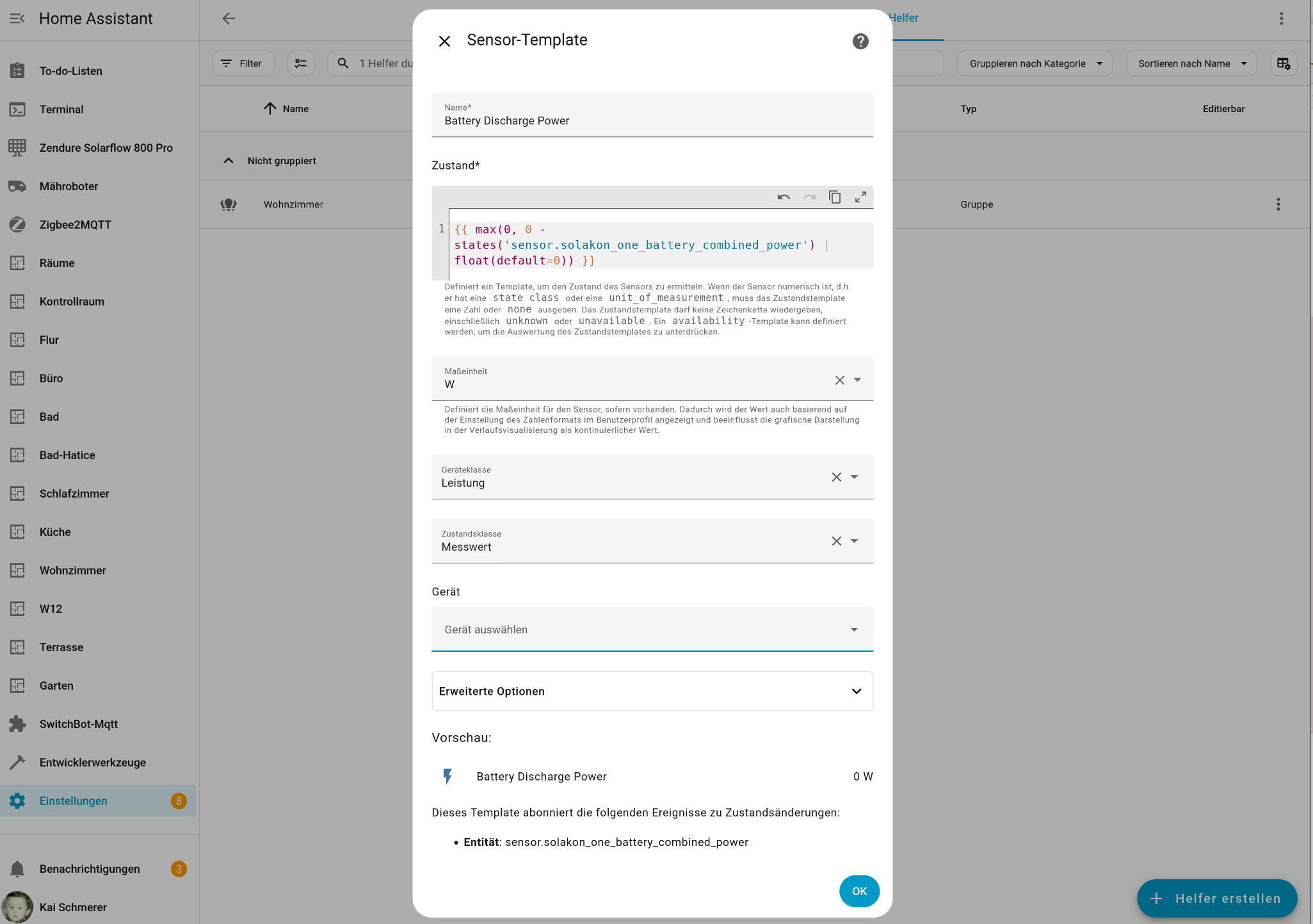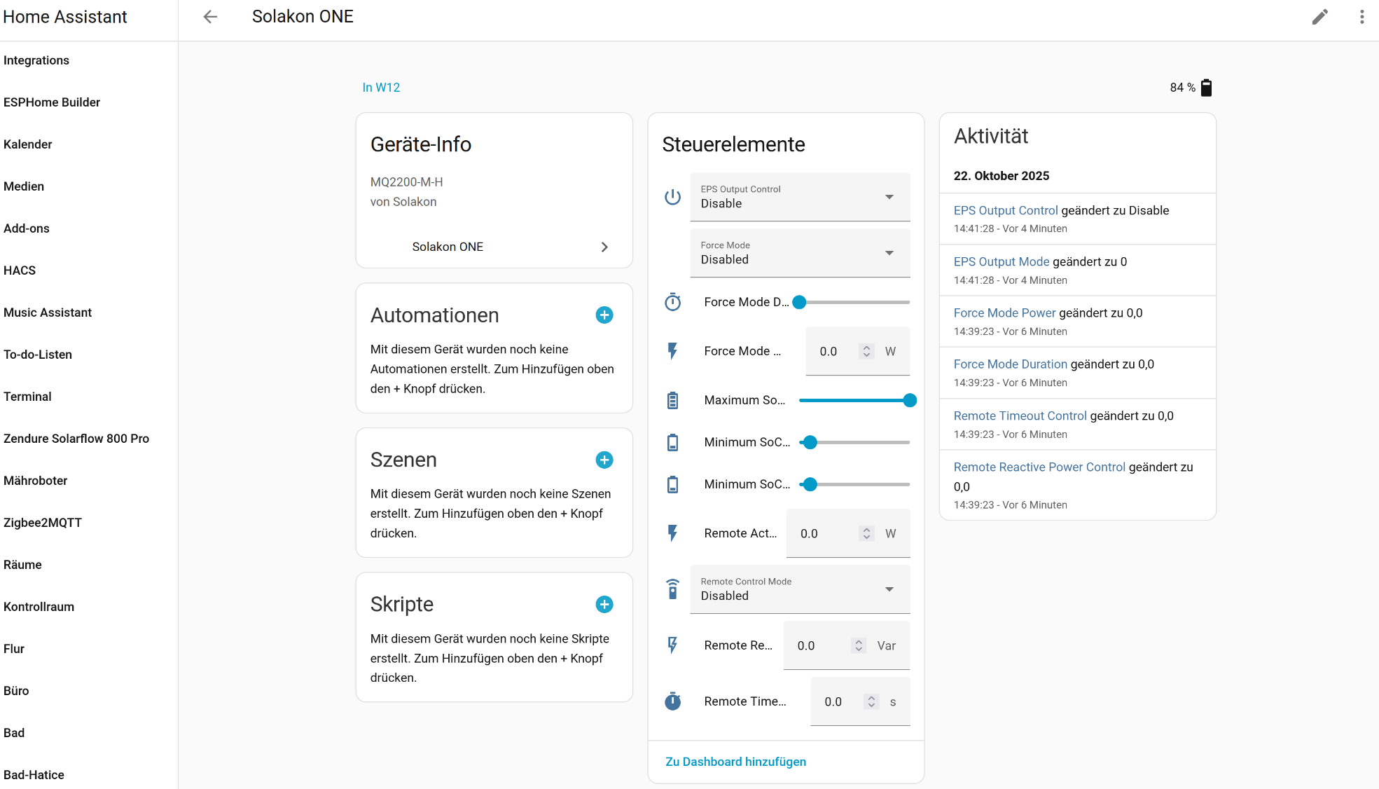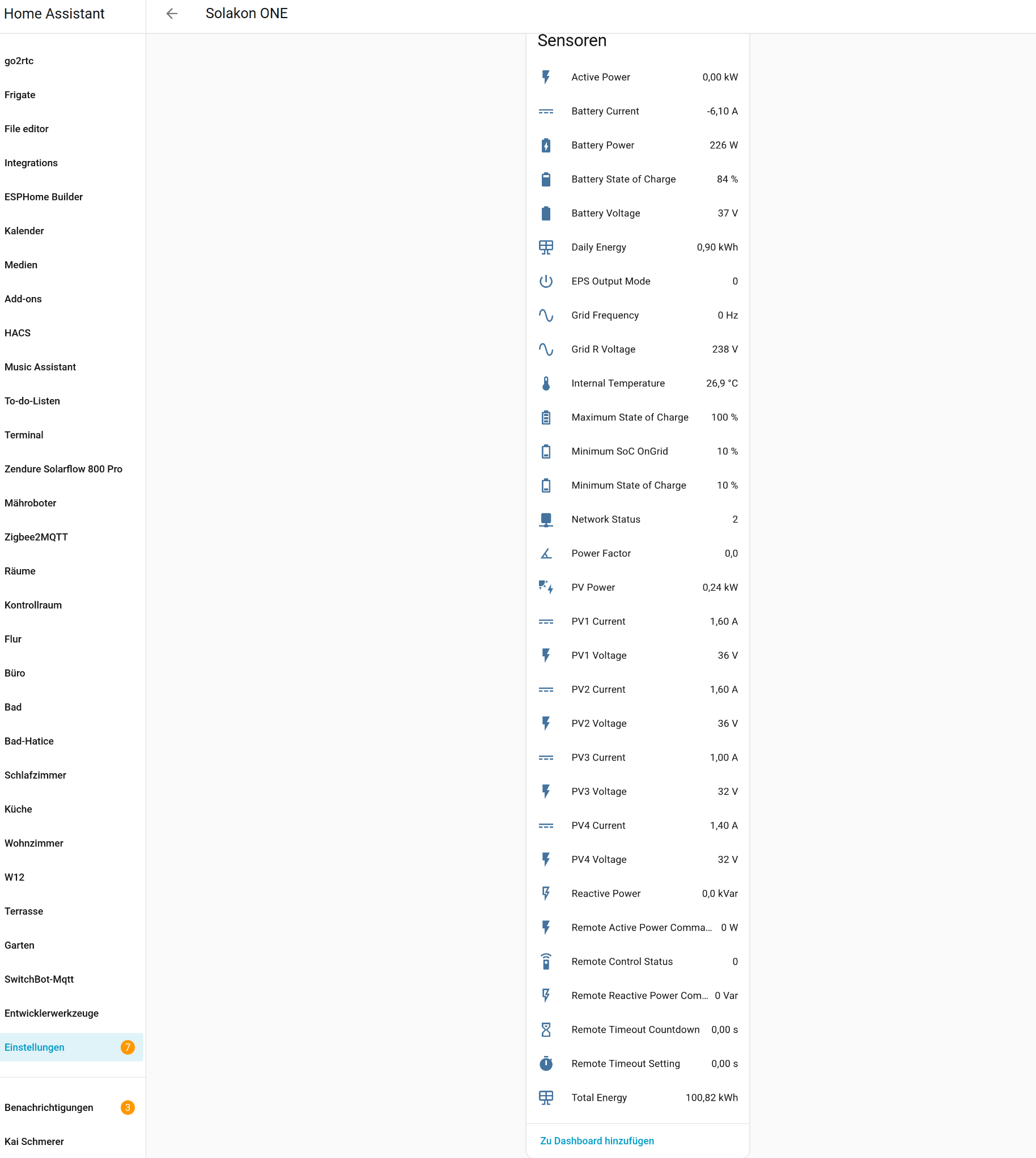 Solakon One: Inzwischen unterstützt die Integration nicht nur sämtliche Sensoren, sondern auch die Steuerung des Speichers.