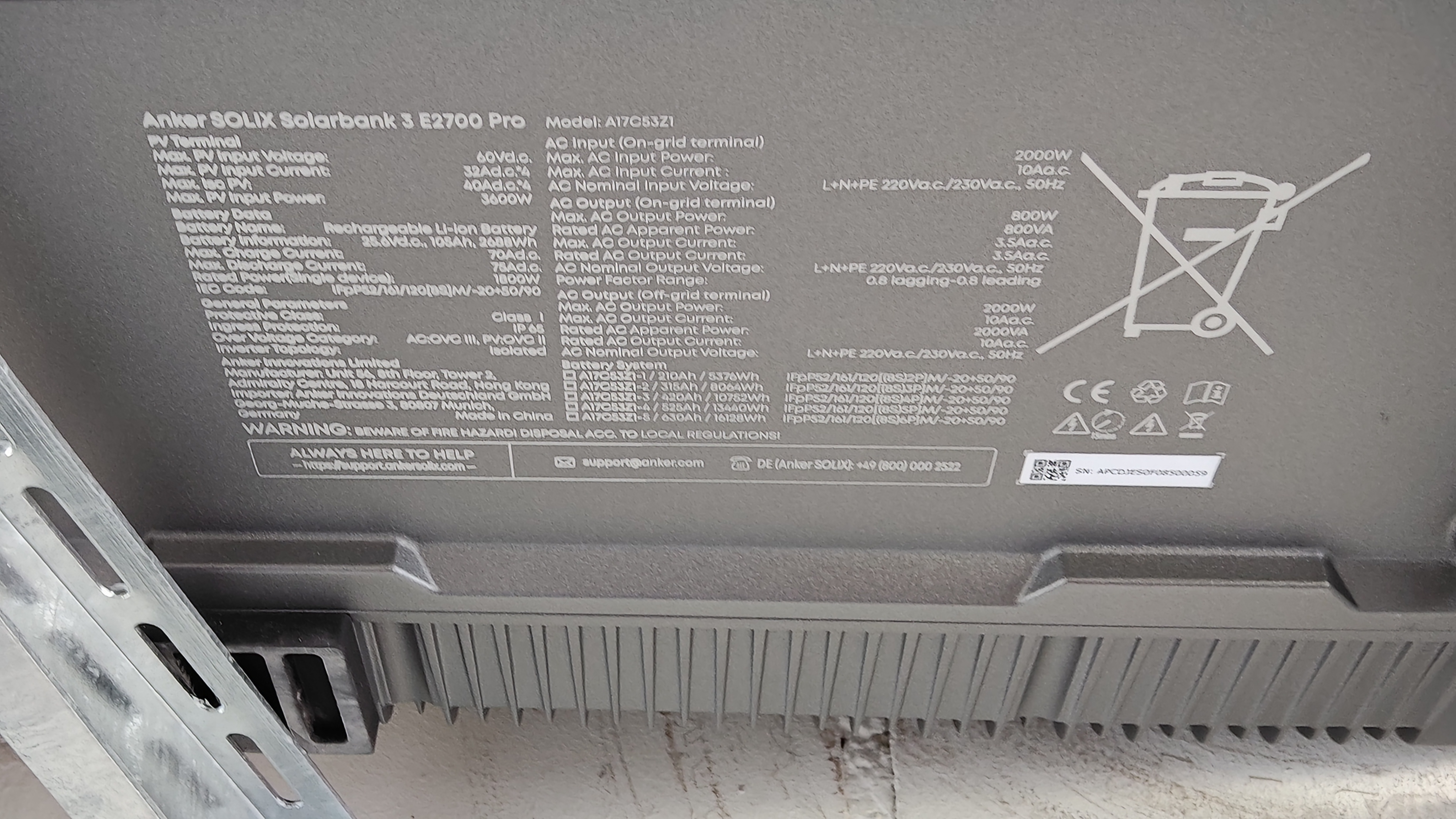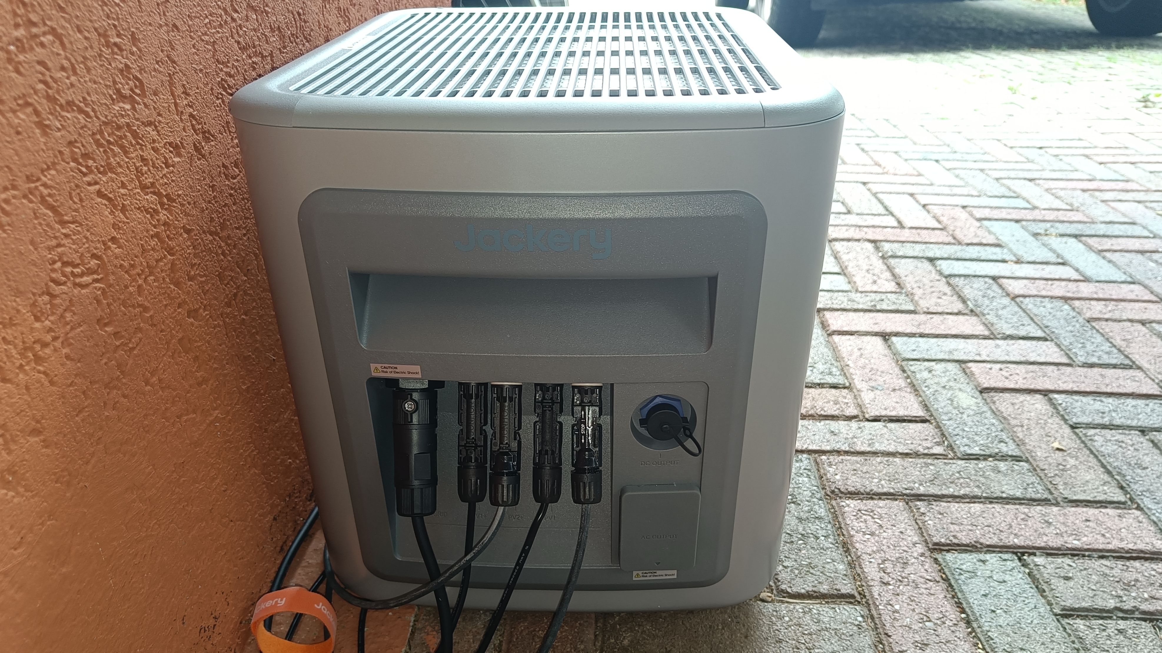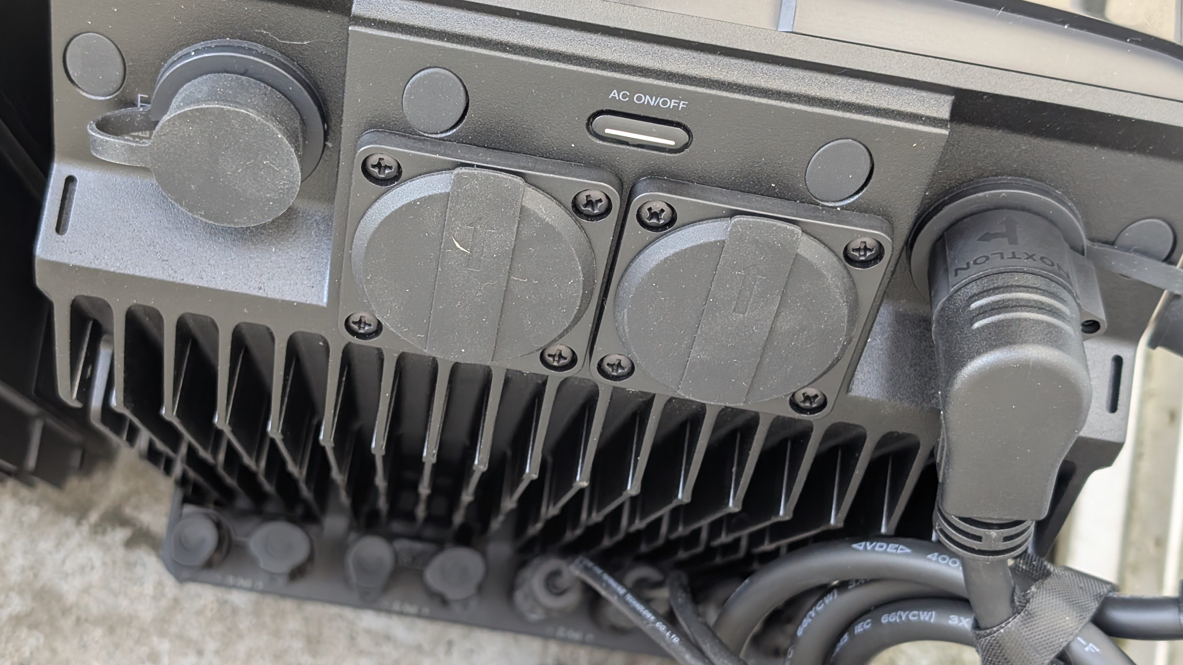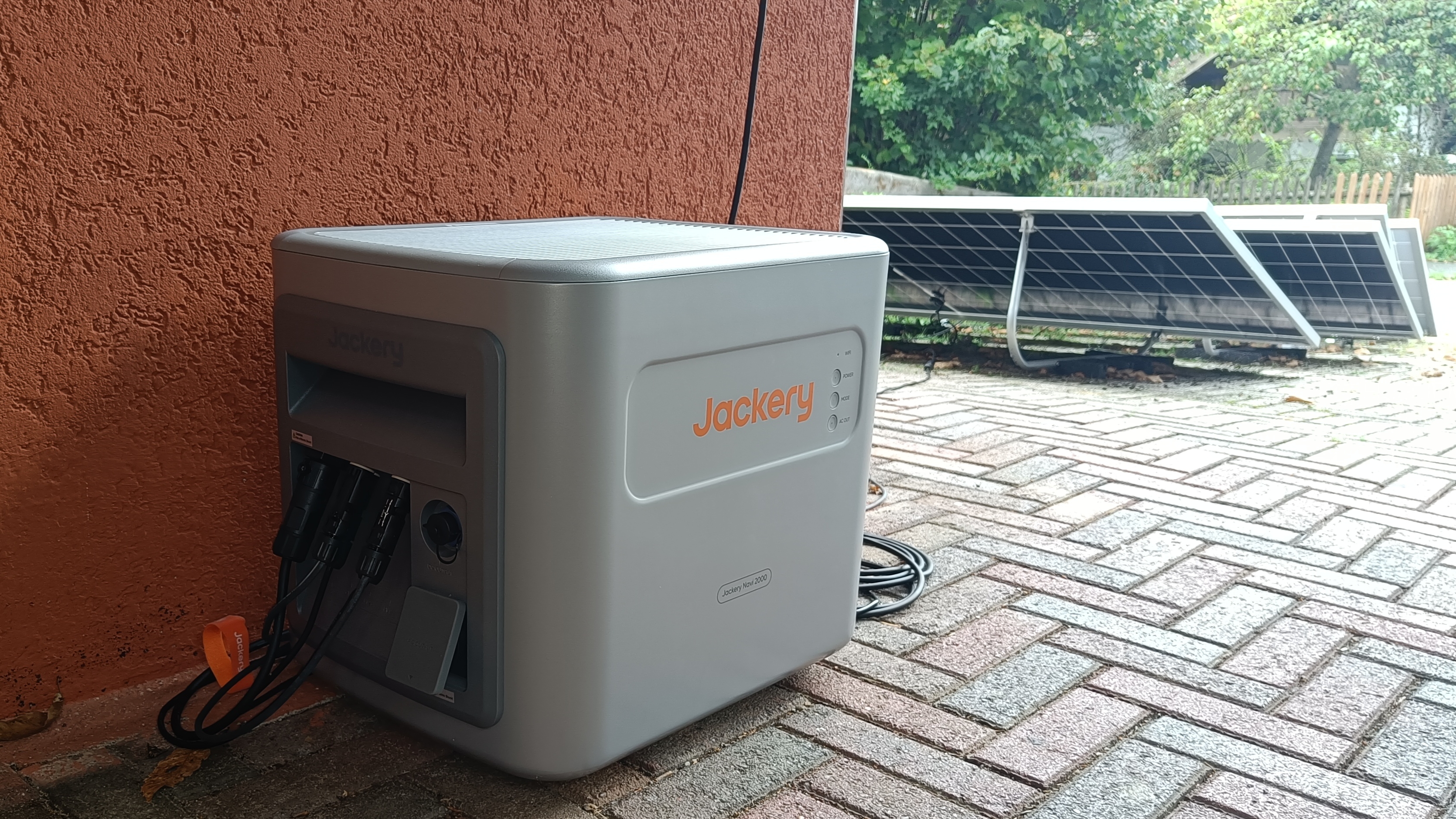Die Abmessungen des rund 30 kg schweren Speichers betragen rund 44 × 35 × 38 cm. Eine Wandmontage ist bei diesem System weder vorgesehen noch sinnvoll – die Abmessungen sind im Vergleich zu etwa dem Speicher Zendure AIO2400 (Testbericht) schlicht zu ausladend. Als Schutzart gibt Jackery die IP65 an – Wind und Regen übersteht das Gerät also problemlos. Die Betriebstemperatur darf laut Hersteller zwischen – 20 Grad Celsius und 55 Grad Celsius liegen, womit der Speicher auch für den ganz jährlichen Außeneinsatz geeignet ist. Bei anderen Speichern fehlen oft interne Heizelemente und IP65-Zertifizierung und so müssen solche Geräte in Innenräumen aufgestellt werden.