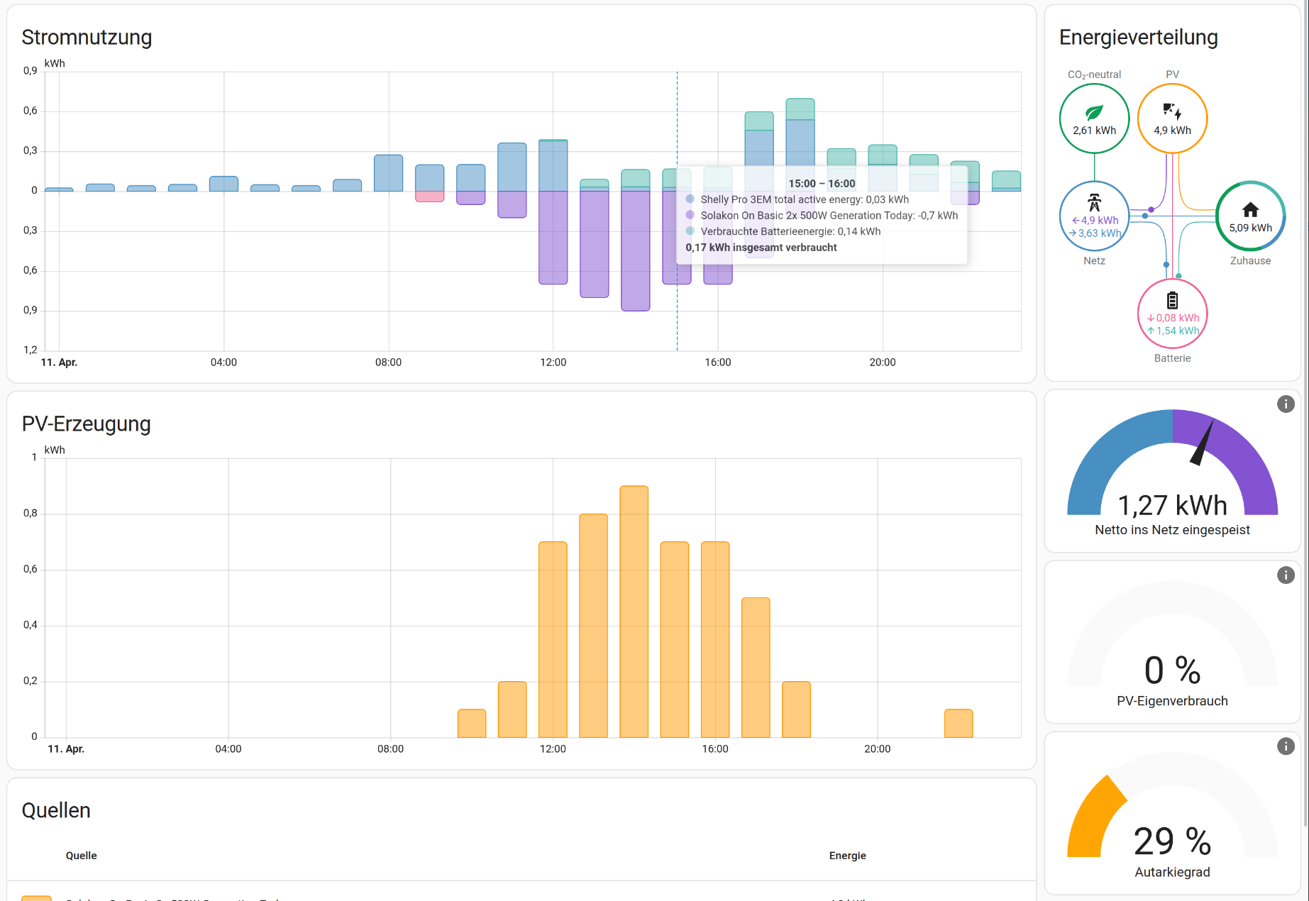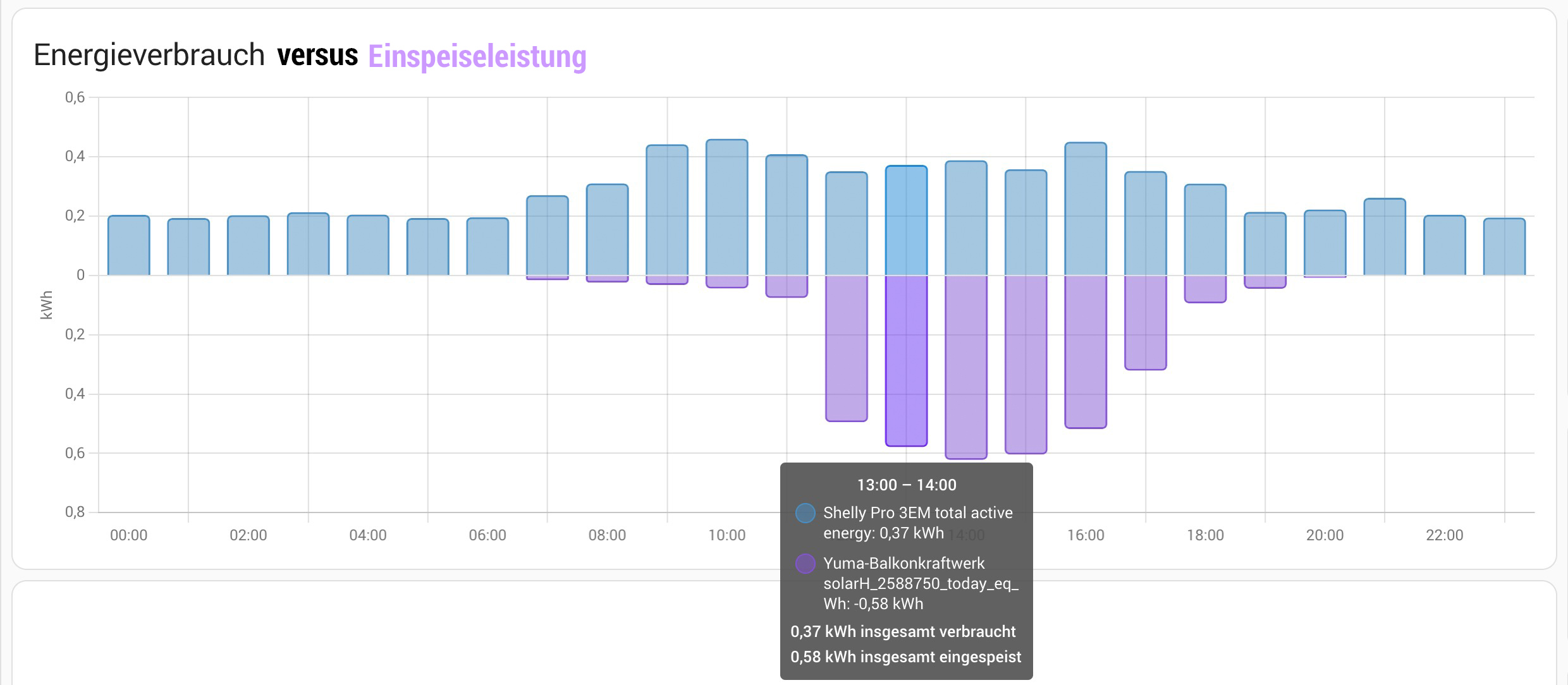 Natürlich funktioniert das nur bis 800 Watt, denn mehr darf ein Balkonkraftwerk/Speicher nicht ins Stromnetz einspeisen. Für die sogenannte Nulleinspeisung (Ratgeber) unterstützen die meisten Hersteller den Smart Meter Pro 3EM von Shelly, der aktuell zum Tiefstpreis für 78 Euro (Code: POWEREBAY7) im Angebot ist. Überdies bieten die Hersteller auch eigene Lösungen an, die zwar oft als kostenlose Dreingabe mitgeliefert werden, aber selten mit Smart-Home-Lösungen (Bestenliste) wie Home Assistant kompatibel sind. Wer also seine PV-Anlage mit Home Assistant verwalten möchte, verwendet besser den Shelly Pro 3EM.
