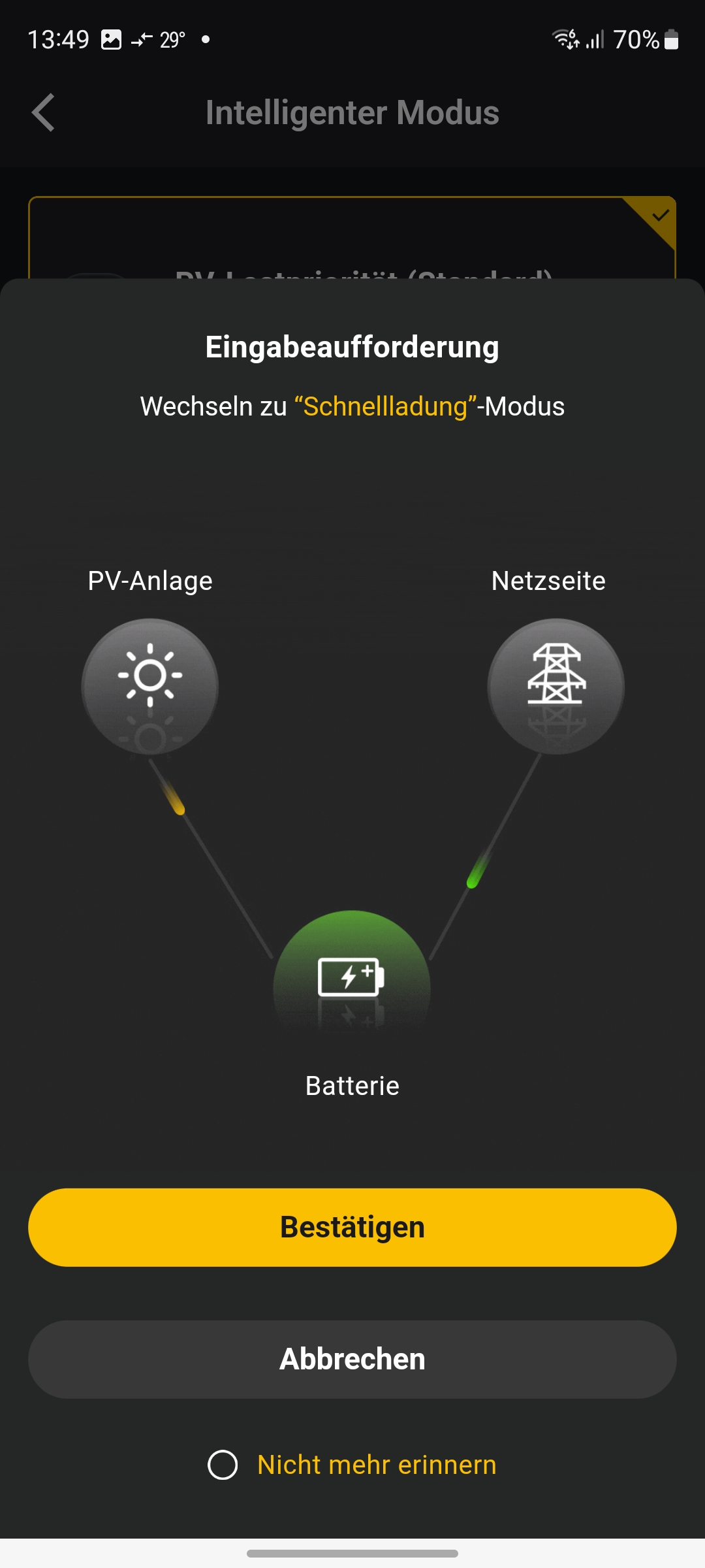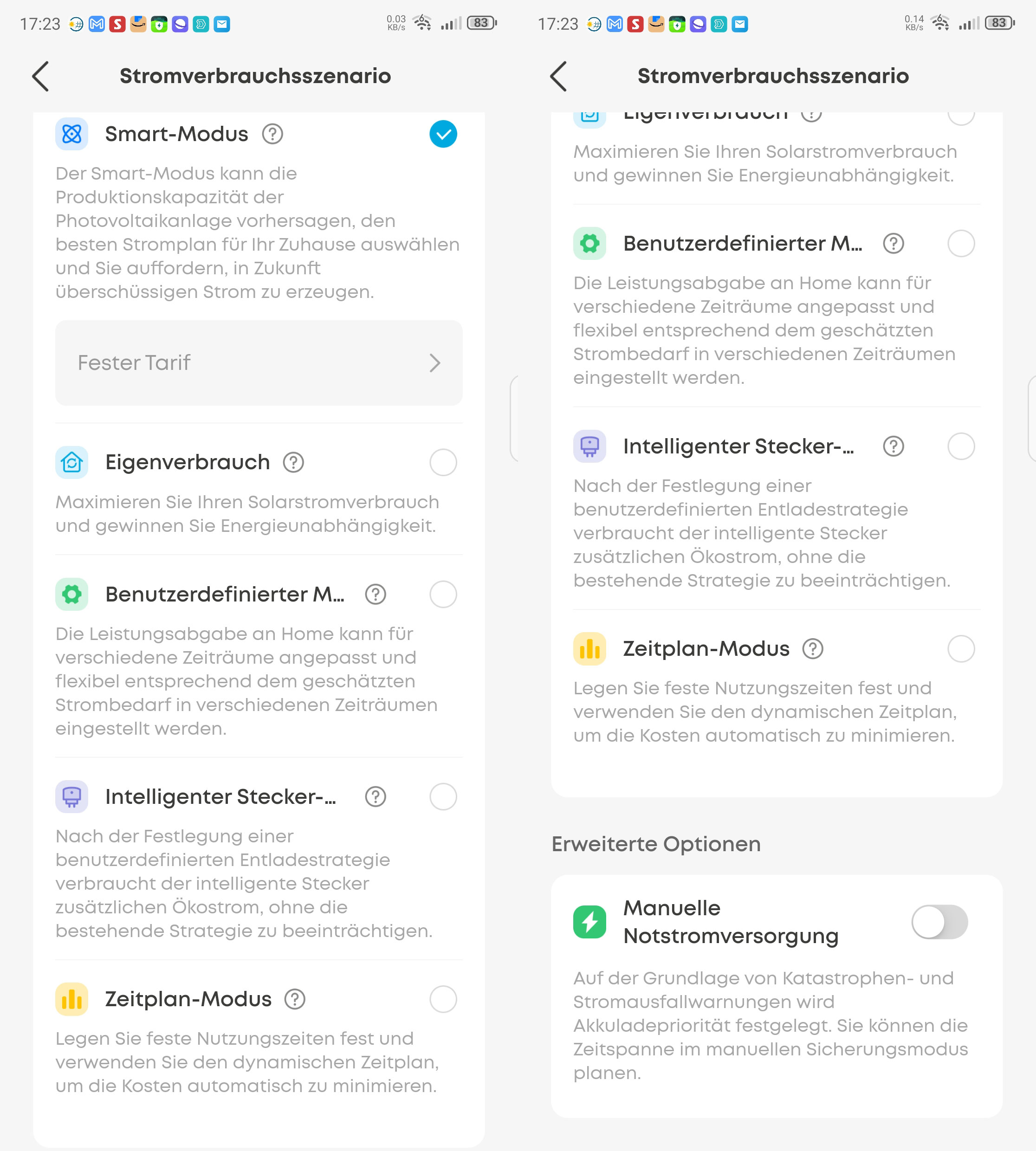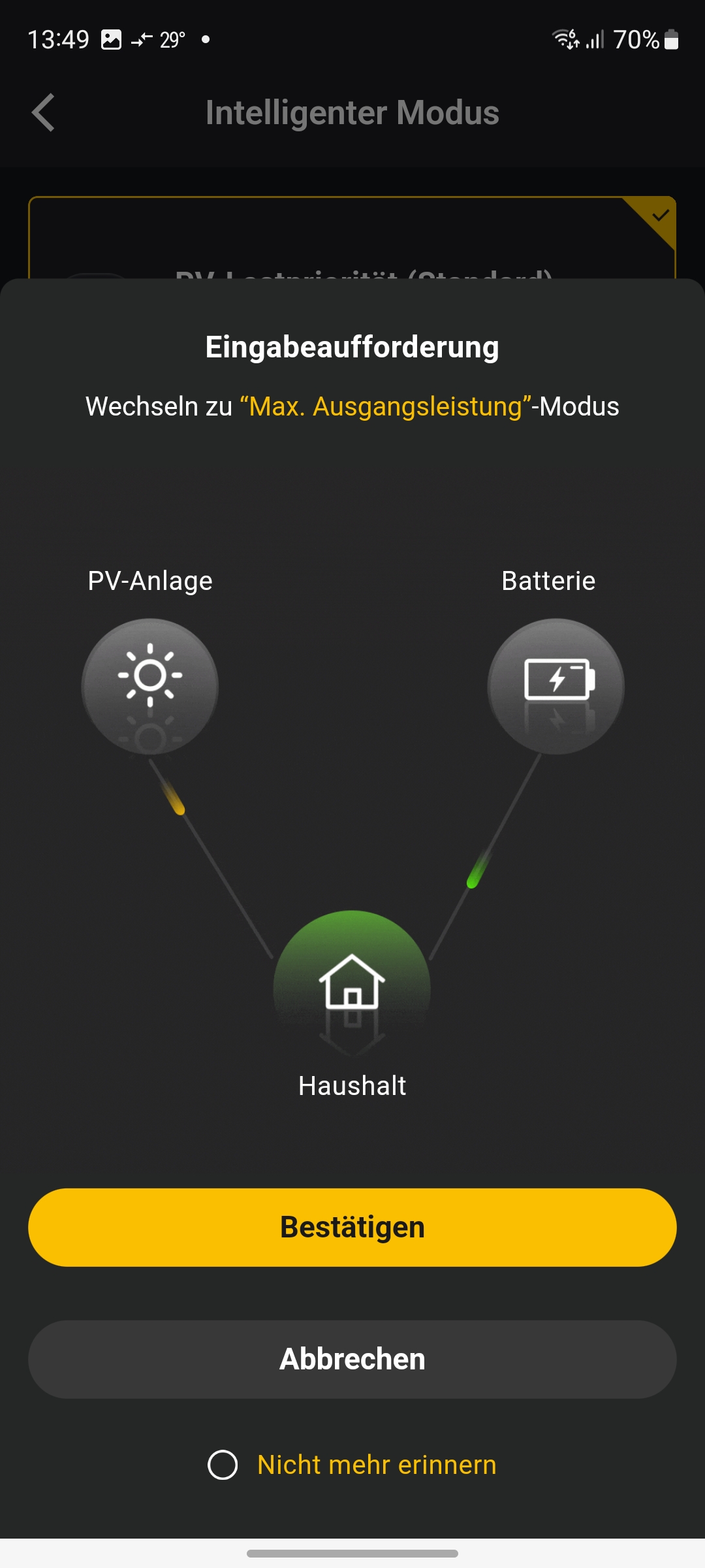 Aktuell stehen in der Software zwei Arbeitsmodi zur Auswahl. Neben der Priorität für Eigenverbrauch gibt es noch die Einstellung Batterie zuerst – hier wird dann zuerst der Akku geladen, bevor Strom eingespeist wird. Diesen Modi nutzen wir auch im Test, da unser Stromverbrauch in den Abendstunden deutlich höher ist.