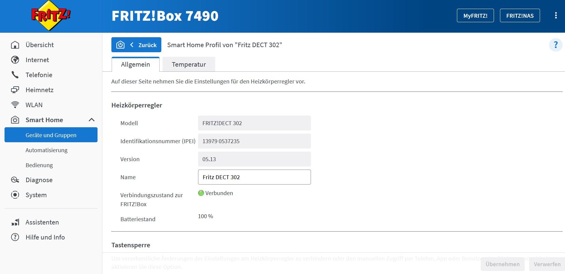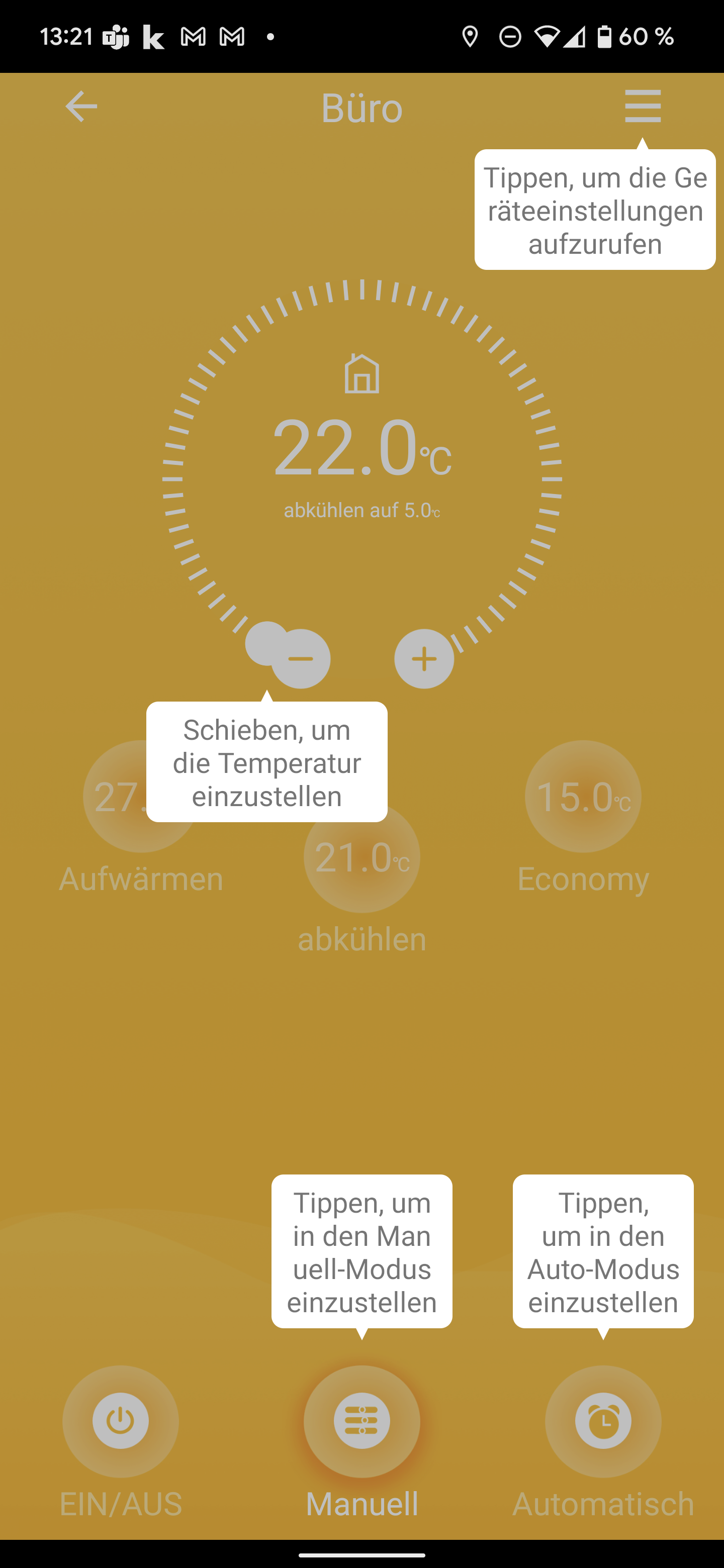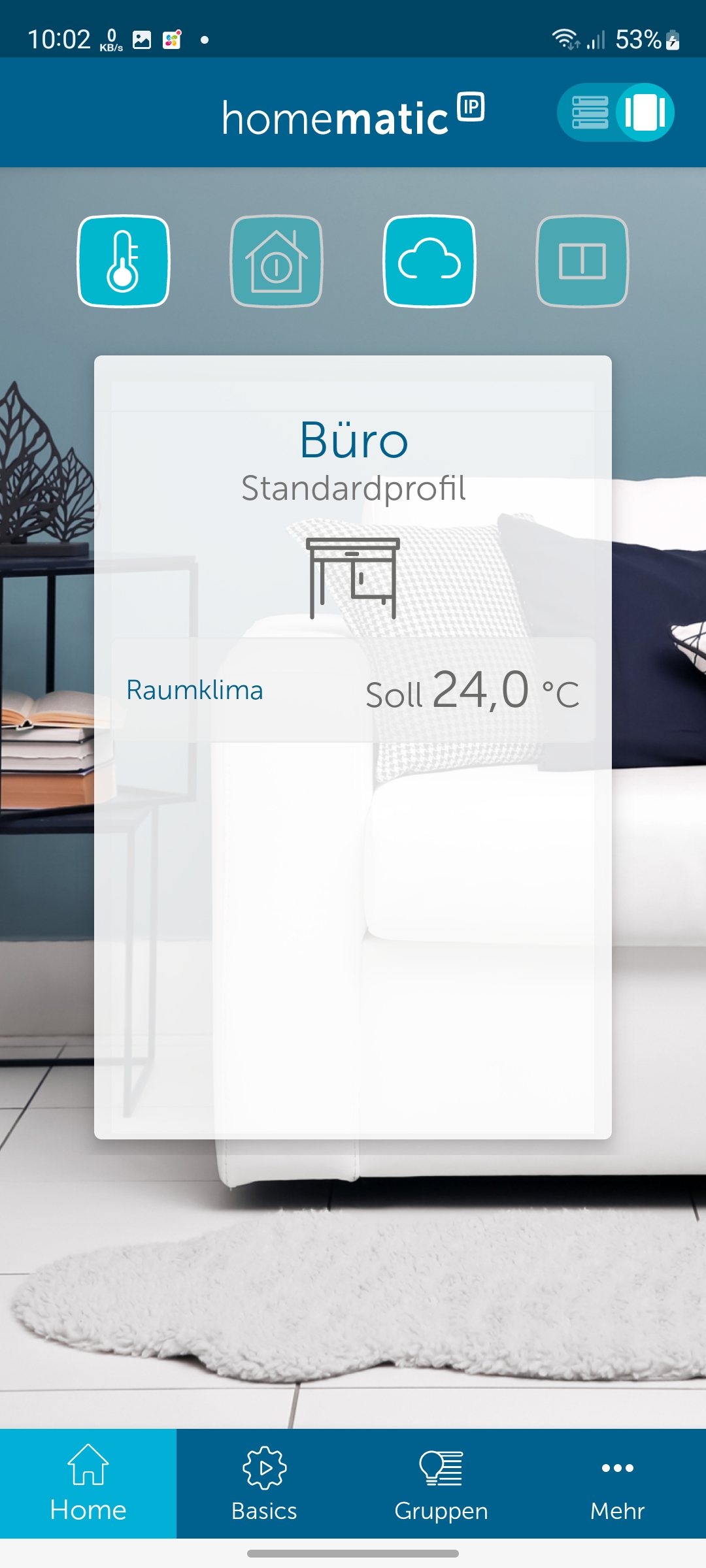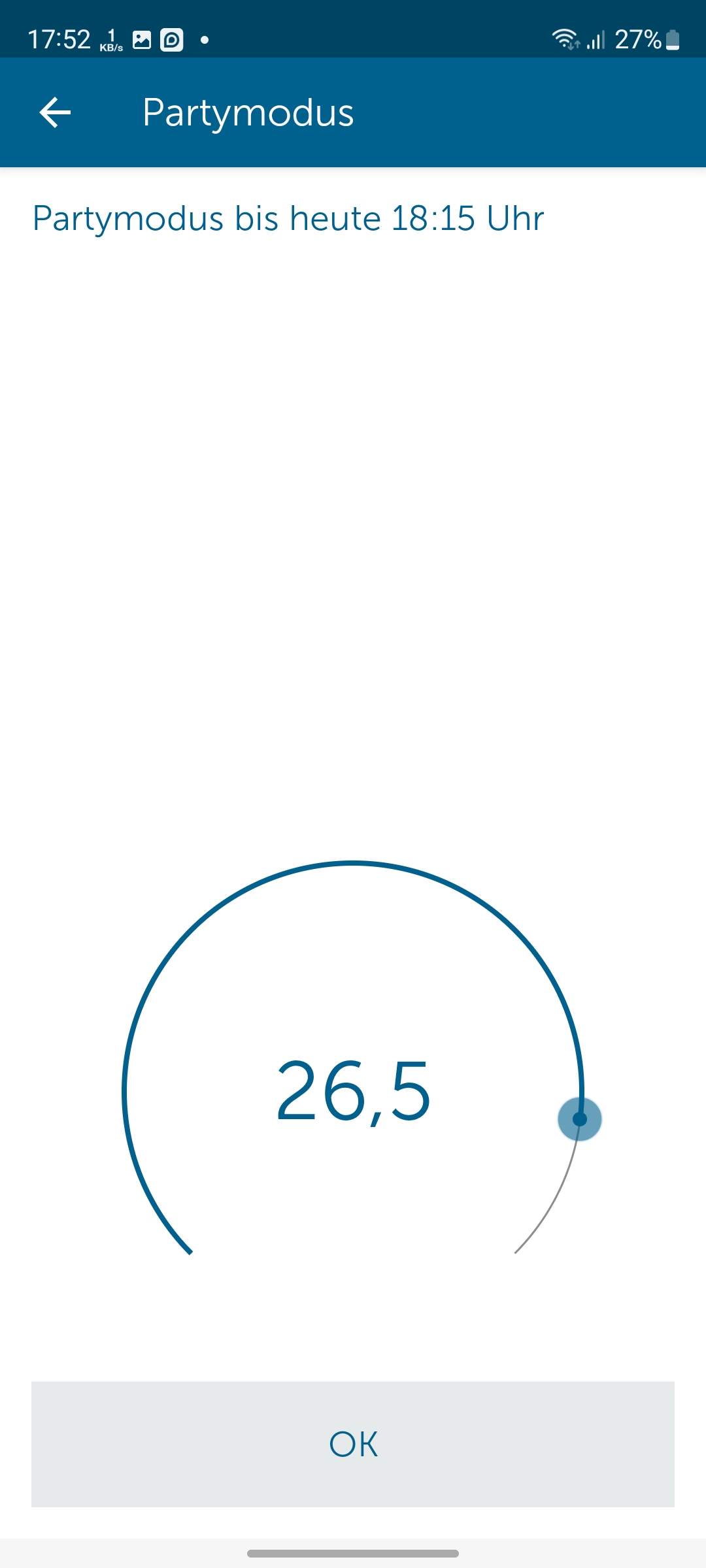 Prominent und groß zeigt das Feld auf der Übersichtsseite die Ist-Temperatur an, die Solltemperatur versteckt sich klein darunter. Wir hätten es bevorzugt, wann stattdessen die Soll-Temperatur groß dargestellt wäre.