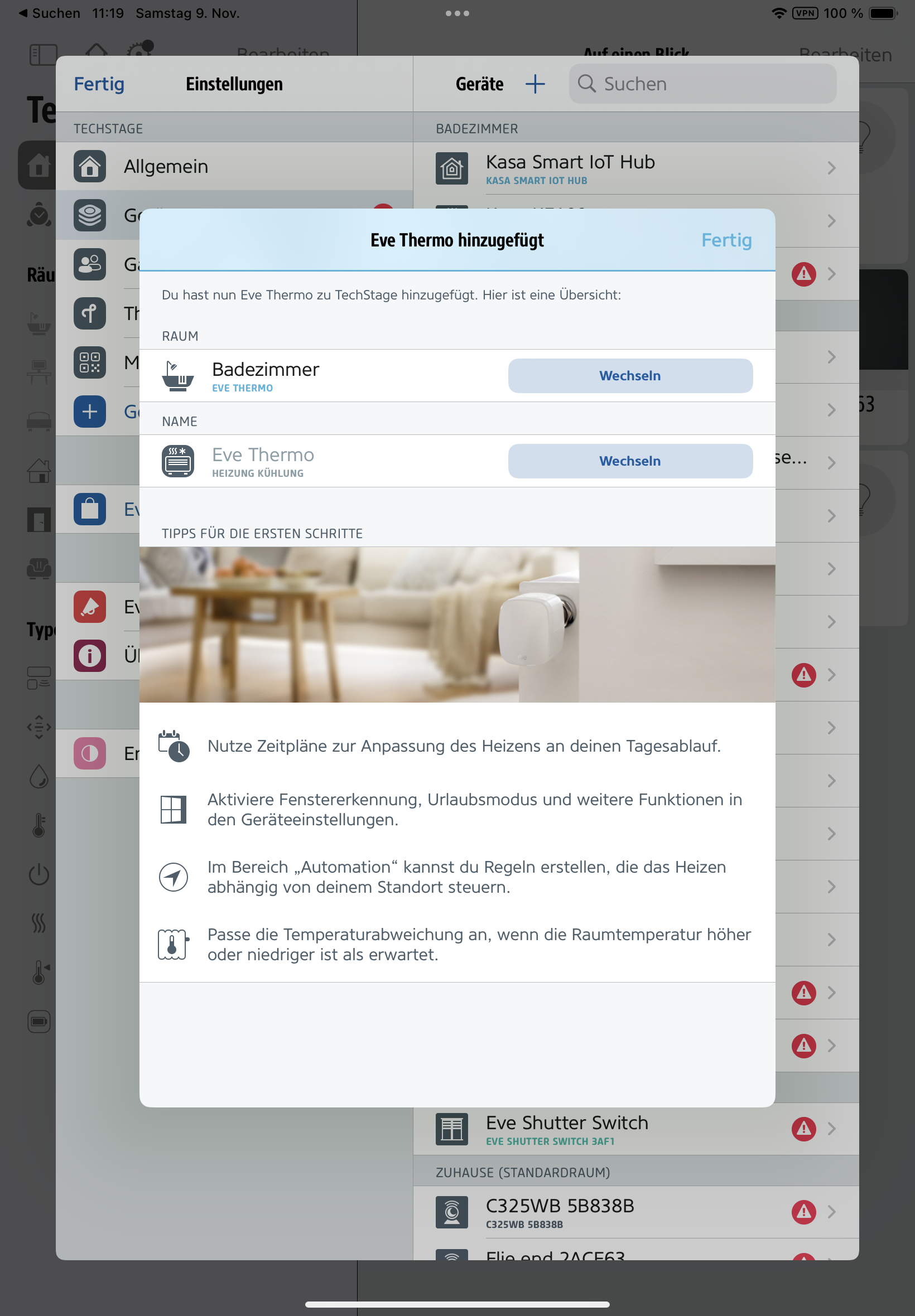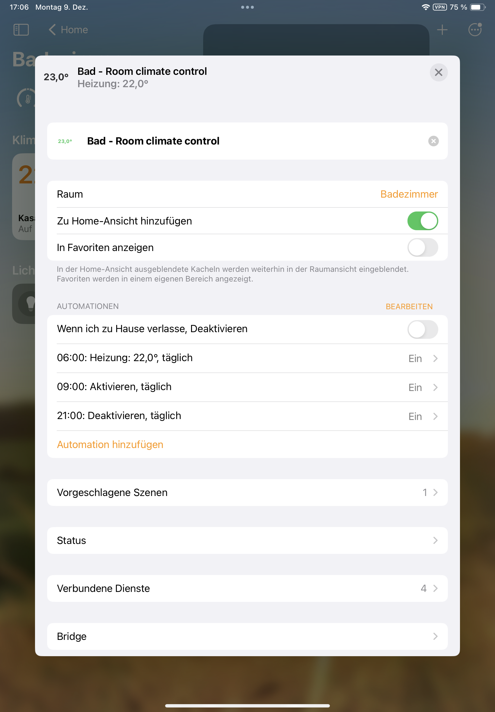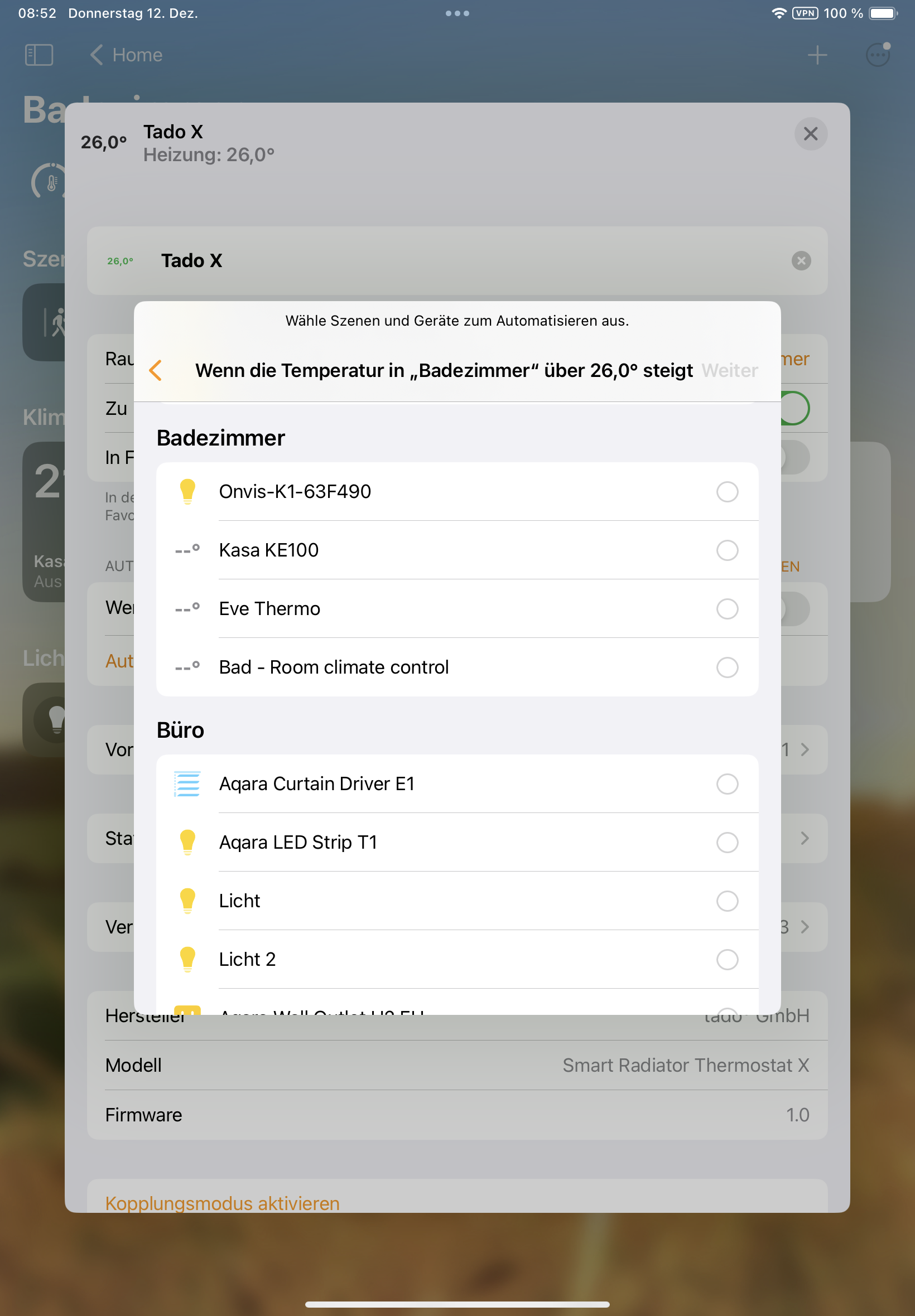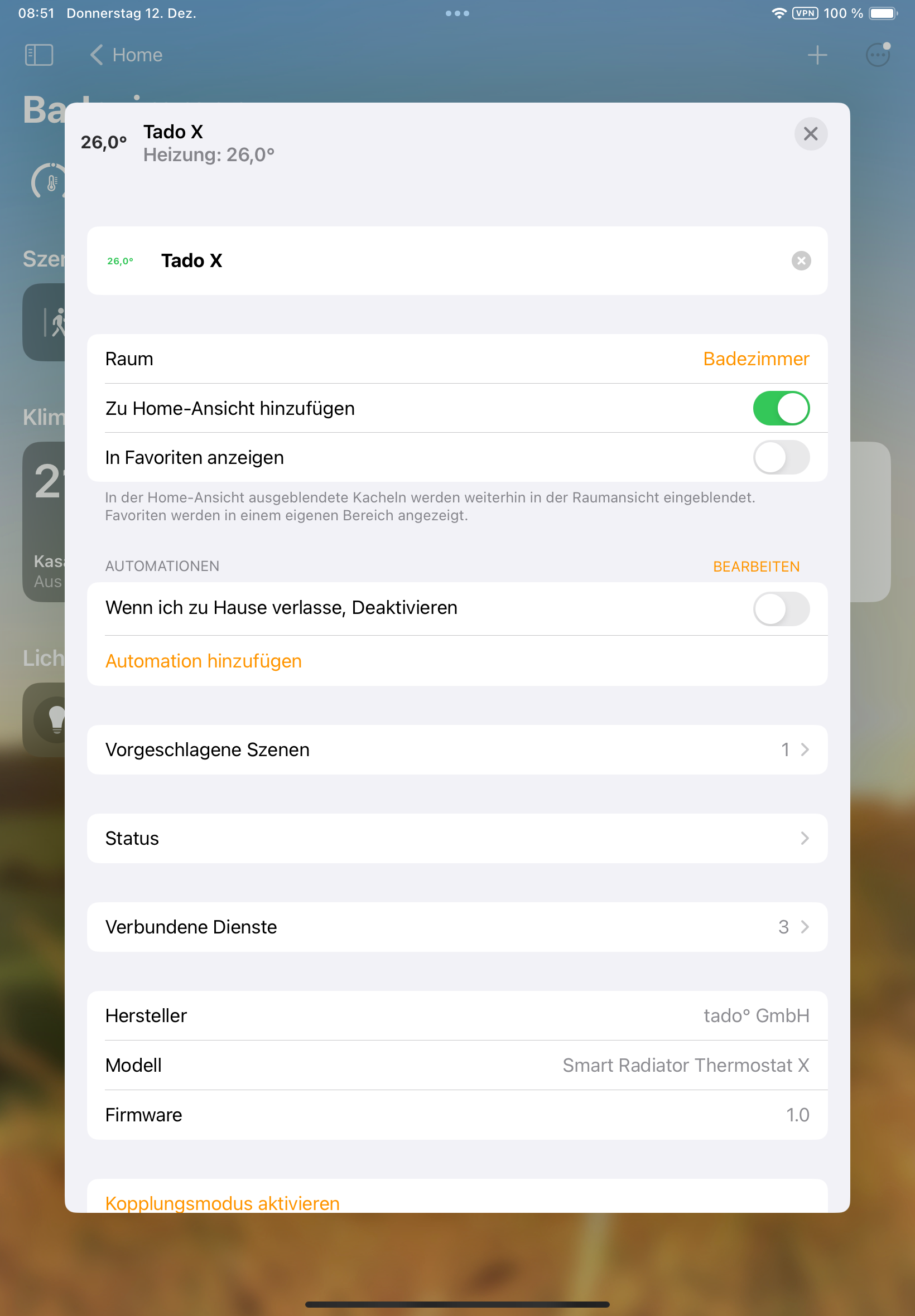 Auch mit Apple Home lässt sich das smarte Heizkörperthermostat steuern. Allerdings sind Automatisierungen limitiert.