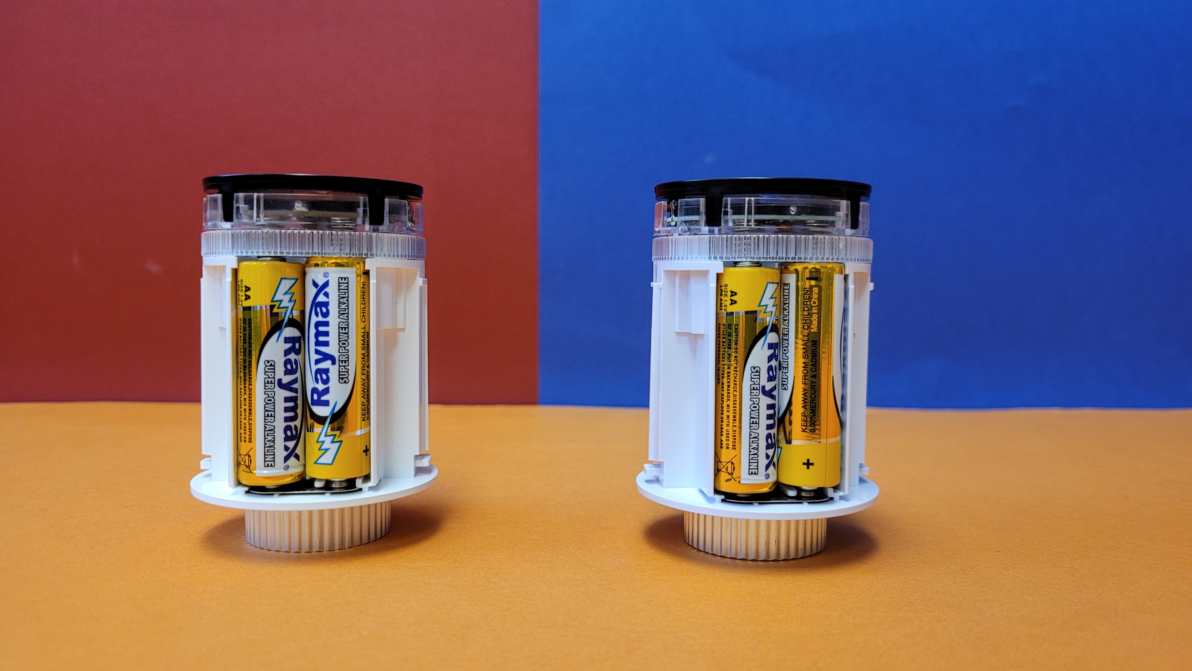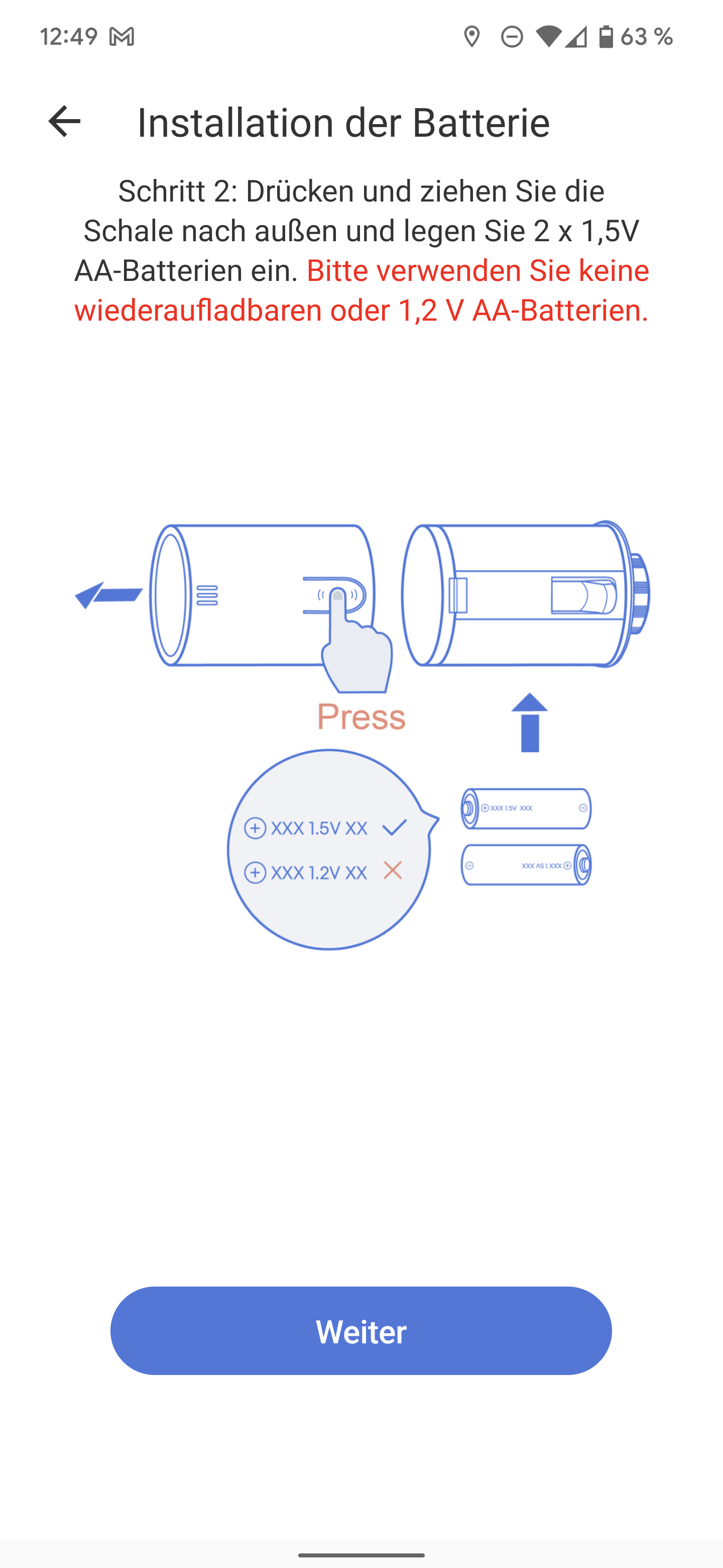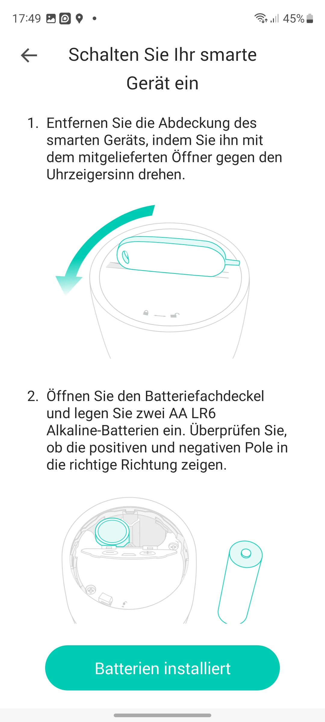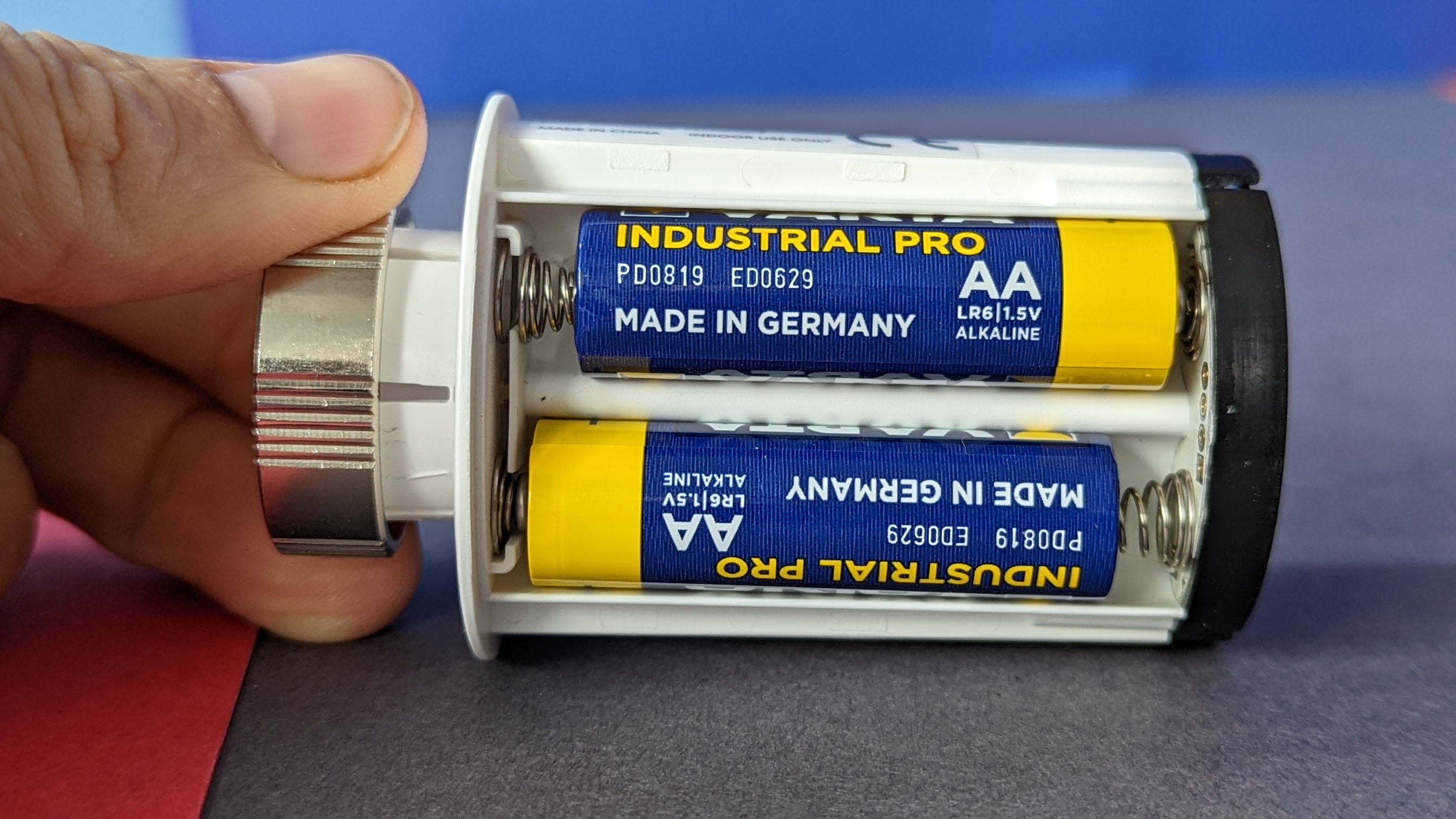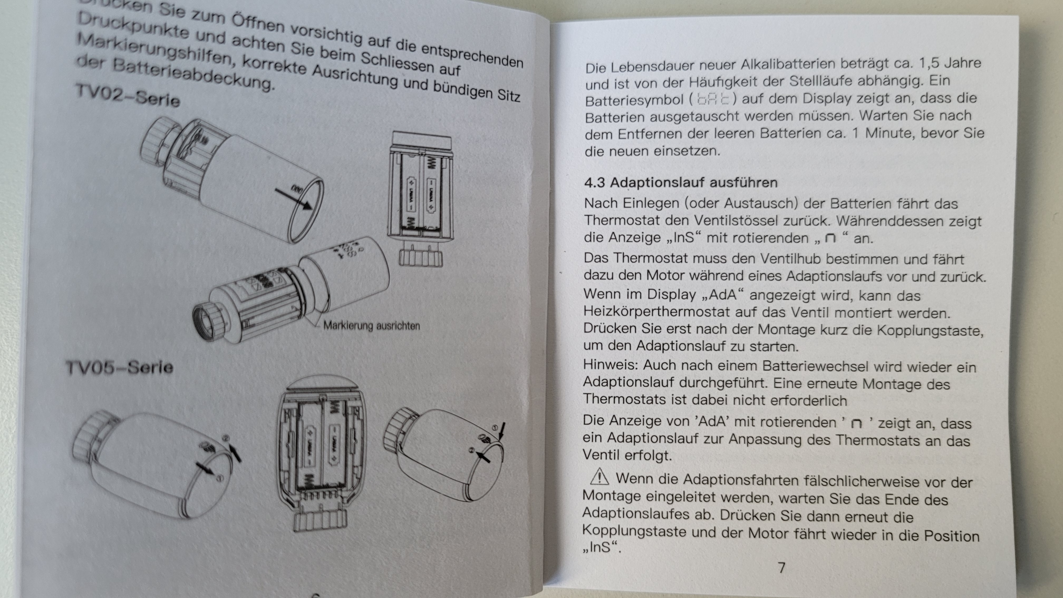 Die Meross-Thermostate benötigen zunächst zwei AA-Batterien. Diese liegen nicht bei und müssen laut Meross etwa einmal pro Jahr gewechselt werden. Um das Batteriefach zu erreichen, zieht man nach dem Drücken einer kleinen Kunststoffflasche den Zylinder von Thermostat. Das ist nicht elegant, aber funktionell. Derart gelingt der Batteriewechsel auch bei montiertem Thermostat.