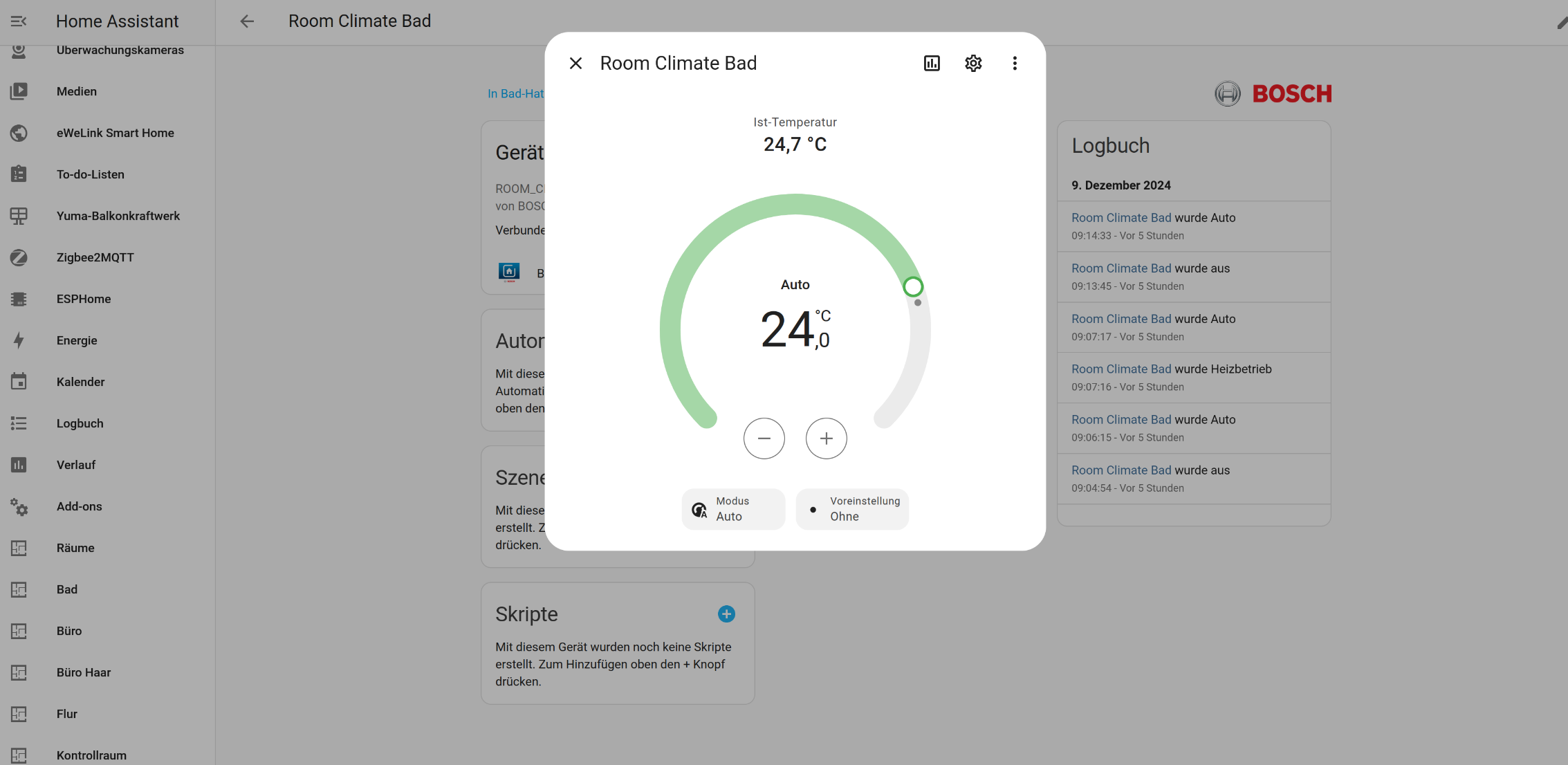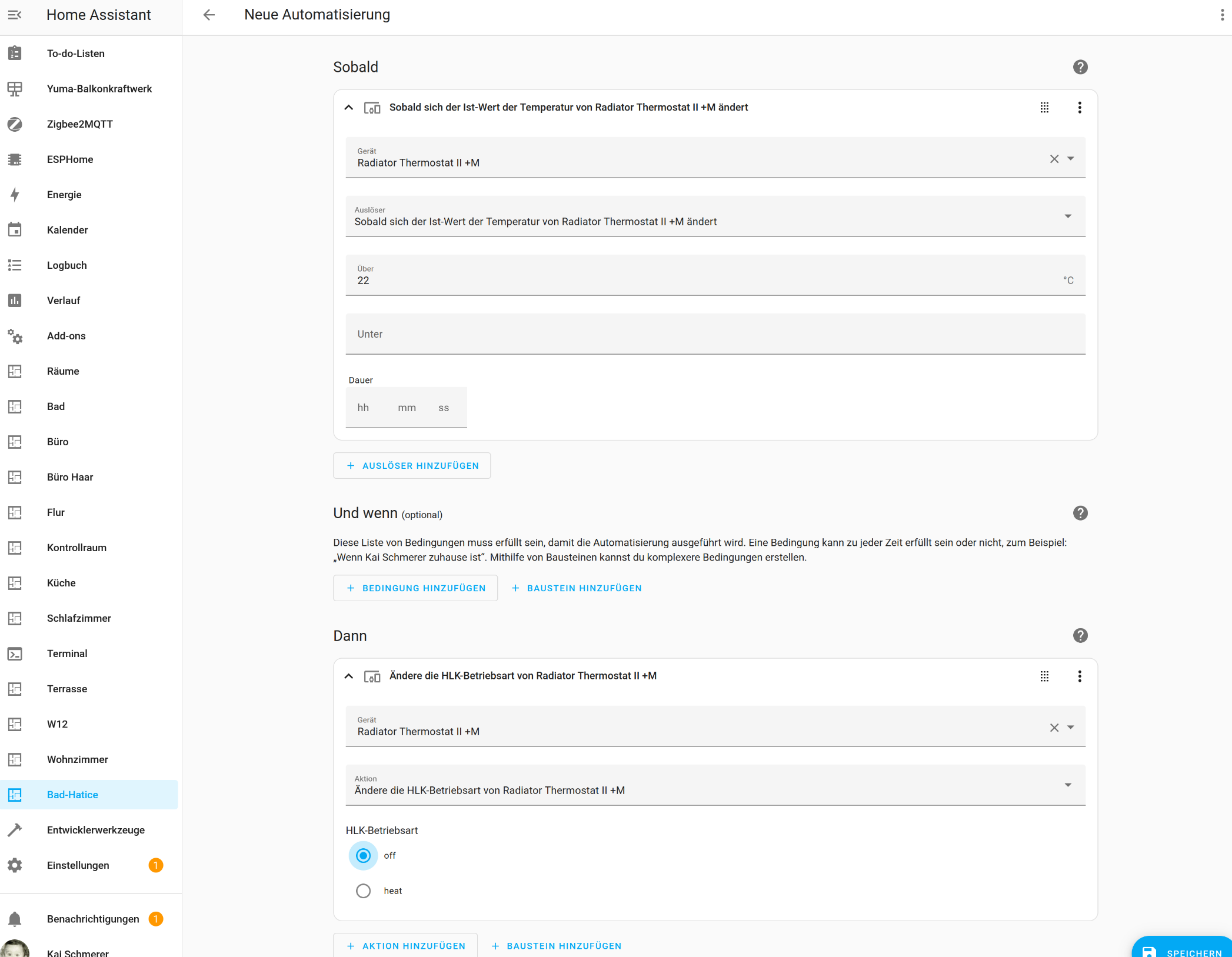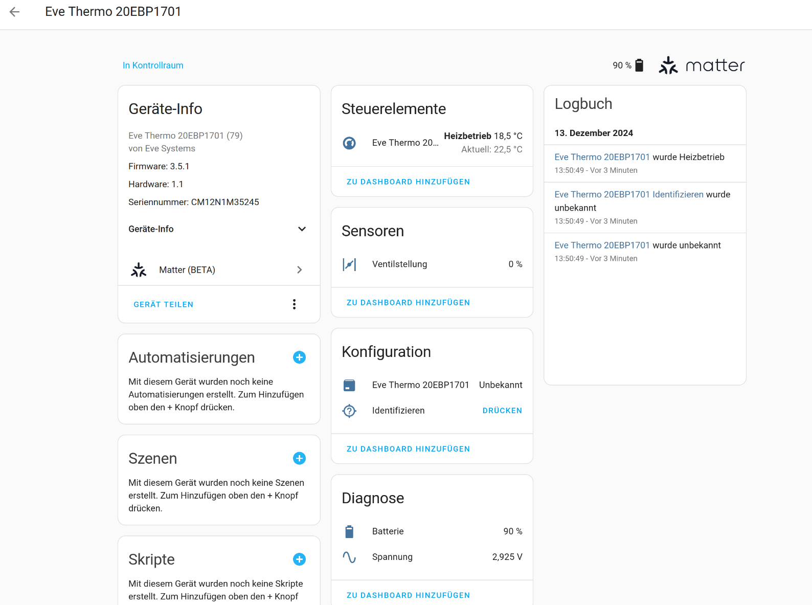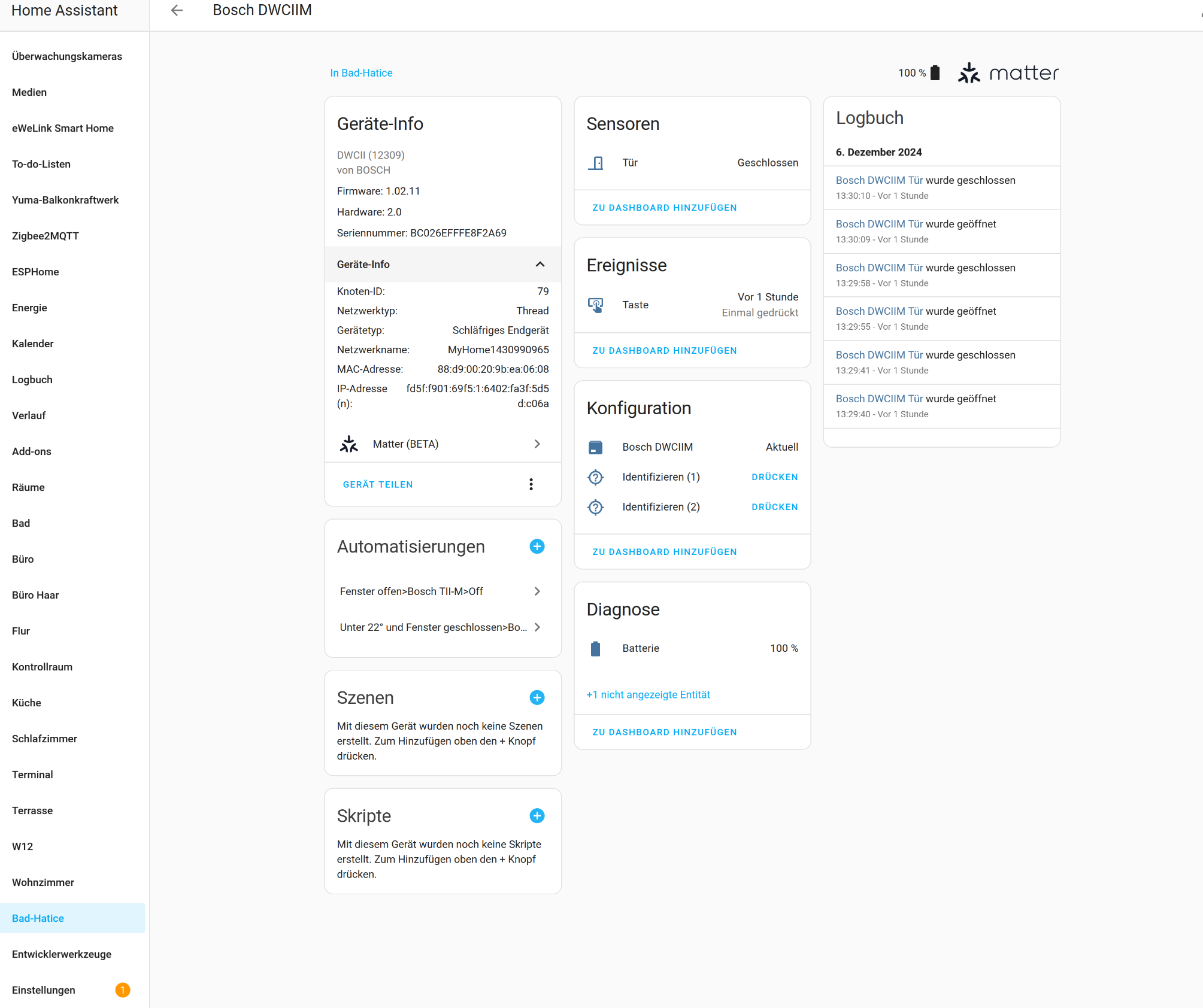 Auch unter Home Assistant funktioniert Tado X. Über Matter stehen allerdings nur wenige Funktionen zur Verfügung. Heizpläne lassen sich aber über Automatisierungen nachbilden. Und mit einem Tür-/Fenster-Sensor können Anwender eine deutlich effizientere Methode zur Fenster-Offen-Erkennung umsetzen als die auf einem Temperaturabfall basierende Methode in der Tado-App.