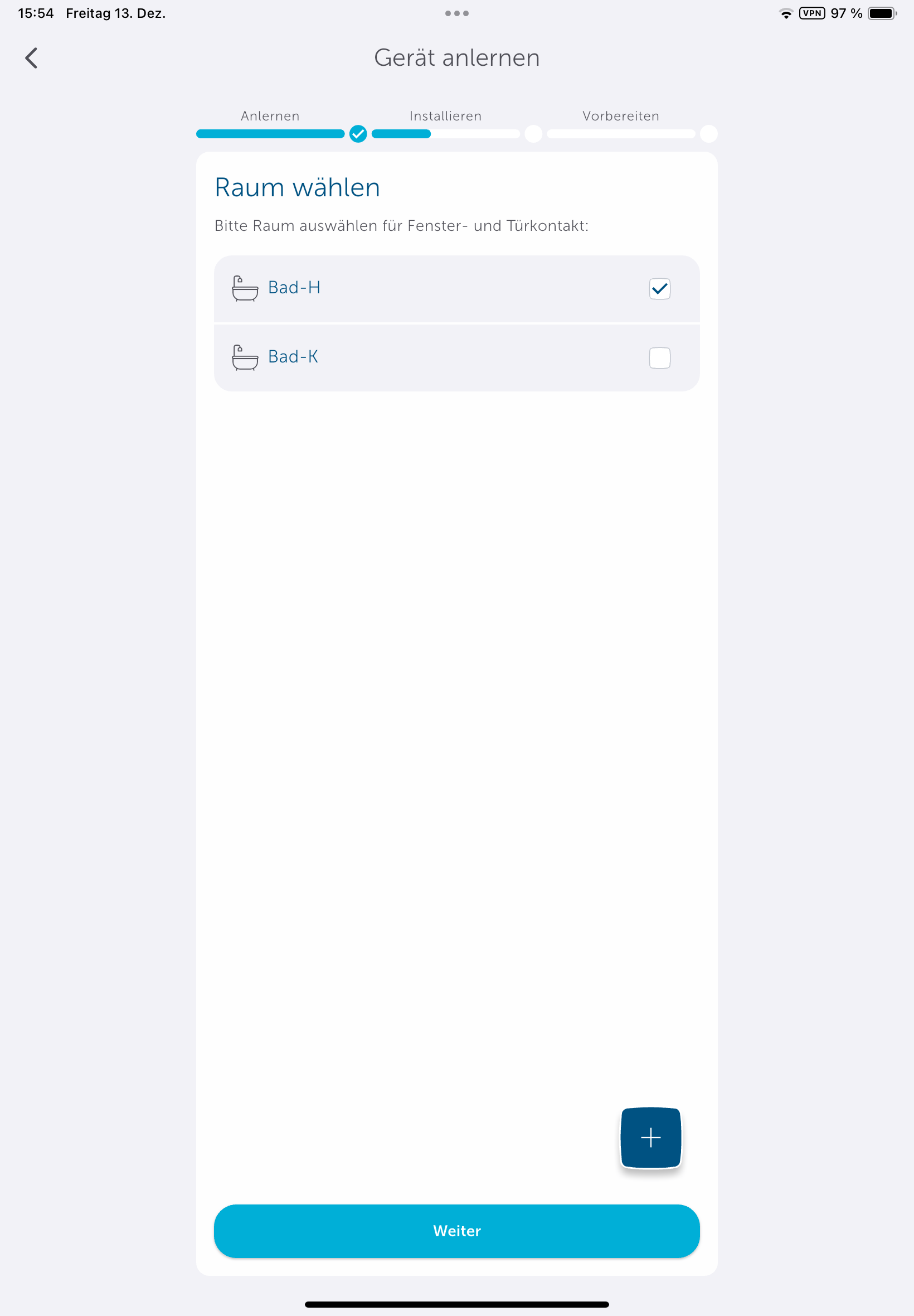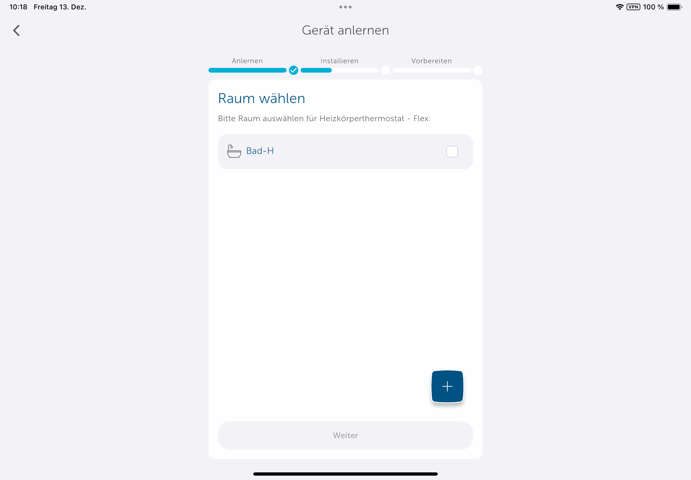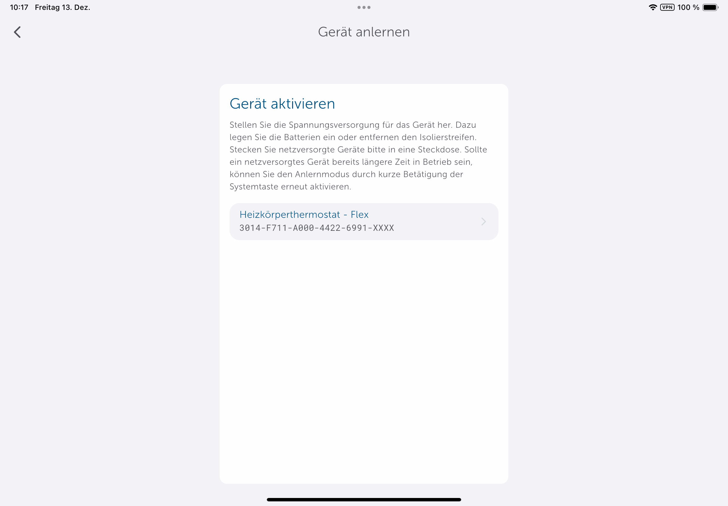 Das Gateway muss anschließend mit dem WLAN-Router gekoppelt werden. Hierfür kommen allerdings nur 2,4 GHz für WLAN-Netzwerke infrage. Bei Routern, die 5 GHz und 2,4 GHz unter einer SSID betreiben, kann es passieren, dass die Koppelung nicht funktioniert. In diesem Fall muss man die Netze auf zwei SSIDs aufteilen oder das 5-GHz-Netz für den Anlernprozess kurz ausschalten. Nachdem das Gateway hinzugefügt wurde, kann man nun das Thermostat anlernen. Befindet es sich nicht im Kopplungsmodus, lässt sich dieser durch dreimaliges Drücken auf das Display auslösen. Das grüne WLAN-Symbol im Display beginnt jetzt zu blinken. Die Assistent-geführte Koppelung bereitet im Test keinerlei Probleme, sodass Gateway und Thermostat nach wenigen Minuten einsatzbereit sind (siehe auch Bildergalerie).
