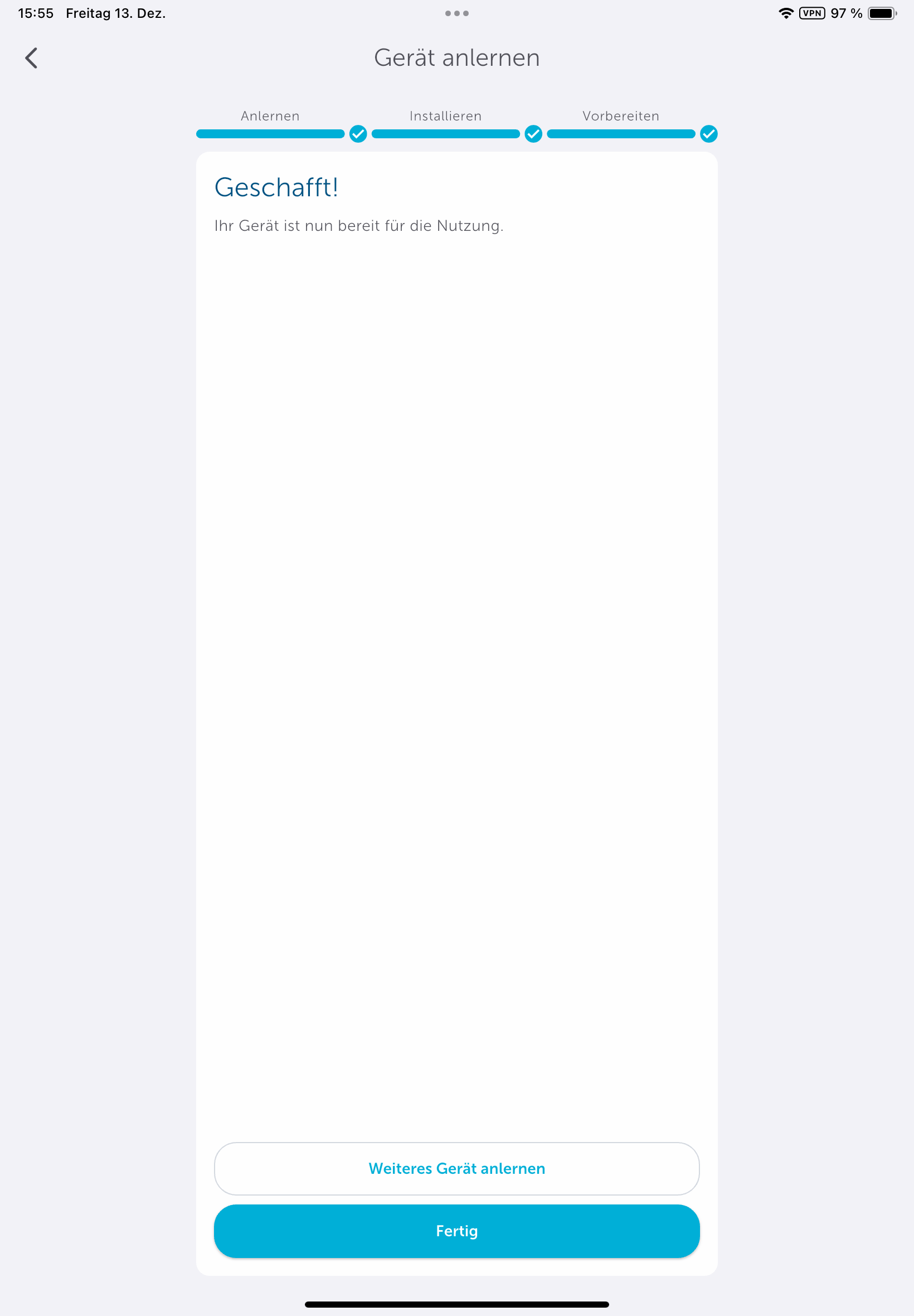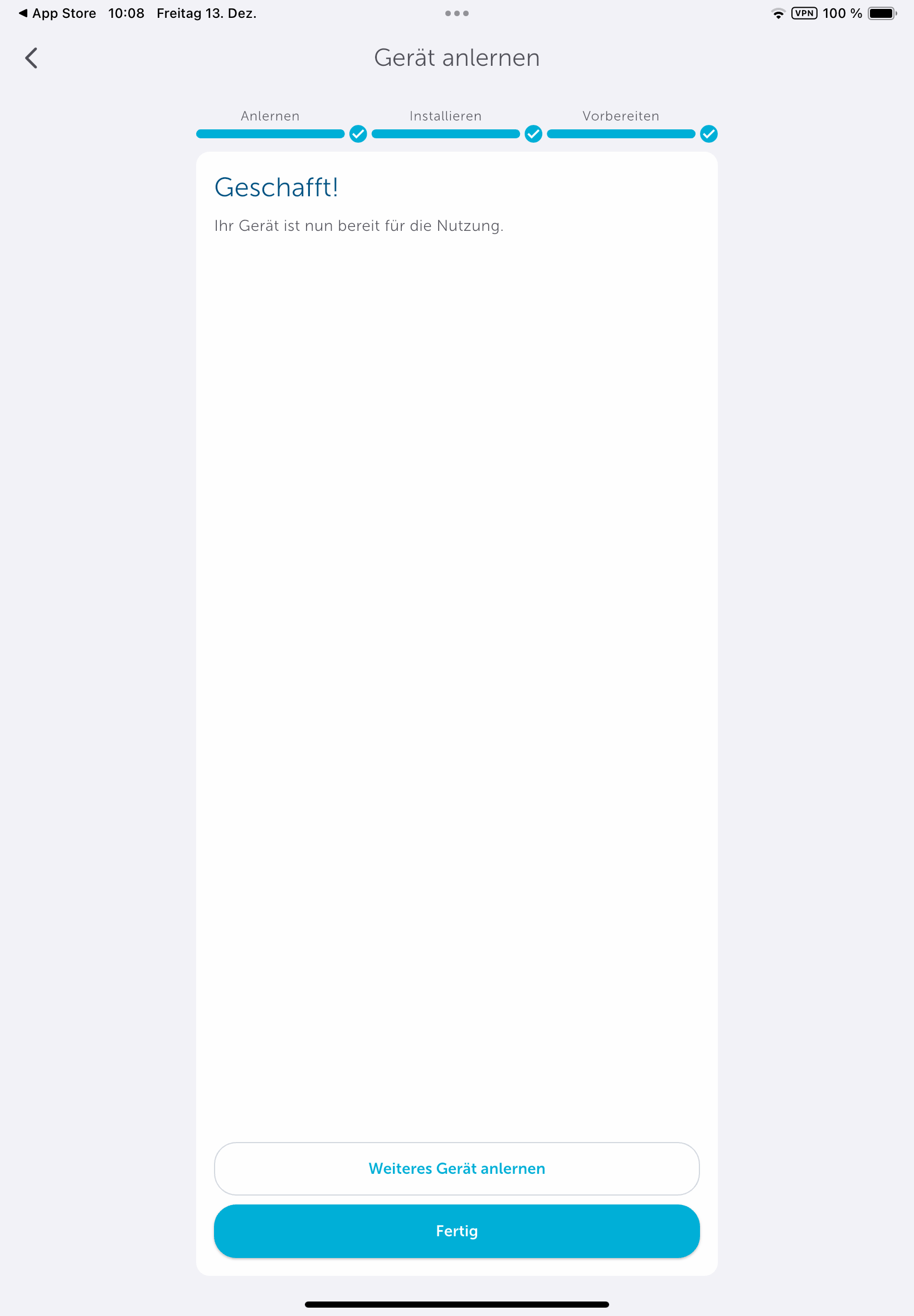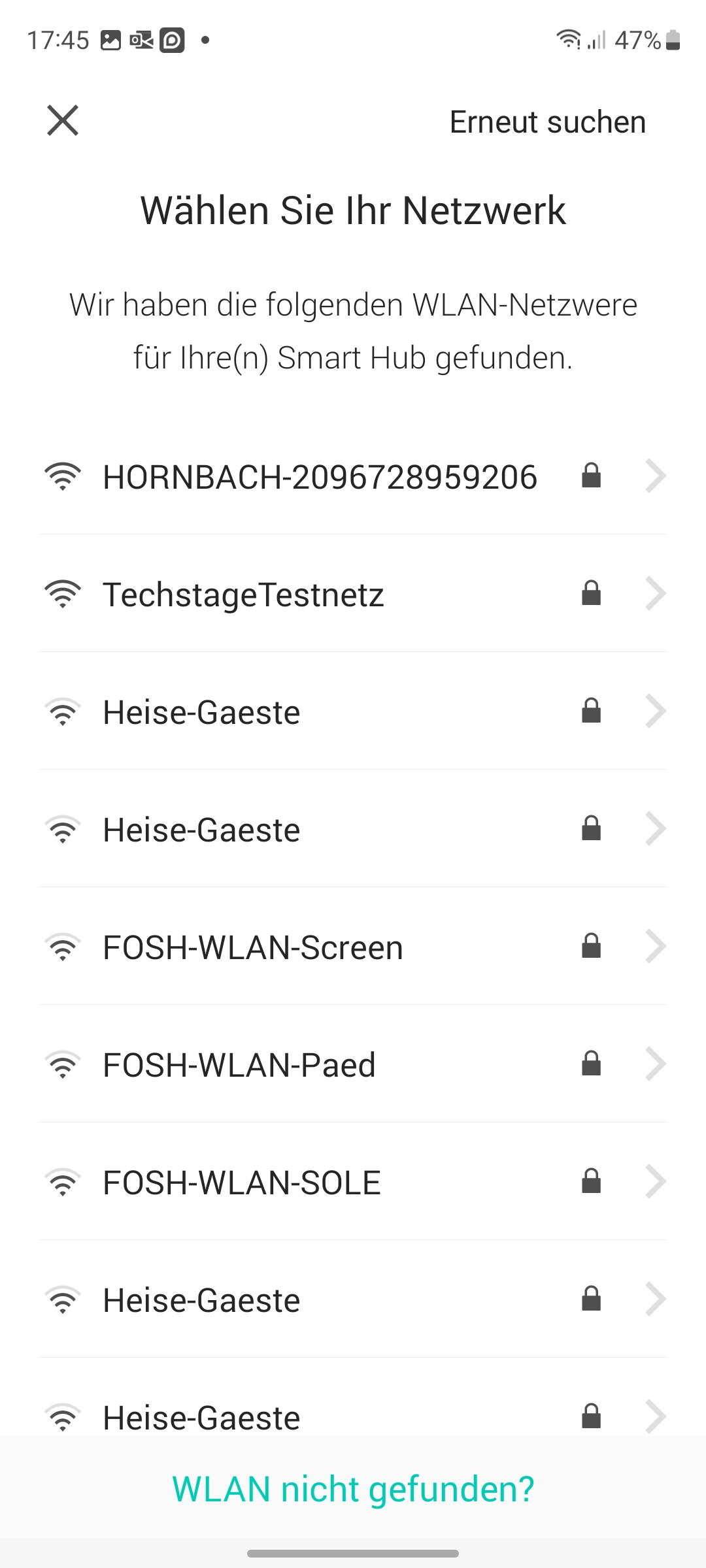Das Gateway muss anschließend mit dem WLAN-Router gekoppelt werden. Hierfür kommen allerdings nur 2,4 GHz für WLAN-Netzwerke infrage. Bei Routern, die 5 GHz und 2,4 GHz unter einer SSID betreiben, kann es passieren, dass die Koppelung nicht funktioniert. In diesem Fall muss man die Netze auf zwei SSIDs aufteilen oder das 5-GHz-Netz für den Anlernprozess kurz ausschalten. Nachdem das Gateway hinzugefügt wurde, kann man nun das Thermostat anlernen. Befindet es sich nicht im Kopplungsmodus, lässt sich dieser durch dreimaliges Drücken auf das Display auslösen. Das grüne WLAN-Symbol im Display beginnt jetzt zu blinken. Die Assistent-geführte Koppelung bereitet im Test keinerlei Probleme, sodass Gateway und Thermostat nach wenigen Minuten einsatzbereit sind (siehe auch Bildergalerie).