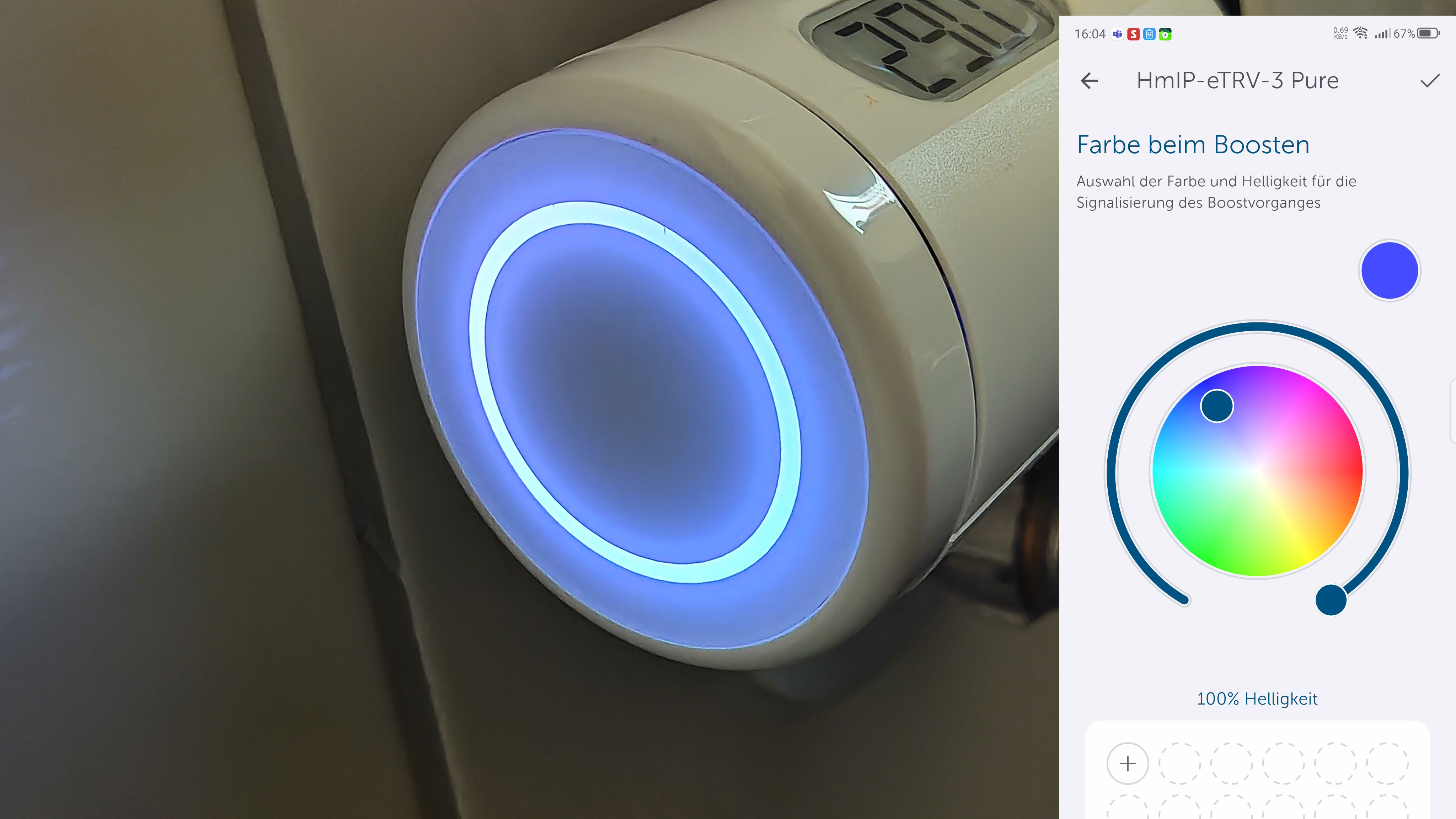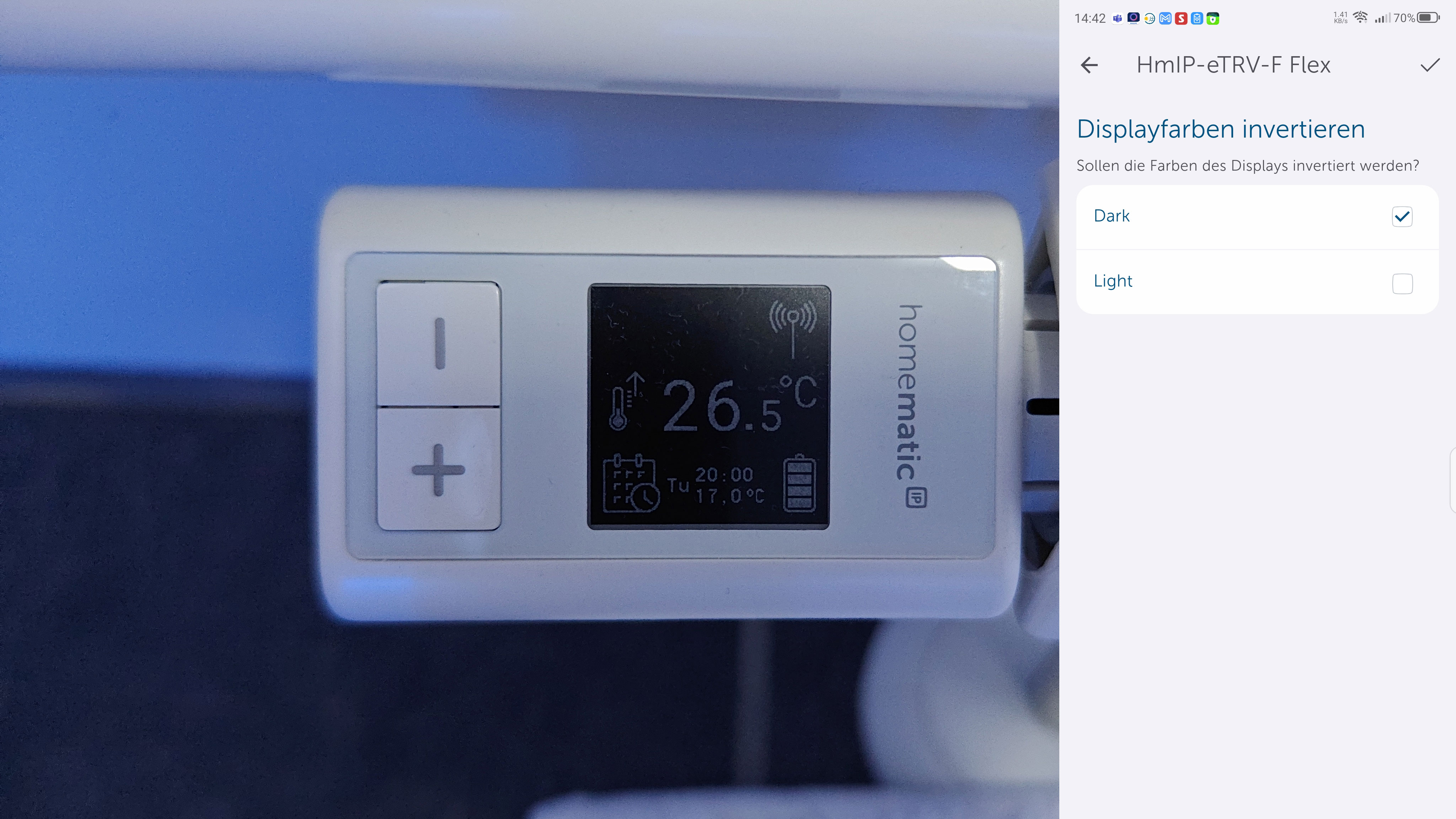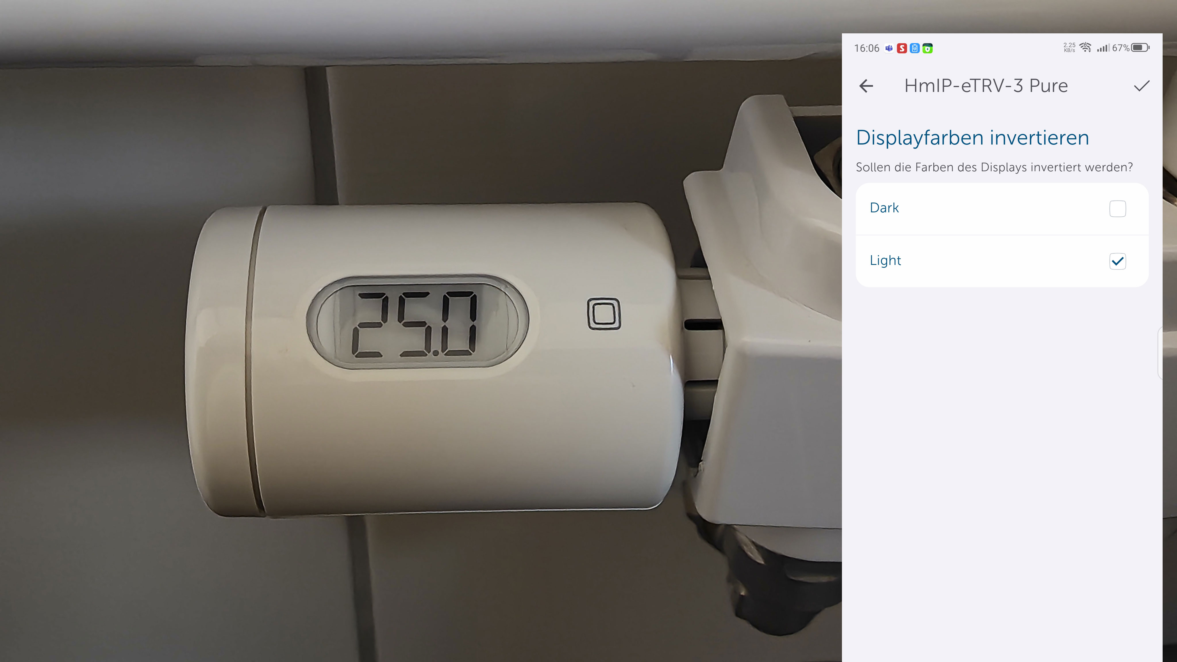 Homematic IP Evo: Praktisch – Per App lässt sich die LED-Anzeige des Thermostats drehen. TechStage.de