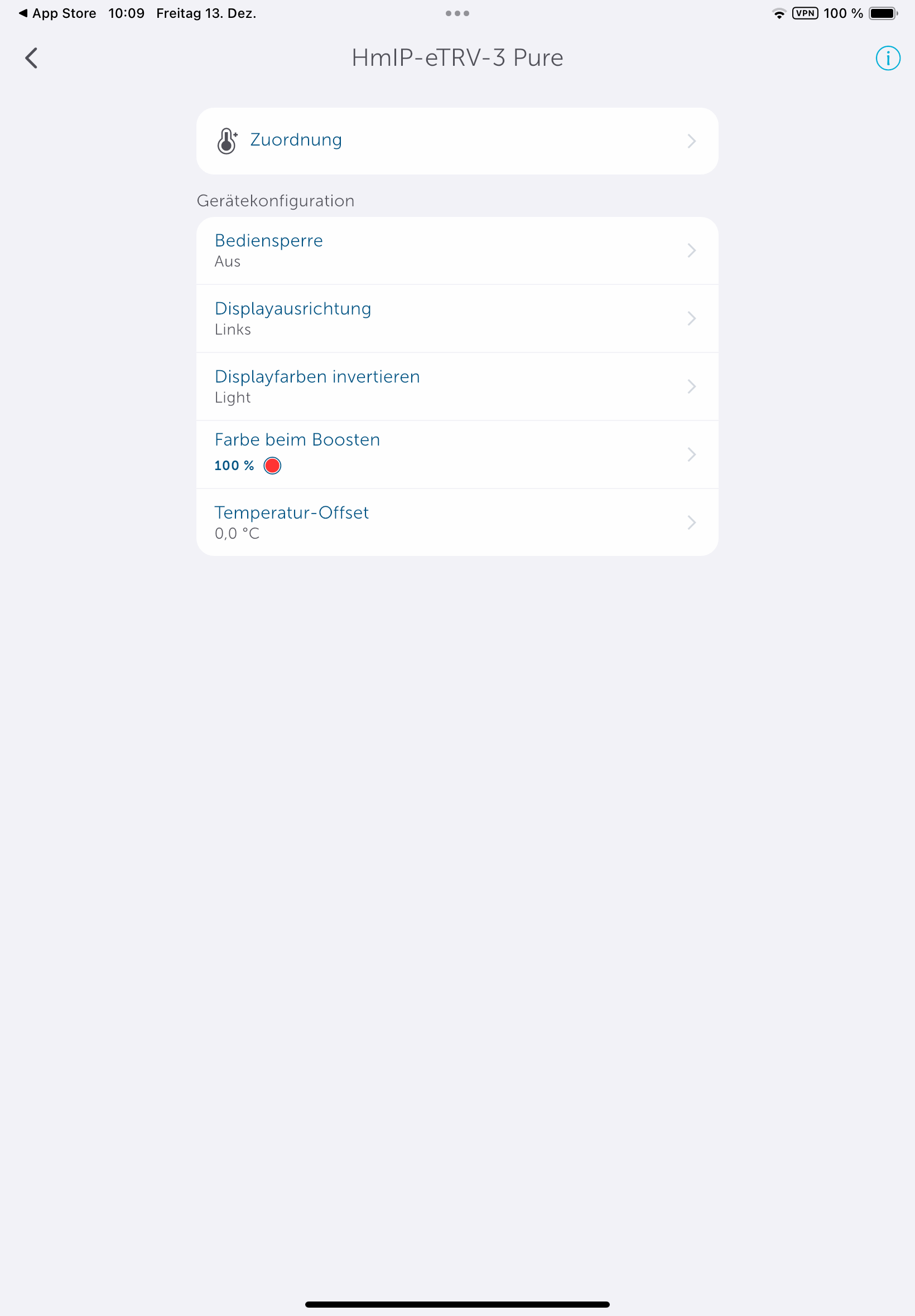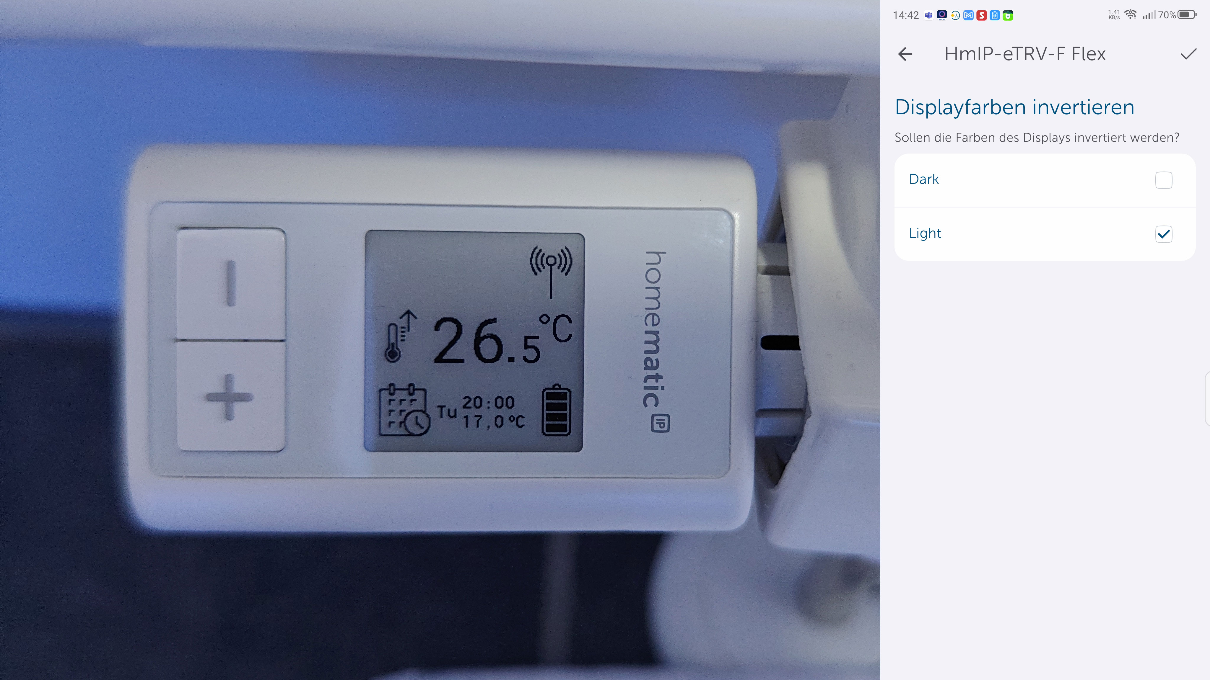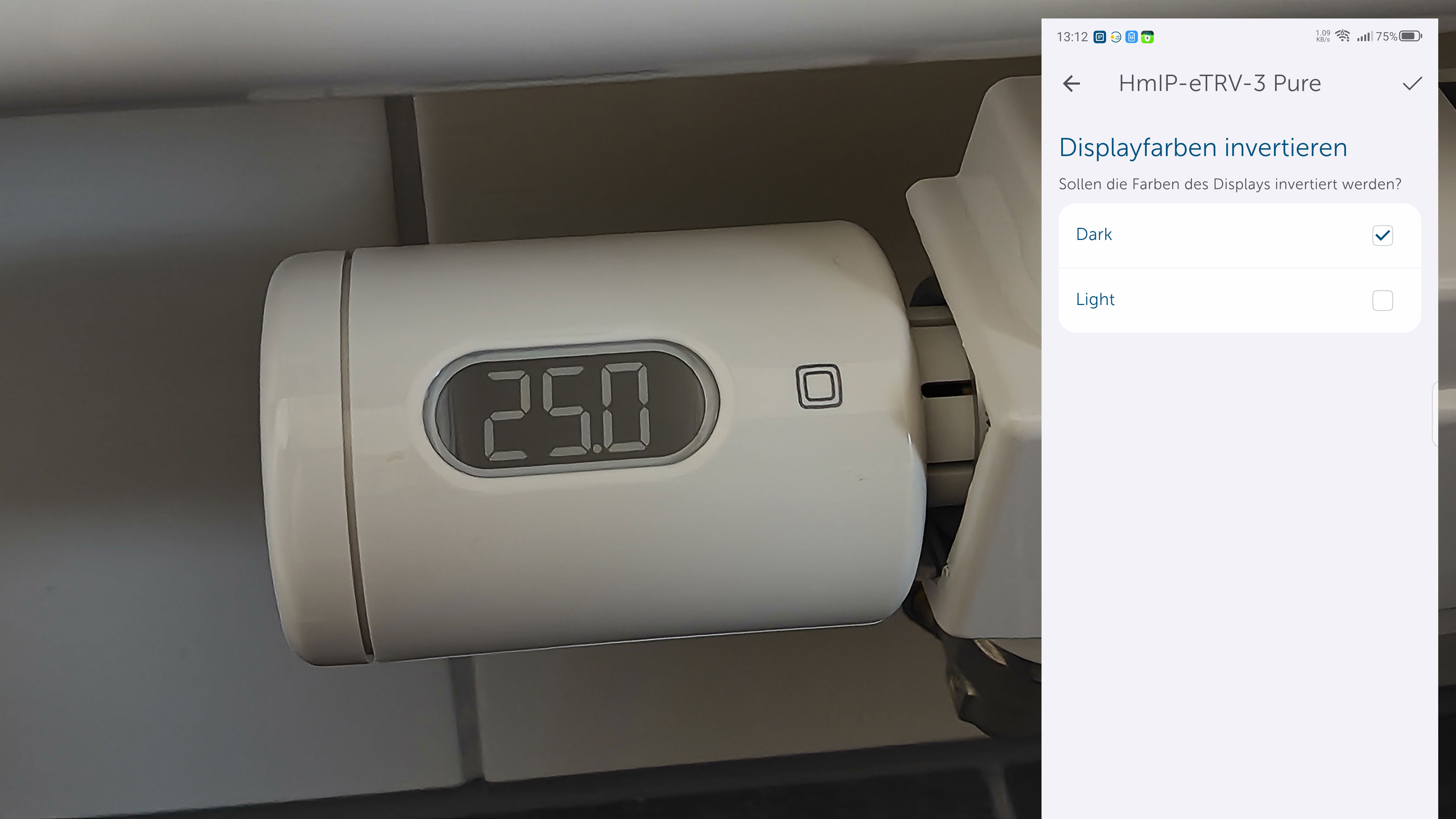 Homematic IP Evo: Praktisch – Per App lässt sich die LED-Anzeige des Thermostats drehen. TechStage.de