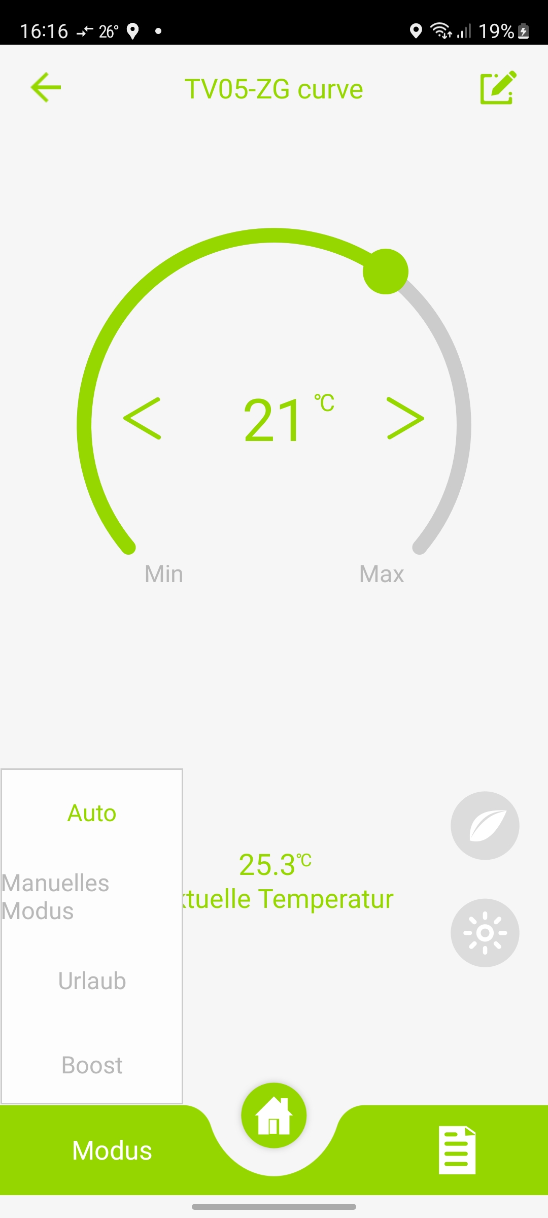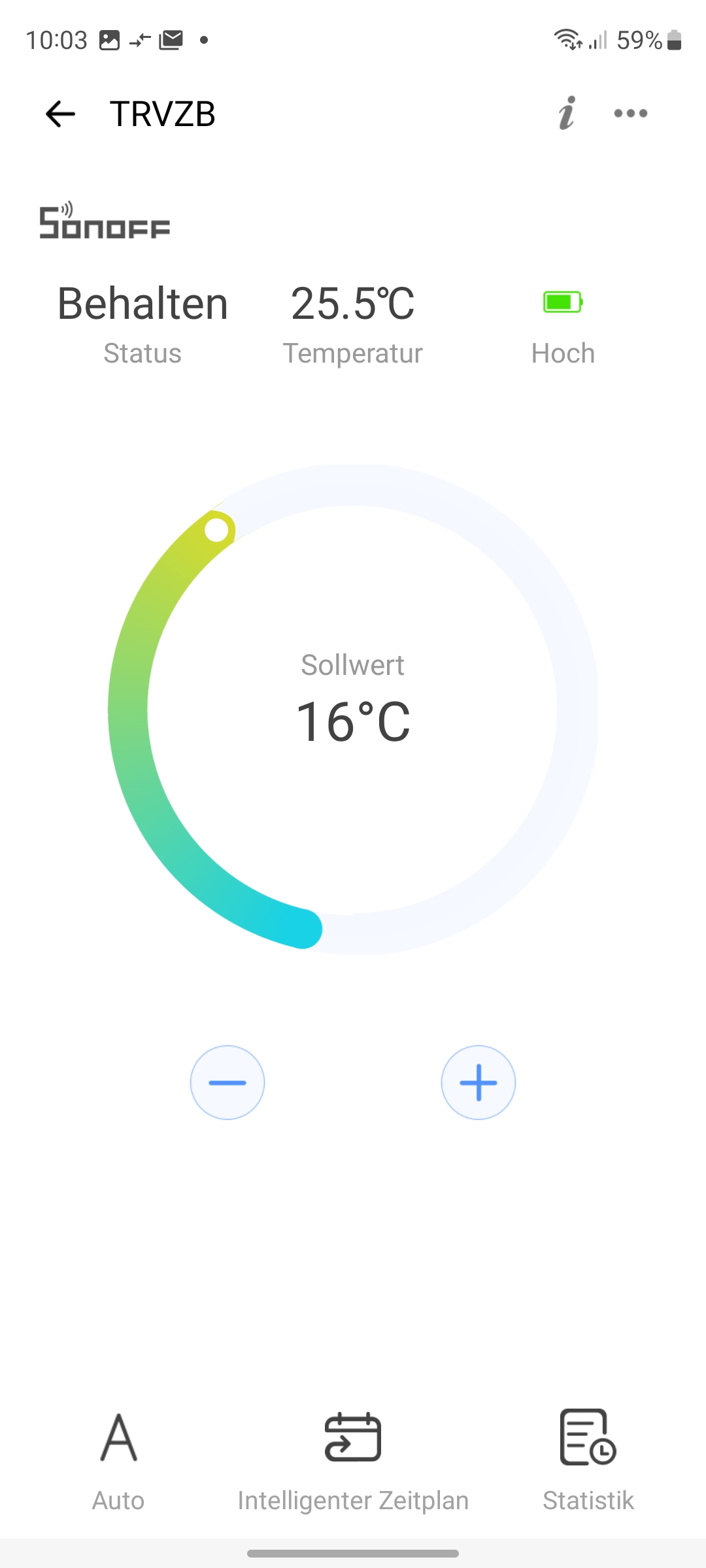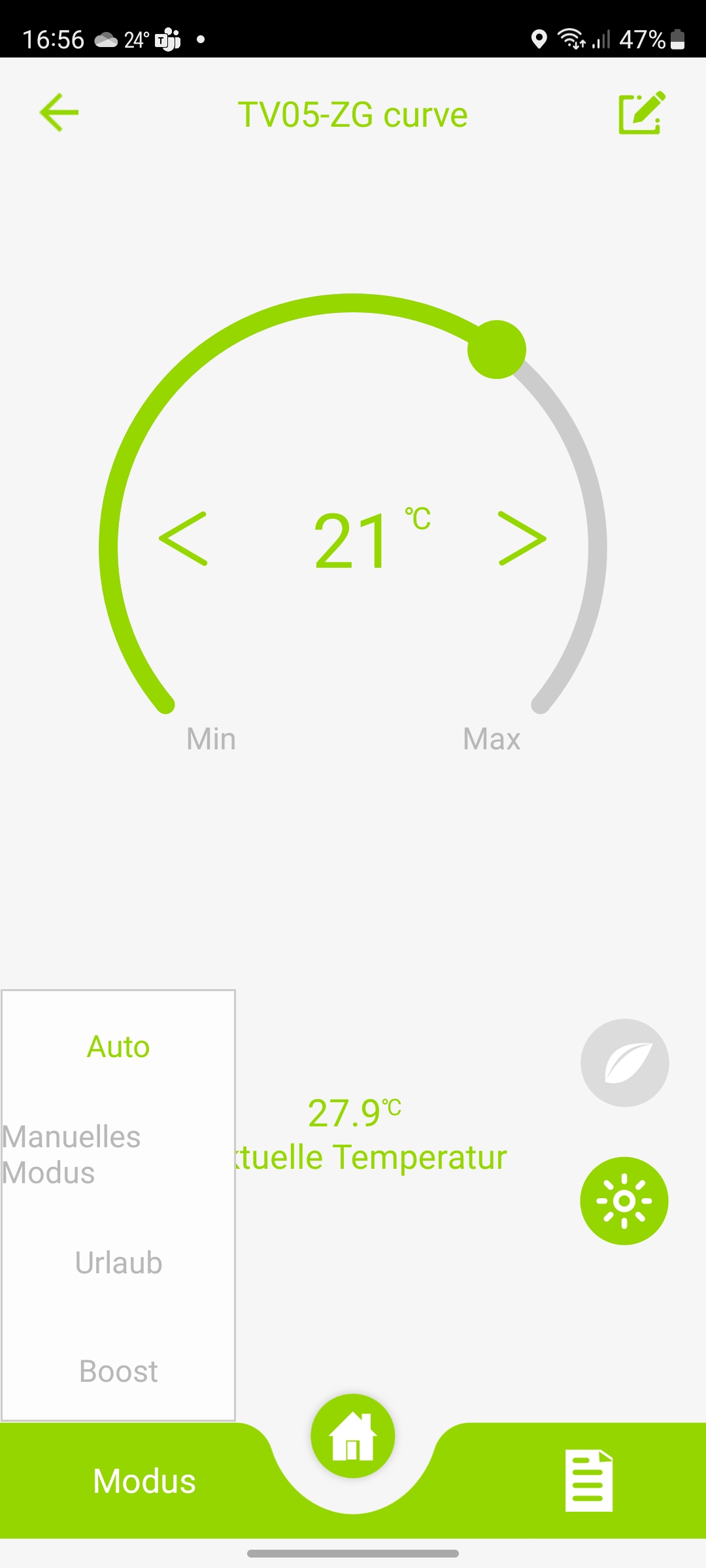 Im manuellen Modus bestimmt der Nutzer die Soll-Temperatur über eine Ringskala. Dafür muss das Smartphone nicht im WLAN sein, die App funktioniert auch ortsunabhängig vollumfänglich. Es dauert etwa 30 Sekunden, dann reguliert das Thermostat den Heizkörper. Der Motor, der das Ventil steuert, ist zwar nicht besonders laut, aber dennoch deutlich hörbar. Empfindliche Naturen könnten sich davon hauptsächlich im Schlafzimmer gestört fühlen.