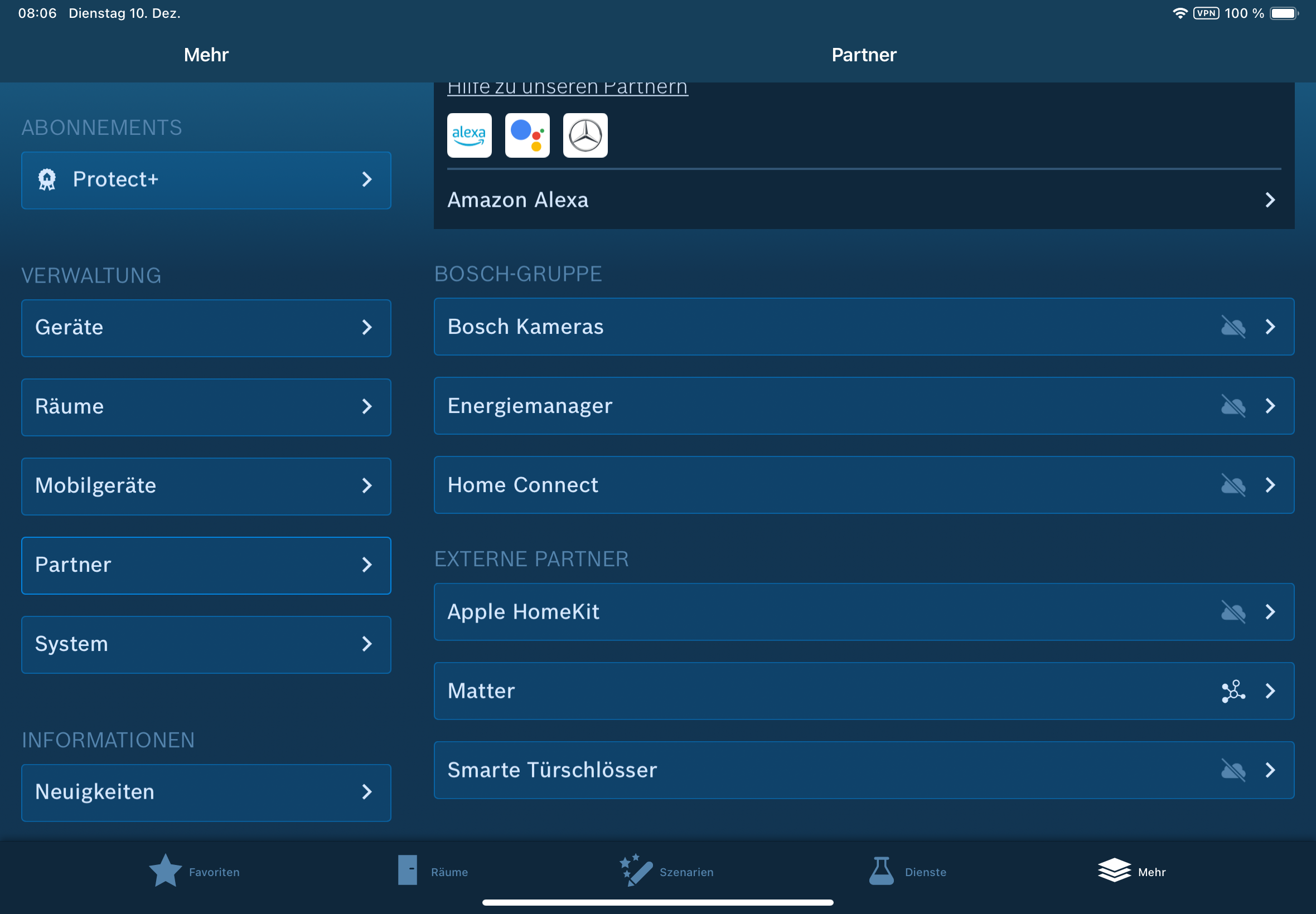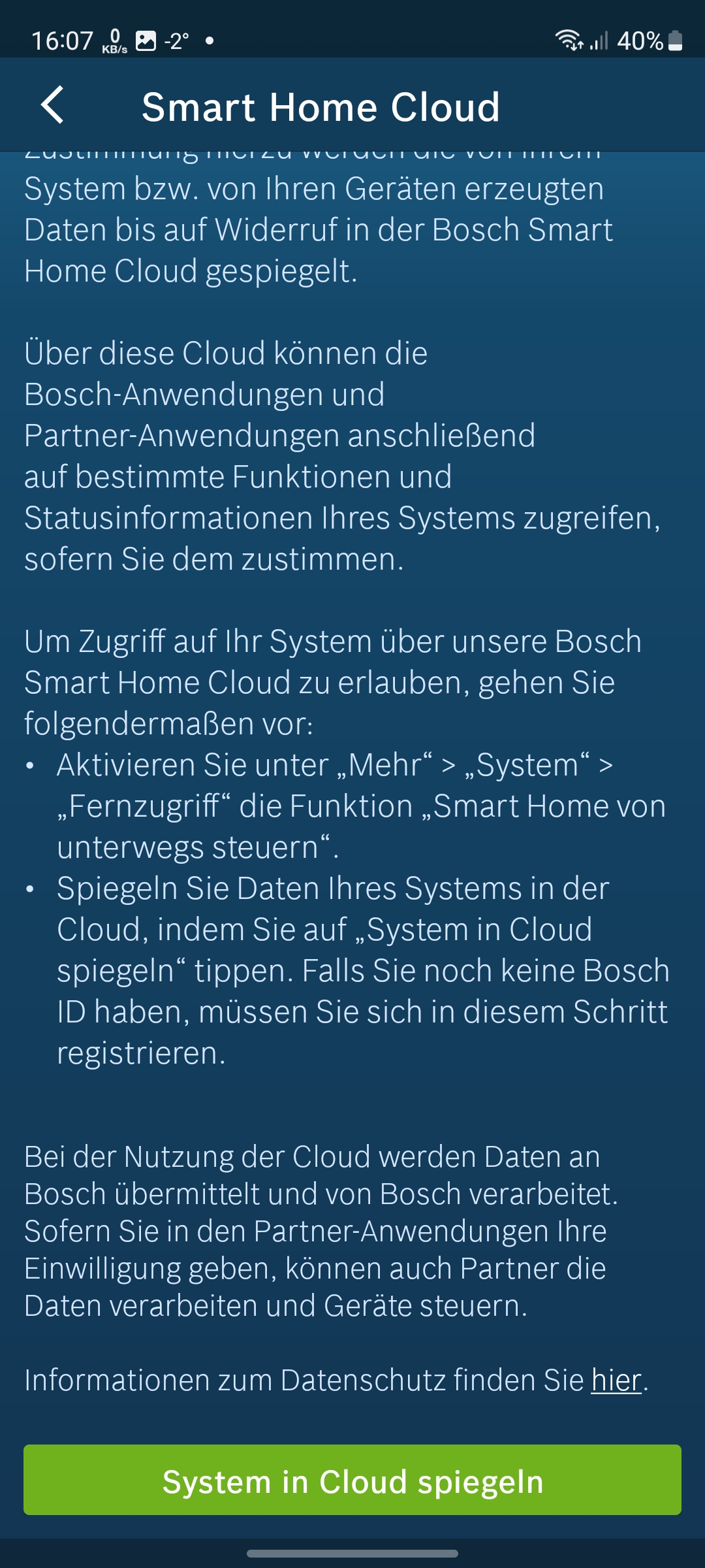 Wer die Bosch-Heizlösung auch unter Homekit steuern möchte, muss die Geräte mit der Bosch-Cloud verbinden. Das gilt auch für die Koppelung mit den Sprachassistenten Amazon Alexa und Google Assistant. Hierfür ist allerdings ein Nutzerkonto erforderlich. Wer das nicht wünscht, verzichtet auf die Cloud-Nutzung und steuert die an den Smart Home Controller II angebundenen Komponenten lokal – ganz ohne Konto und Cloud, was sicher vielen Anwendern aus Datenschutzgründen gefallen dürfte.