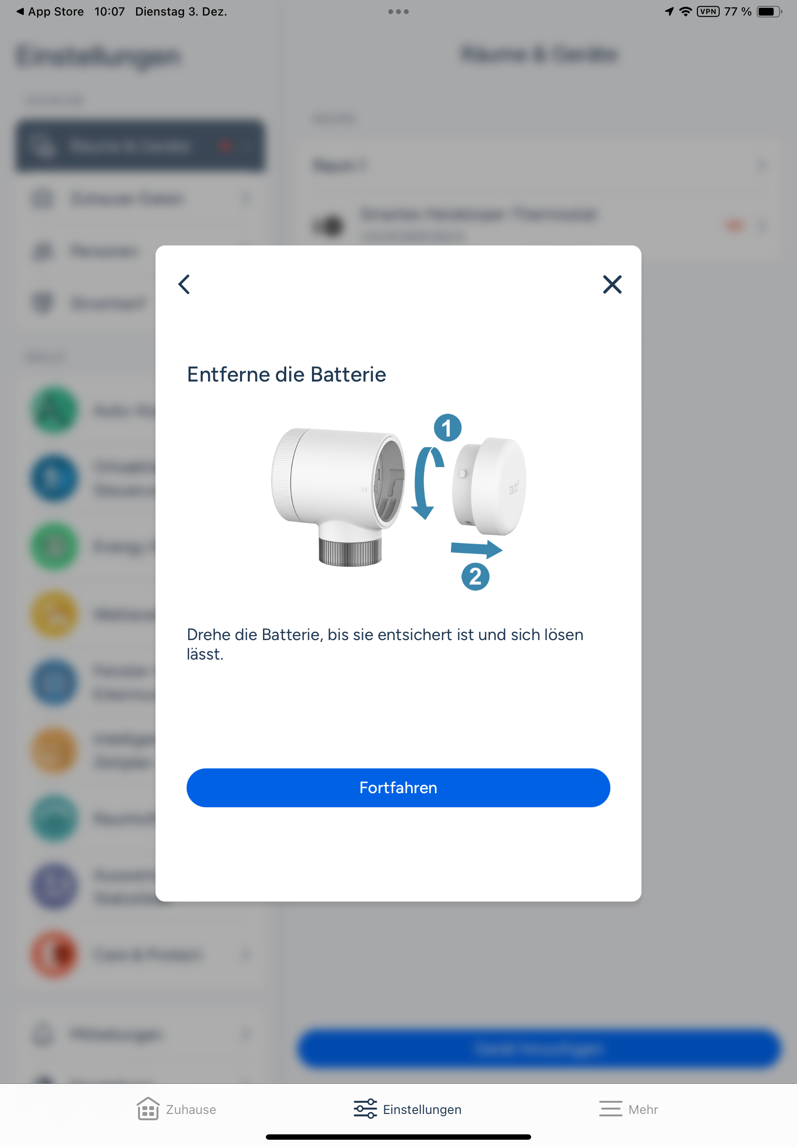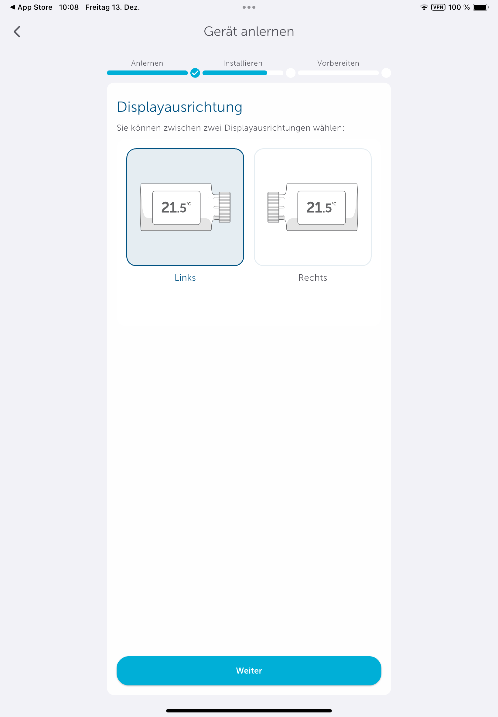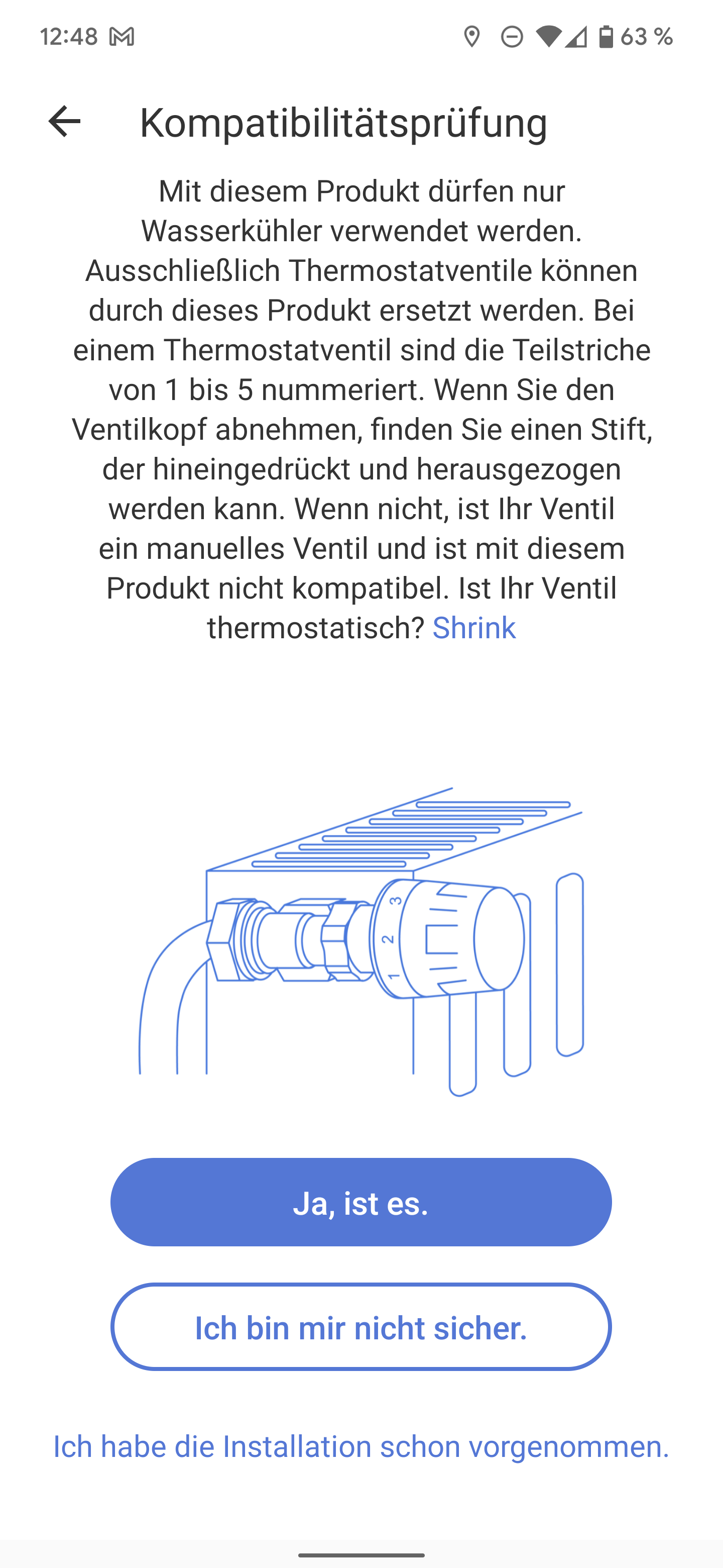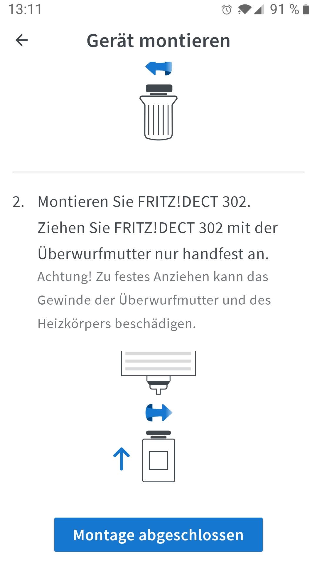 Die einzelnen Installationsschritte werden durch einen Installationsassistenten detailliert erklärt und sollten keine Probleme bereiten. Jetzt wird das Thermostat an den Heizkörper montiert. Standardmäßig passt es auf herkömmliche Schraubgewinde mit M30 x 1,5 mm (Passende Adapter für Danfoss RA und Danfoss RAVL liegen bei). Die App fordert dann eine Kalibrierung des Thermostats. Nach dieser ist das smarte Heizkörperthermostat einsatzbereit.