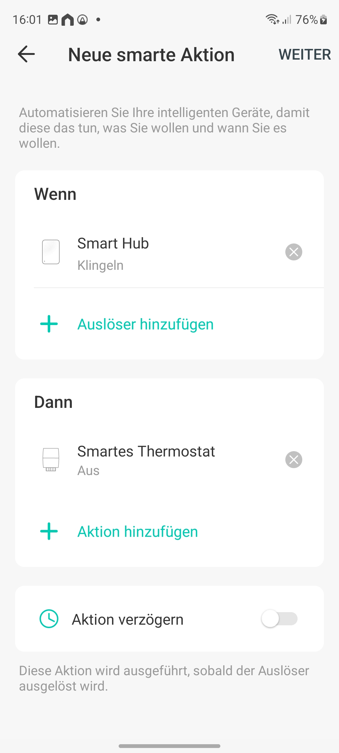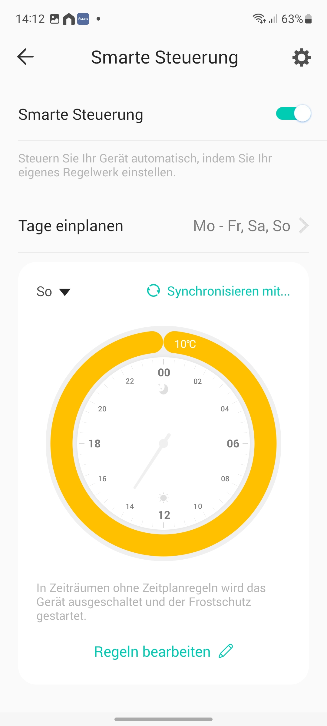 Zusätzliche Regeln und Automatisierungen können Anwender unter Smart definieren. Damit lassen sich etwa fein abgestufte Heizpläne in Abhängigkeit zu externen Temperatursensoren erstellen. Außerdem kann man sich damit zu bestimmten Ereignissen wie einem starken Temperaturabfall benachrichtigen lassen. Wer Heizpläne anhand des Standorts bestimmter Personen definieren möchte (Geofencing), greift zur Tuya-App, da die Brennenstuhl-Lösung dieses Feature nicht unterstützt.