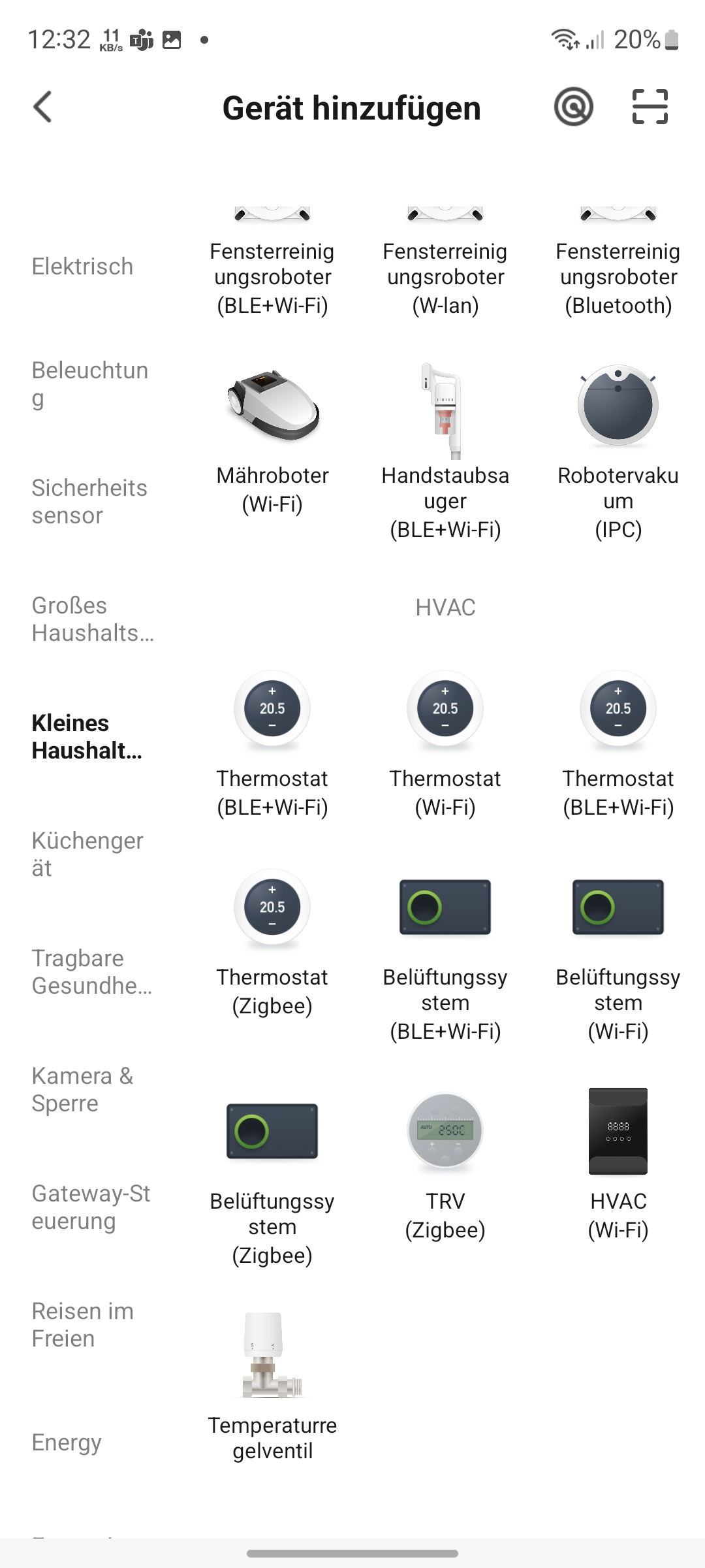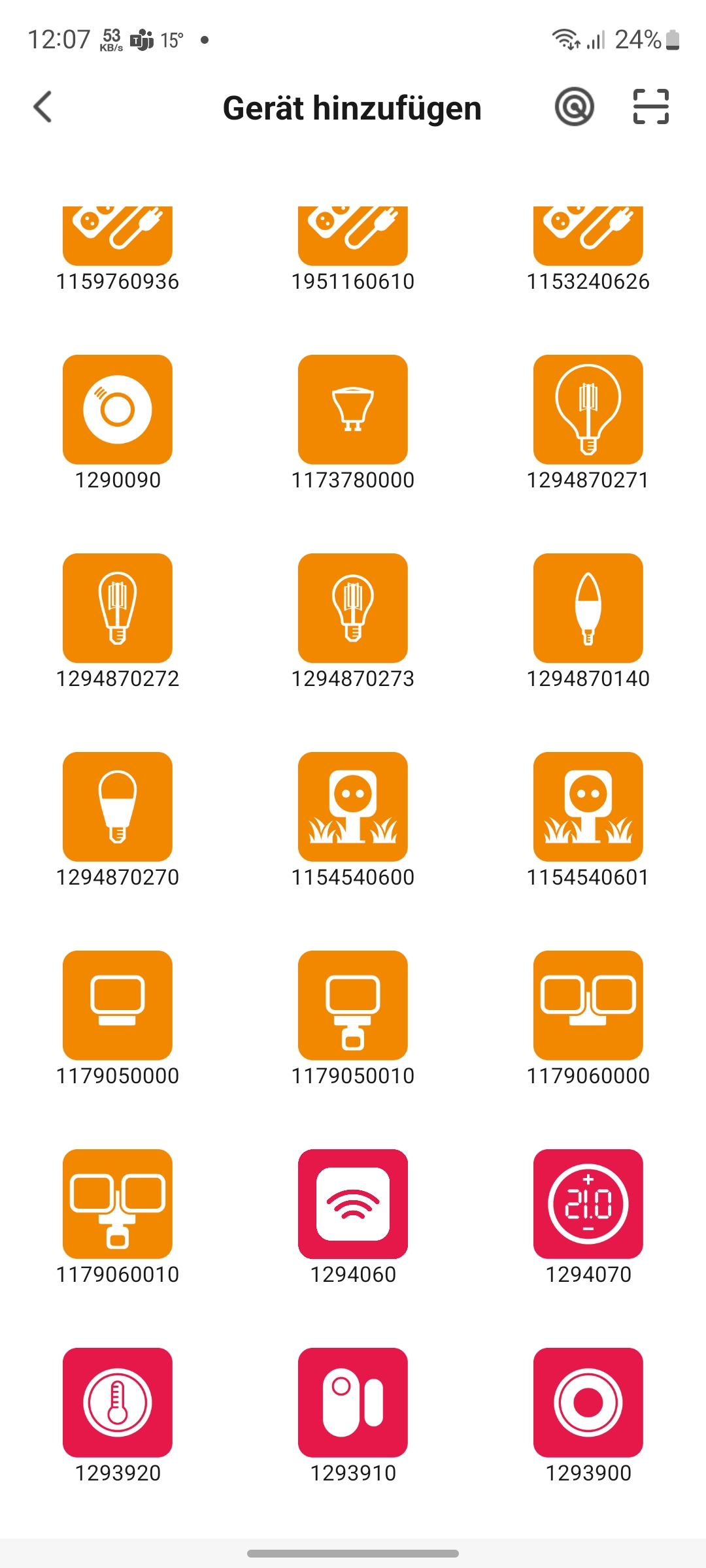 Jetzt kann das Gerät in der App hinzugefügt wird. Hierfür tippt man auf das +-Symbol rechts oben und anschließend auf Gerät hinzufügen und wählt in der Brennenstuhl-App das rote WLAN-Symbol mit der Nummer 1294060 aus. Statt eines Namens verwendet Brennenstuhl zur Bezeichnung der Geräte in der App einfach die Artikelnummer. Wer die Tuya-App verwendet, wählt unter Gateway-Steuerung – Drahtloses Gateway (Zigbee) und für das Thermostat unter Kleines Haushalt ... - Thermostat (Zigbee) aus.