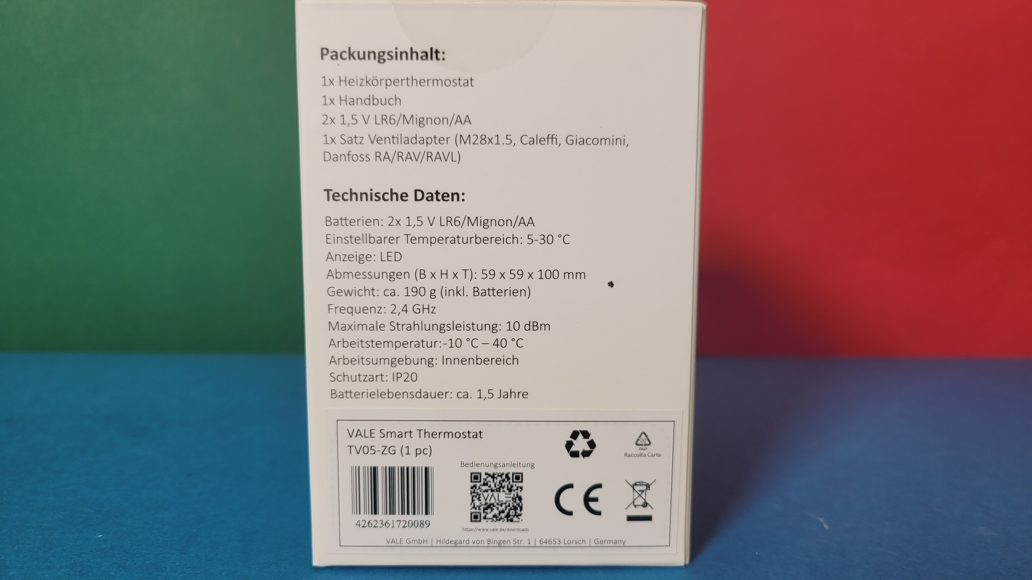 Das Brennenstuhl Heizkörperthermostat HT CZ 01 fällt mit 5,5 × 5,5 × 7,4 cm relativ kompakt aus und ähnelt nicht nur hinsichtlich der Abmessungen dem Aqara Radiator Thermostat E1 (Testbericht). Wie dieses bietet es ein farbiges LC-Display und auch der Drehregler zur Temperatureinstellung gleicht dem Aqara-Modell. Ähnlichkeiten finden sich auch im Inneren der Thermostate: Display und Batteriefach sind identisch. Selbst die mitgelieferten Batterien der beiden Modelle stammen vom selben Hersteller.