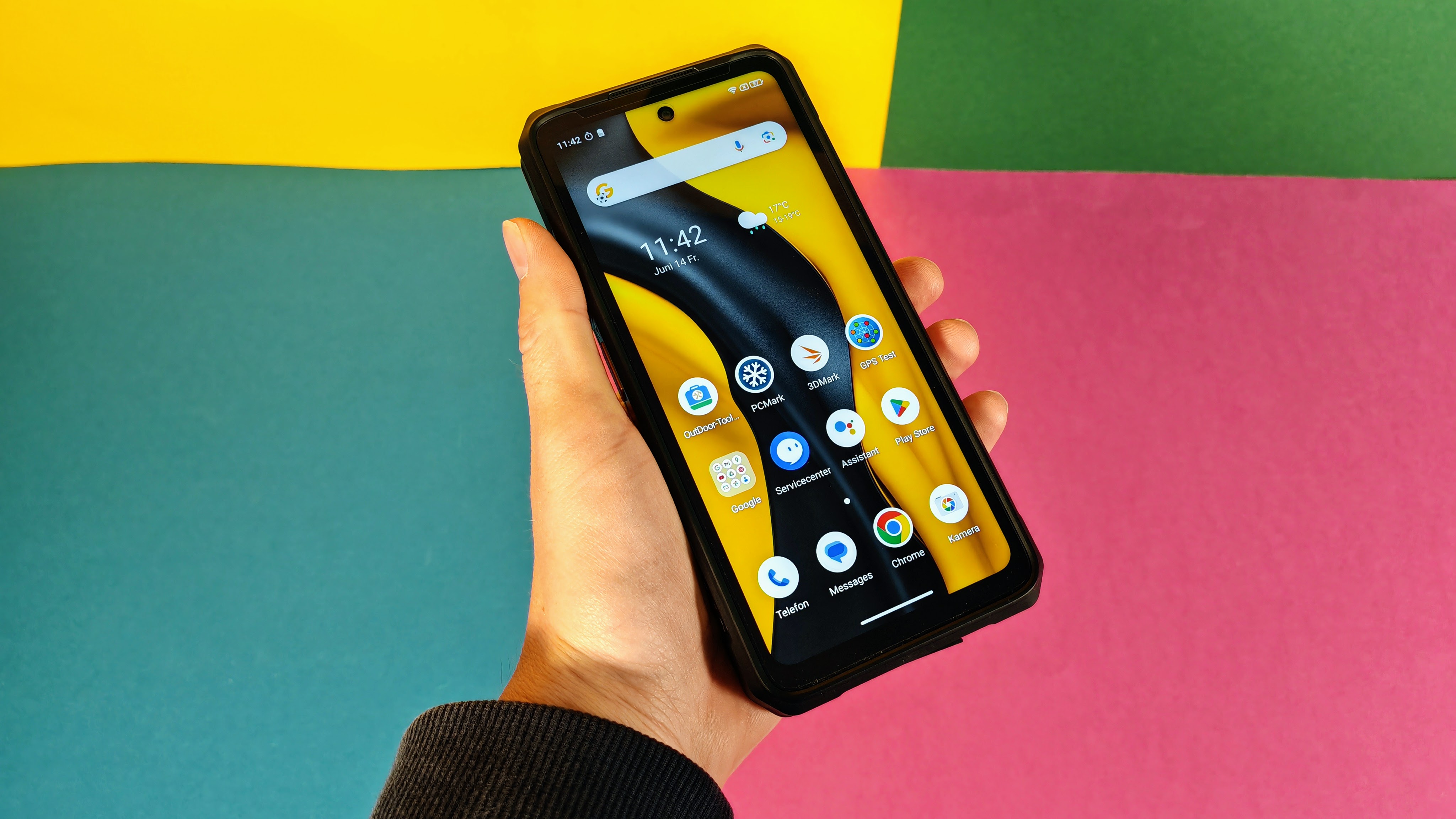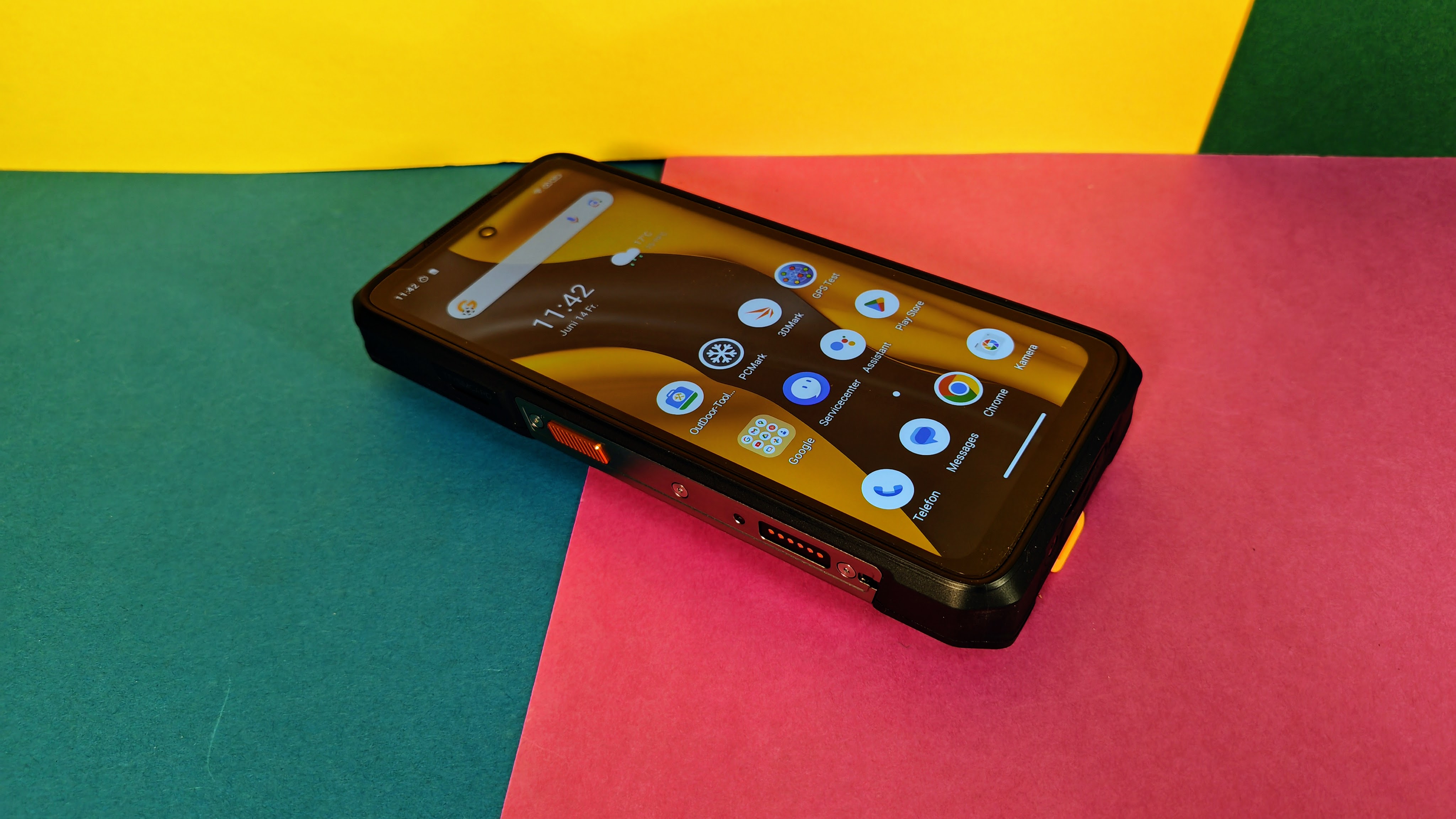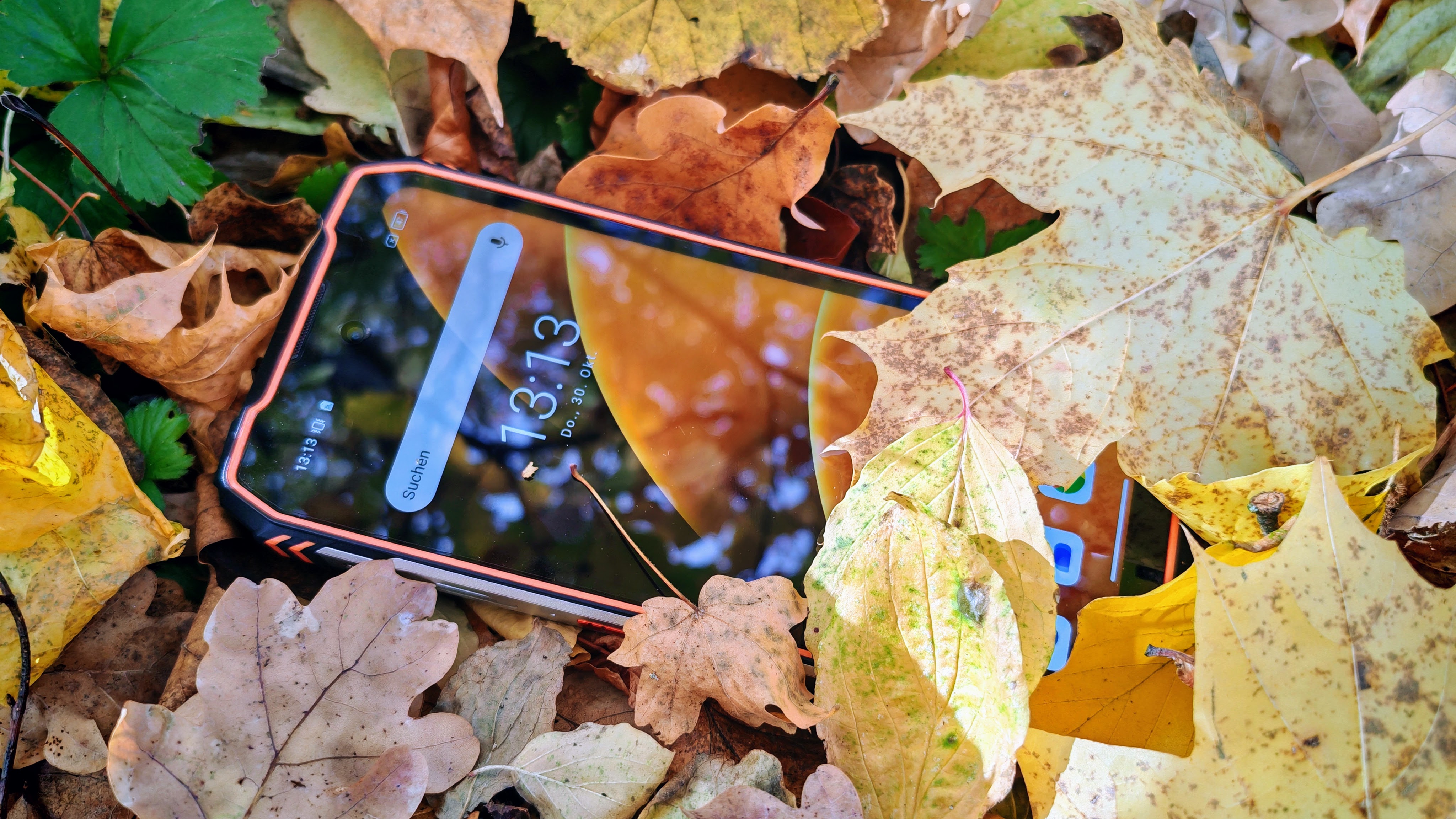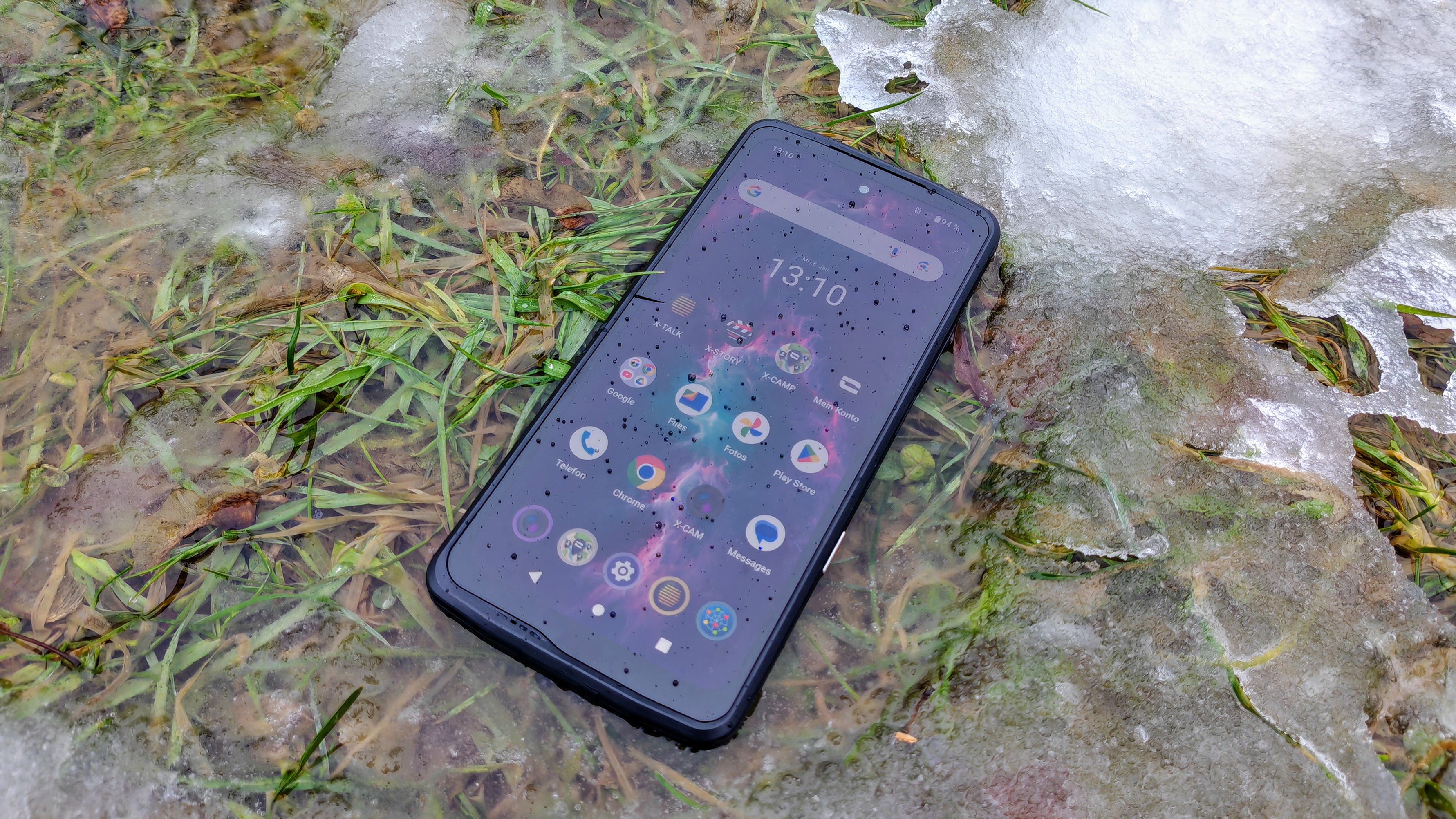 Dafür zeigt sich das Gerät im Alltag extrem robust. Im Test überstand es Stürze aus Schulterhöhe auf Asphalt ohne Schaden. Die obligatorische Militärzertifizierung nach MIL-STD-810H ist ebenso vorhanden wie die Schutzklasse IP69K. Damit ist das Gerät nicht nur staub- und wasserdicht, sondern hält heißen Flüssigkeiten stand. Laut Hersteller kann es sich unter Wasser für bis zu 30 Minuten in zwei Metern Tiefe aufhalten.