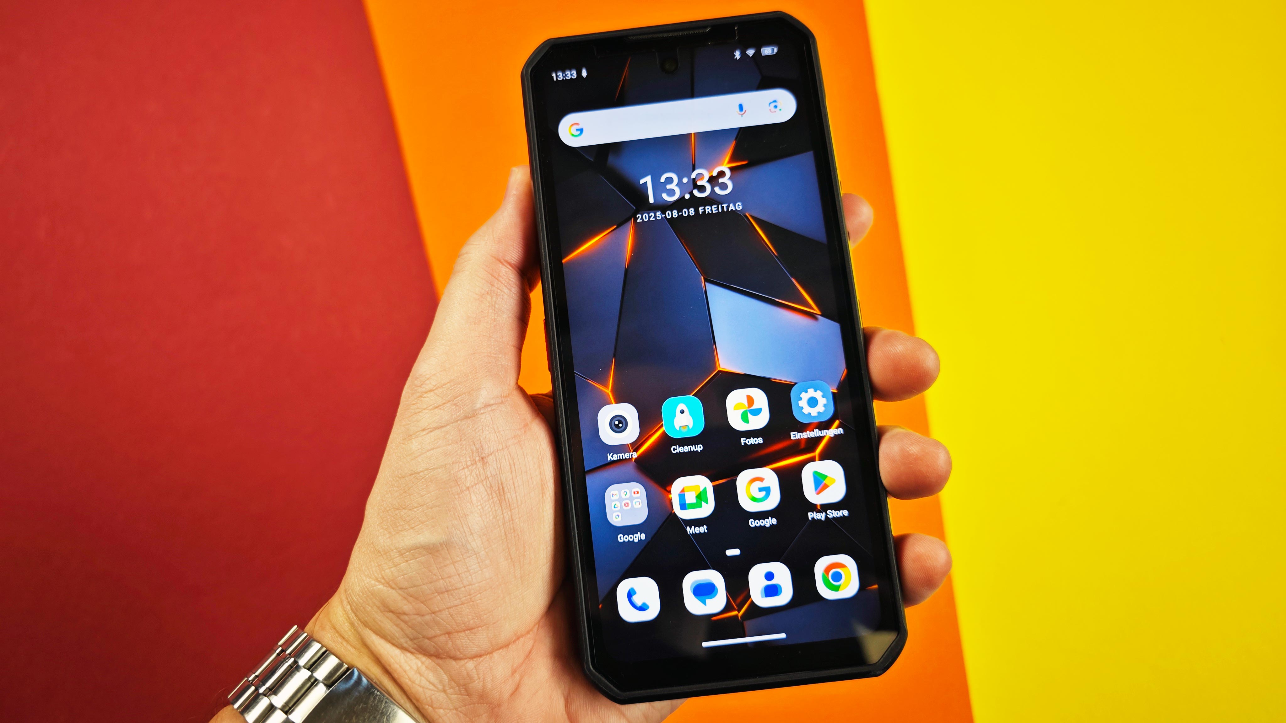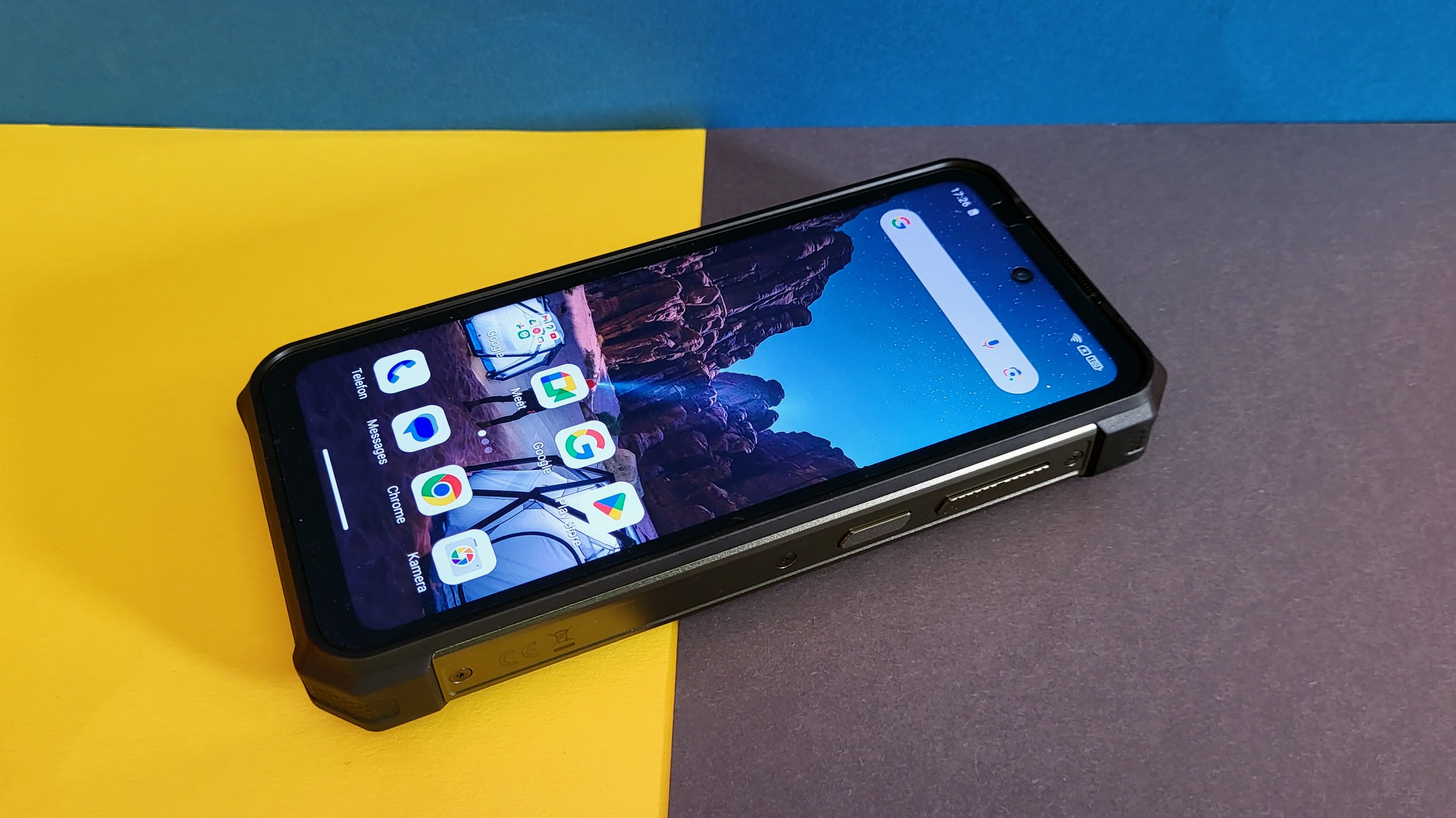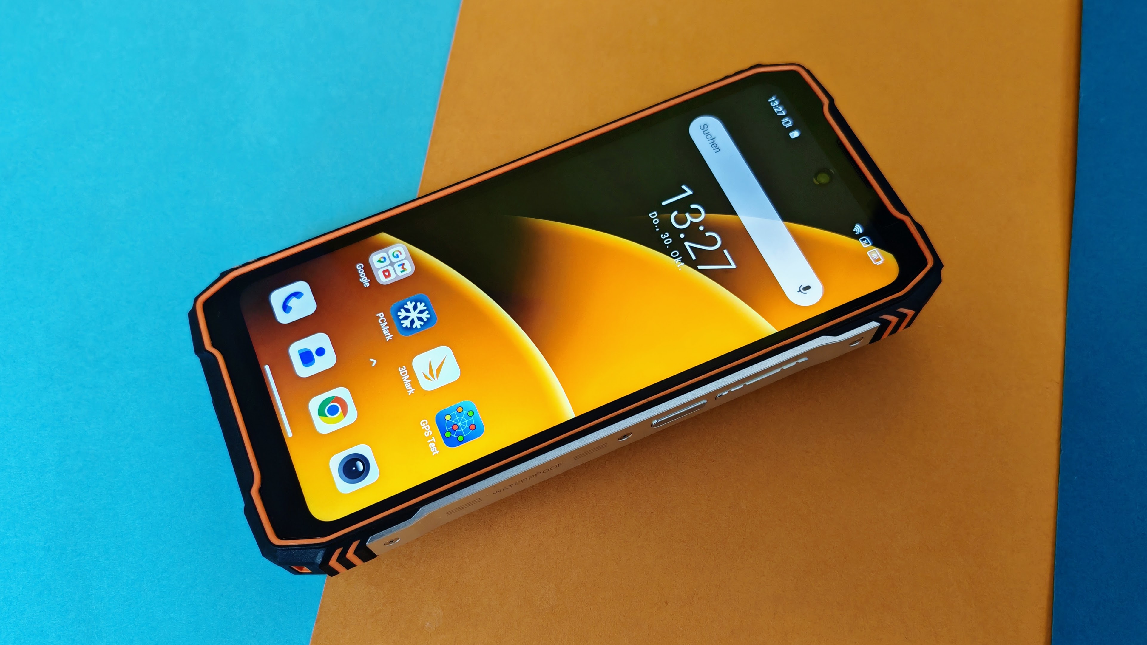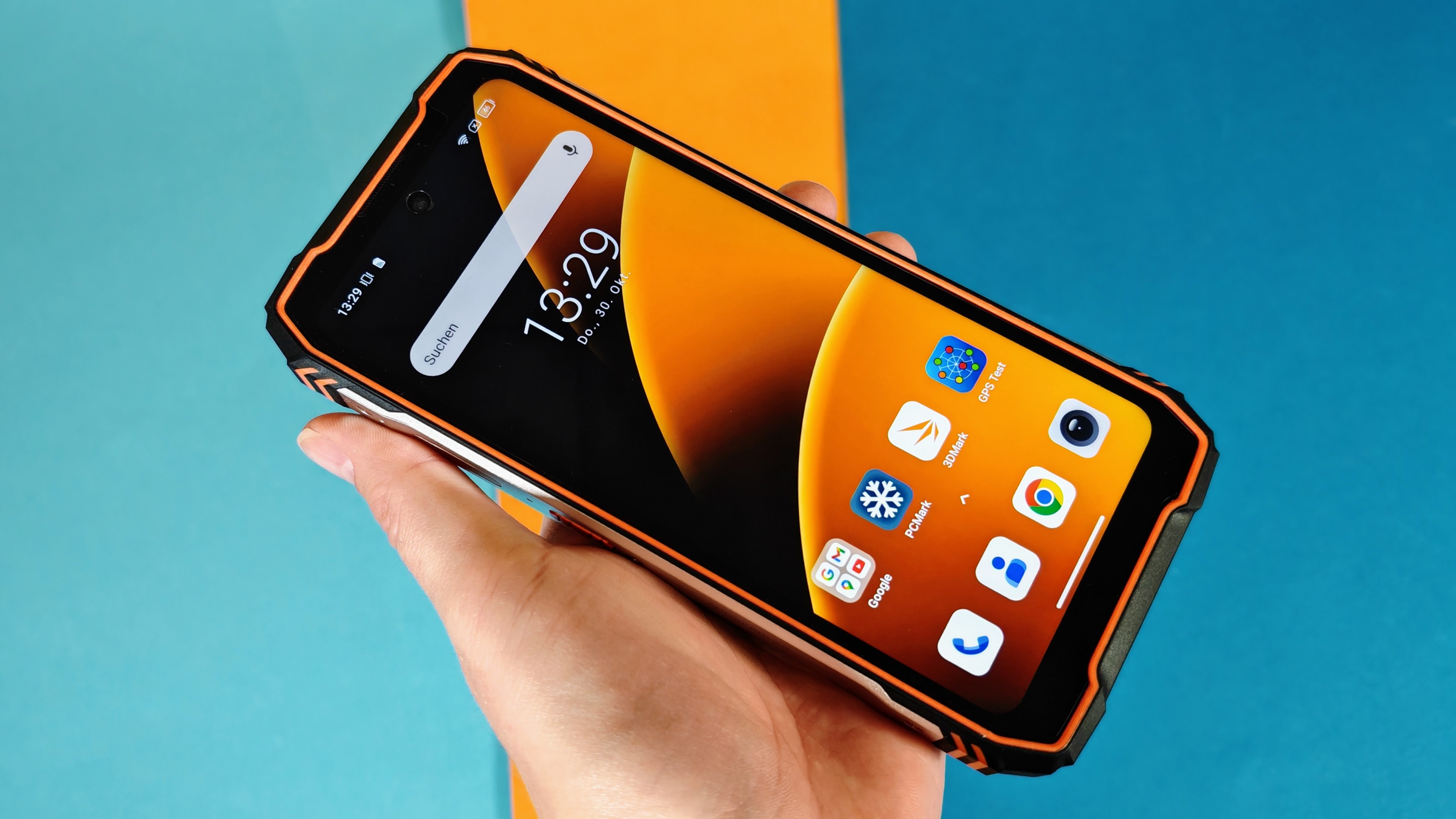 Dafür zeigt sich das Gerät im Alltag extrem robust. Im Test überstand es Stürze aus Schulterhöhe auf Asphalt ohne Schaden. Die obligatorische Militärzertifizierung nach MIL-STD-810H ist ebenso vorhanden wie die Schutzklasse IP69K. Damit ist das Gerät nicht nur staub- und wasserdicht, sondern hält heißen Flüssigkeiten stand. Laut Hersteller kann es sich unter Wasser für bis zu 30 Minuten in zwei Metern Tiefe aufhalten.