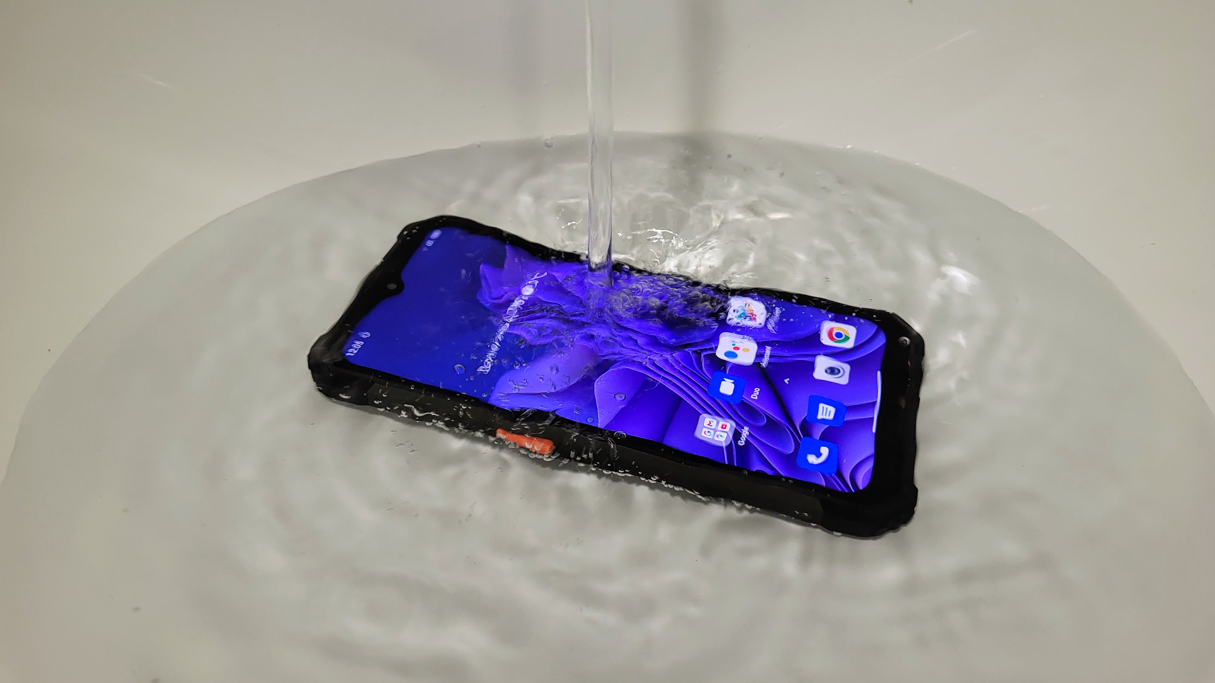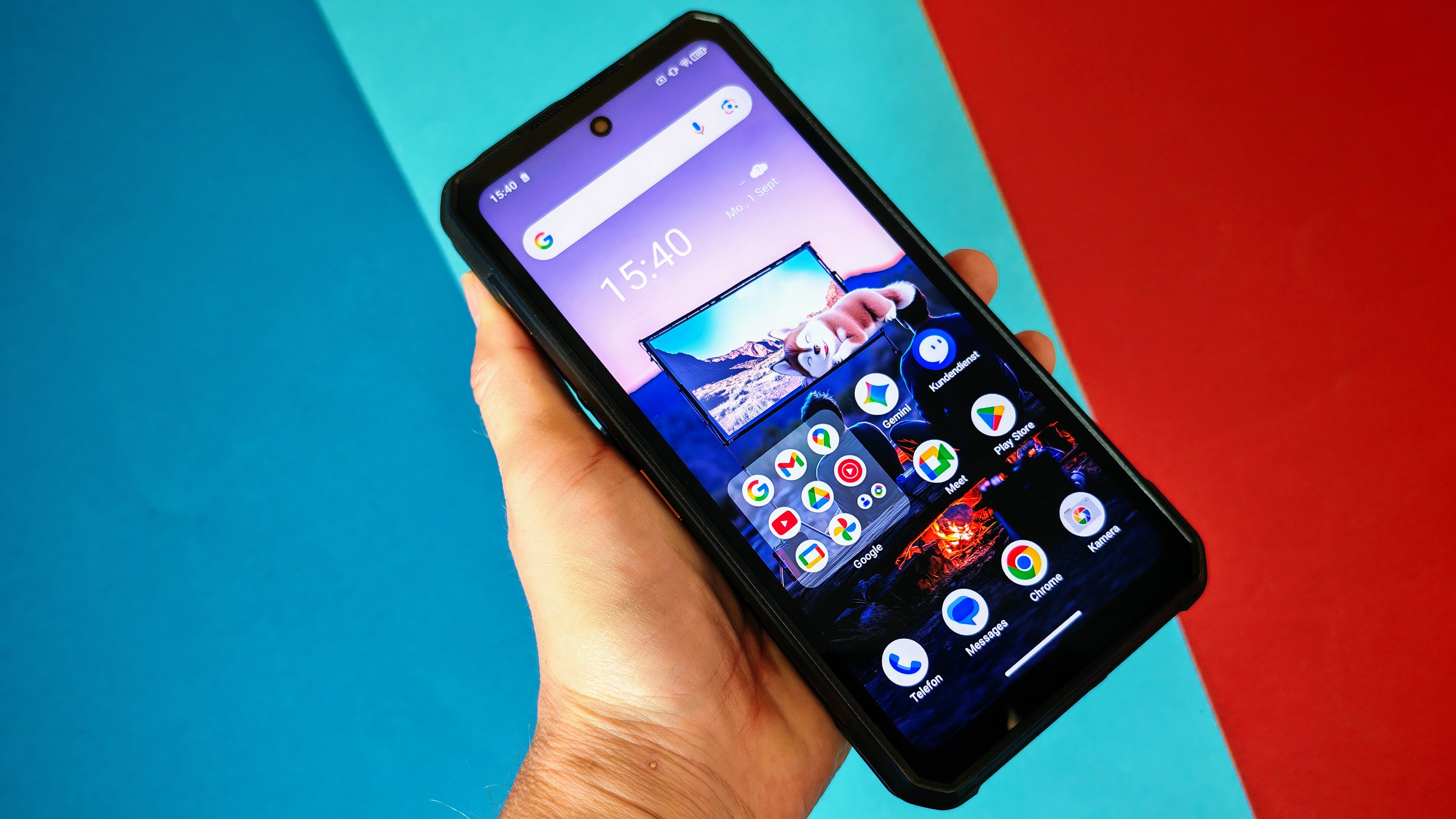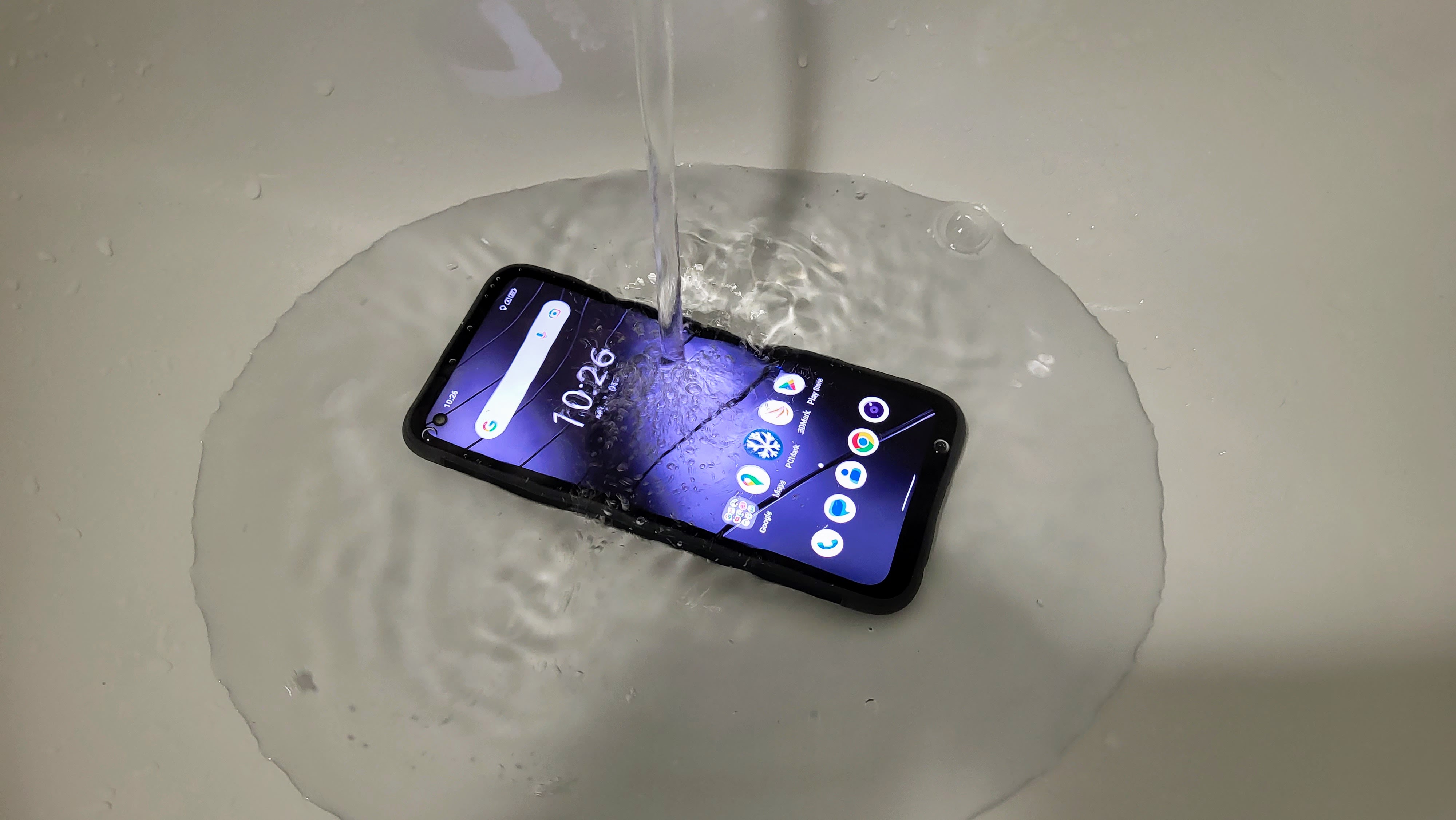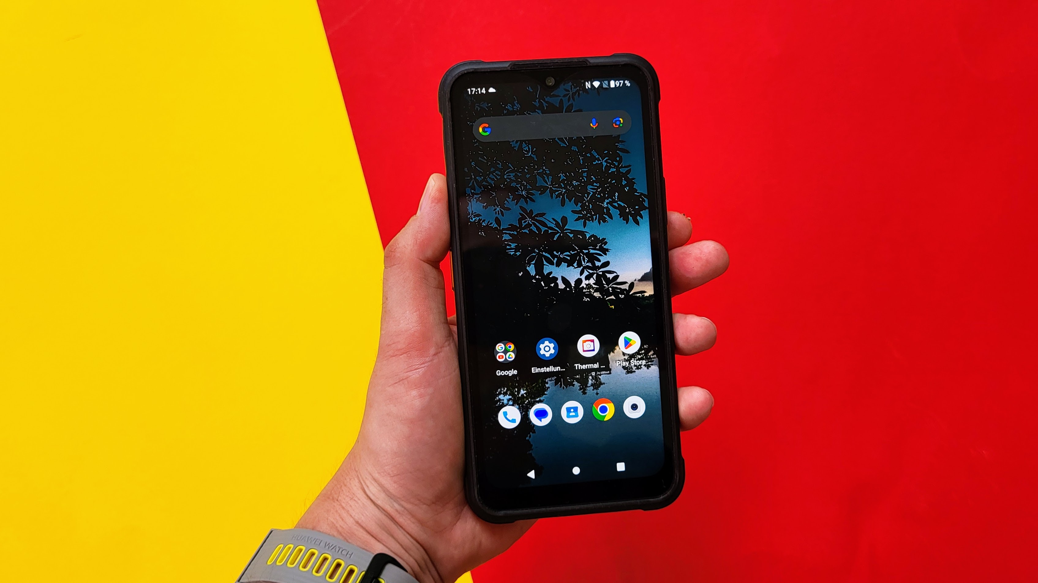 Dafür zeigt sich das Gerät im Alltag extrem robust. Im Test überstand es Stürze aus Schulterhöhe auf Asphalt ohne Schaden. Die obligatorische Militärzertifizierung nach MIL-STD-810H ist ebenso vorhanden wie die Schutzklasse IP69K. Damit ist das Gerät nicht nur staub- und wasserdicht, sondern hält heißen Flüssigkeiten stand. Laut Hersteller kann es sich unter Wasser für bis zu 30 Minuten in zwei Metern Tiefe aufhalten.
