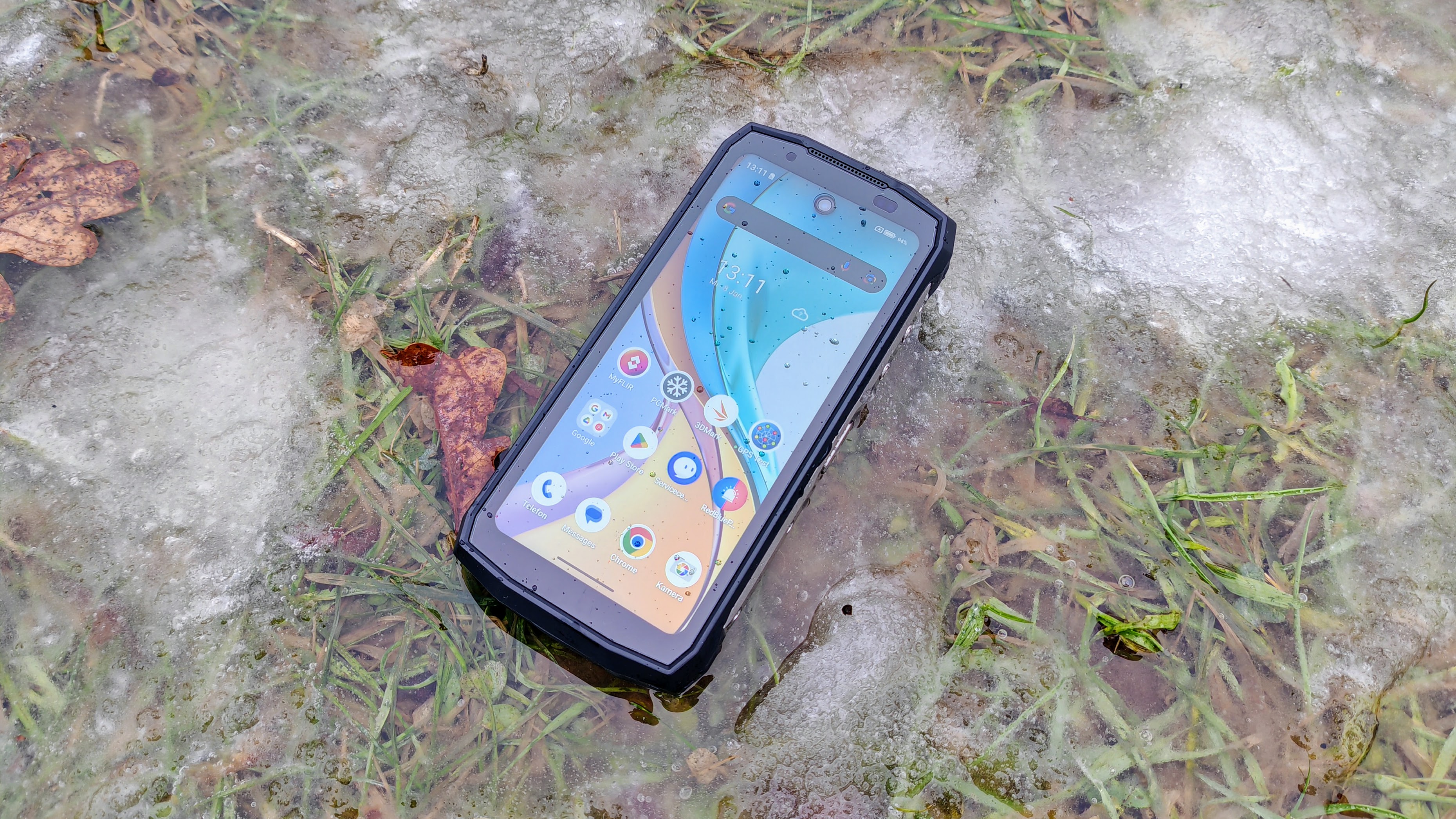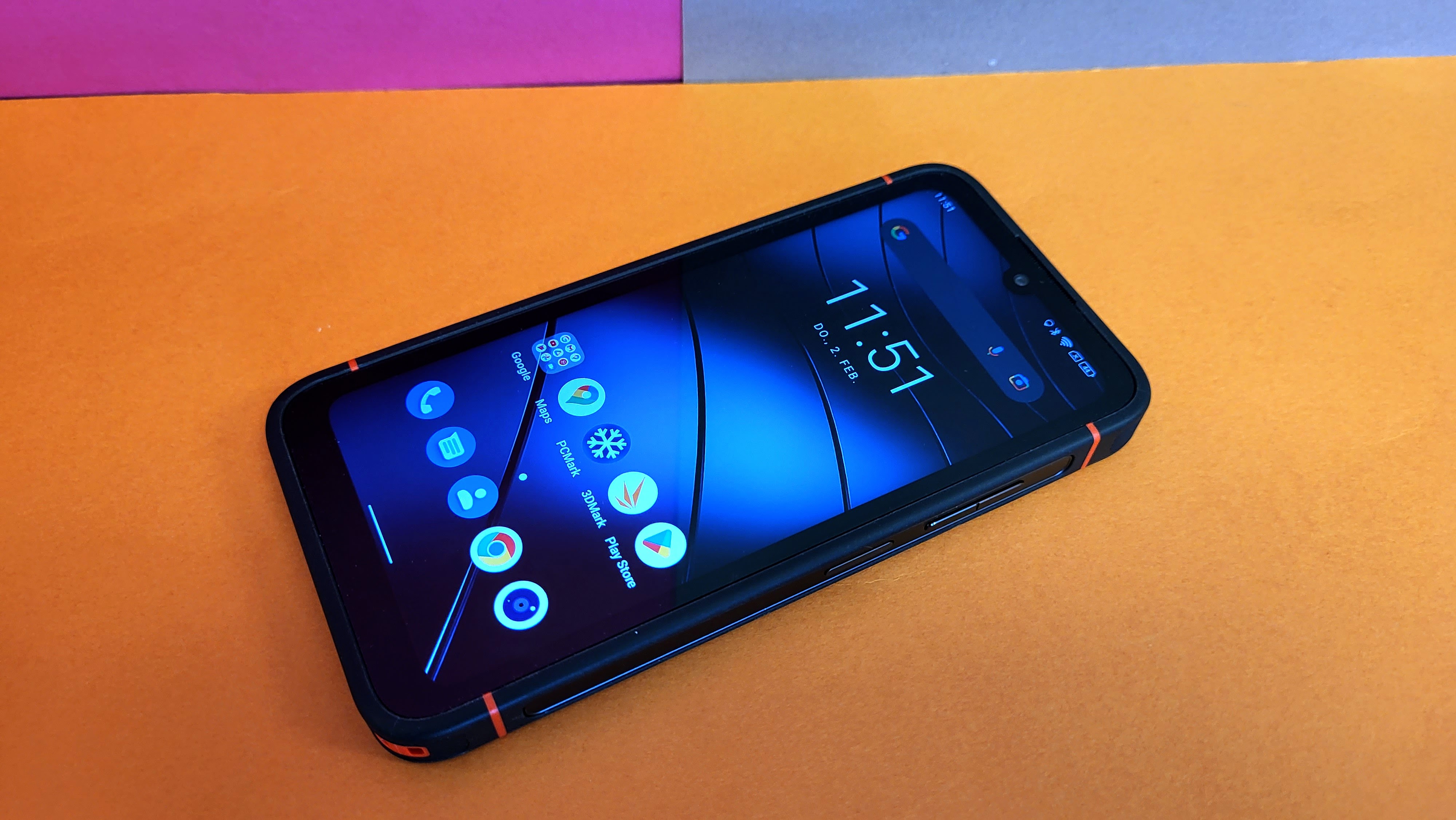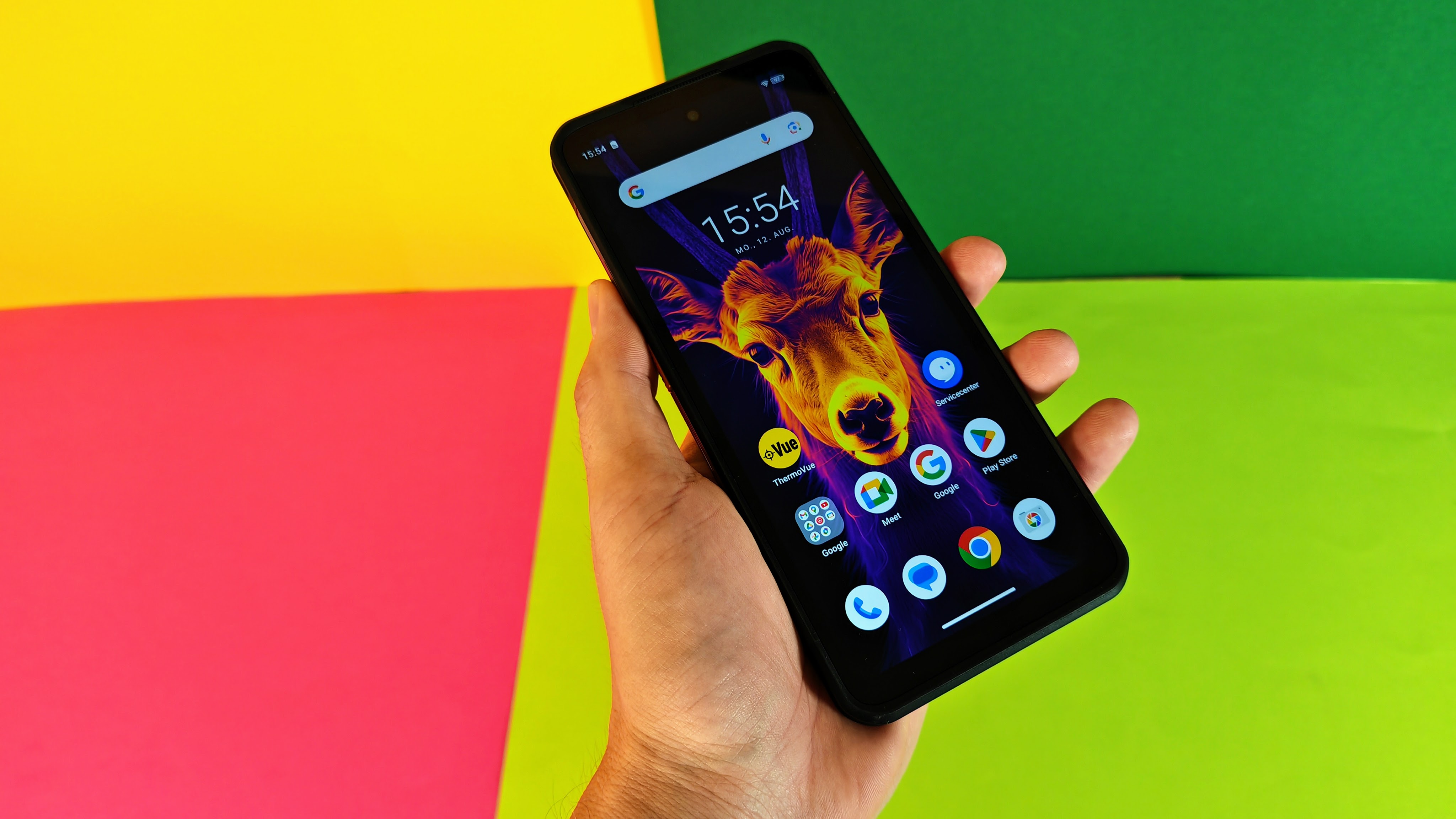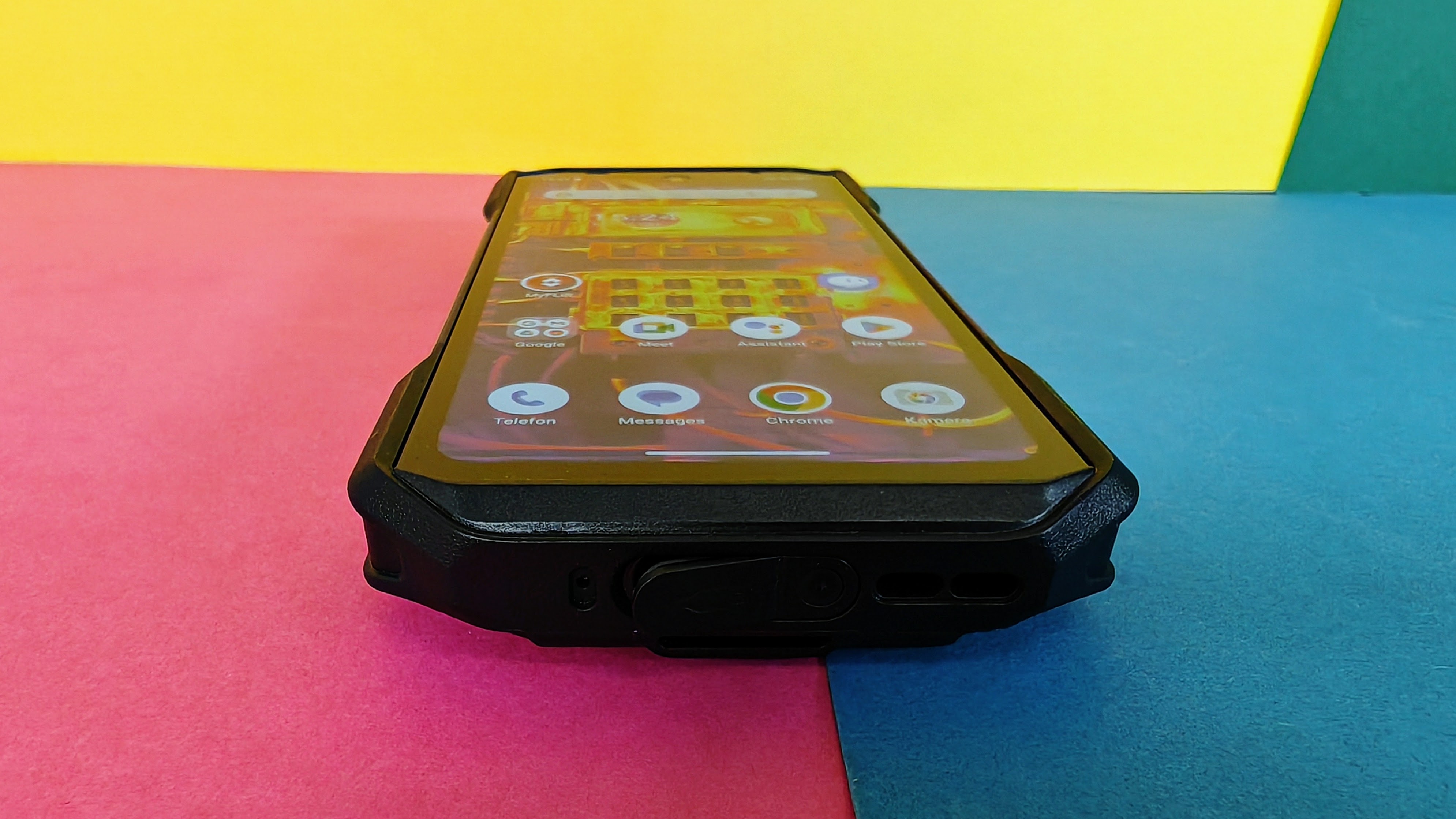 Dafür zeigt sich das Gerät im Alltag extrem robust. Im Test überstand es Stürze aus Schulterhöhe auf Asphalt ohne Schaden. Die obligatorische Militärzertifizierung nach MIL-STD-810H ist ebenso vorhanden wie die Schutzklasse IP69K. Damit ist das Gerät nicht nur staub- und wasserdicht, sondern hält heißen Flüssigkeiten stand. Laut Hersteller kann es sich unter Wasser für bis zu 30 Minuten in zwei Metern Tiefe aufhalten.