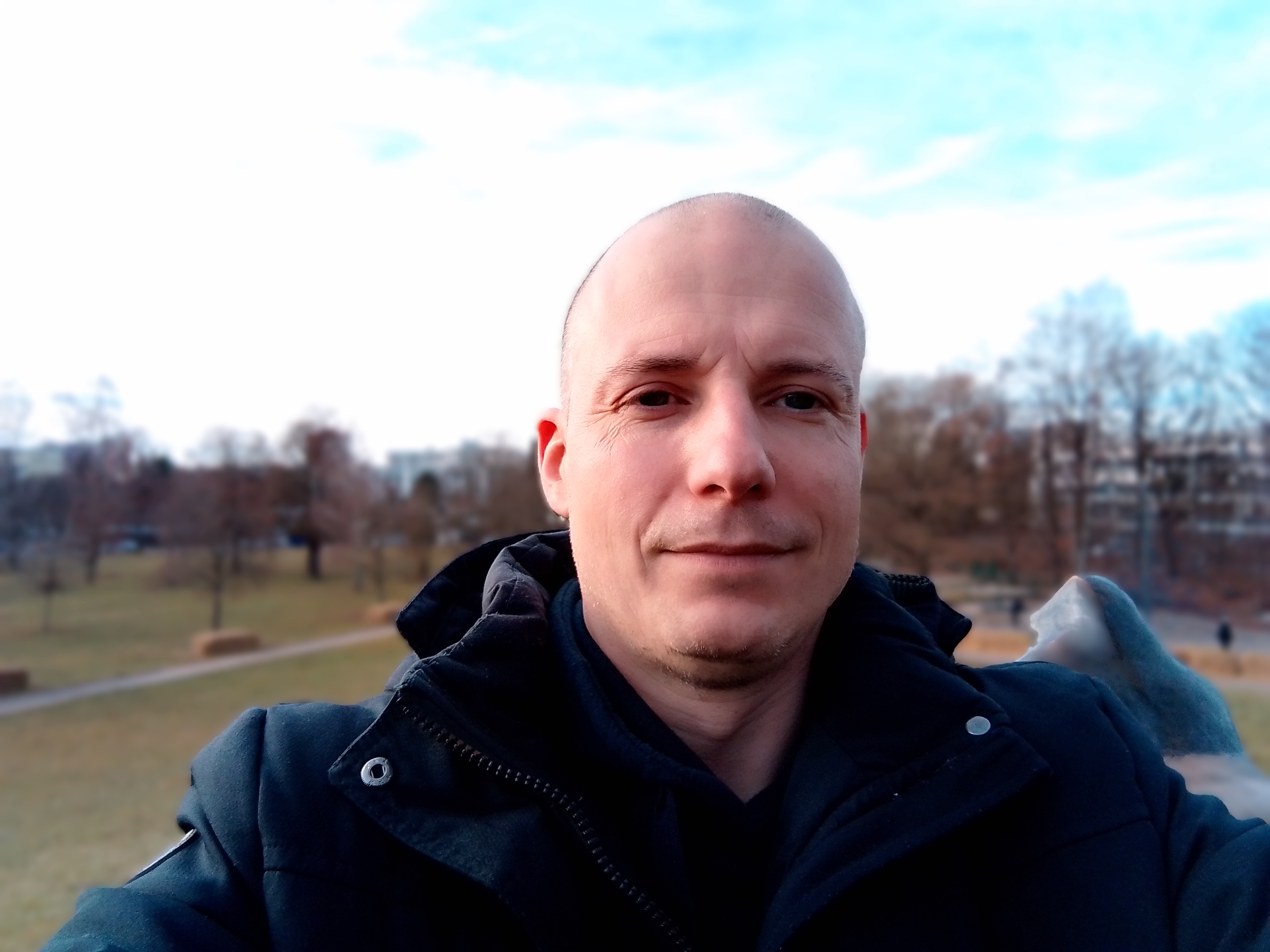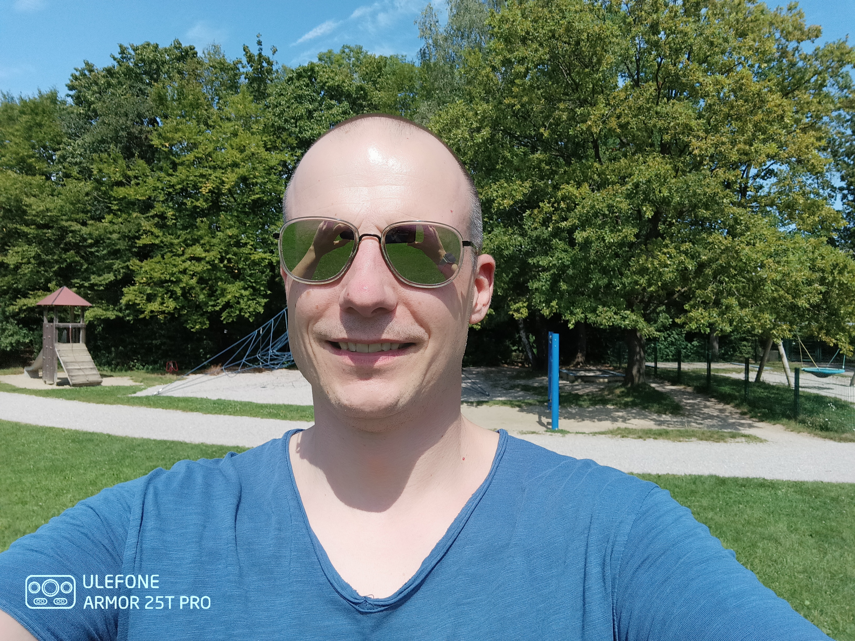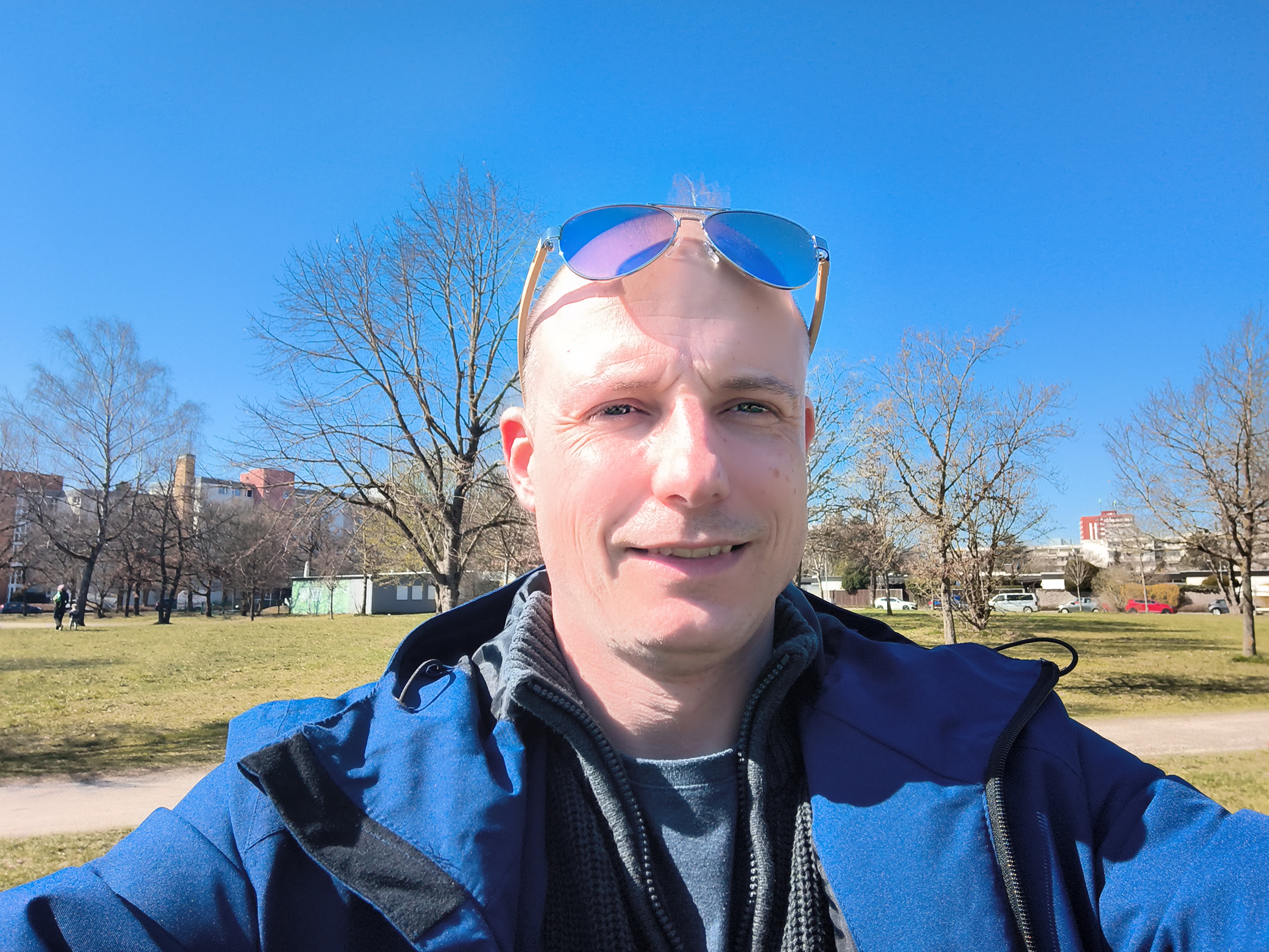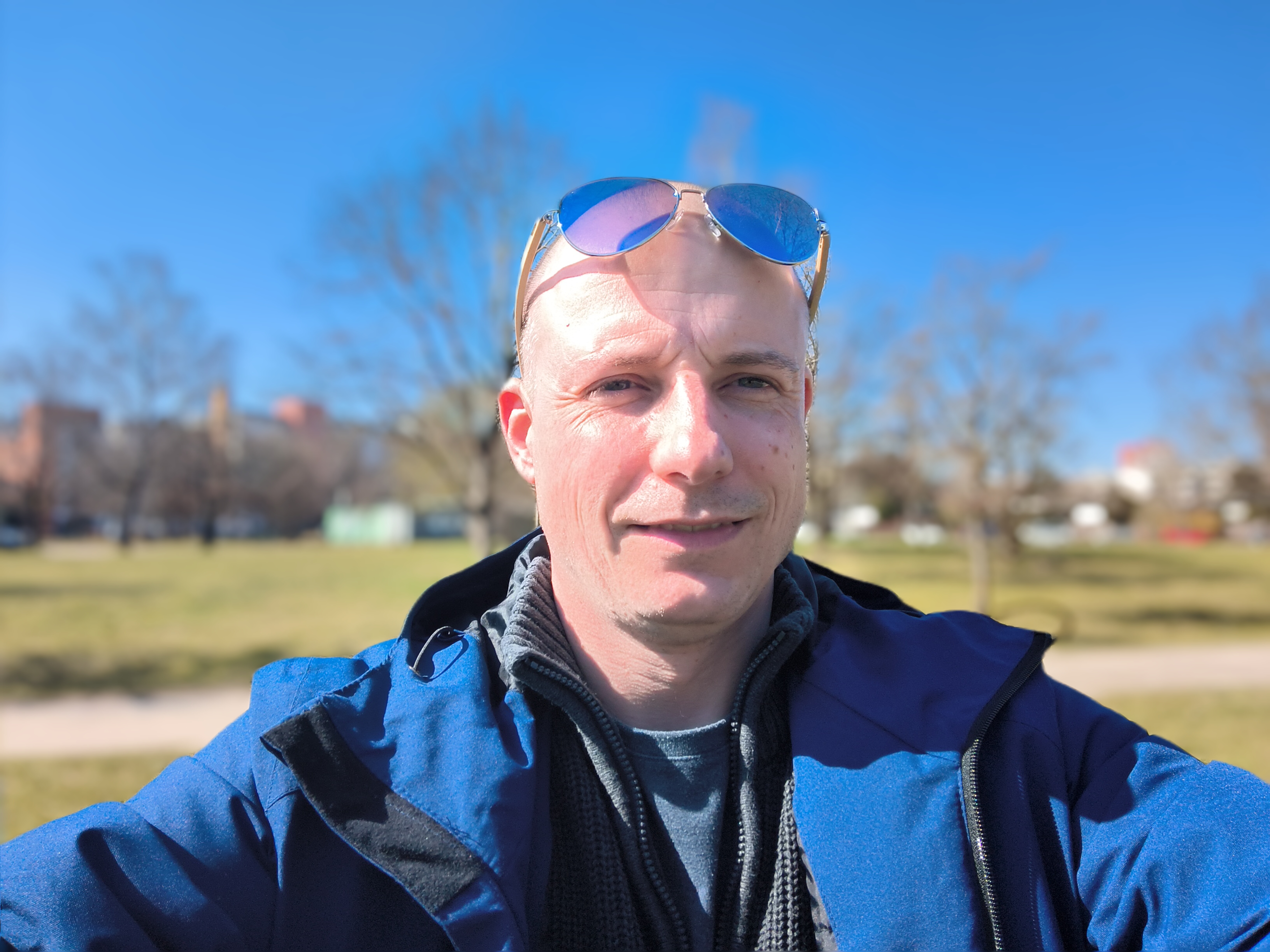 Die Selfies hinterlassen einen guten Eindruck und sind ausreichend scharf und detailreich. Der Porträtmodus erzeugt einen sauberen Bokeh-Effekt. Der Beauty-Filter wirkt allerdings etwas unnatürlich. Zudem kann man für Selfies einen künstlich generierten Hintergrund wählen – eine nette Spielerei, die aber eher überflüssig ist. Videos mit der Frontkamera sind scharf und detailliert, wackeln jedoch leicht und sind maximal in Full-HD verfügbar.