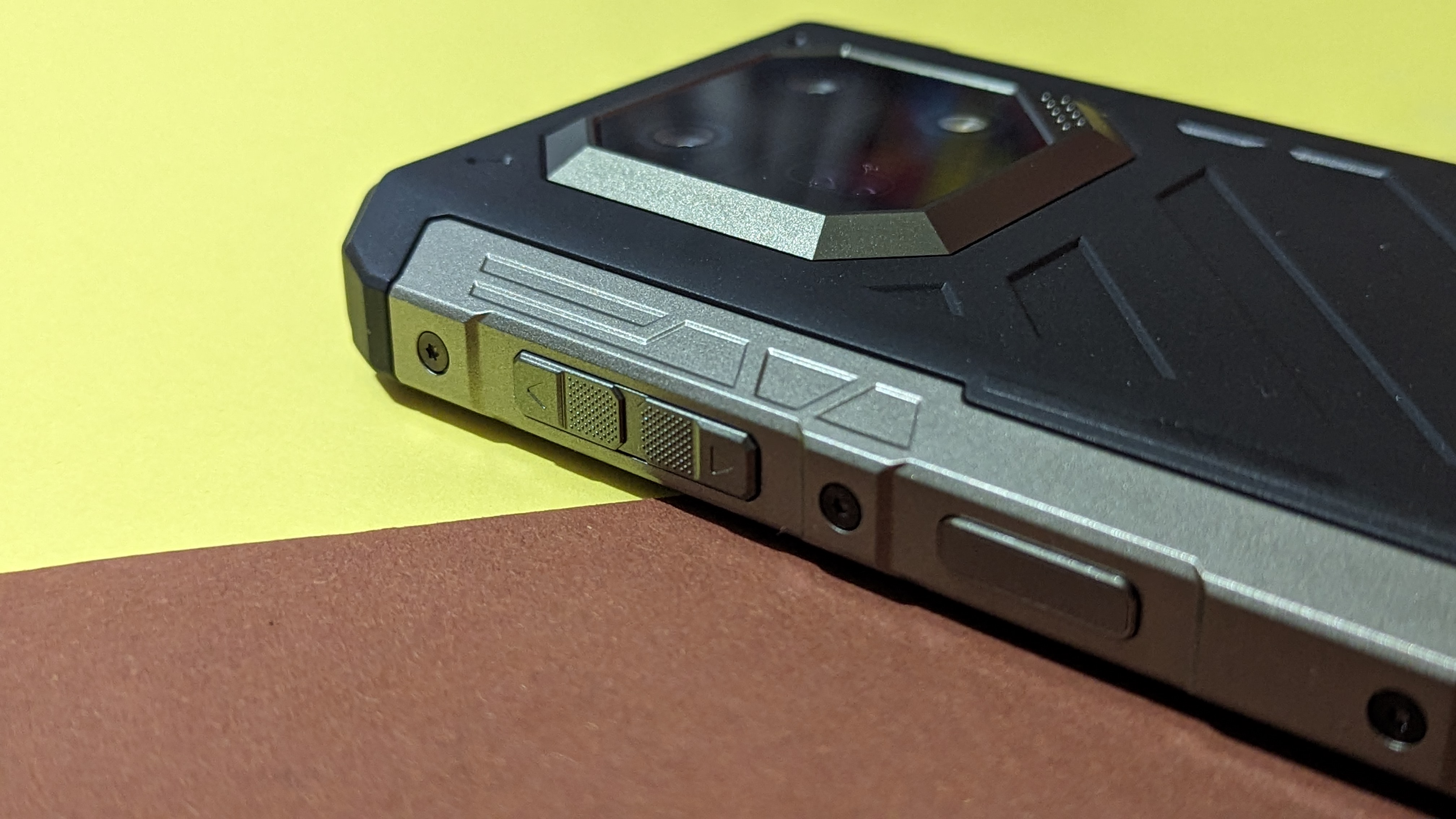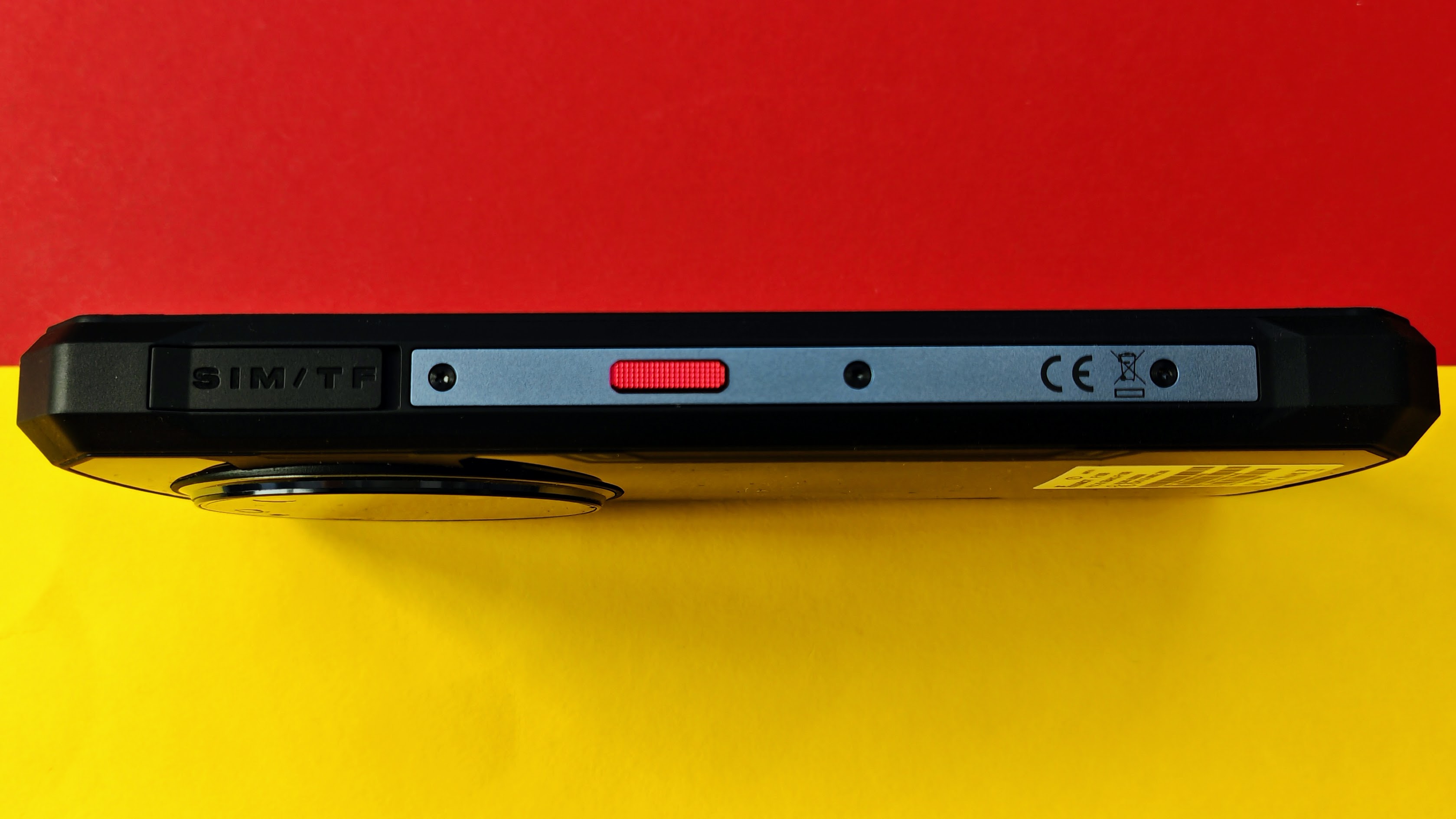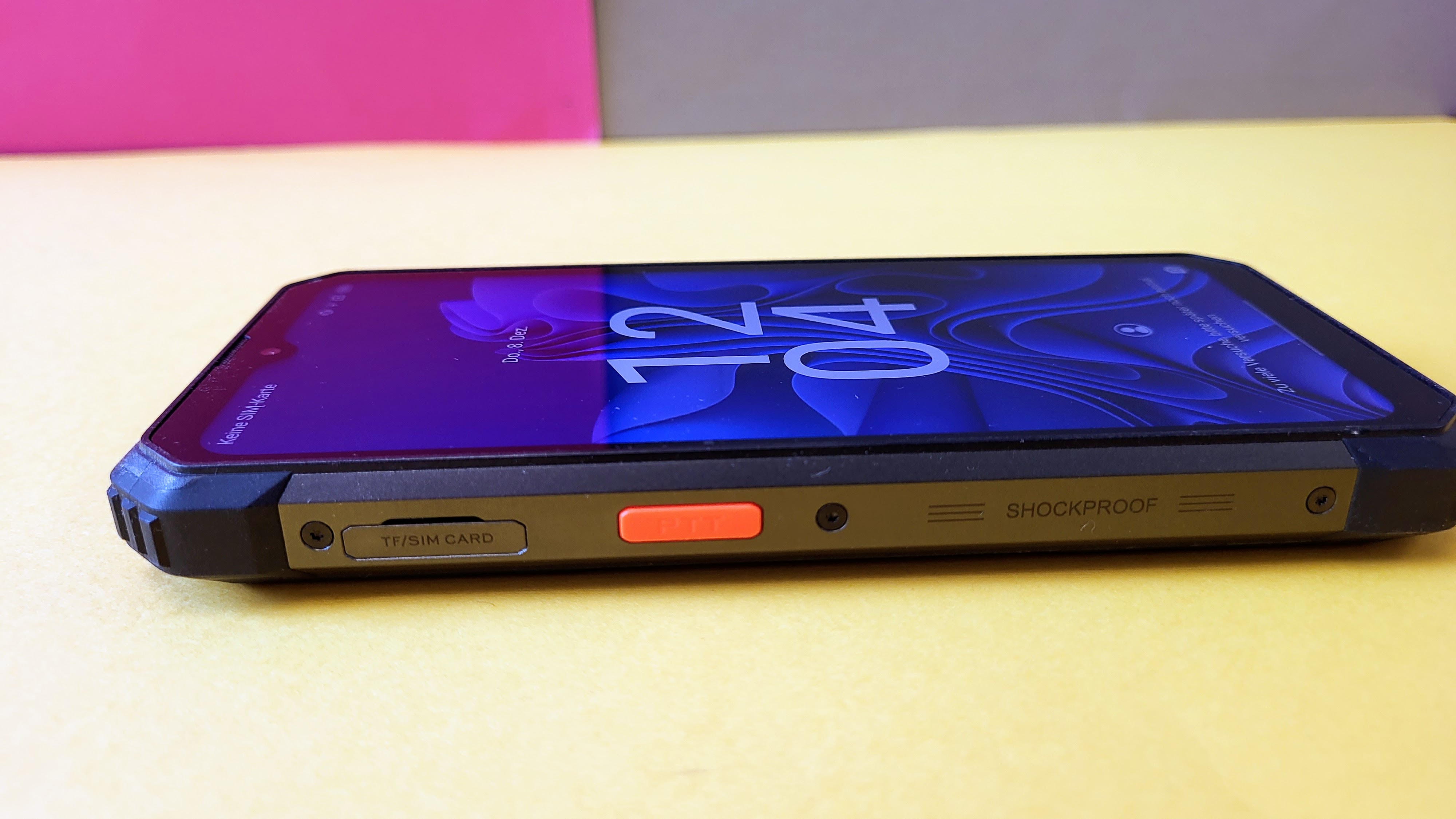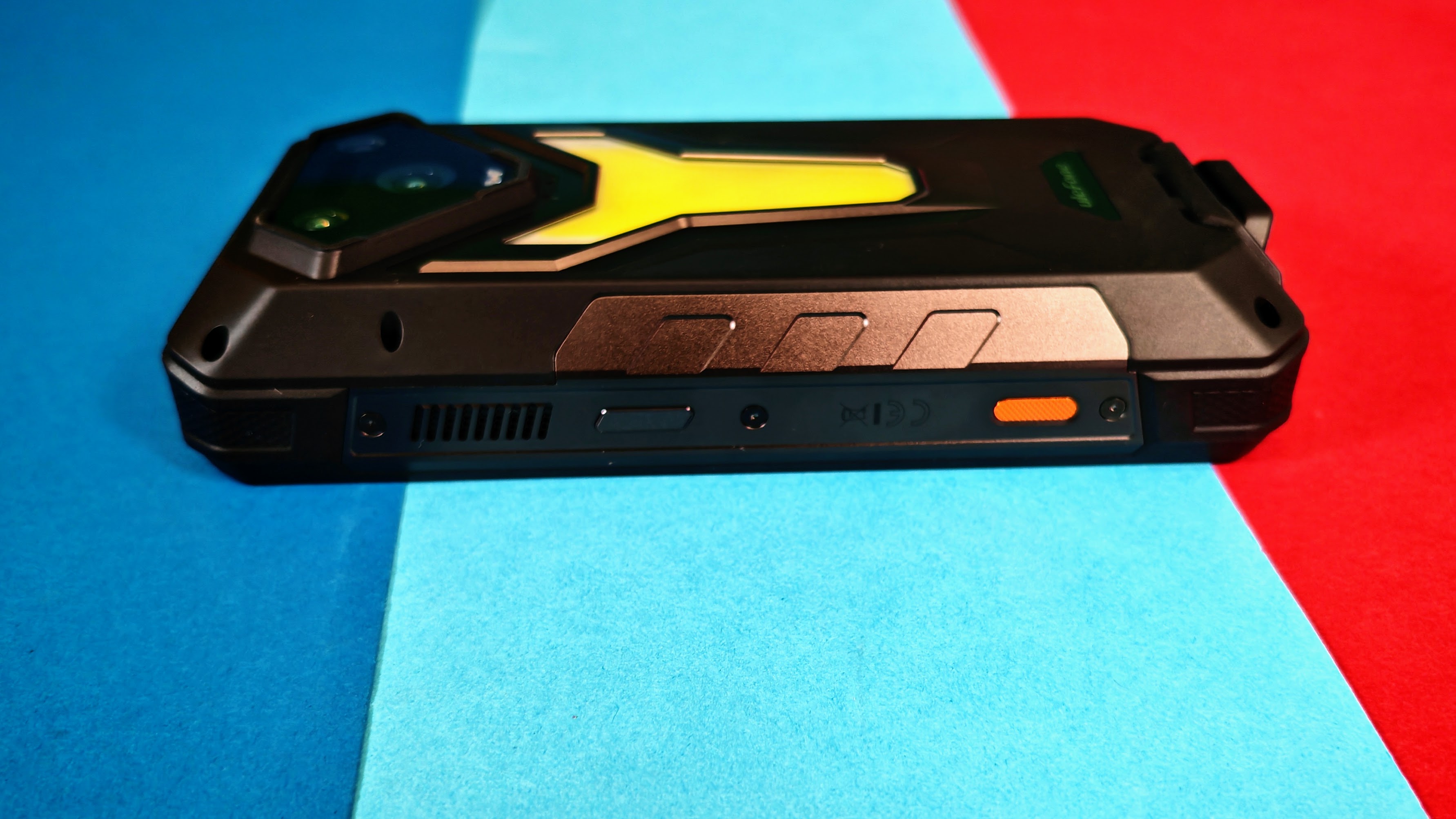 Mit einem Gewicht von 311 g bringt das WP200 Pro deutlich mehr auf die Waage als herkömmliche Smartphones. Seine Abmessungen von 163,6 × 77,9 × 13,7 mm machen es zudem zu einem recht massiven Gerät. Dennoch fällt es etwas kompakter und leichter aus als manch anderes Outdoor-Smartphone. Rechts sitzen die Lautstärkewippe und der Power-Button, während sich auf der linken Seite ein roter, programmierbarer Knopf befindet. Dieser lässt sich mit bis zu drei Funktionen belegen – für kurzes, langes oder doppeltes Drücken.