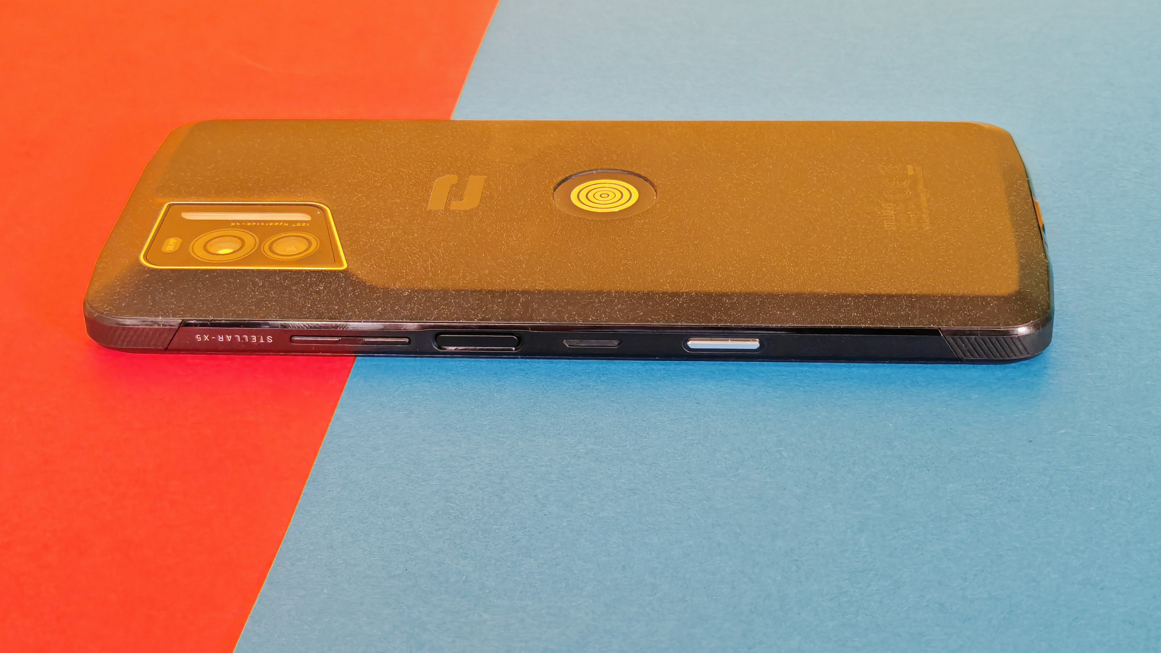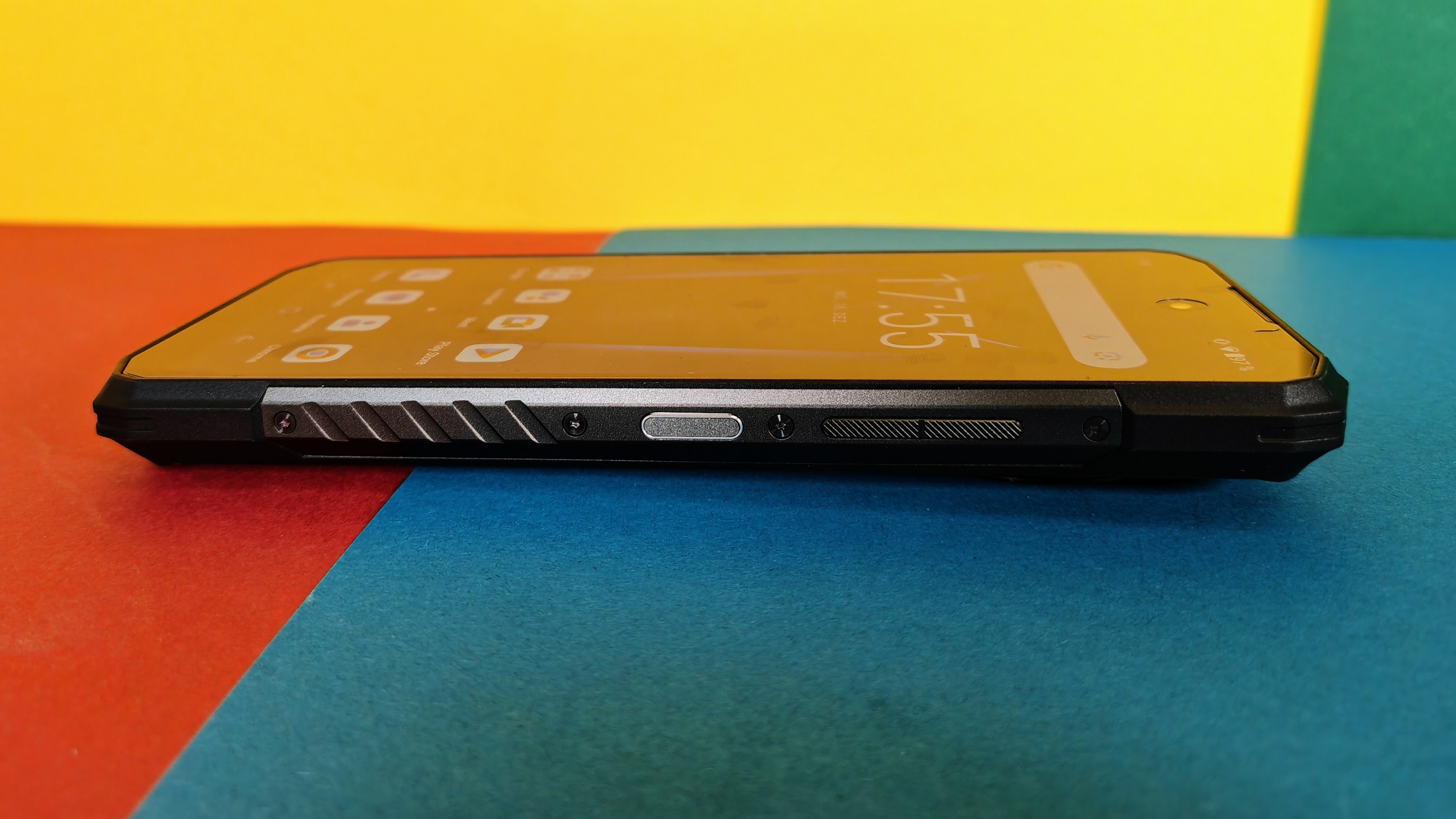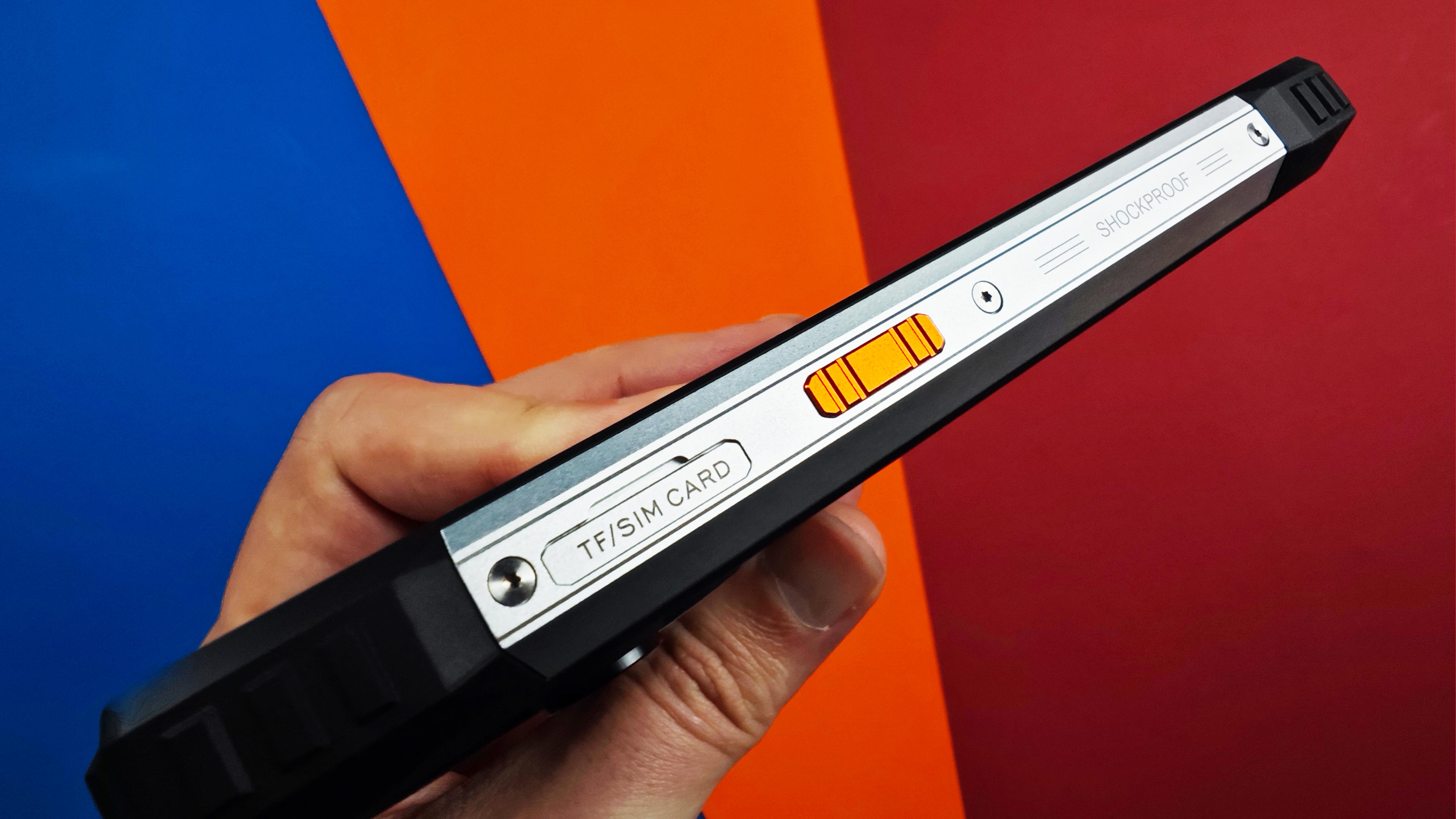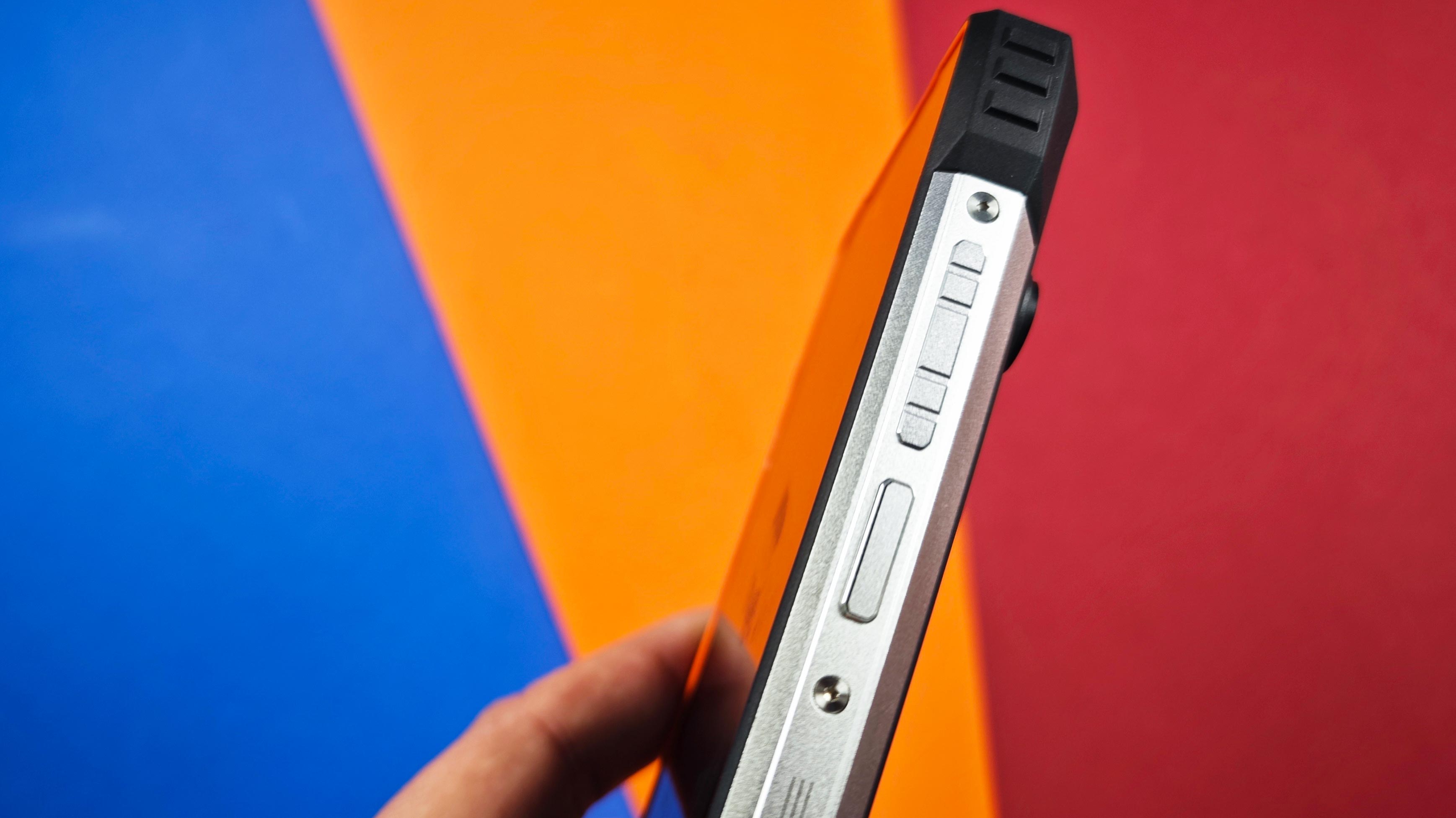 Mit einem Gewicht von 311 g bringt das WP200 Pro deutlich mehr auf die Waage als herkömmliche Smartphones. Seine Abmessungen von 163,6 × 77,9 × 13,7 mm machen es zudem zu einem recht massiven Gerät. Dennoch fällt es etwas kompakter und leichter aus als manch anderes Outdoor-Smartphone. Rechts sitzen die Lautstärkewippe und der Power-Button, während sich auf der linken Seite ein roter, programmierbarer Knopf befindet. Dieser lässt sich mit bis zu drei Funktionen belegen – für kurzes, langes oder doppeltes Drücken.