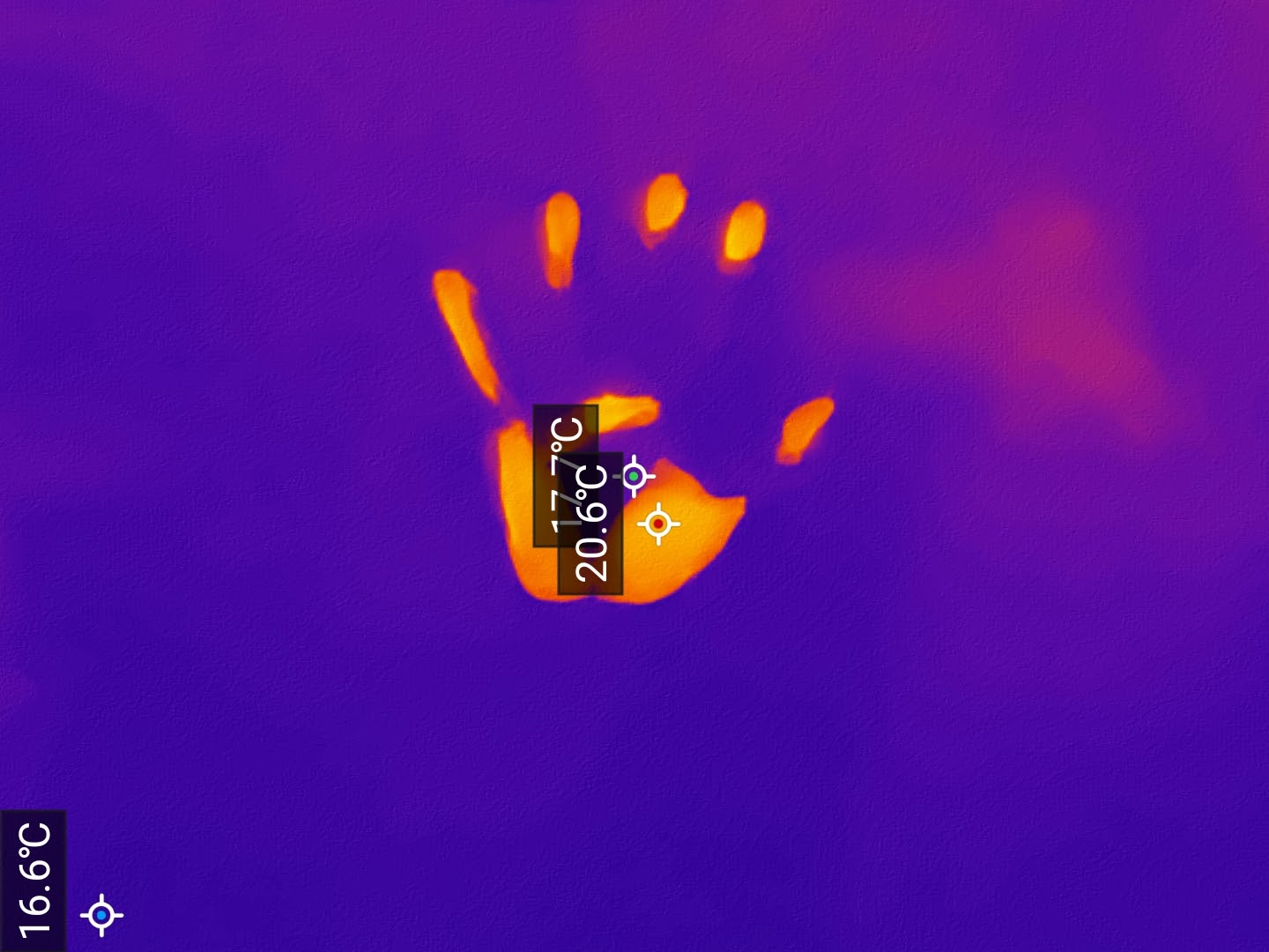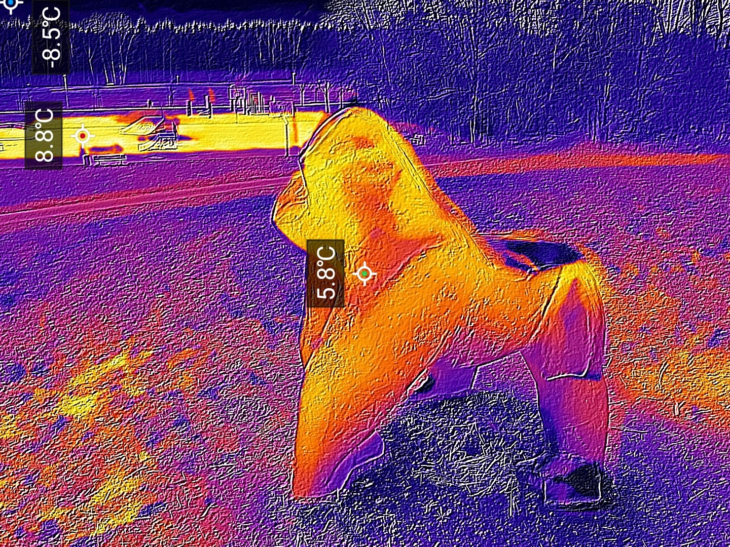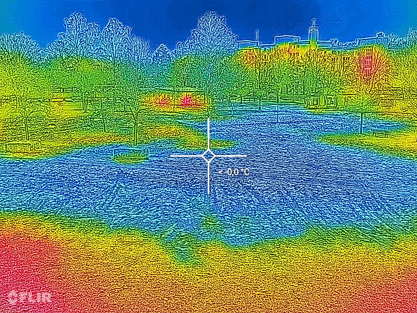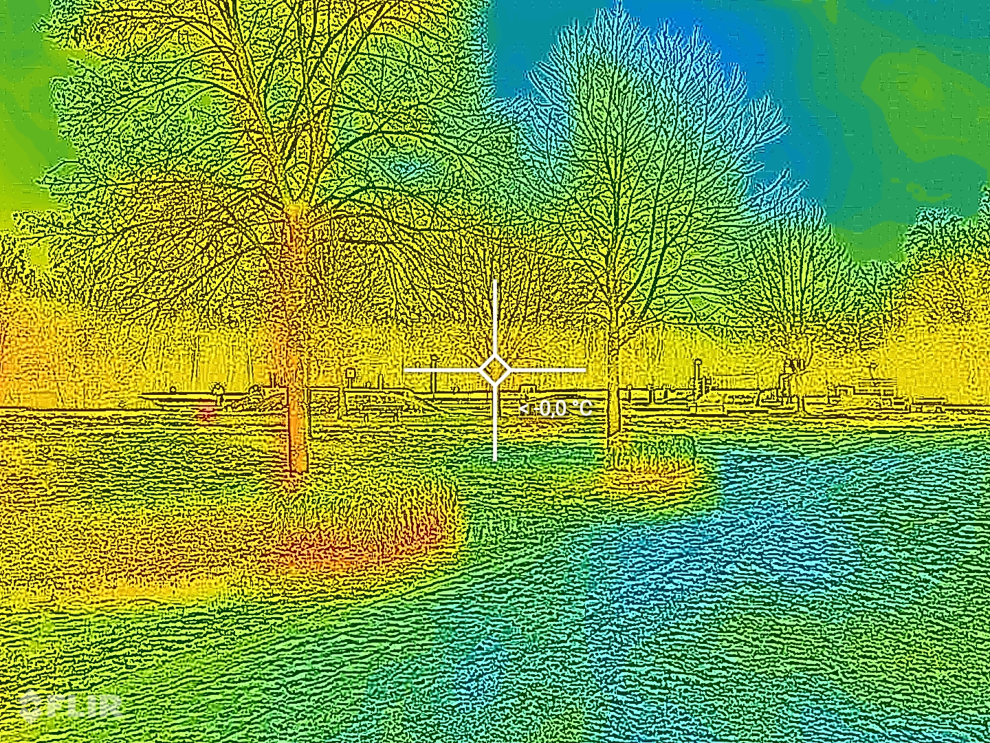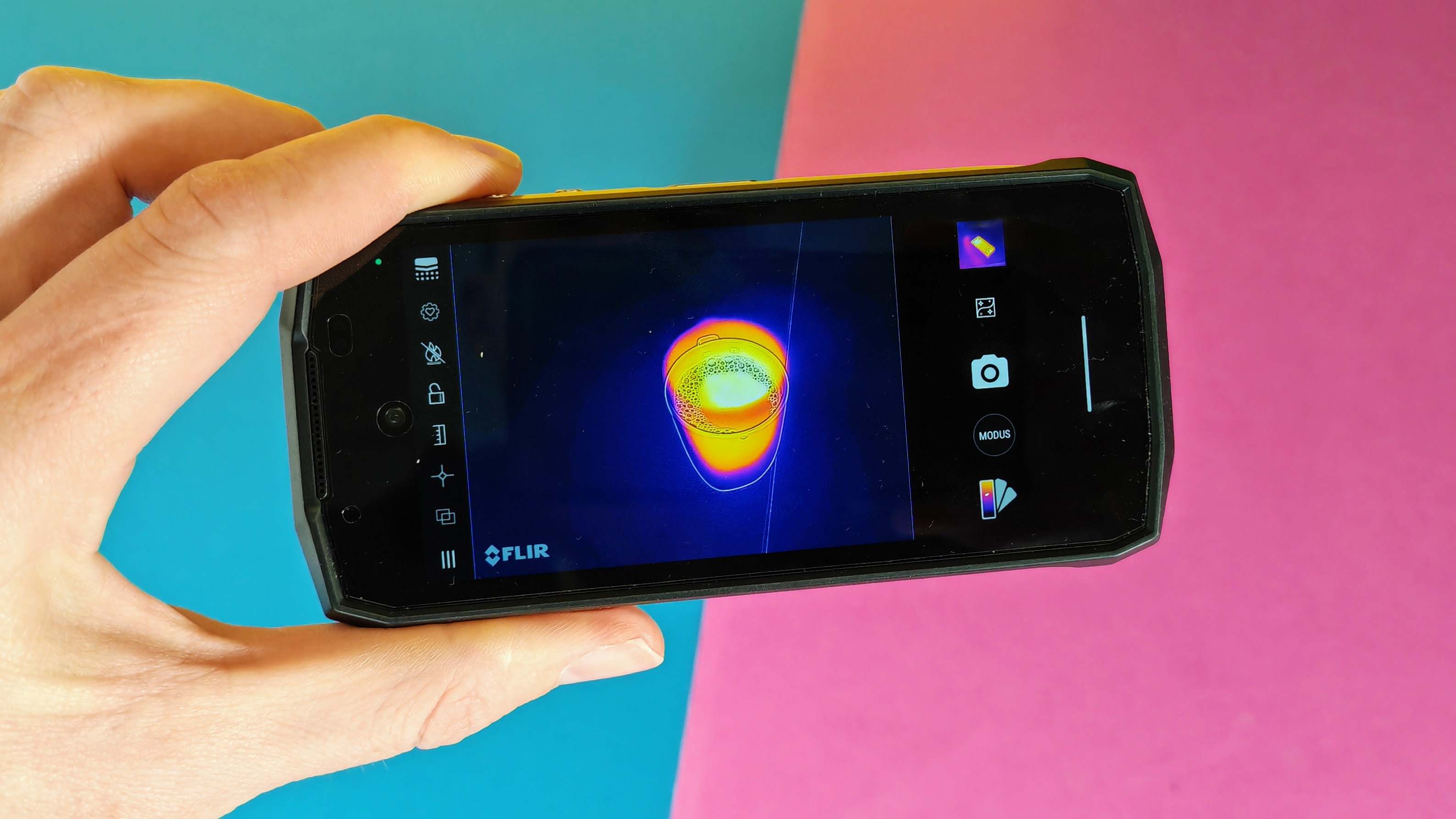 Der heimliche Star des Outdoor-Zwergs ist aber die Flir-Wärmebildkamera. Diese löst mit 160 × 120 Pixeln auf und visualisiert Wärmeunterschiede durch verschiedene Farbprofile, die man in der zugehörigen Flir-App auswählen kann. Die thermische Empfindlichkeit liegt bei sehr ordentlichen 50 mK und deckt Temperaturen bis 400 Grad Celsius ab.
