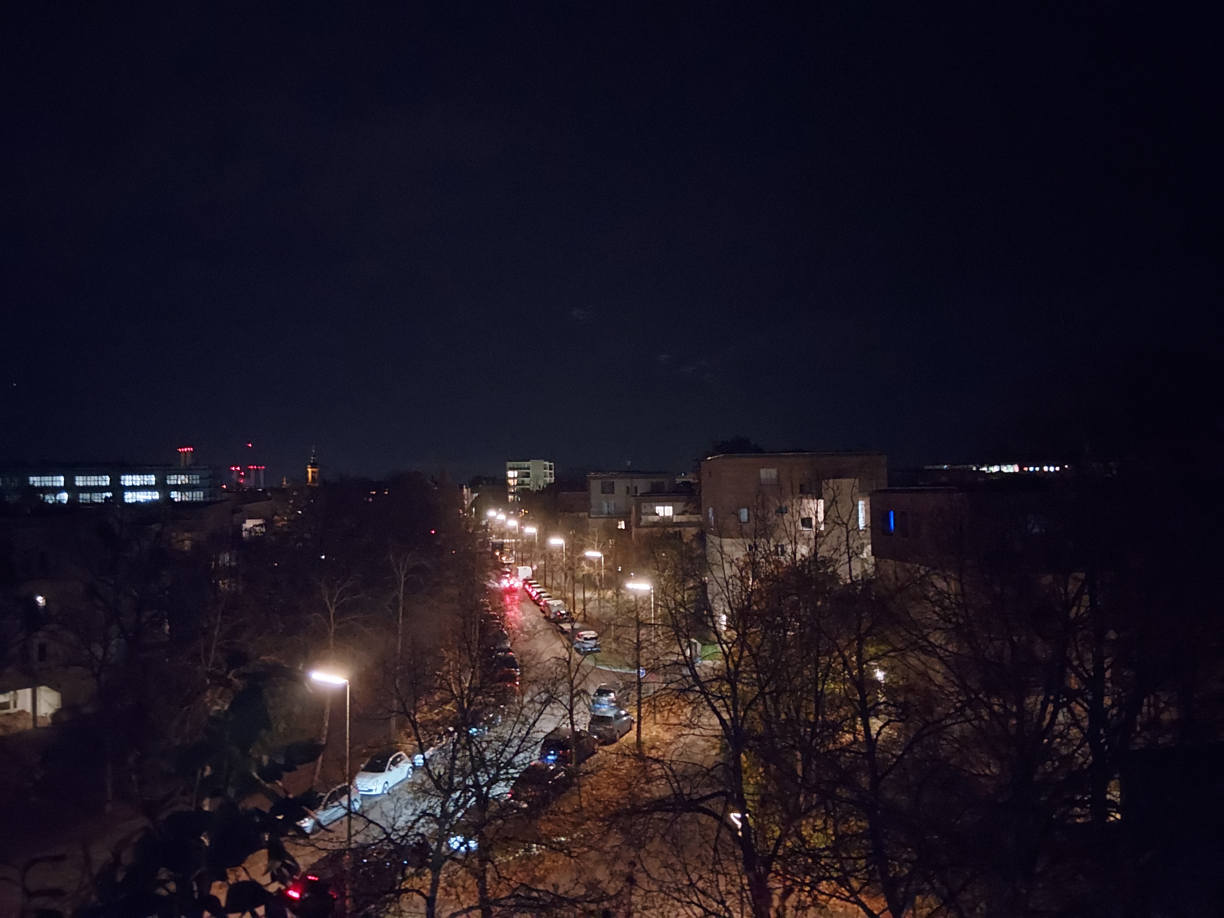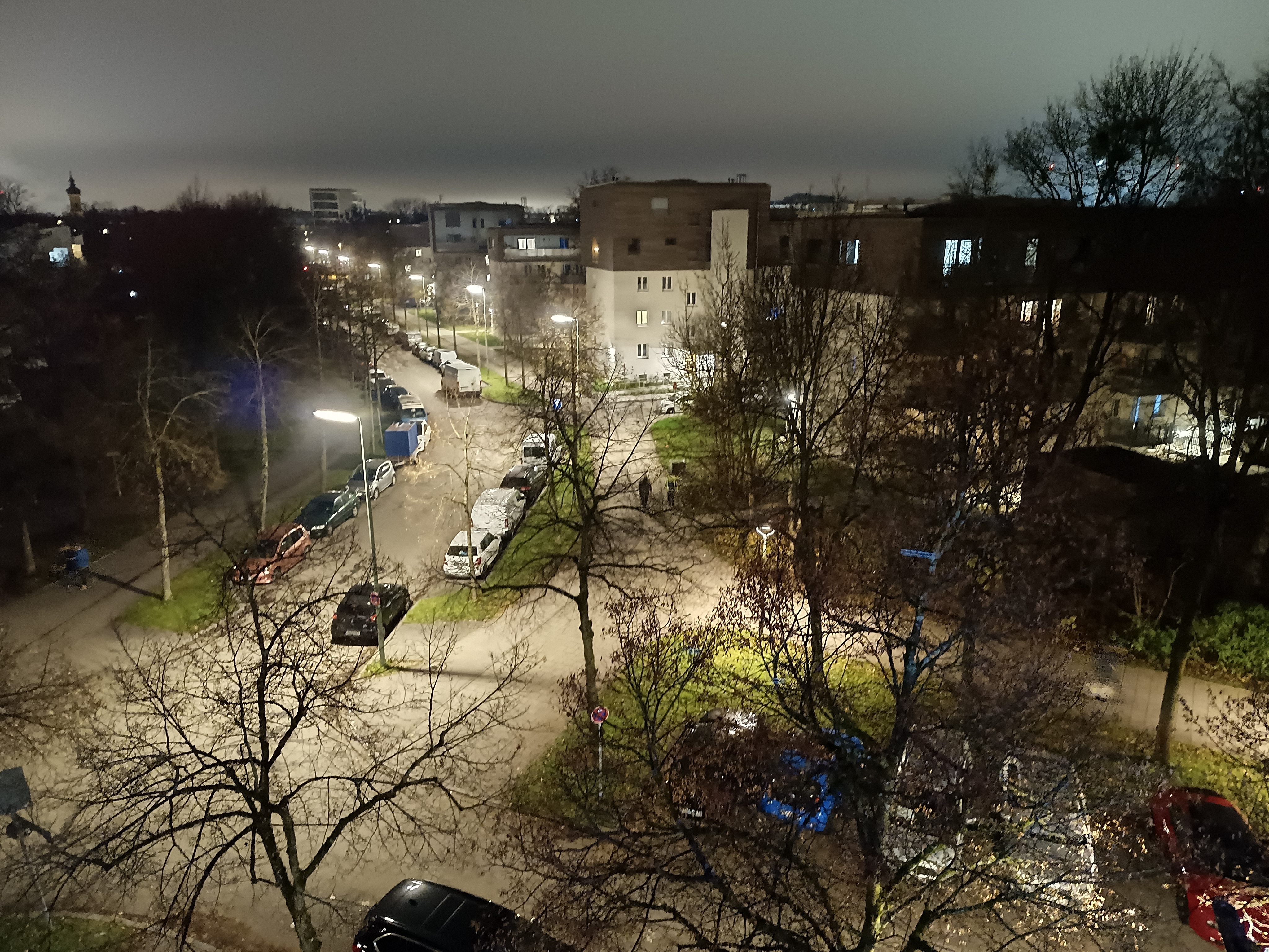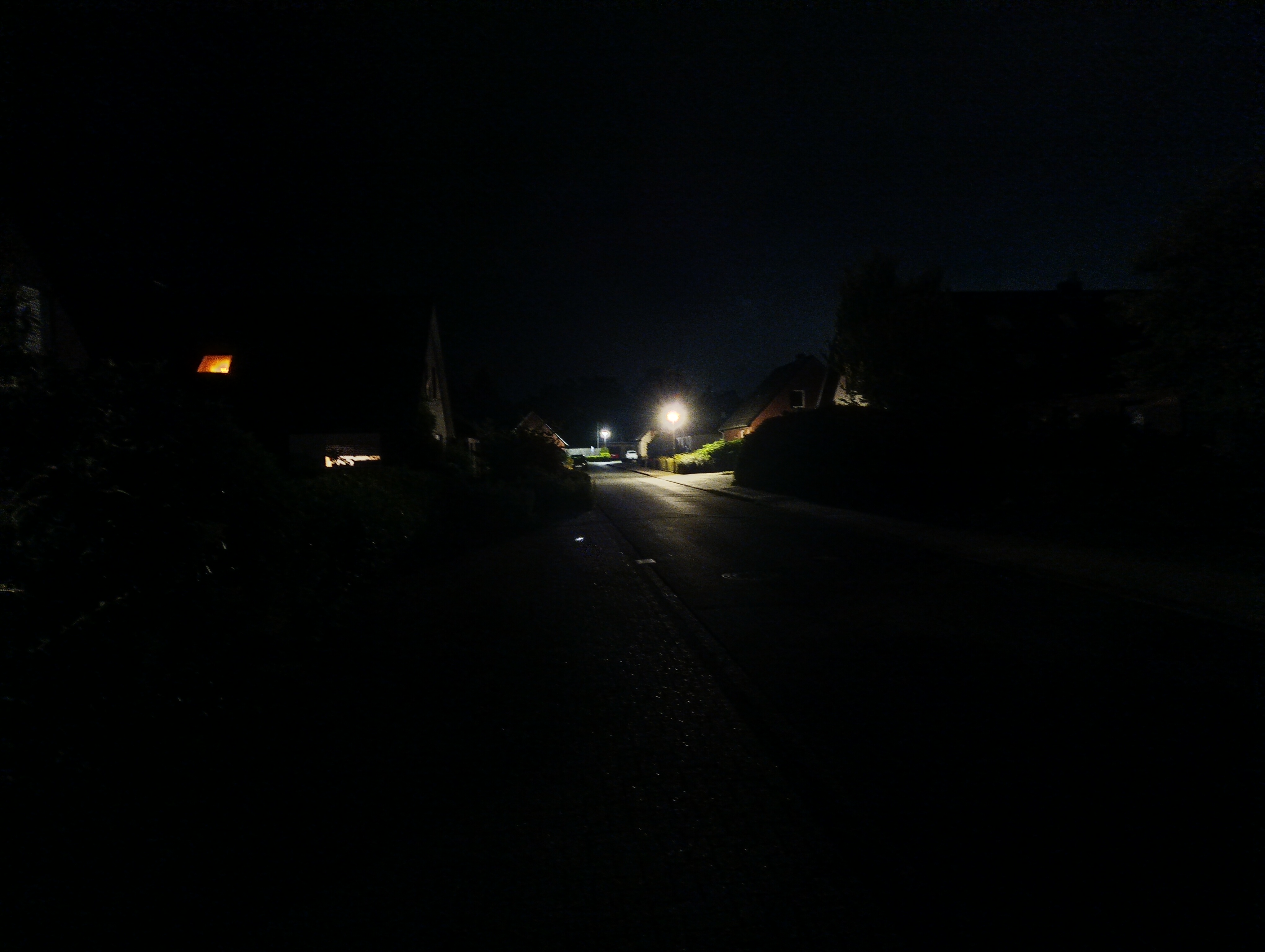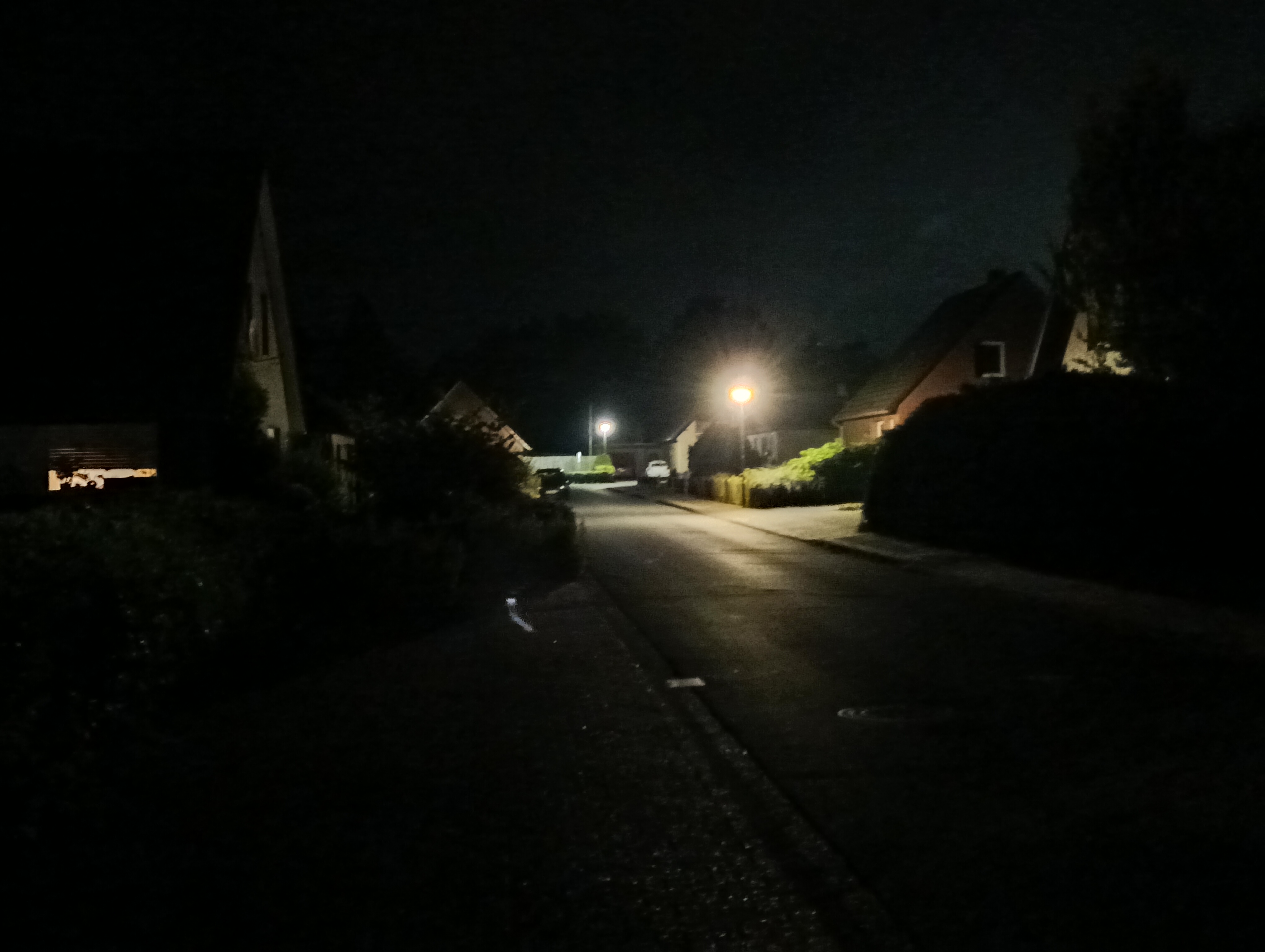 Bei Tageslicht liefert die Hauptkamera ordentliche Aufnahmen, schwächelt jedoch beim Dynamikumfang: Helle oder dunkle Bildbereiche verlieren schnell an Details. Bis zu einem zweifachen Zoom bleiben die Aufnahmen brauchbar, darüber hinaus wird das Bild sichtbar pixelig. Bei Dunkelheit sinkt die Bildqualität drastisch – nur mit zusätzlichen Lichtquellen, etwa einer Straßenlaterne, bleibt noch etwas erkennbar.