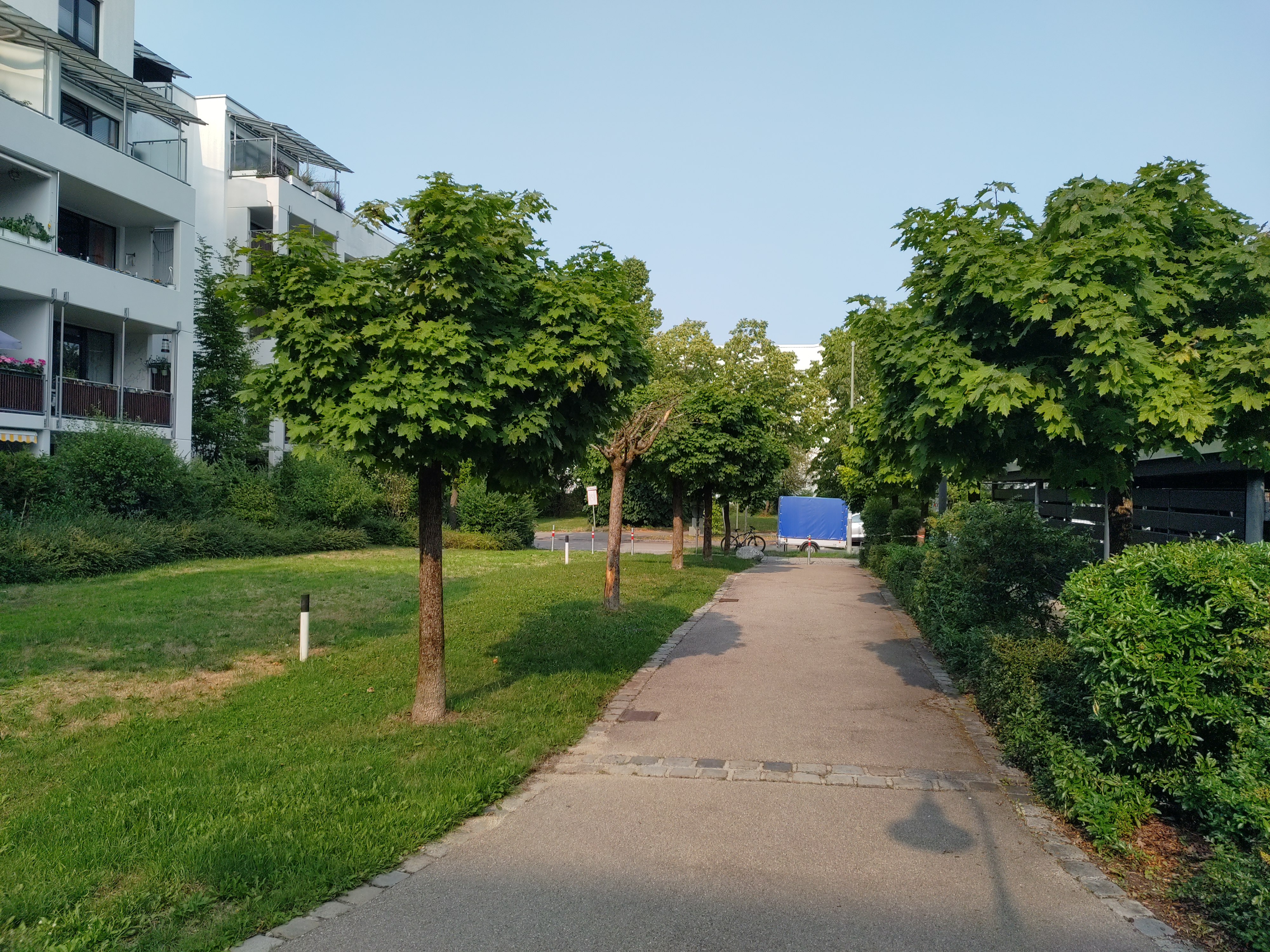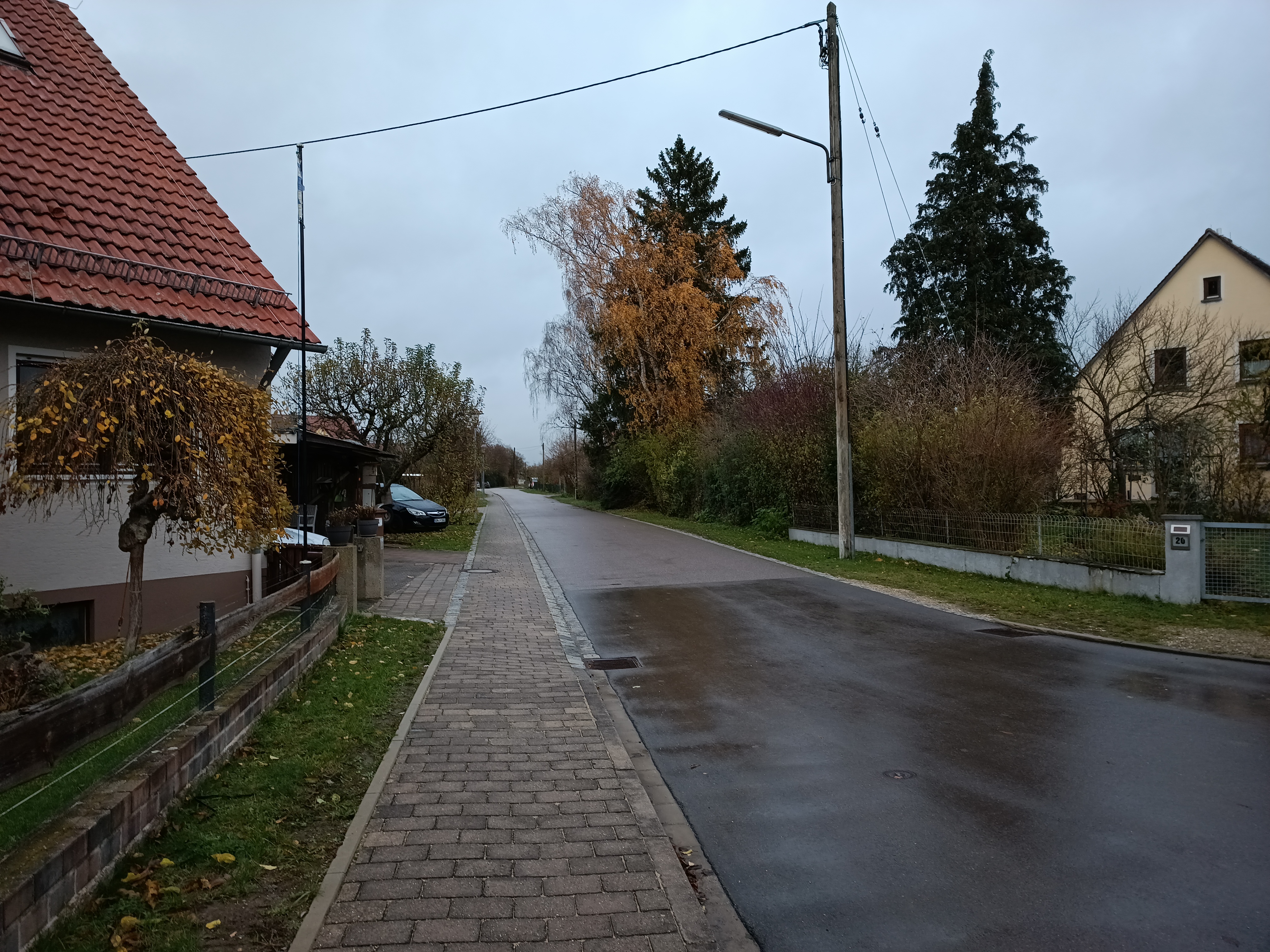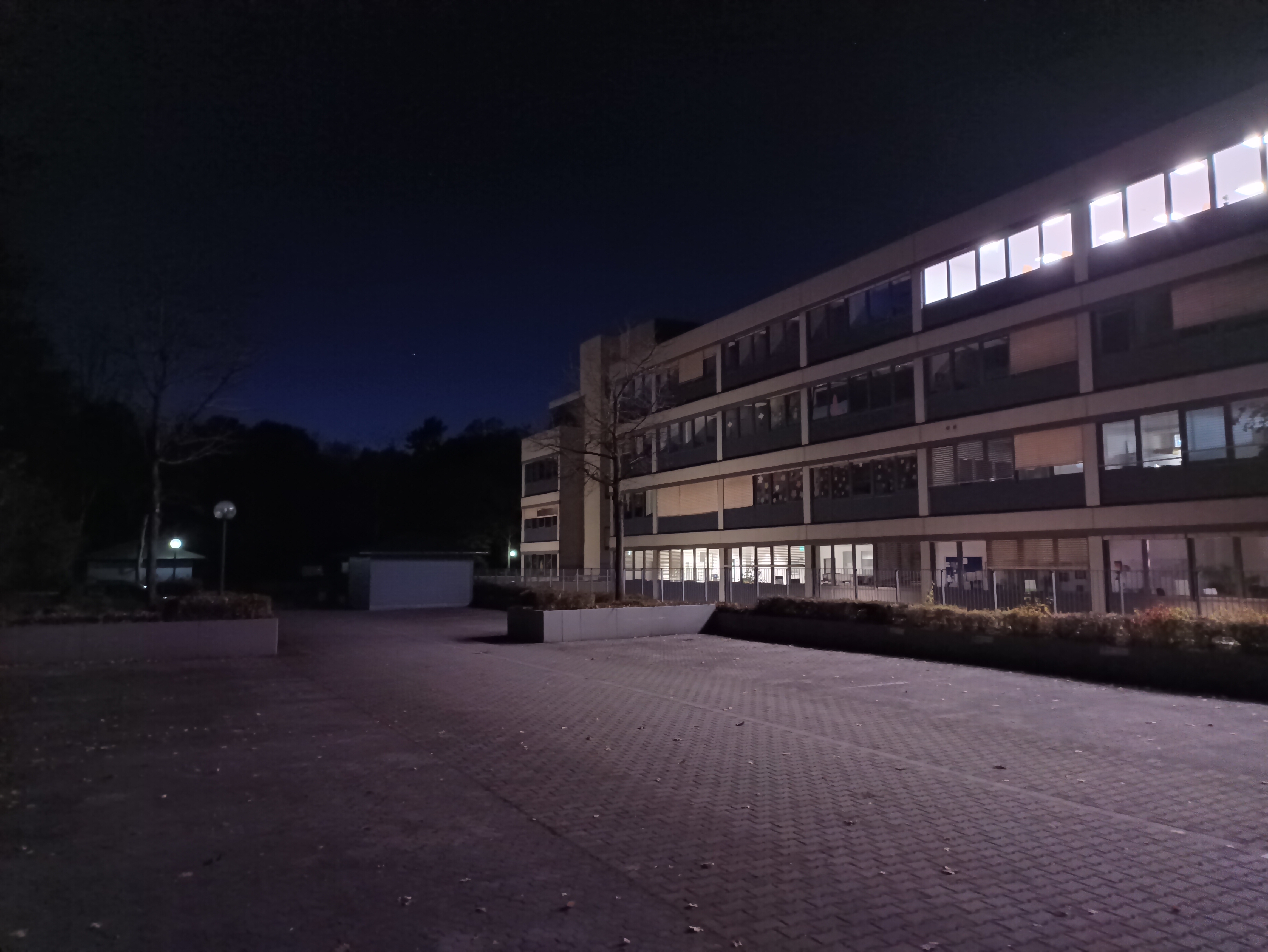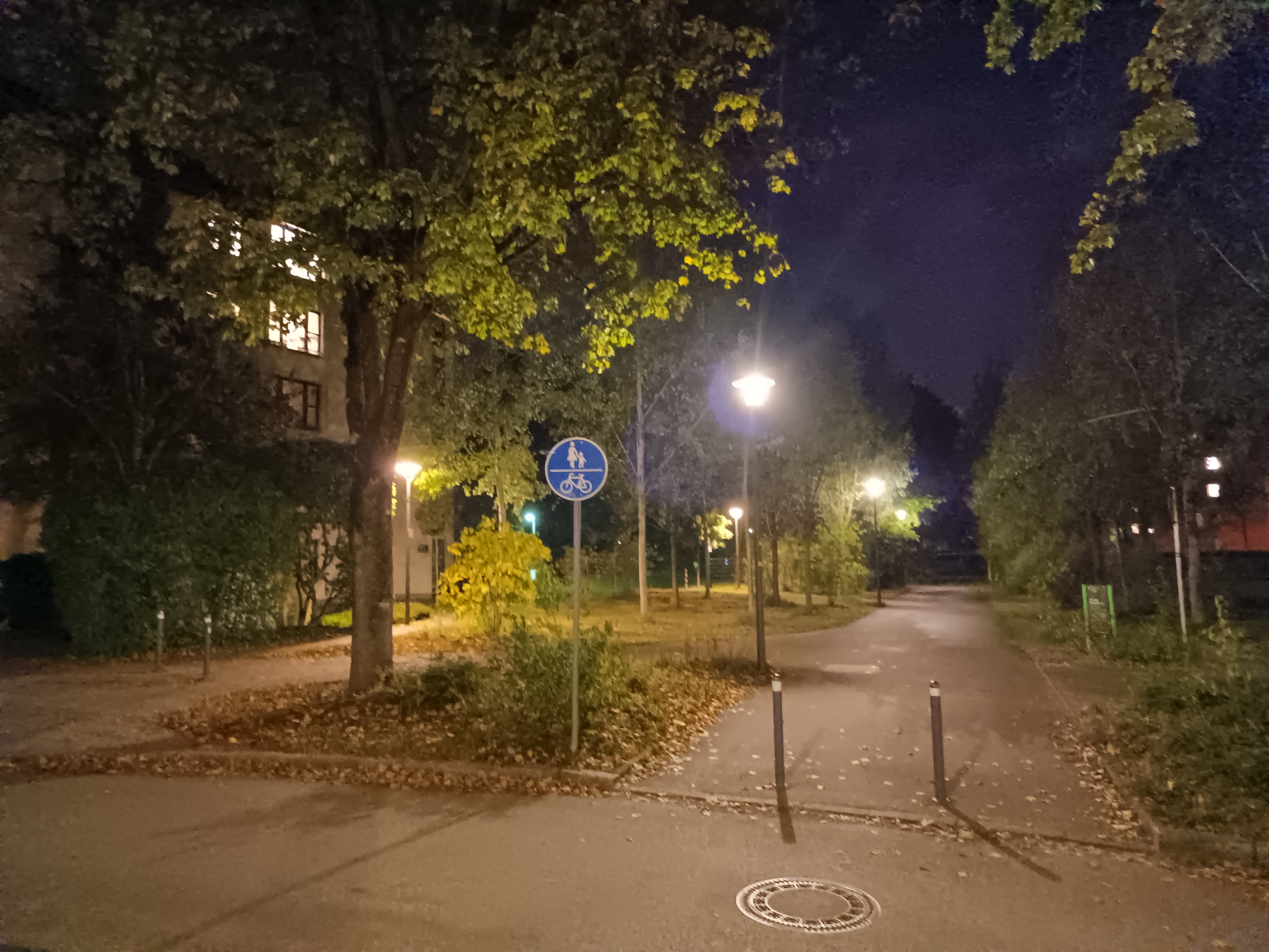 Bei Tageslicht liefert die Hauptkamera ordentliche Aufnahmen, schwächelt jedoch beim Dynamikumfang: Helle oder dunkle Bildbereiche verlieren schnell an Details. Bis zu einem zweifachen Zoom bleiben die Aufnahmen brauchbar, darüber hinaus wird das Bild sichtbar pixelig. Bei Dunkelheit sinkt die Bildqualität drastisch – nur mit zusätzlichen Lichtquellen, etwa einer Straßenlaterne, bleibt noch etwas erkennbar.