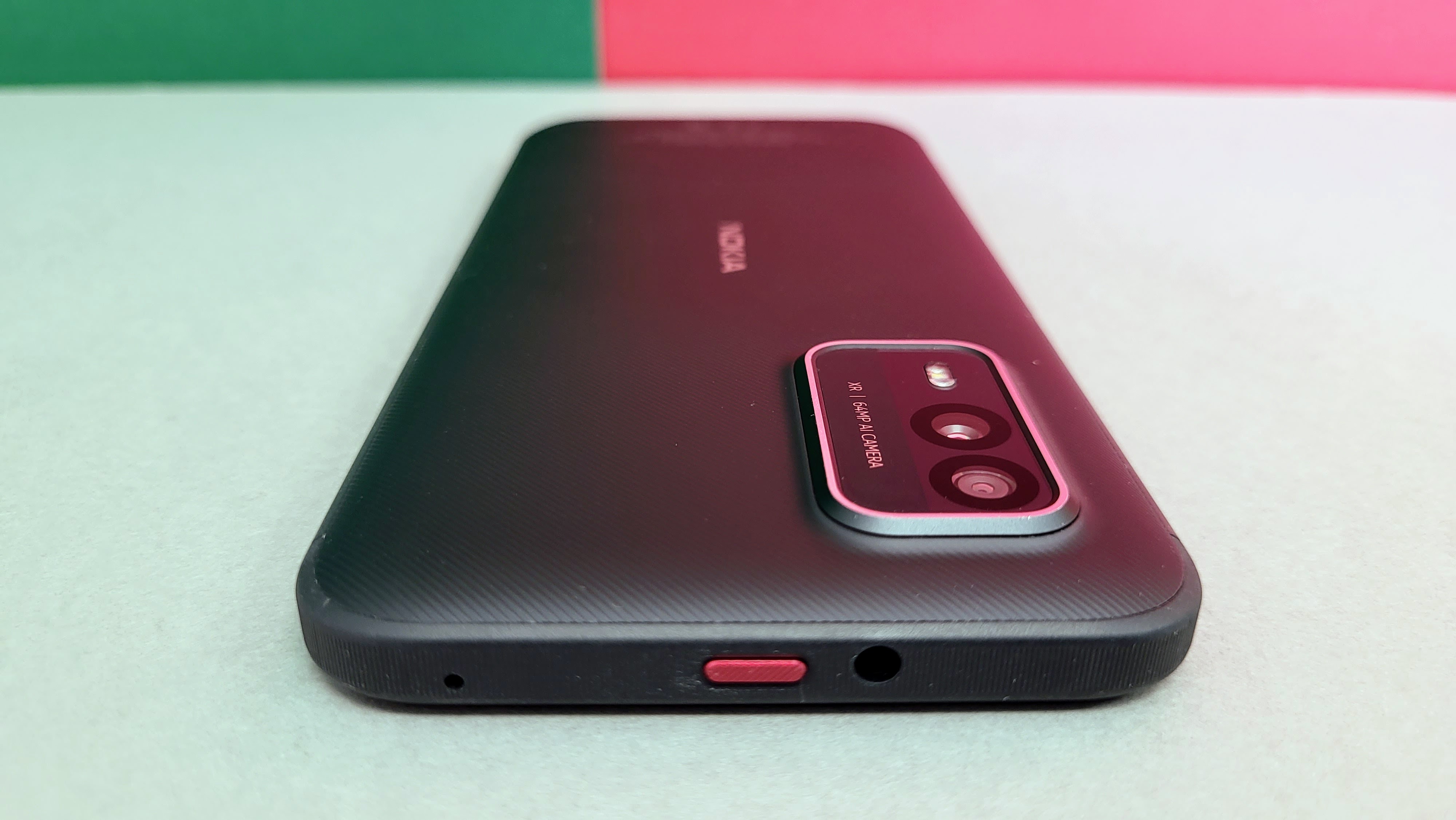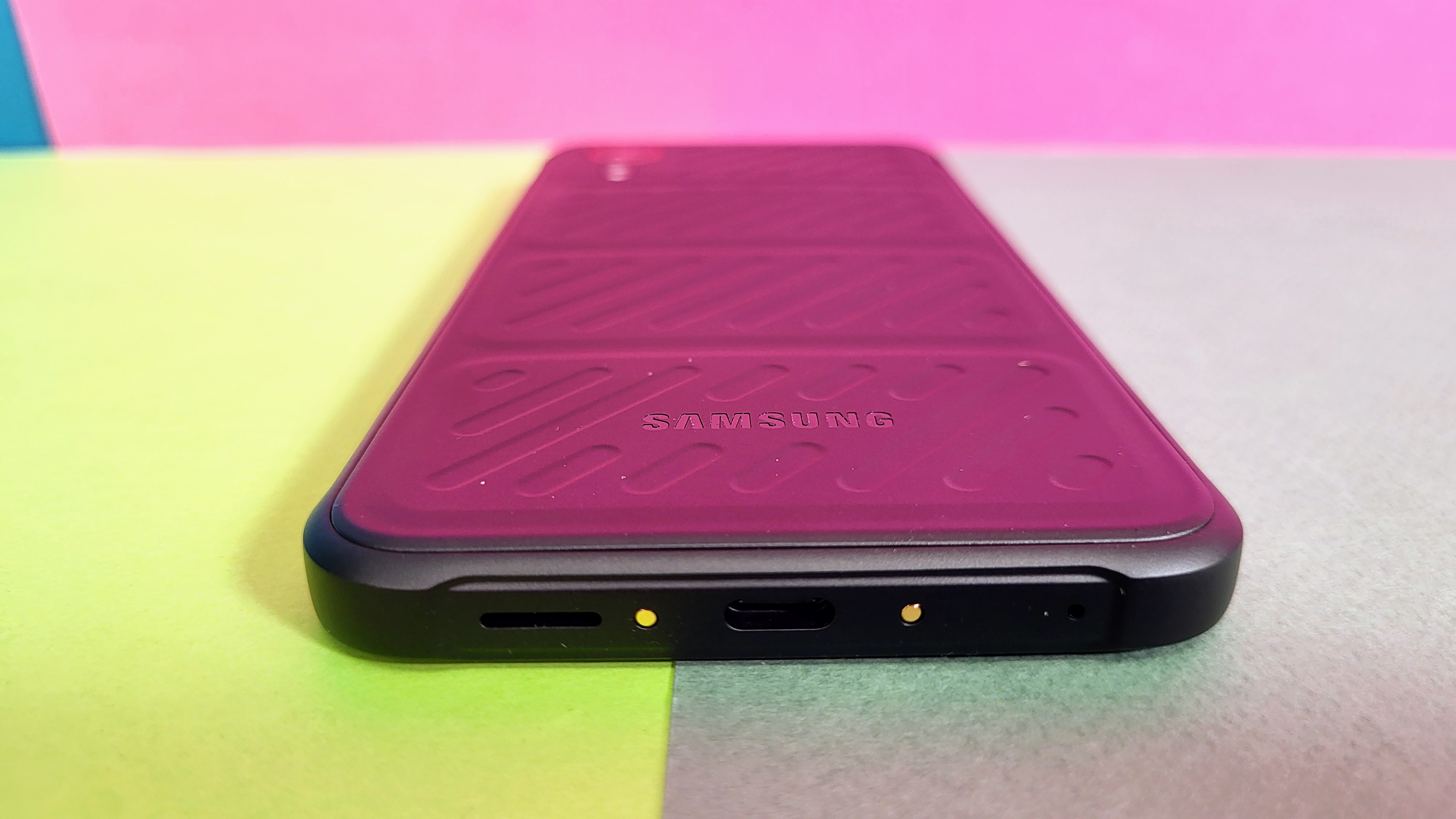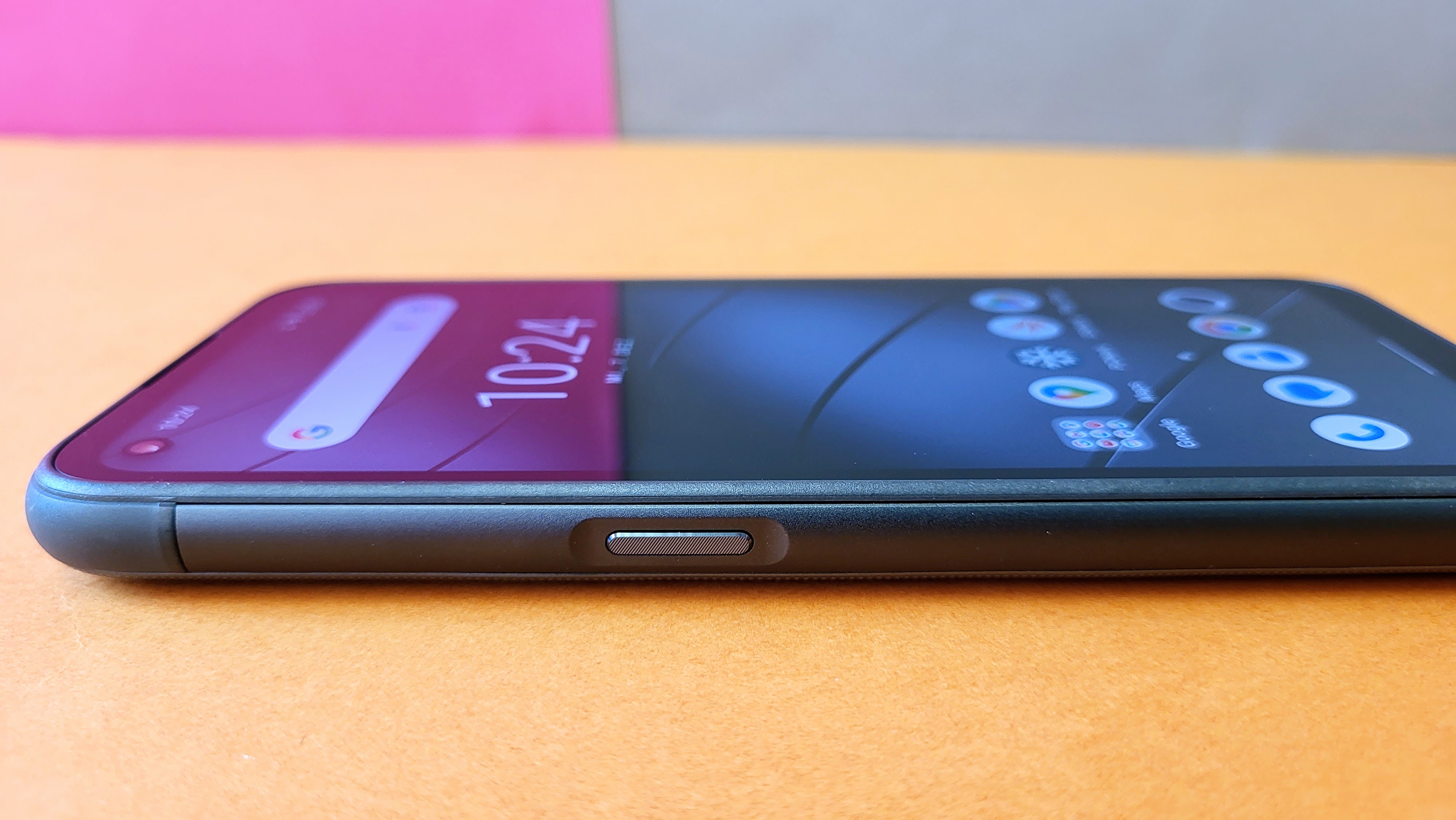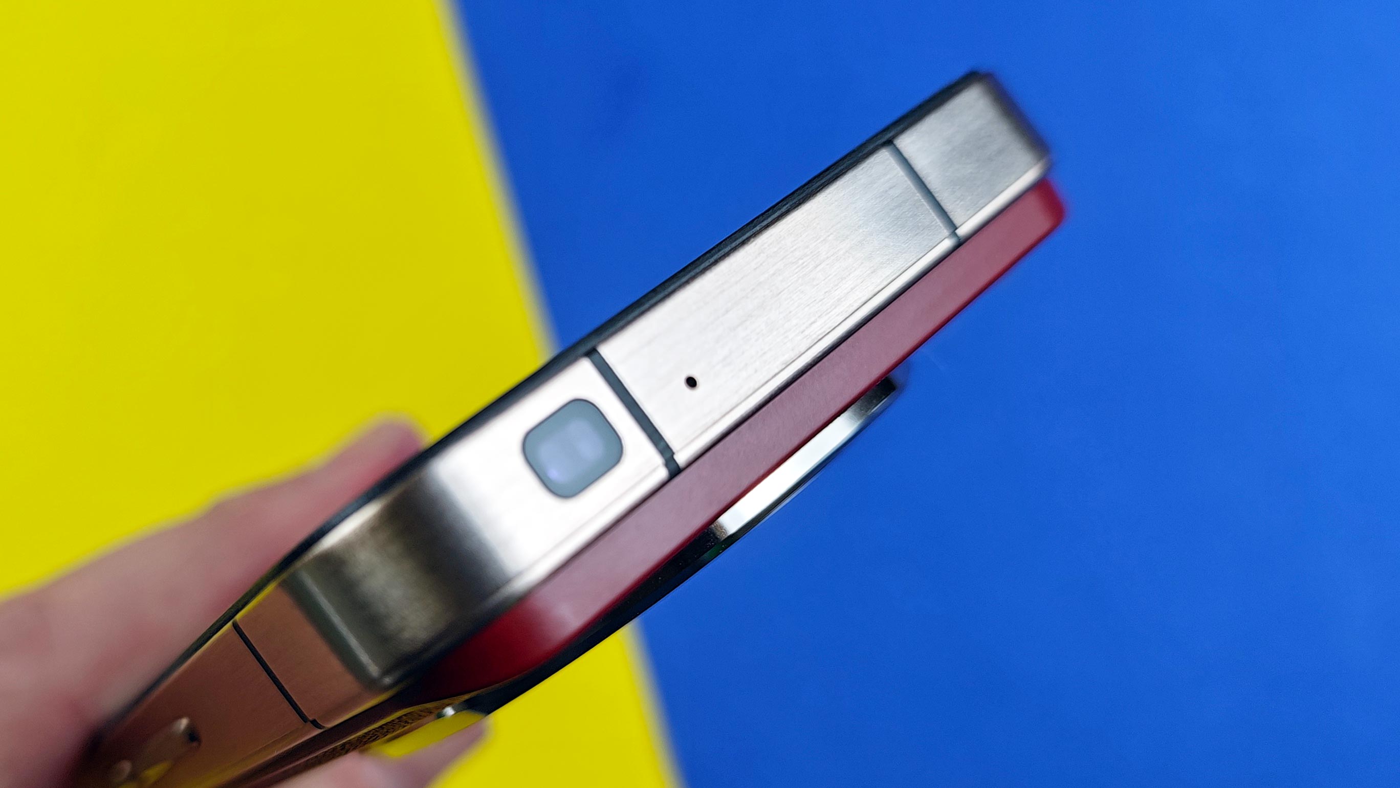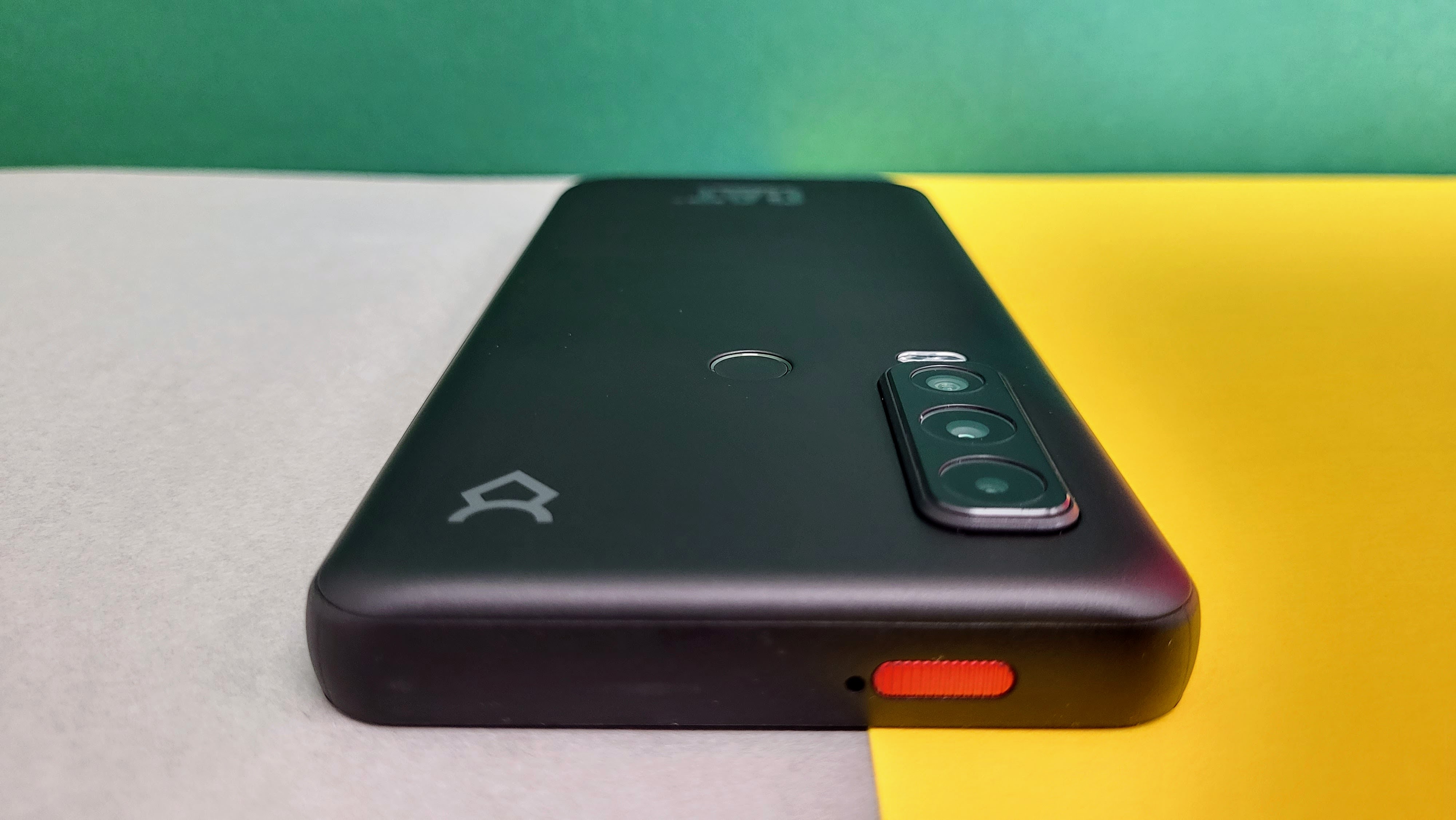 In der Power-Taste befindet sich ein Fingerabdruckscanner. Gegenüber liegt eine rot markierte Taste, die Nutzer mit Funktionen belegen können. Für unseren Geschmack wirken die Tasten eine Spur zu wackelig. Der USB-C-Anschluss auf der Unterseite ist zusätzlich mit einer Gummilasche bedeckt.