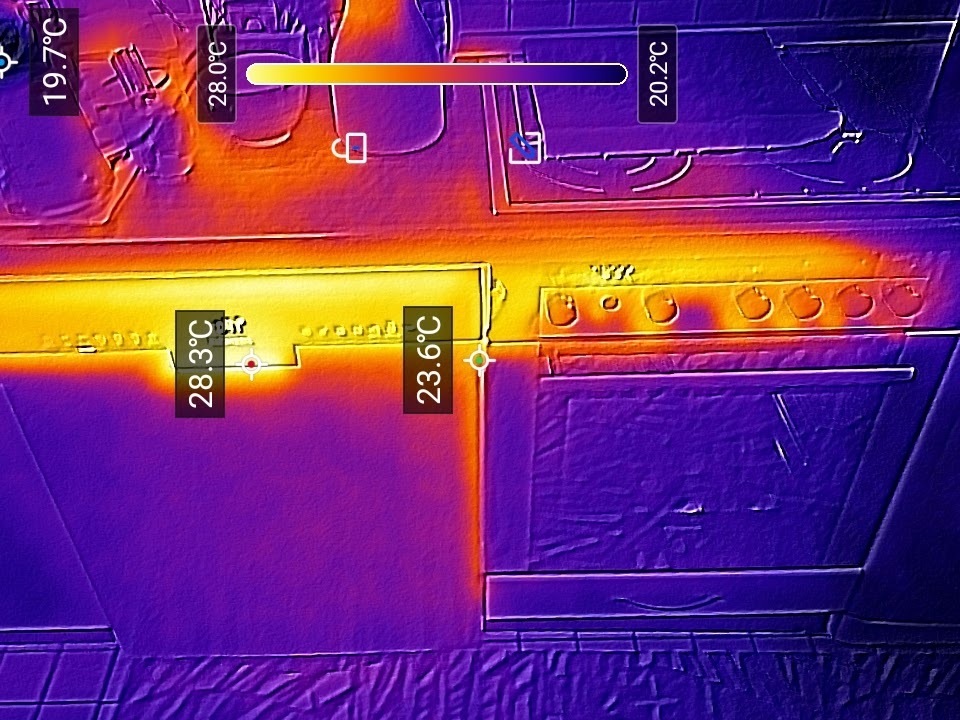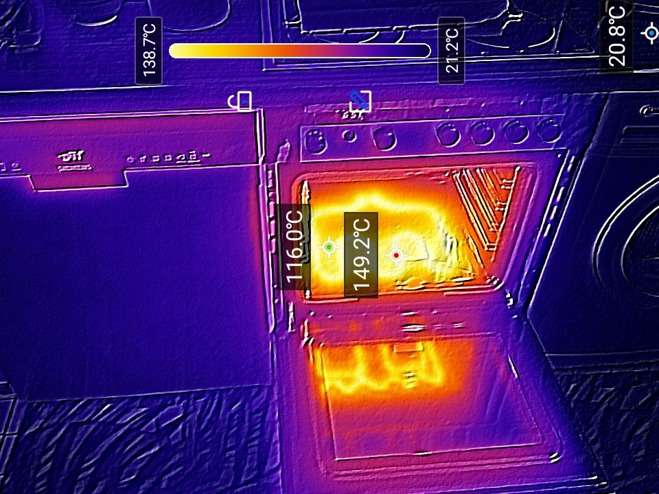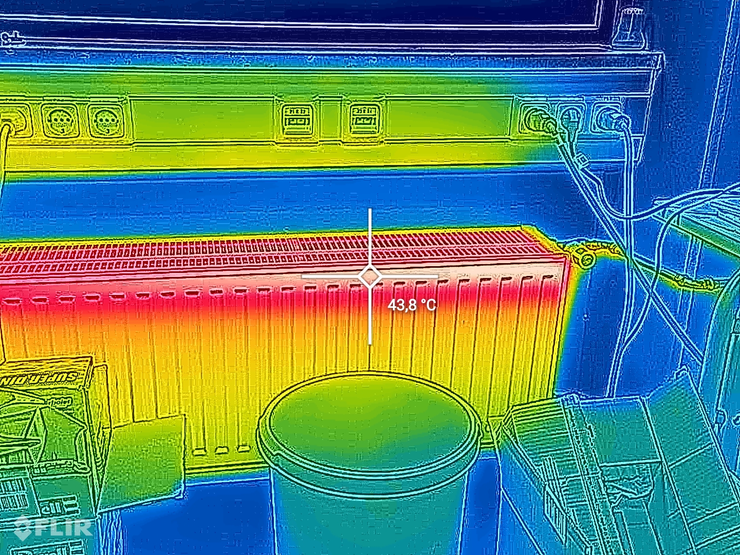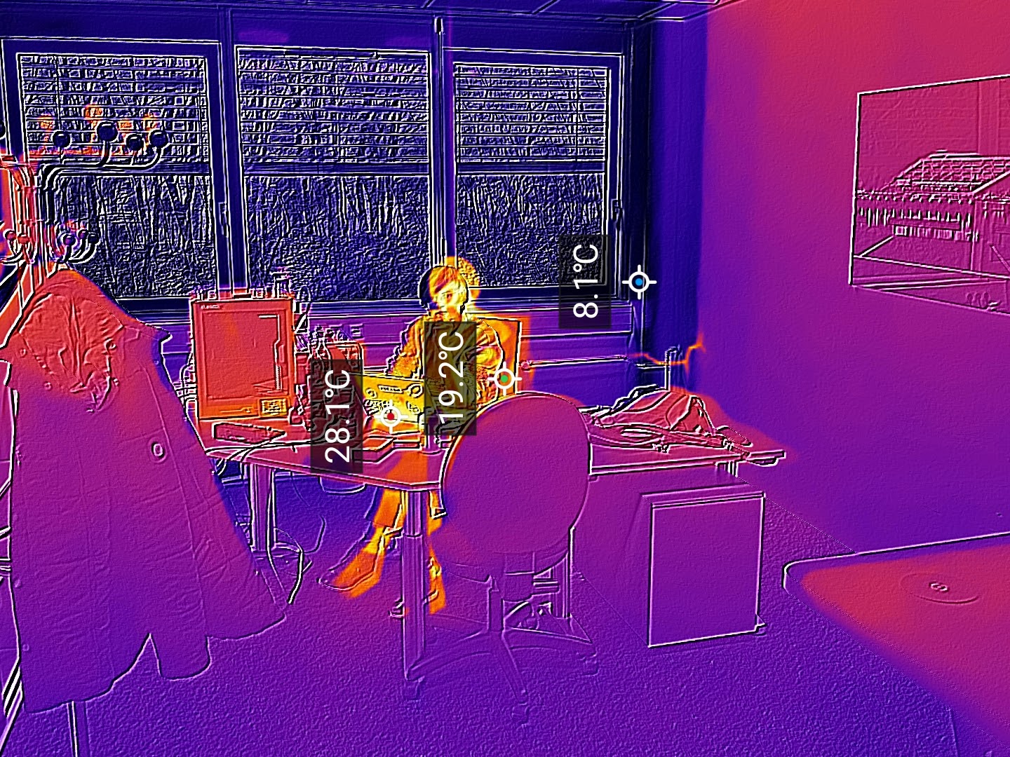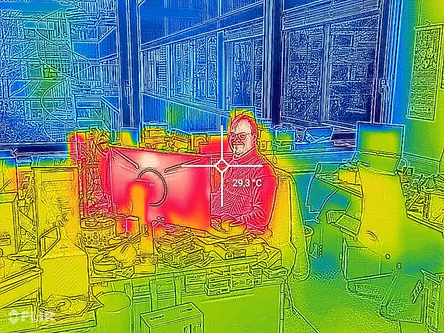 Ein weiterer Höhepunkt ist die Wärmebildkamera: Das Thermovue T2 System bietet eine hohe Auflösung von 640 × 512 Pixeln und misst Temperaturen im Bereich von -20 bis 550 Grad Celsius. Im Vergleich zu anderen Outdoor-Smartphones oder einem Adapter zum Aufstecken (Bestenliste), die in unseren Tests weniger detaillierte Wärmebilder lieferten, sticht das Ulefone-Modell positiv hervor. Es bietet mehrere Farbpaletten und zeigt die höchsten sowie niedrigsten Temperaturen auf dem Wärmebild an.