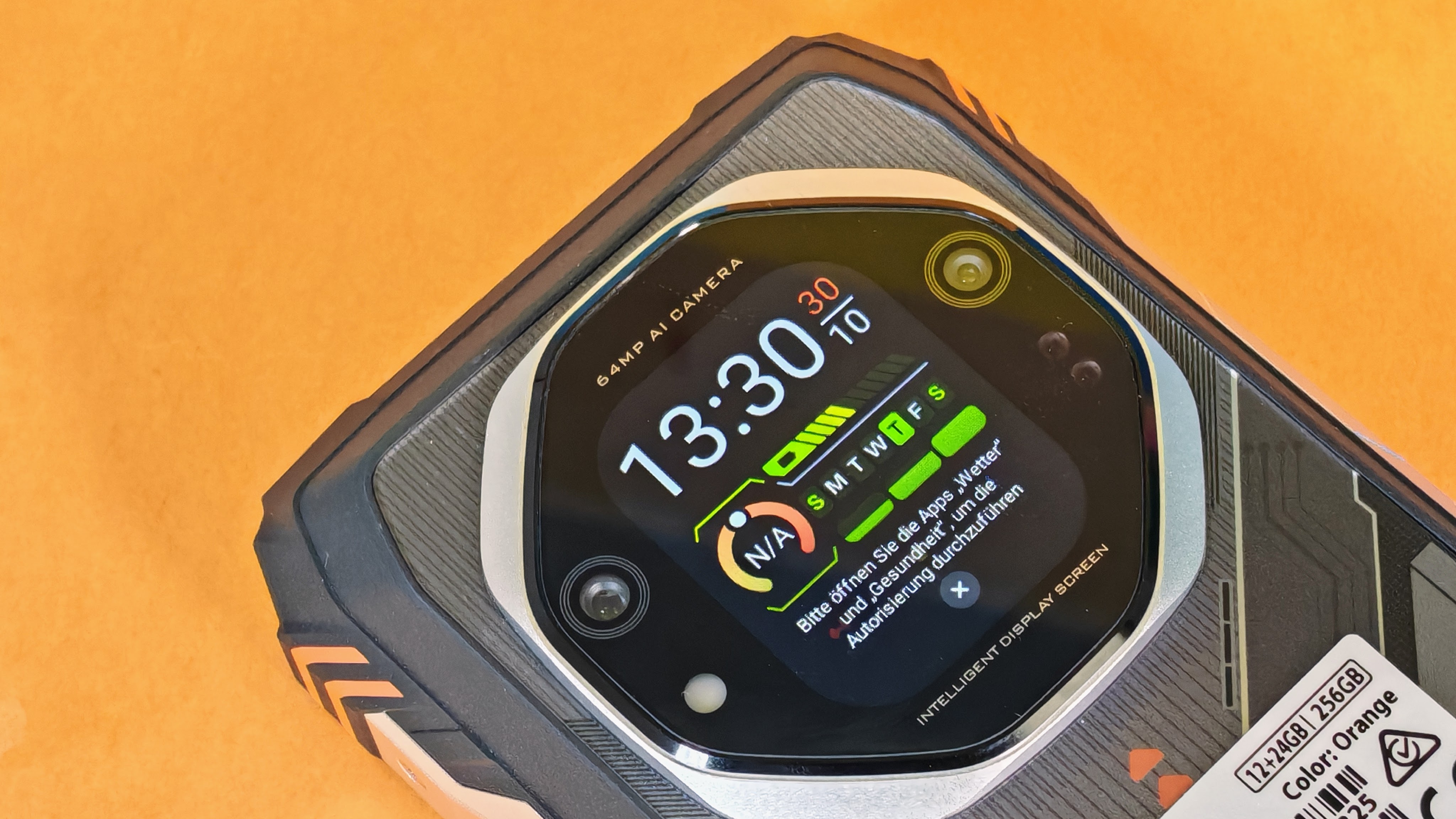 Eine echte Innovation ist das herausnehmbare Zweit-Display auf der Rückseite. Anders als bei Outdoor-Smartphones von Fossibot, die ein solches Zusatzdisplay für Widgets nutzen, steckt hier ein gänzlich neues Konzept dahinter: Das kleine Display verbirgt einen integrierten True-Wireless-Kopfhörer. Das gab es so bisher bislang nicht – und wir sind erstaunt über diese kreative Lösung. Allerdings ist die Klangqualität beim Telefonieren eher dumpf.
