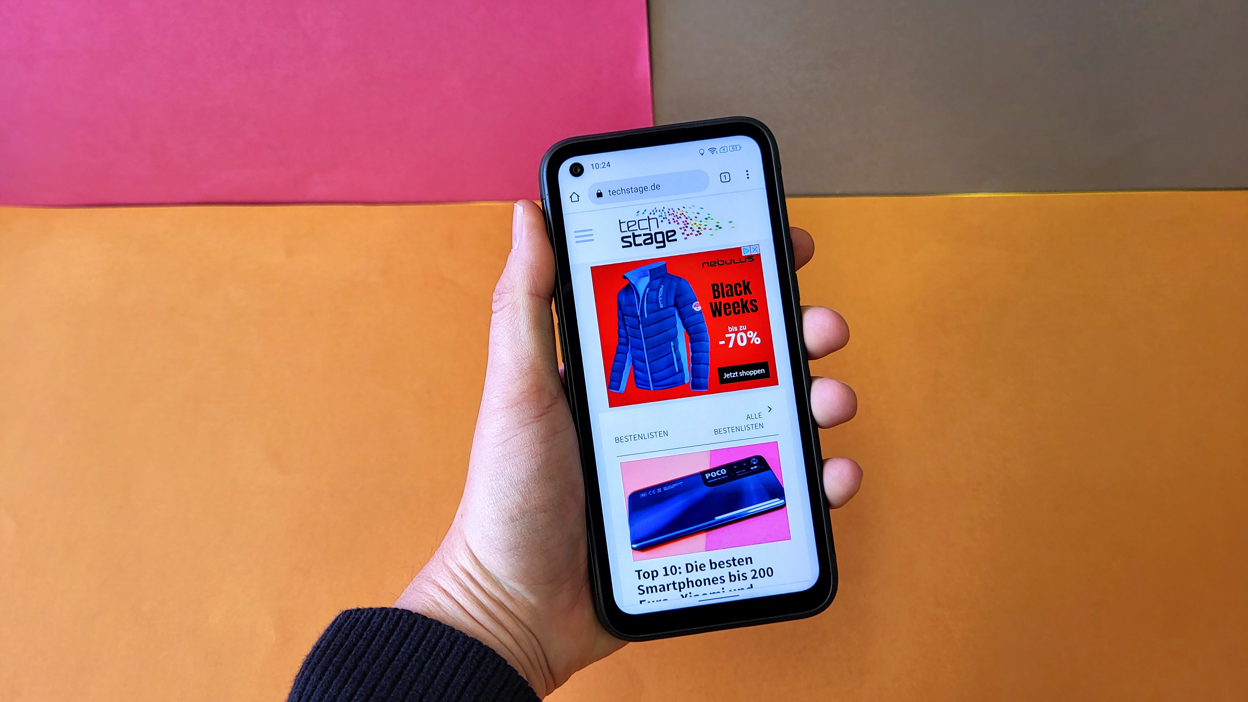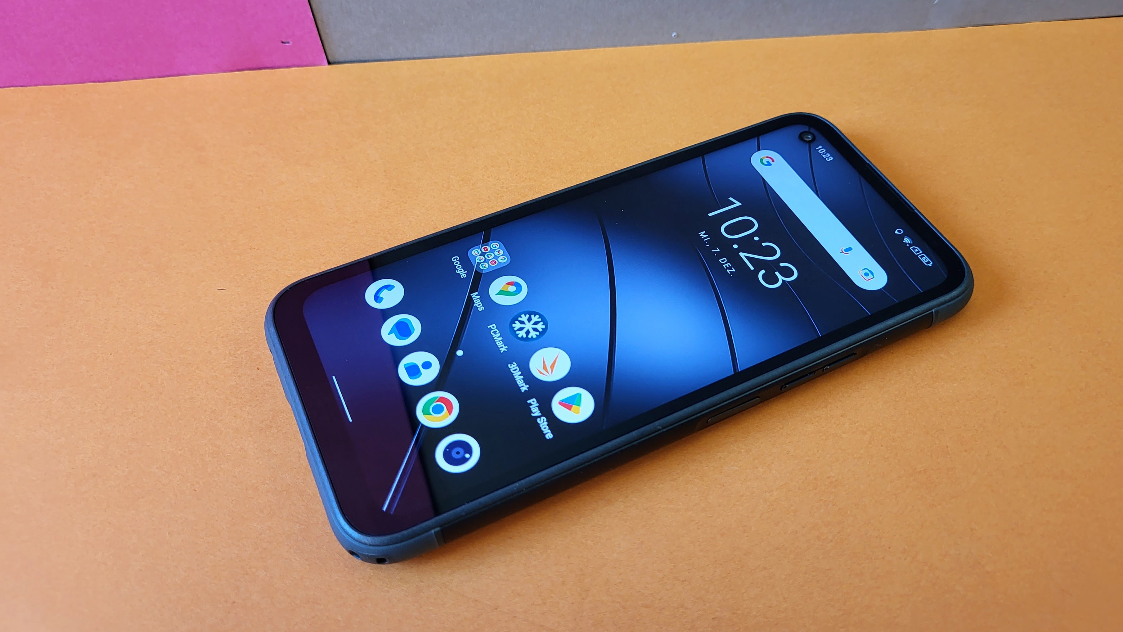 Das IPS-Panel bietet eine gewohnt hohe Blickwinkelstabilität. Die Bildqualität überzeugt. Dank einer Bildwiederholrate von bis zu 90 Hz wirken Animationen oder Scrollbewegungen geschmeidig. Als maximale Helligkeit konnten wir rund 515 Nits messen. Das ist nur ein durchschnittlicher Wert, auch wenn der Hersteller von bis zu 700 Nits spricht bei der automatischen Helligkeitsanpassung. Das ist aber immer noch besser als bei vielen anderen Outdoor-Handys. Im Freien bleibt die Anzeige meistens ablesbar, nur bei starkem Sonnenschein ist es ratsam, ein schattiges Plätzchen aufzusuchen.