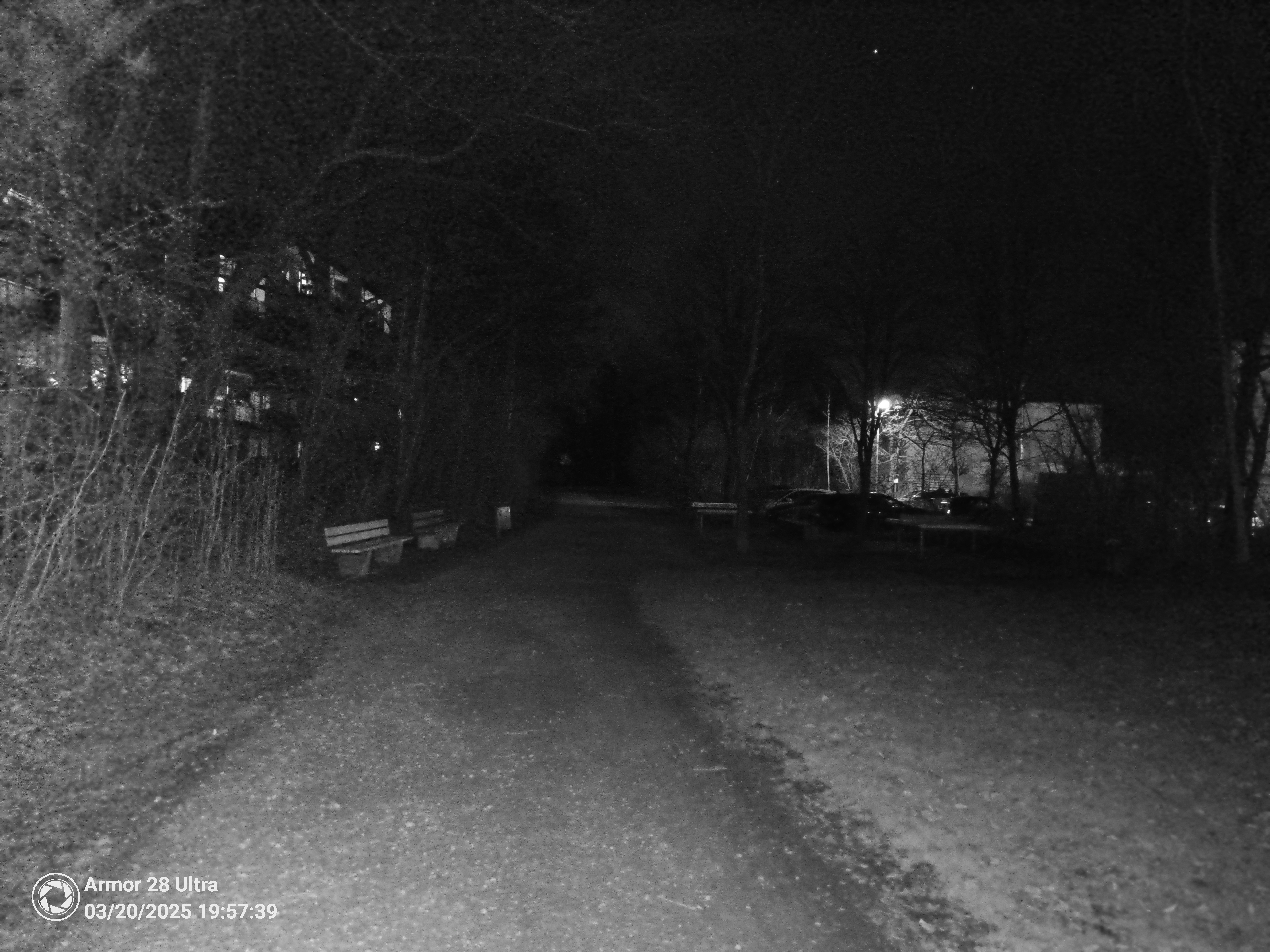 Für Aufnahmen in nahezu völliger Dunkelheit bietet das Ulefone Armor 28 Ultra eine Infrarot-Nachtkamera, die scharfe Schwarz-Weiß-Bilder in überraschend guter Qualität liefert. Auch bei starkem Zoom lassen sich noch gut lesbare Schriftzeichen auf Dokumenten erkennen. Für nächtliche Tierbeobachtungen im Wald ist diese Funktion ebenfalls nützlich.