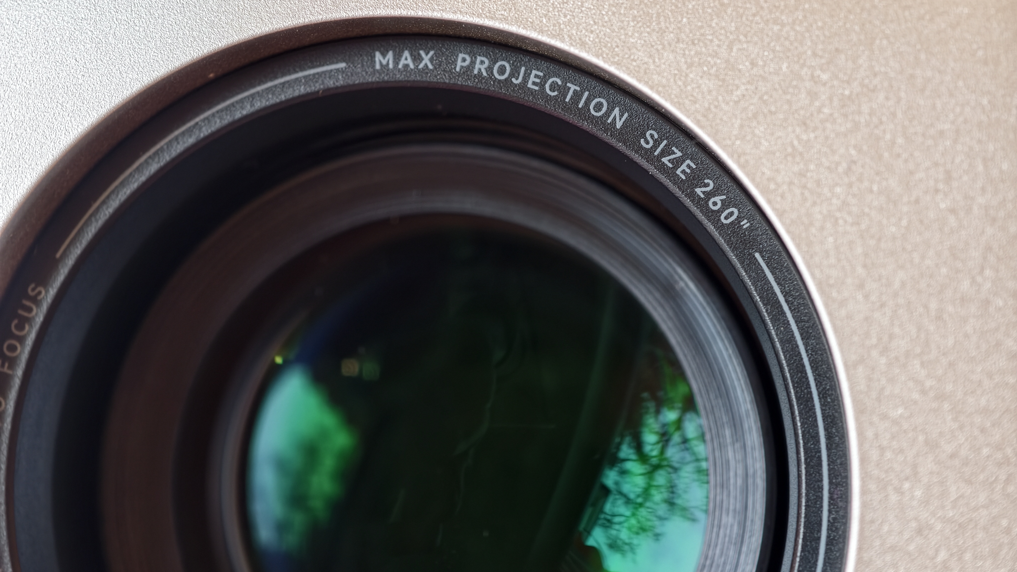 Die native Auflösung beträgt wie bei Full-HD-Beamern üblich 1920 × 1080 Pixel. Die Lampenleistung liegt bei 210 W, im Betrieb ist die Lichtausbeute mit 3200 Lumen sehr hoch. Selbst in nicht komplett abgedunkelten Räumen wird ein gutes Bild an die Wand geworfen – und von deutlich hörbaren Lüftergeräuschen untermalt. Je nach Abstand zur Wand lässt sich das Bild per Zoom-Ring vergrößern oder verkleinern. Bei einem Abstand von nur 2,5 m wird zum Beispiel ein Bild mit einer Diagonalen von 100 Zoll (2,54 m) an die Wand geworfen. Im Test war die freie Fläche an der Wand ungefähr in dieser Größe, der Beamer stand allerdings weiter weg. Mit dem Zoom-Ring konnte das Bild ganz bequem auf die gewünschte Größe reduziert werden. Ist der Raum dunkel genug, wird das Bild bis zu einer Größe von 180 Zoll (4,57 m) in guter Qualität dargestellt.