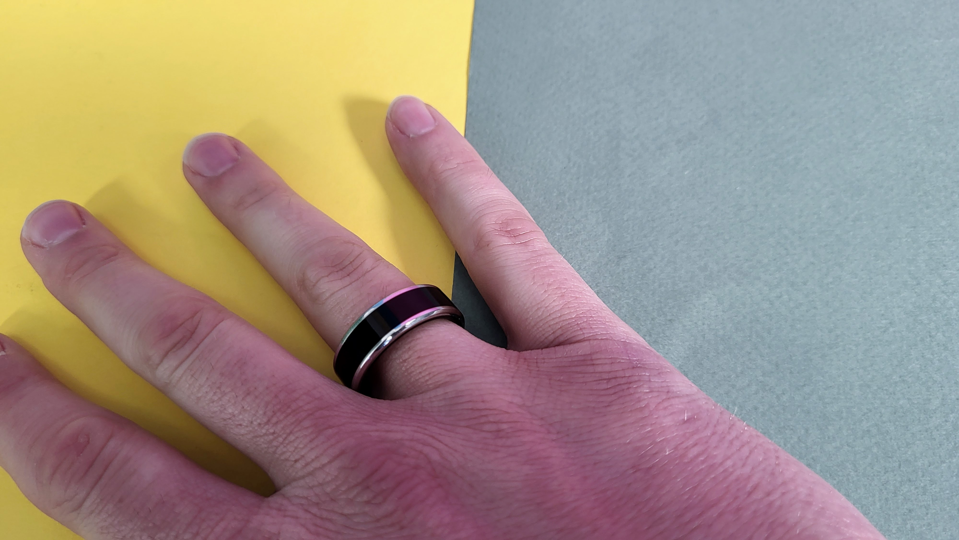 Bis auf den Hubbel zum Laden und Sensoren auf der Innenseite sieht man dem Ring den besonderen Charakter gar nicht an. Der Stil ist mit einem mittigen, schwarzen Streifen aus Porzellan sehr schlicht. Der Ring selbst ist aus Edelstahl und mit einem Harz übergossen, um auf bis zu 5 ATM wasserdicht zu sein.