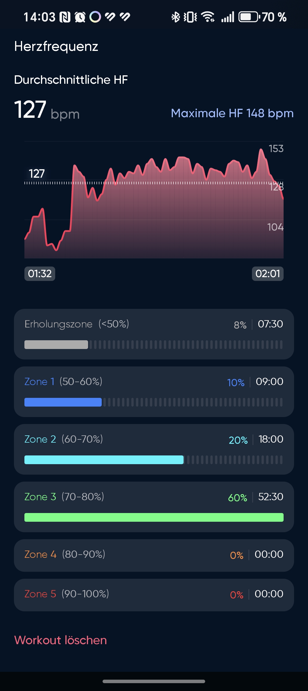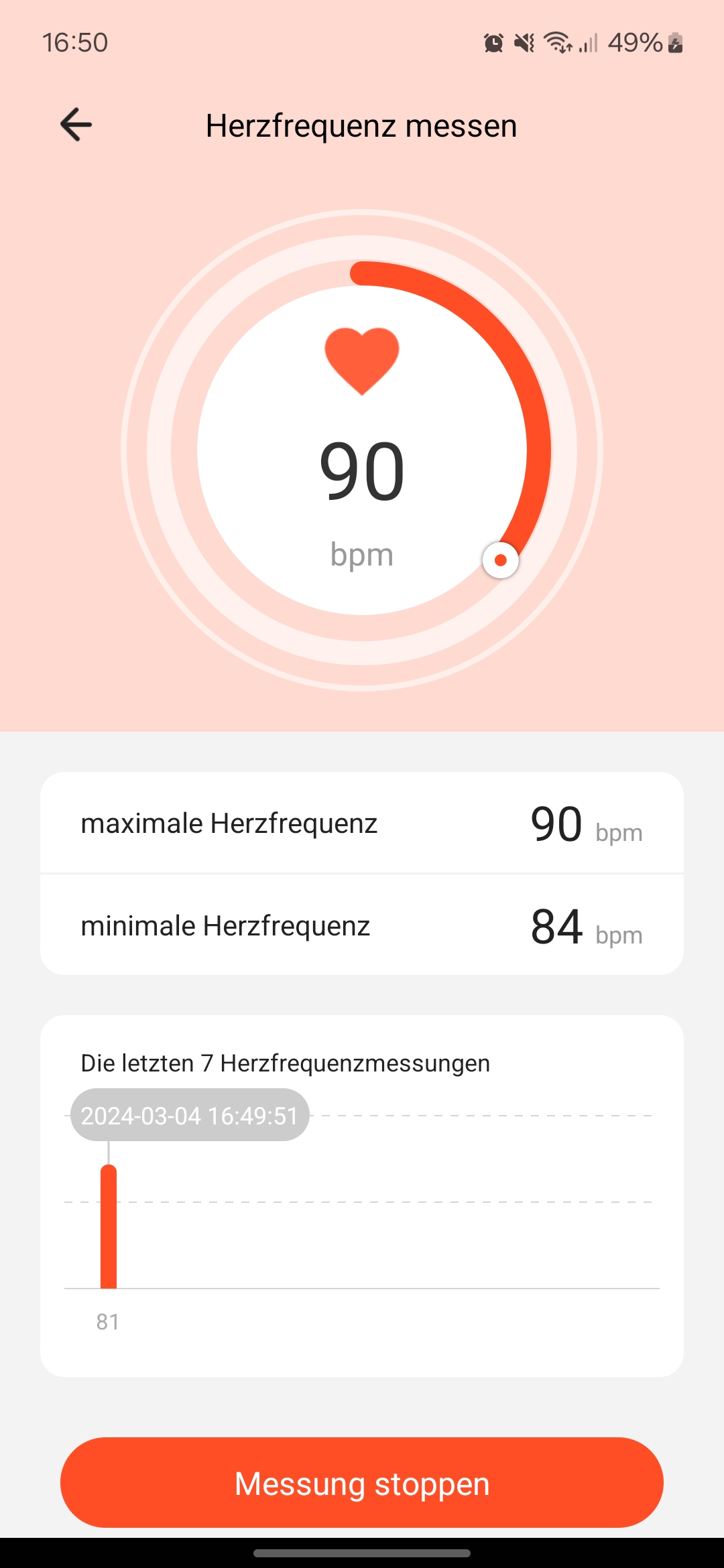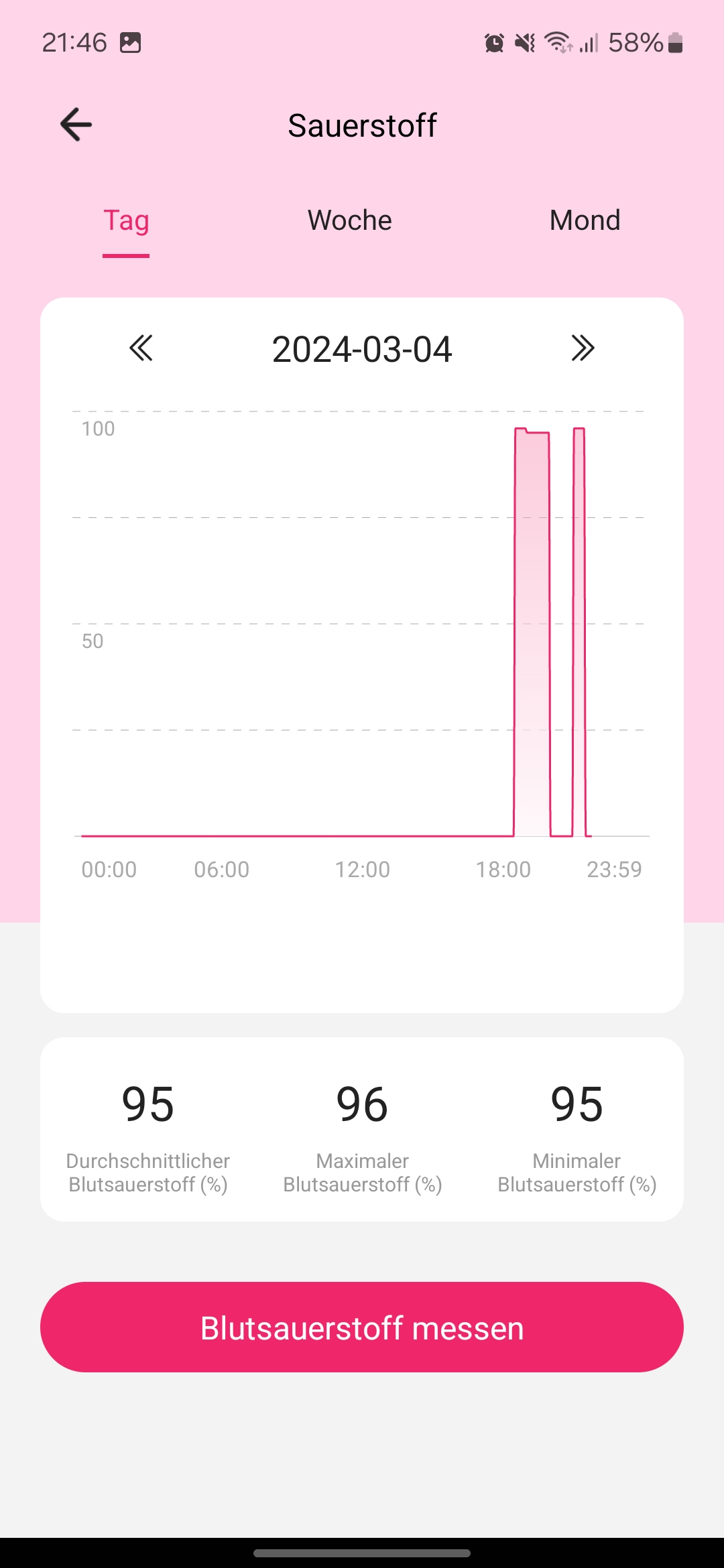 Die kontinuierliche Pulsmessung erfolgt standardmäßig alle 30 Minuten automatisch. Auf Wunsch lässt sich der Puls auch manuell in der App messen. Die Erfassung des Ruhepulses war im Test erfreulich genau und wich kaum von unserem Referenzgerät ab. Auch bei lockeren Ausdauereinheiten zeigte der Ring schlüssige Ergebnisse.