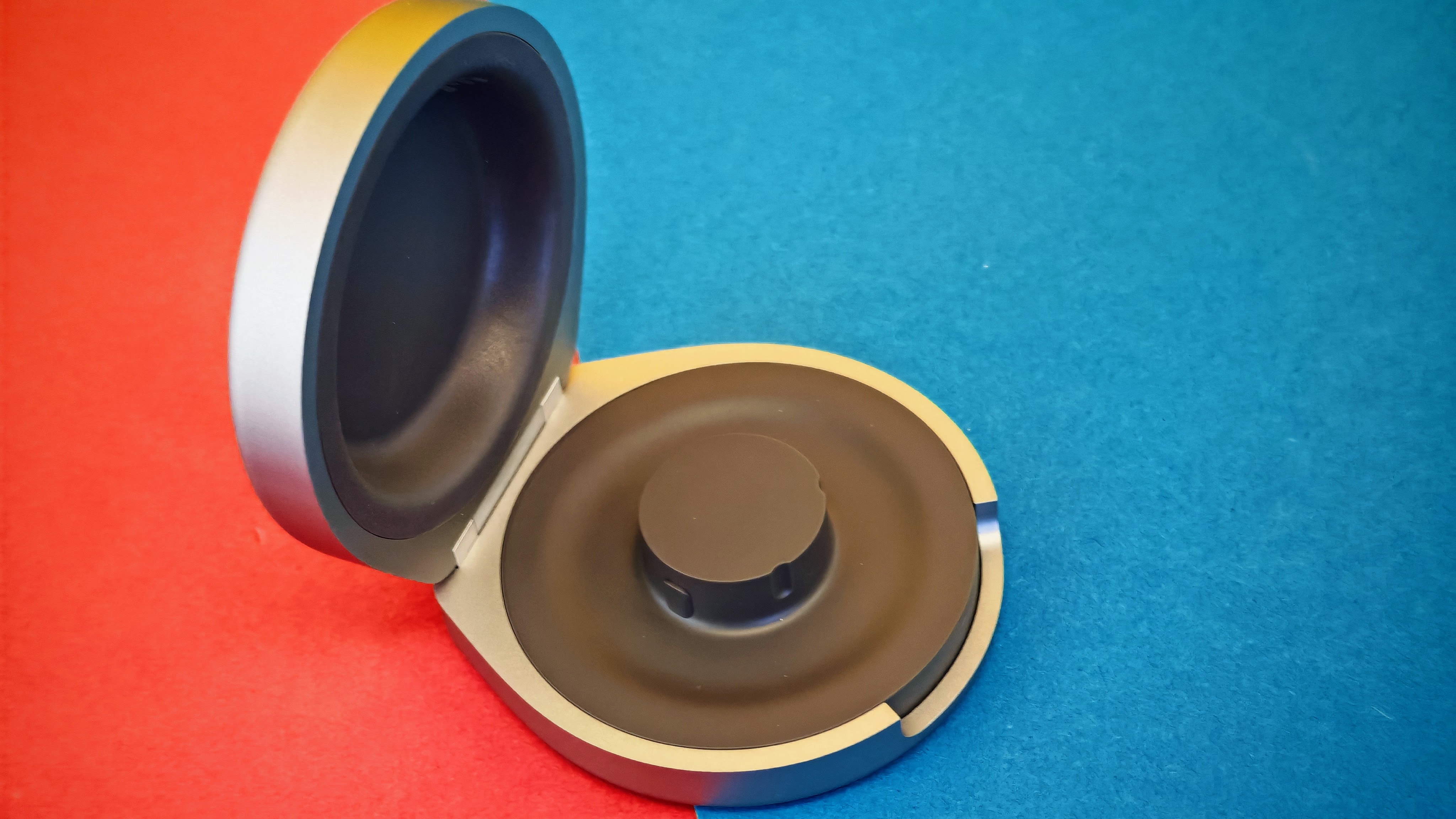 Im Lieferumfang liegt ein Ladegerät. Der Ring wird einfach aufgesetzt, bis er einrastet – dann leuchtet eine kleine LED auf. Das Ladegerät wird per USB-C-auf-USB-A-Kabel mit einem Netzteil verbunden, das jedoch nicht beiliegt. Ein Ladecase gehört nicht zum Lieferumfang, ist aber separat als Zubehör erhältlich. Wir haben es ebenfalls ausprobiert.