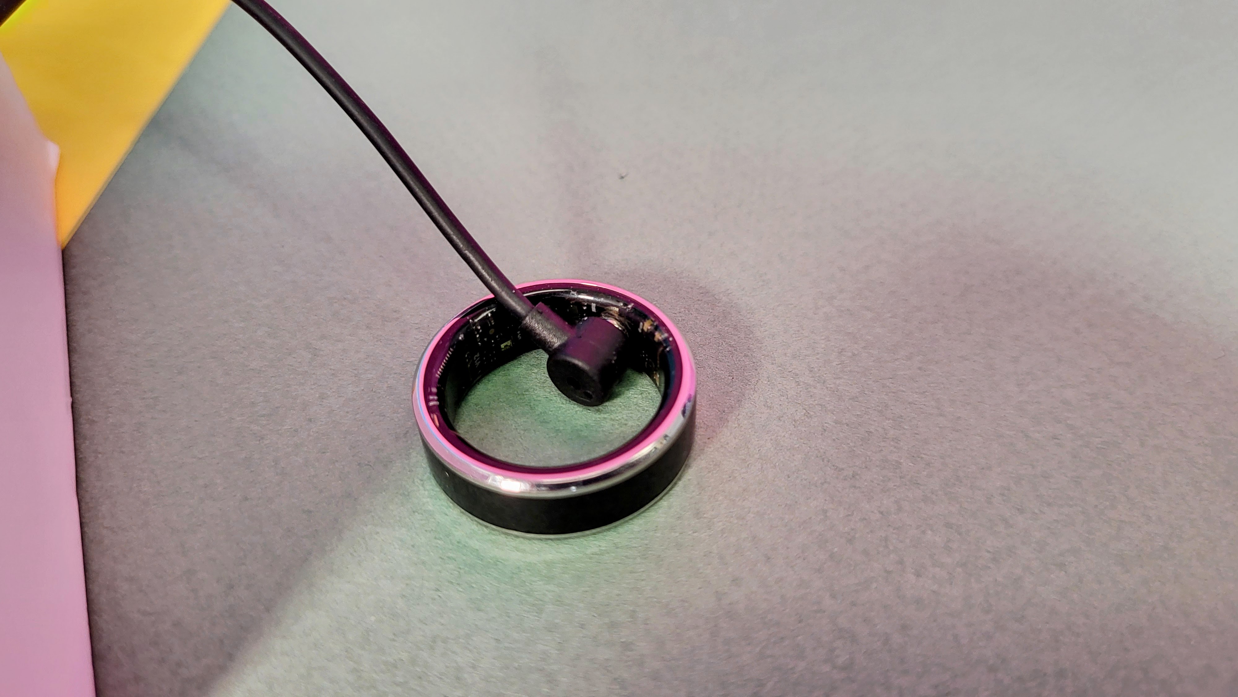 Geliefert wird der Ring in einer kleinen Schachtel ohne größeres Zubehör oder Dokumentation. Zum Laden steht ein Kabel mit einem USB-A-Anschluss einerseits und einem magnetischen Kopf andererseits bereit. Dieser lädt den Ring in knapp ein bis zwei Stunden auf, abhängig vom genutzten Netzteil (gehört nicht zum Lieferumfang).