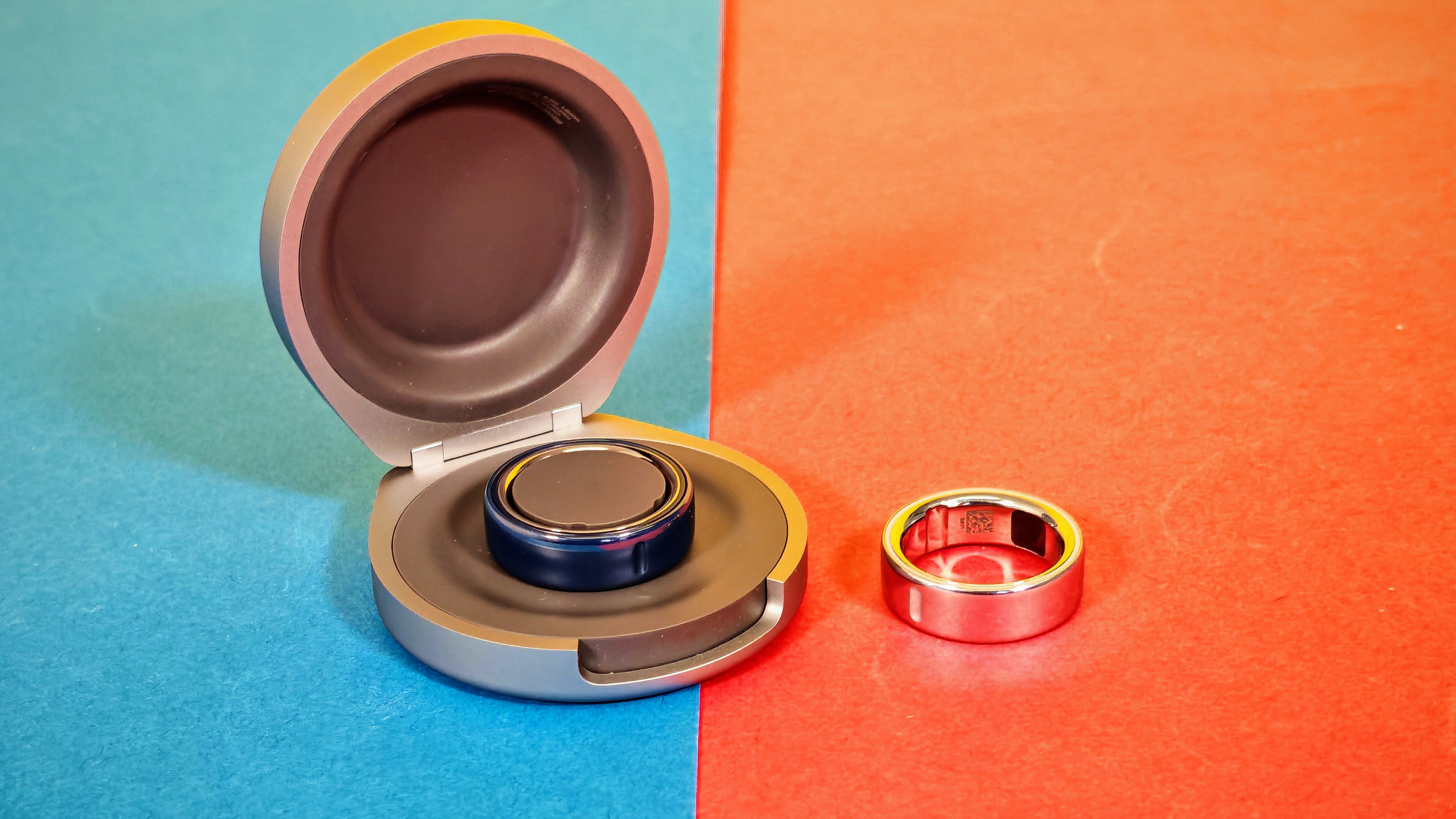 Oura Ring 4: Modell aus Keramik (links) und Titan (rechts) mit optionalem Ladecase